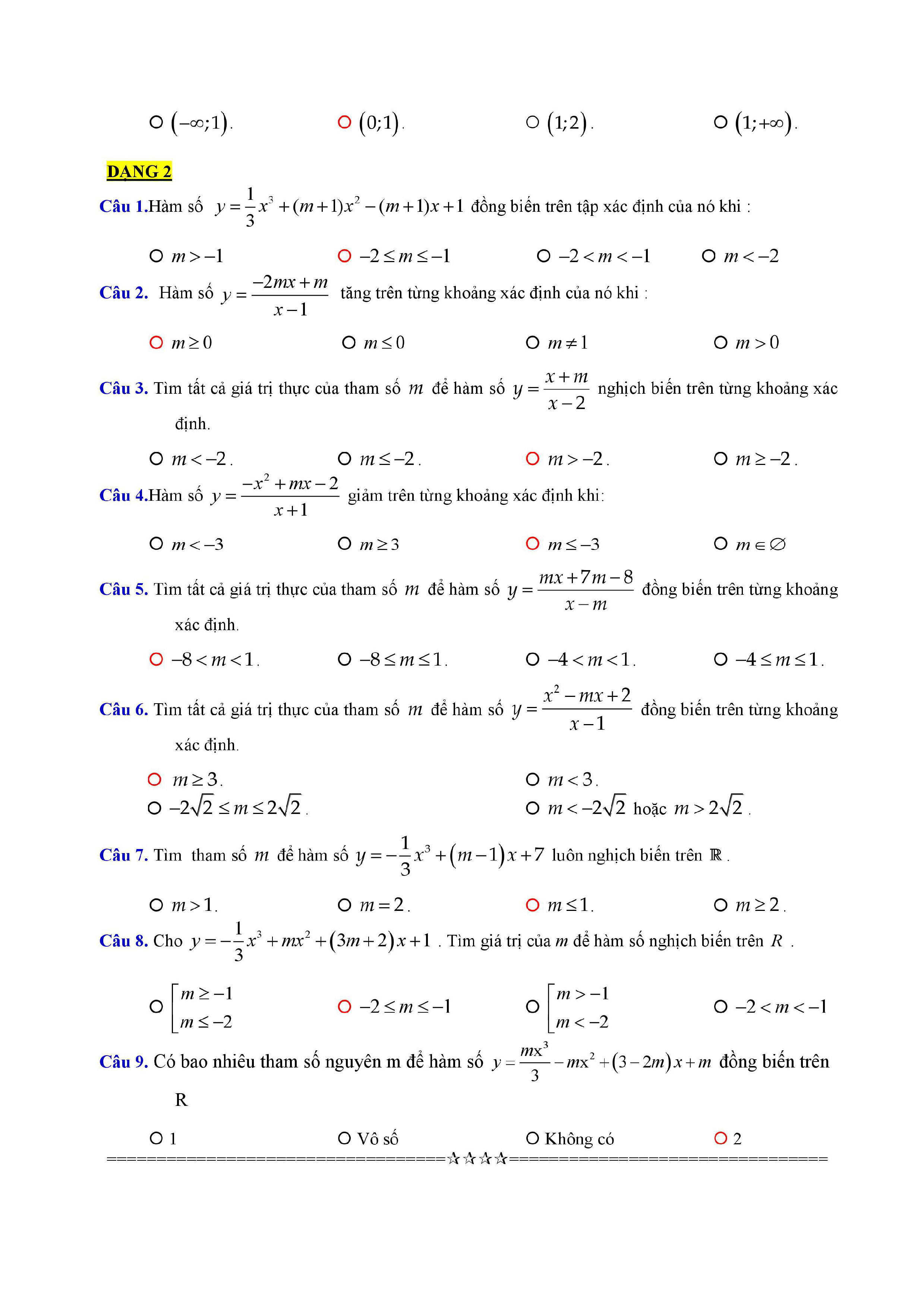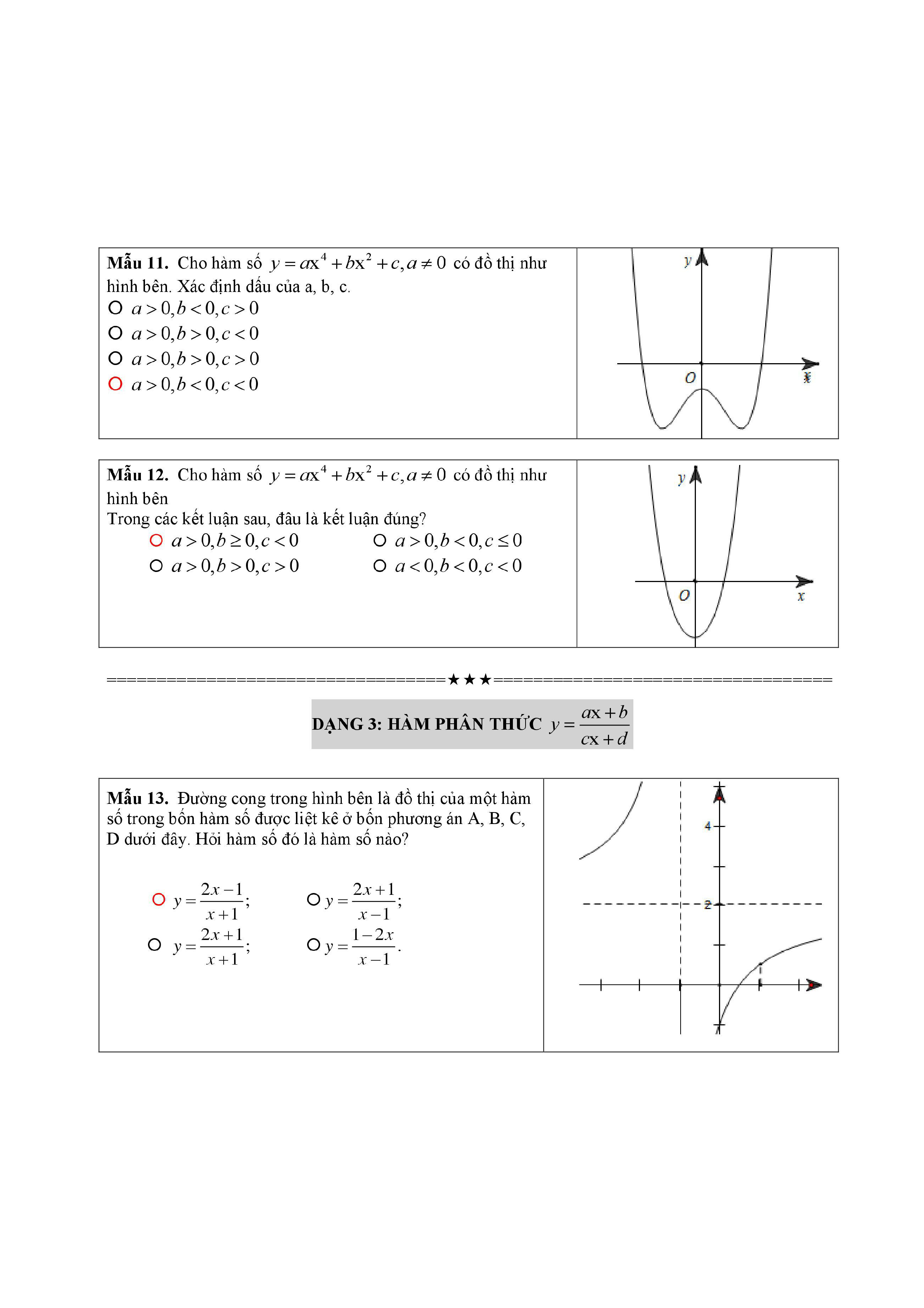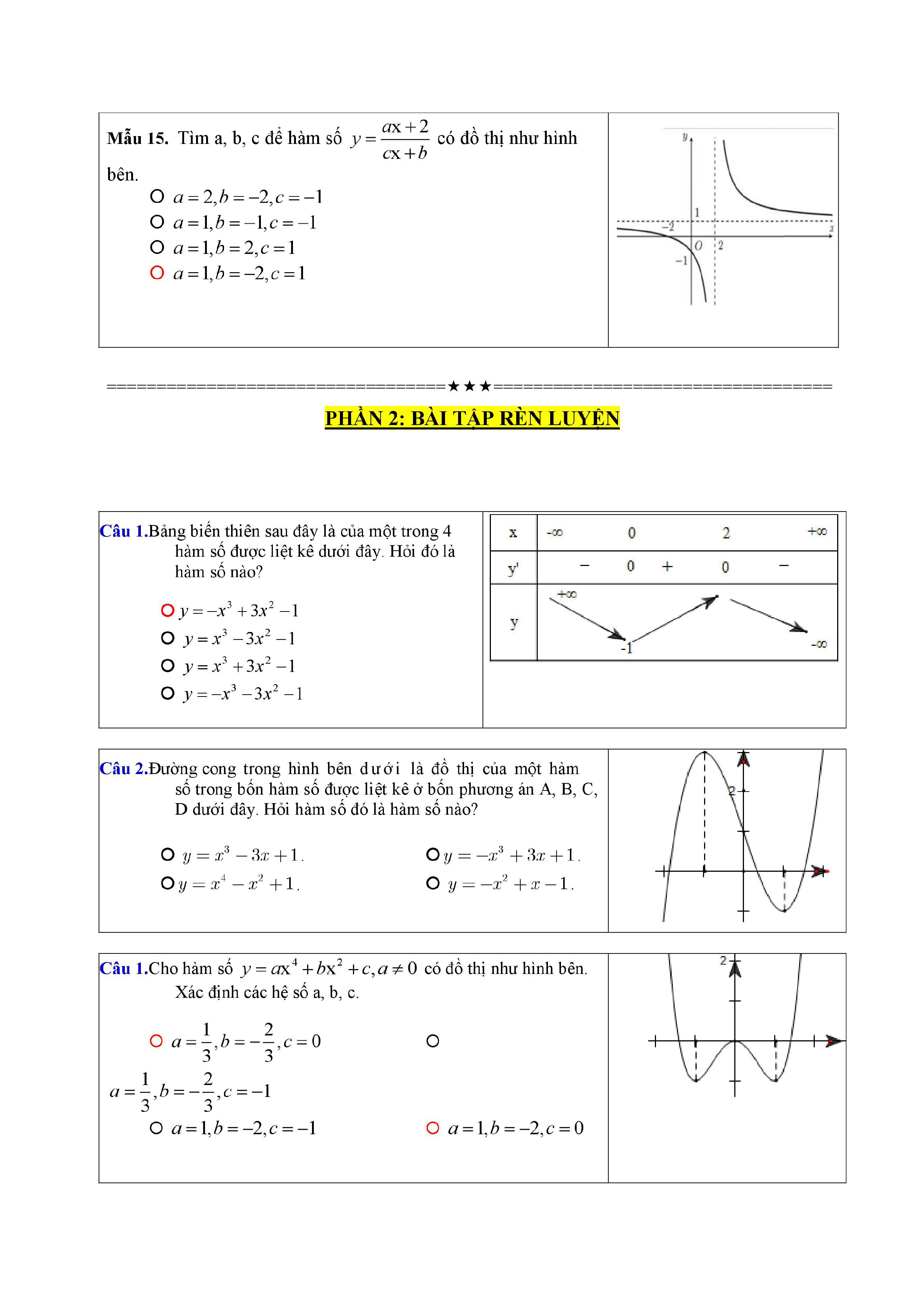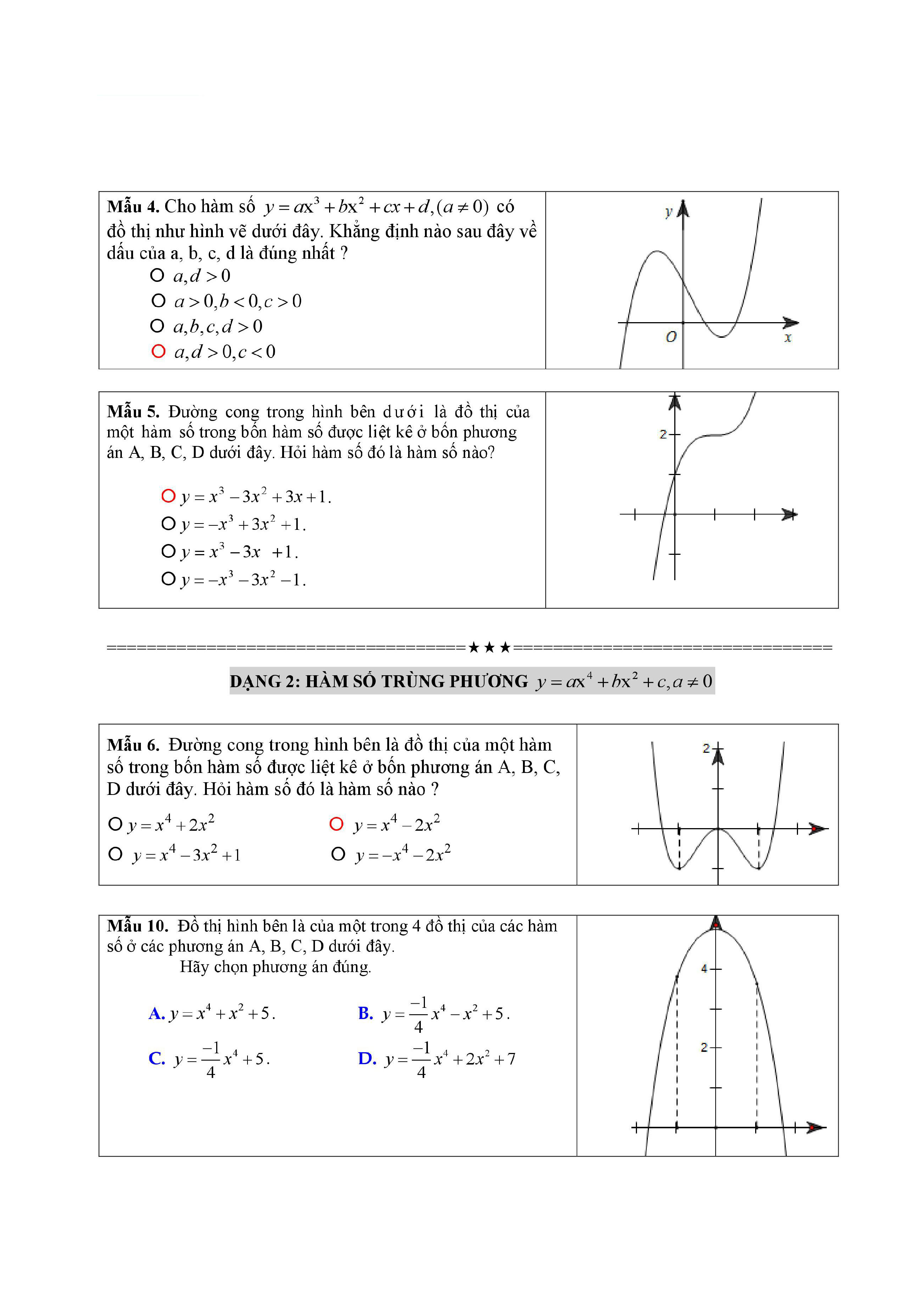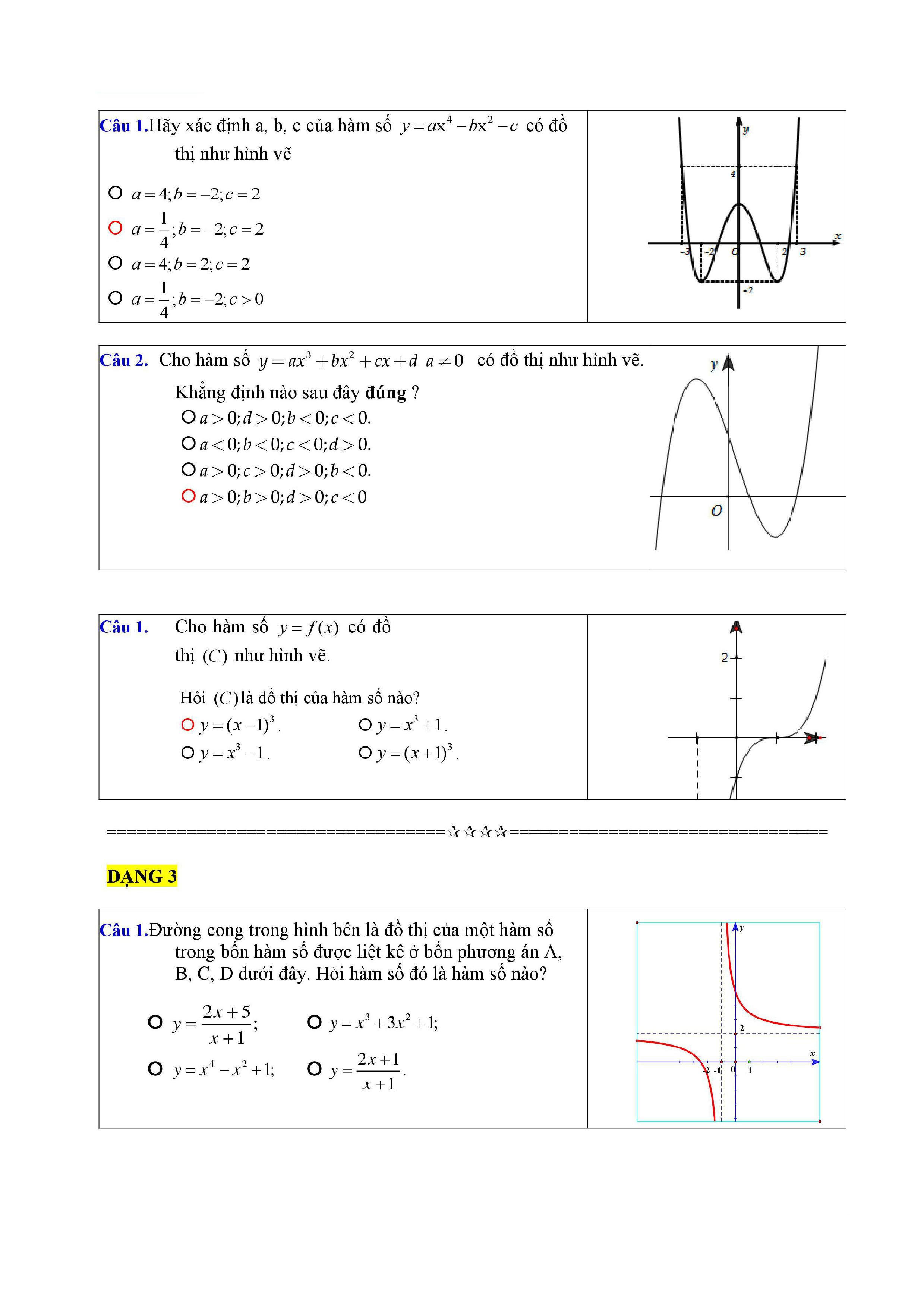 Phân dạng và bài tập trắc nghiệm chuyên đề Hàm số