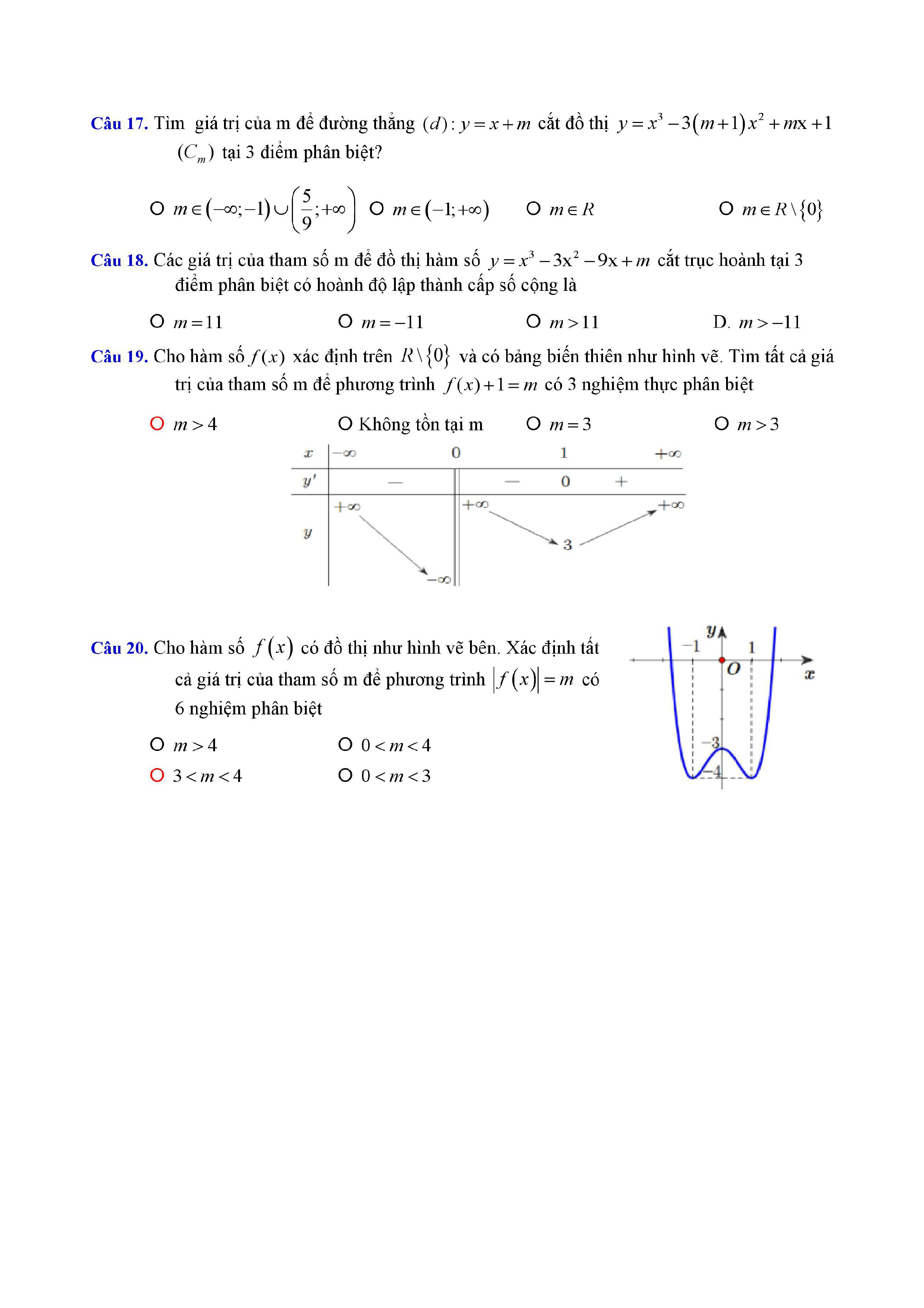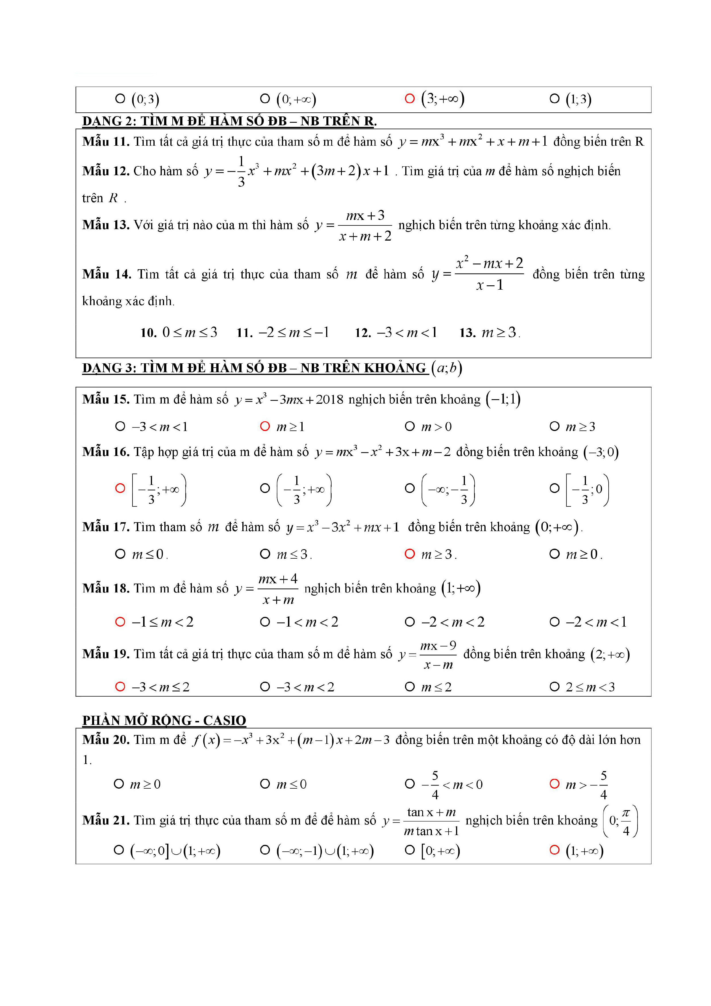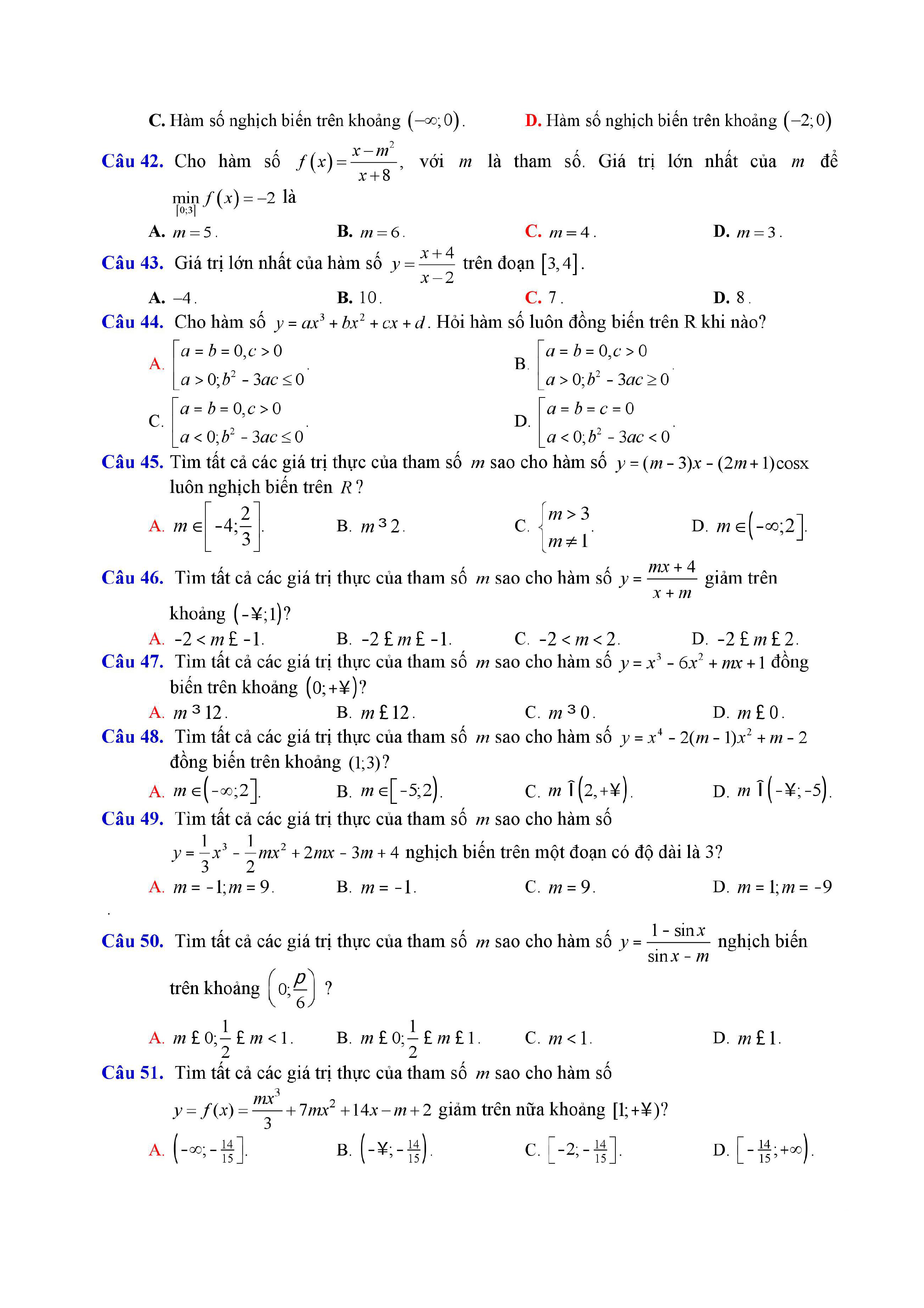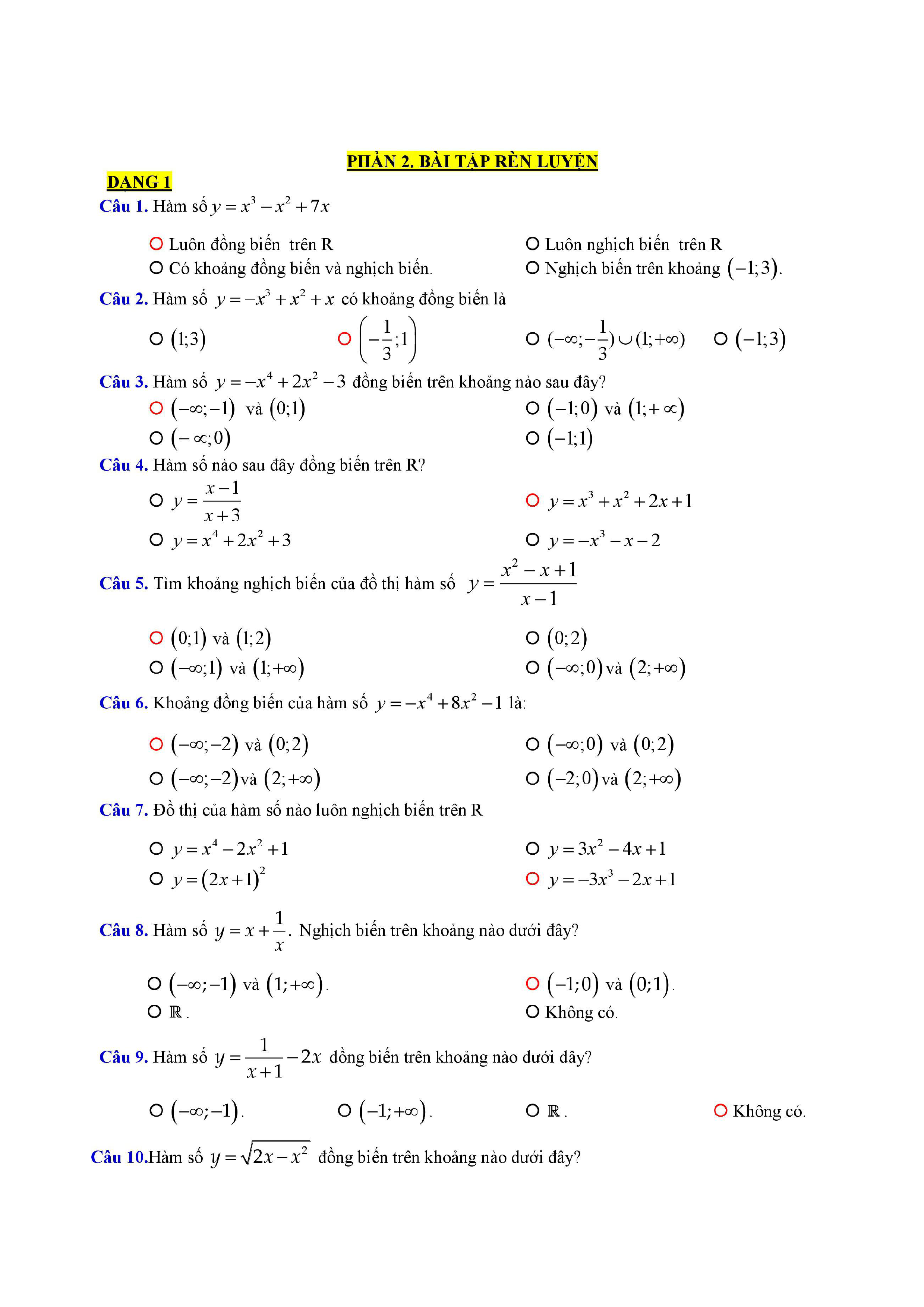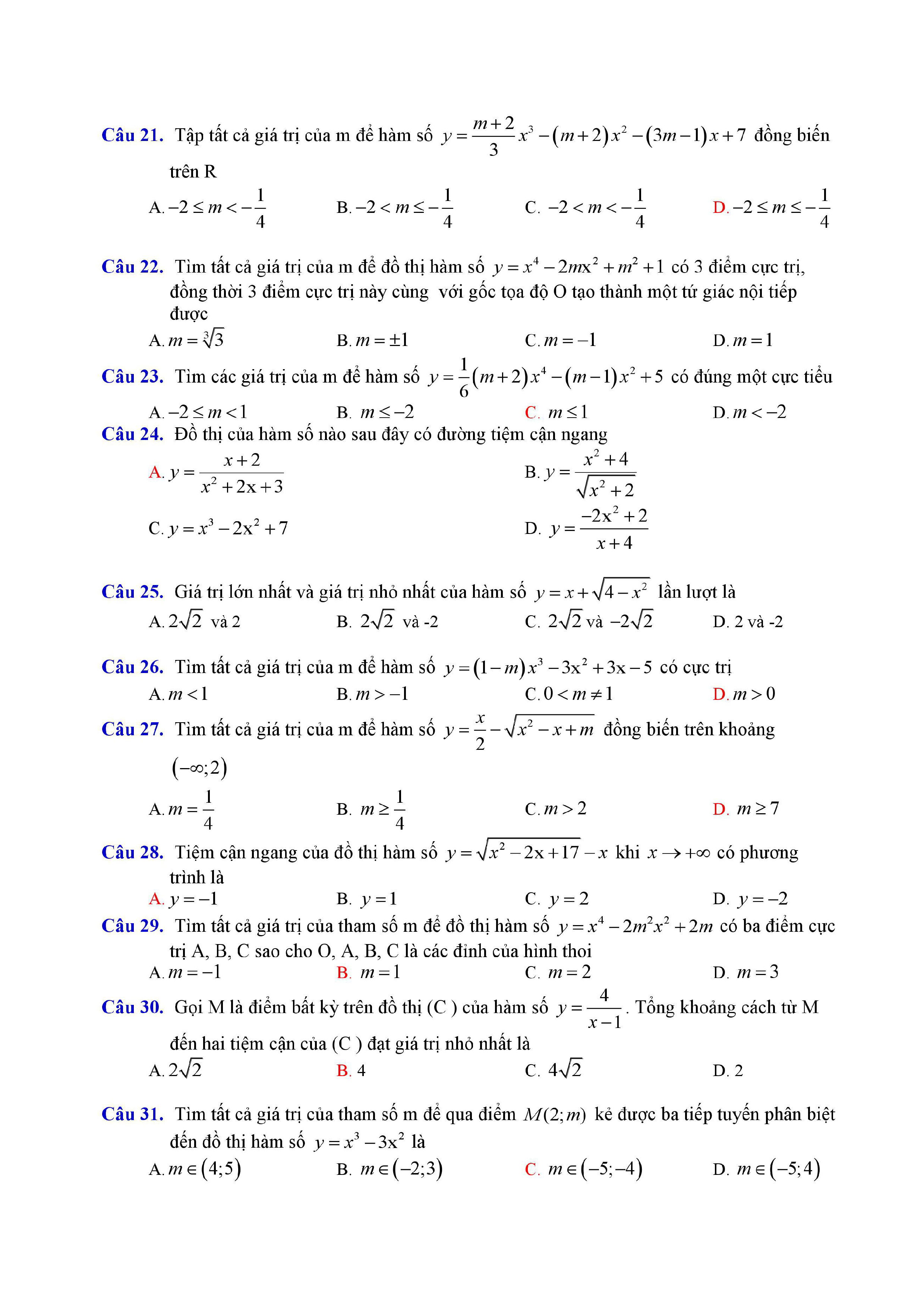 Phân dạng và bài tập trắc nghiệm chuyên đề Hàm số