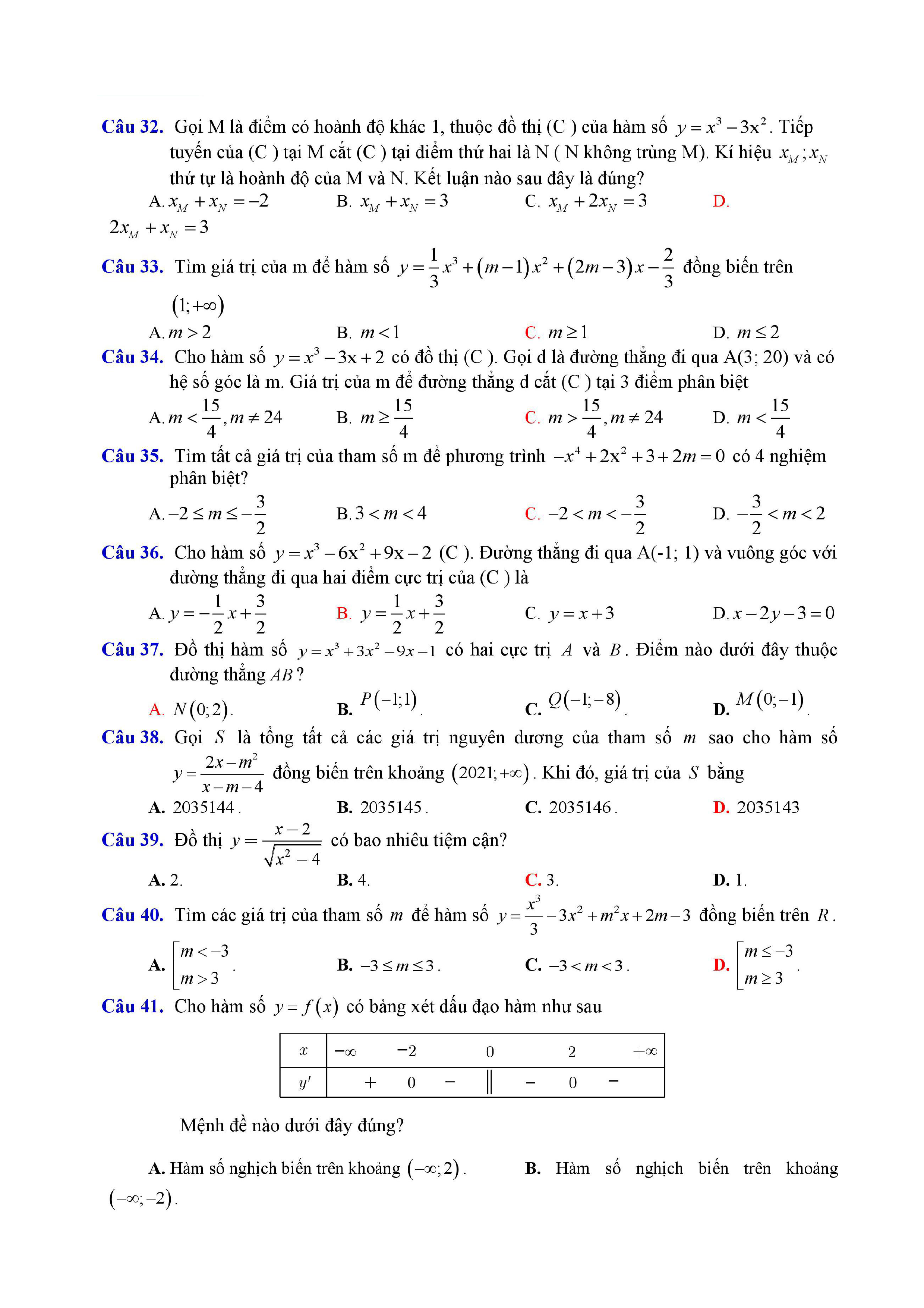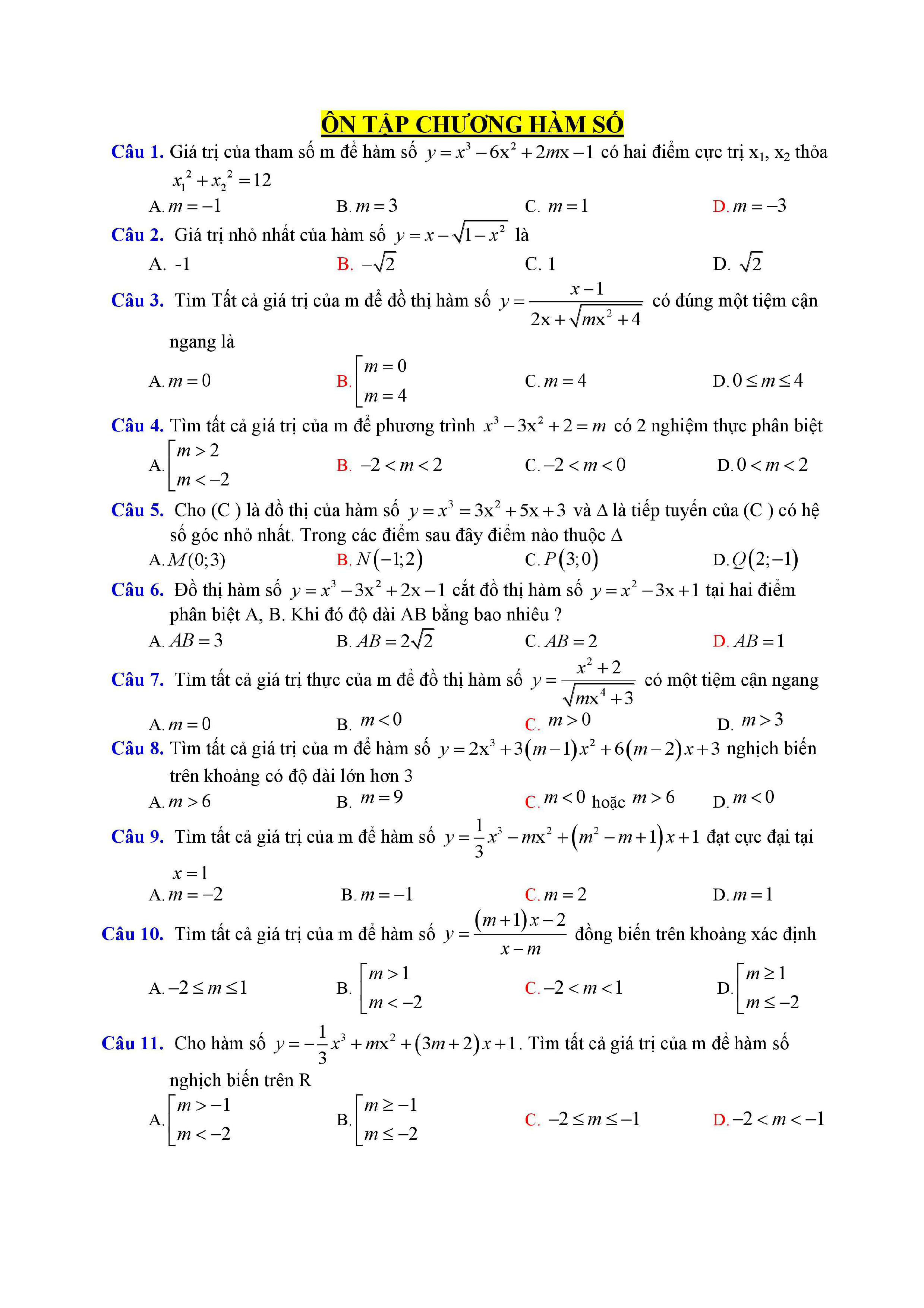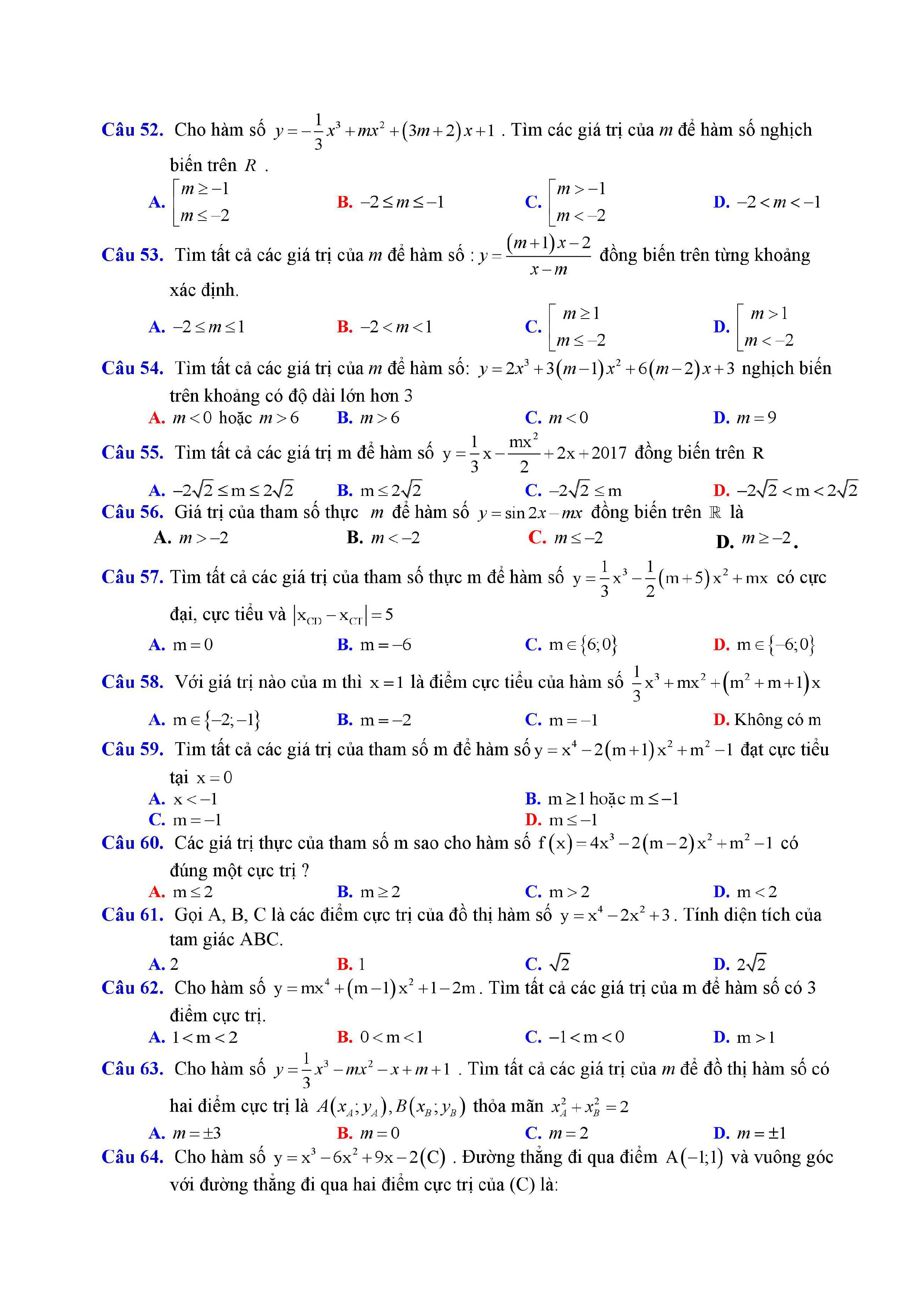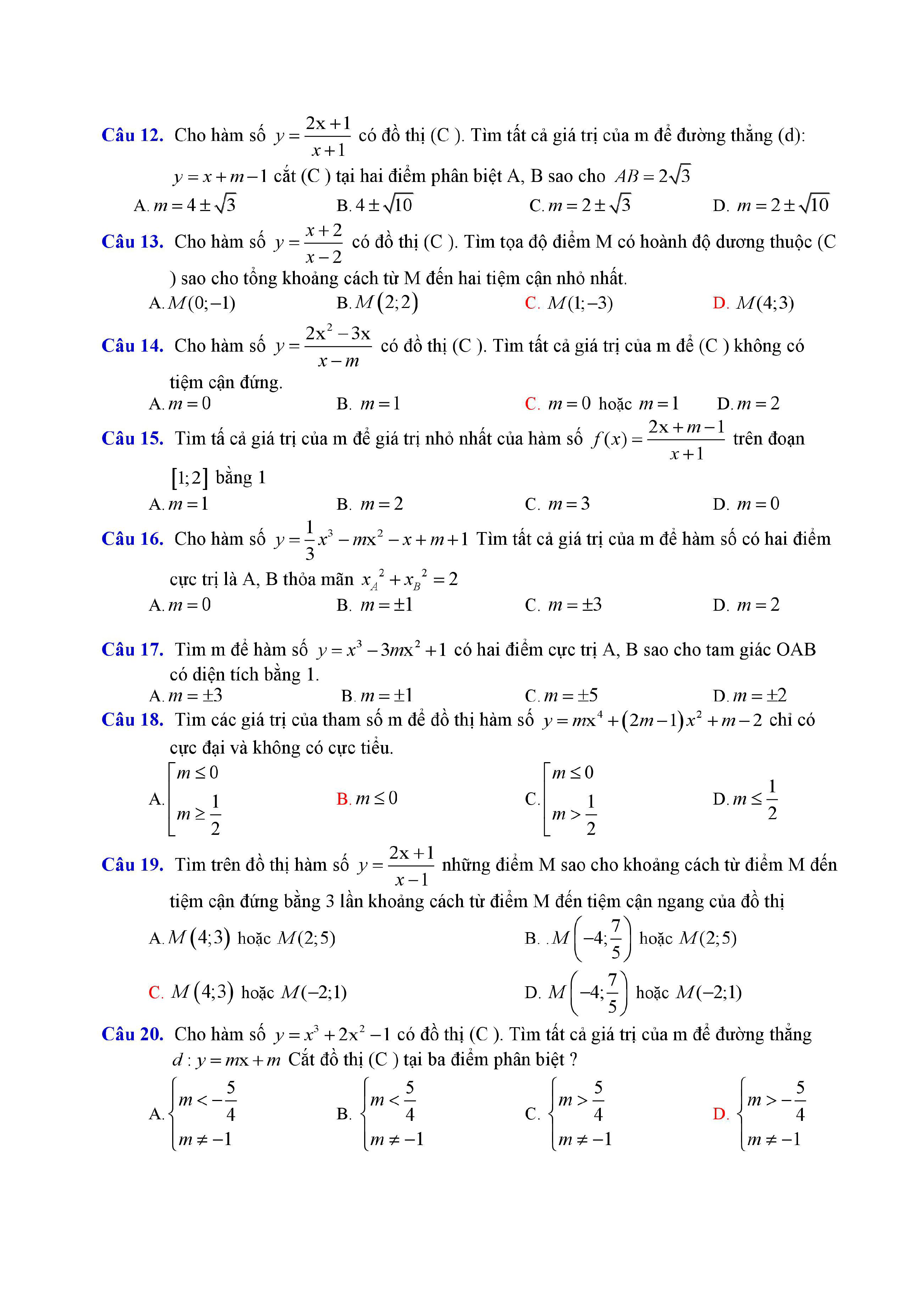 Phân dạng và bài tập trắc nghiệm chuyên đề Hàm số