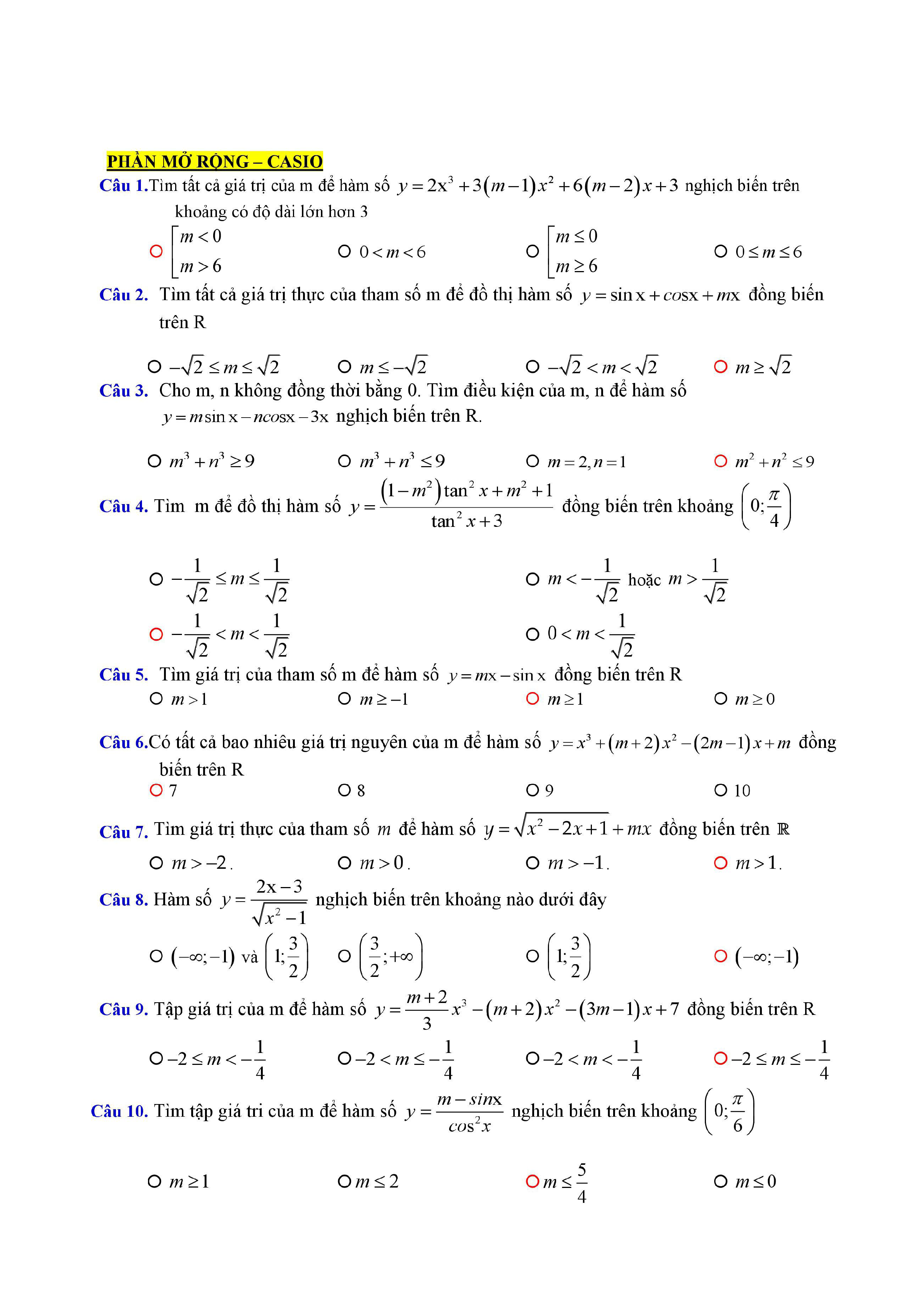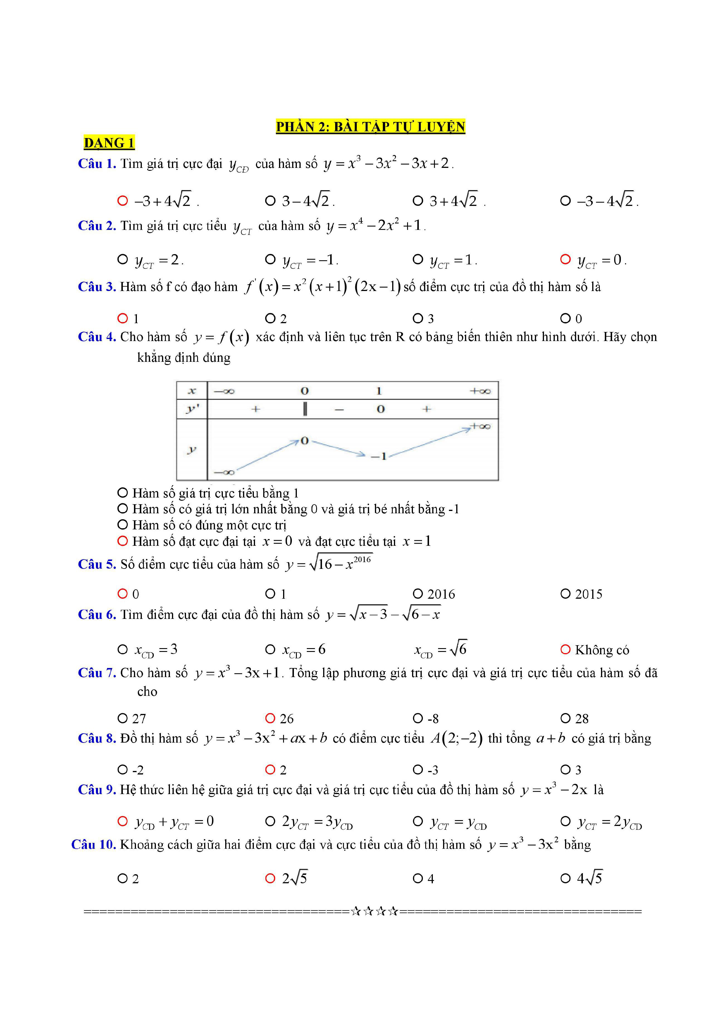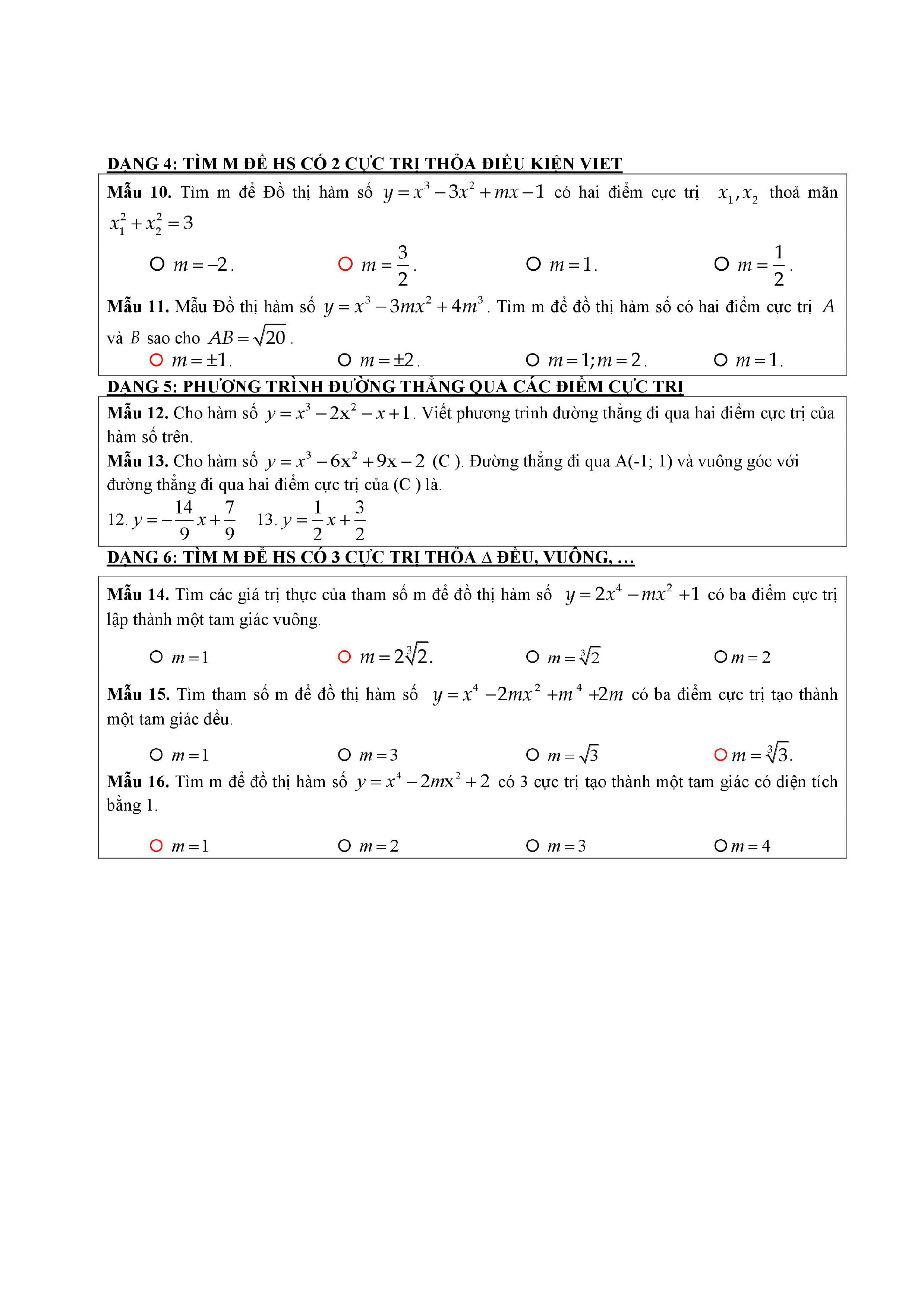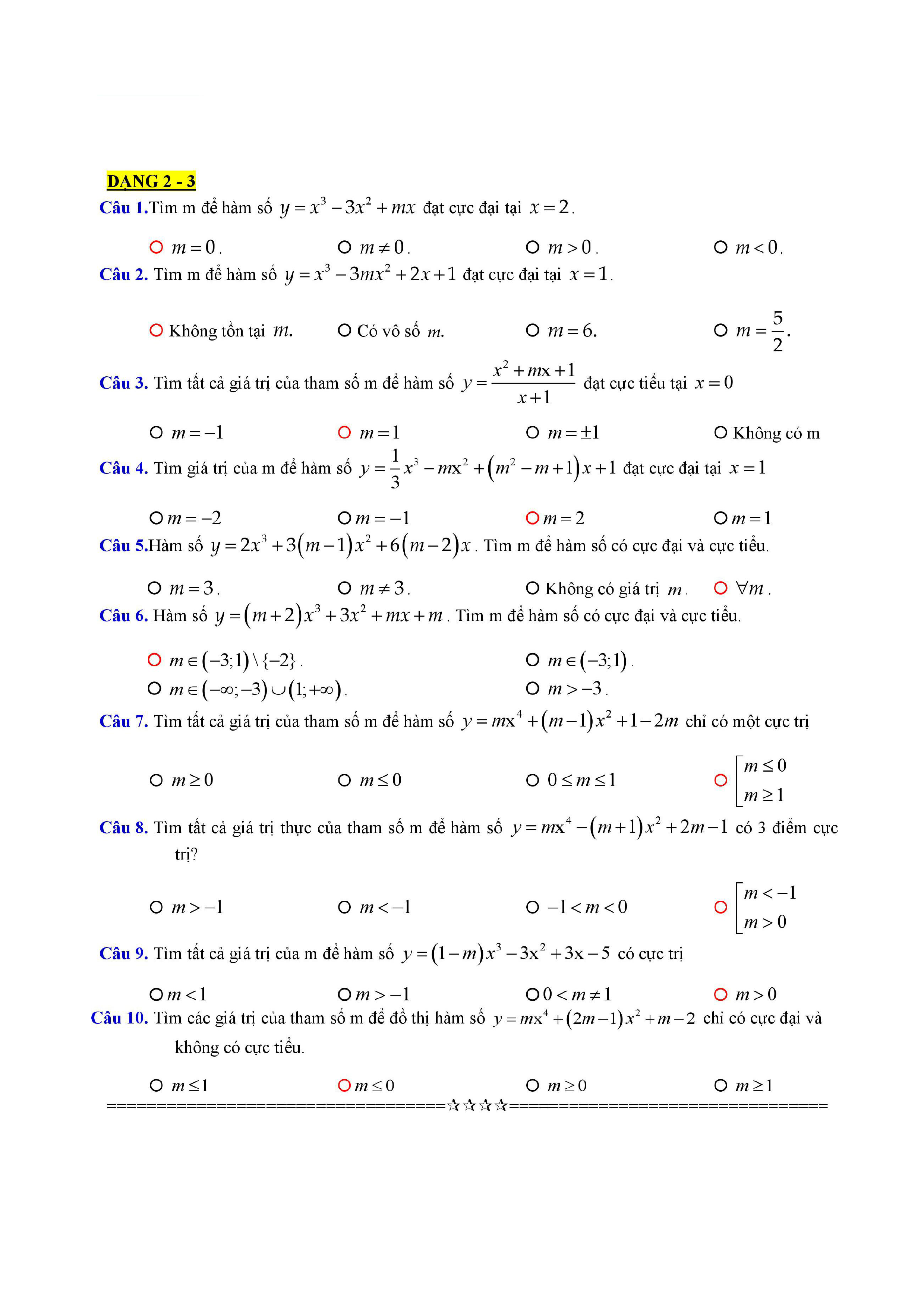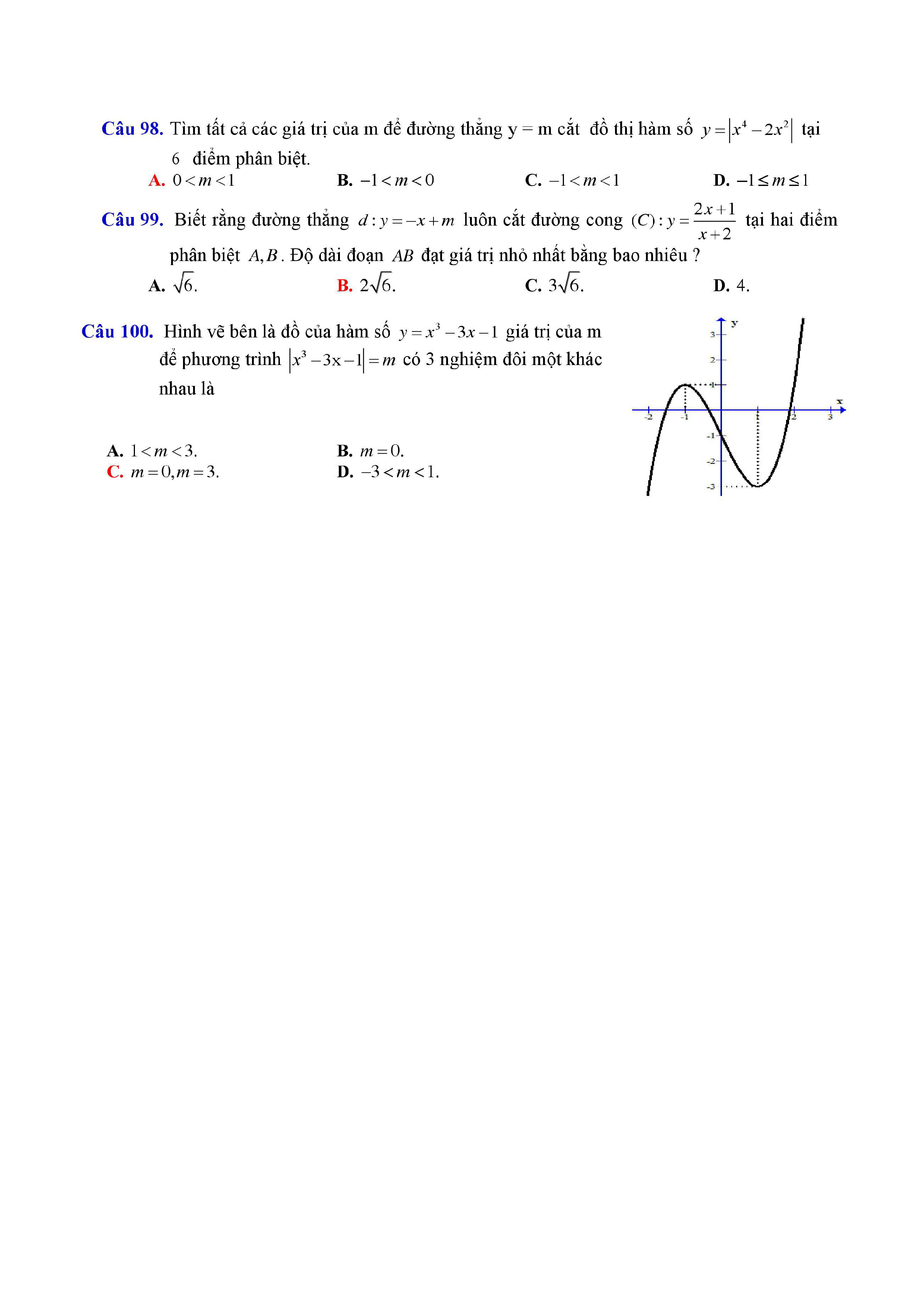 Phân dạng và bài tập trắc nghiệm chuyên đề Hàm số