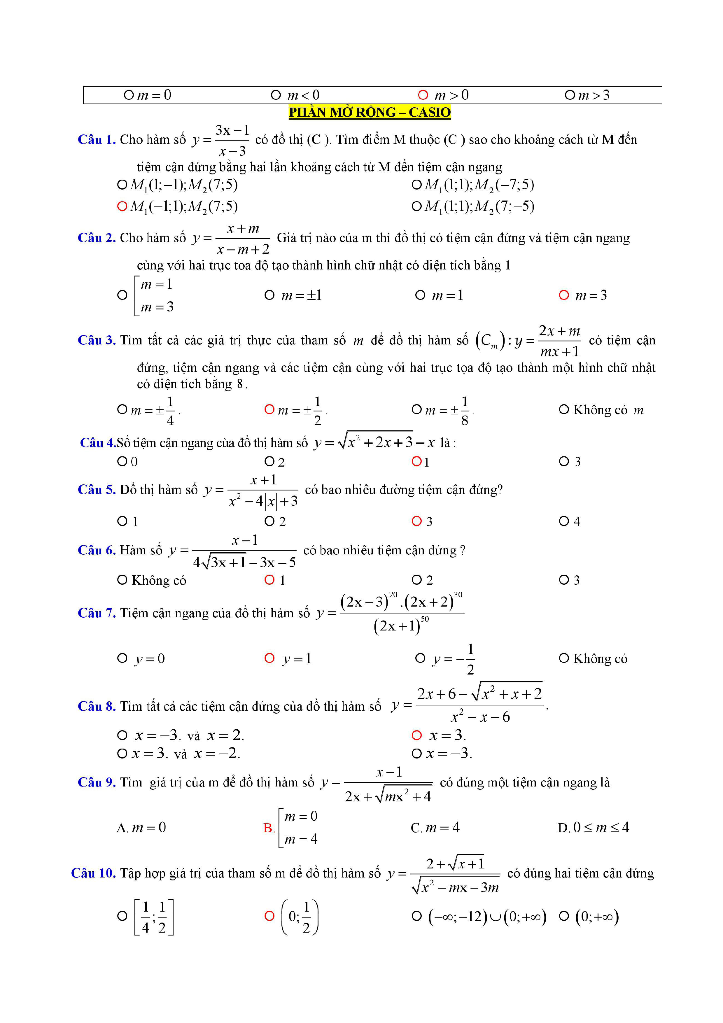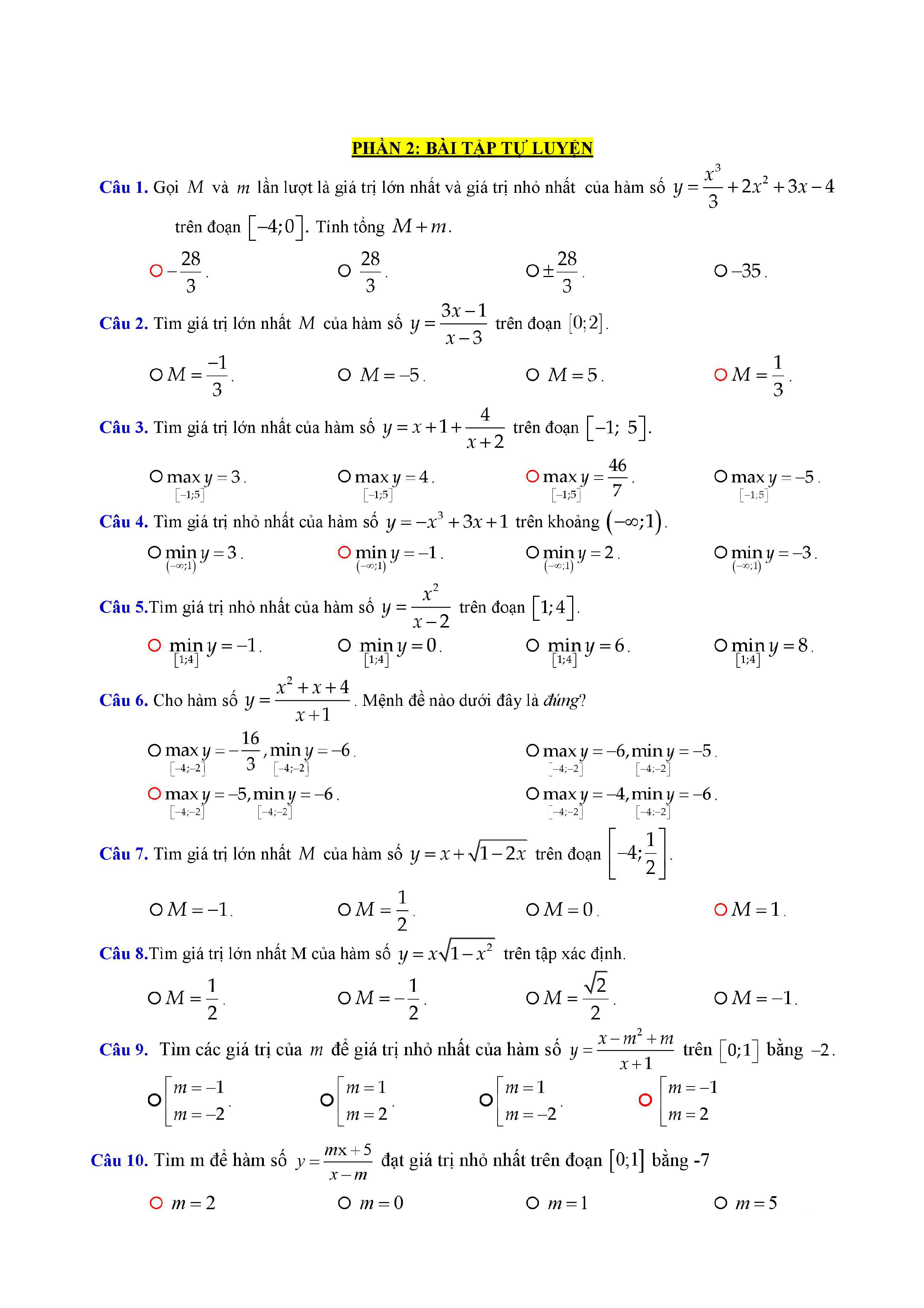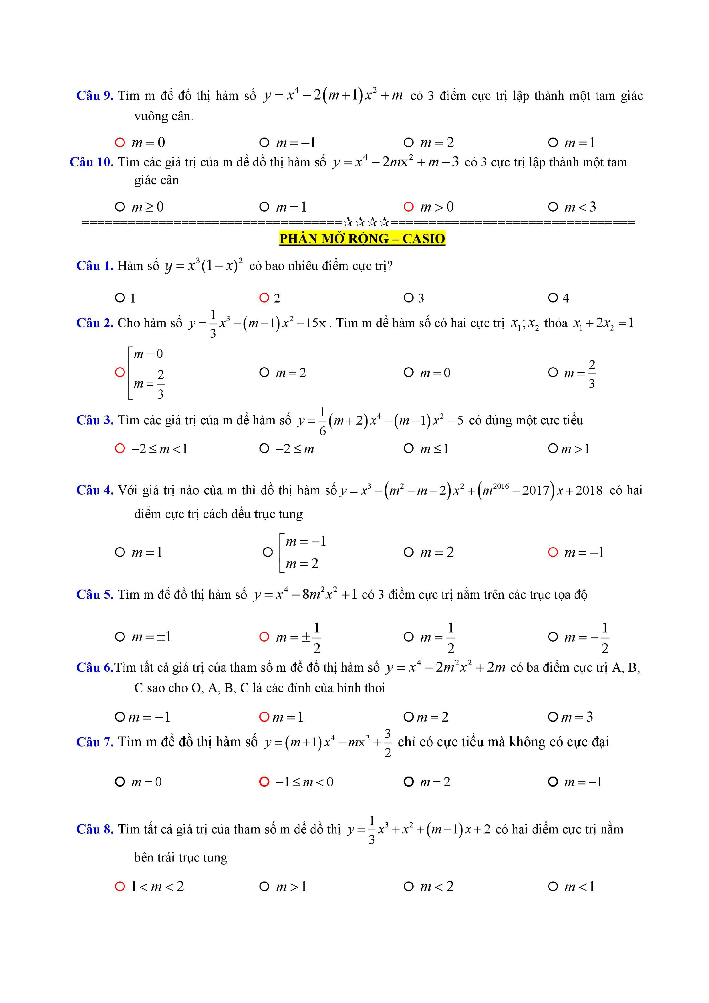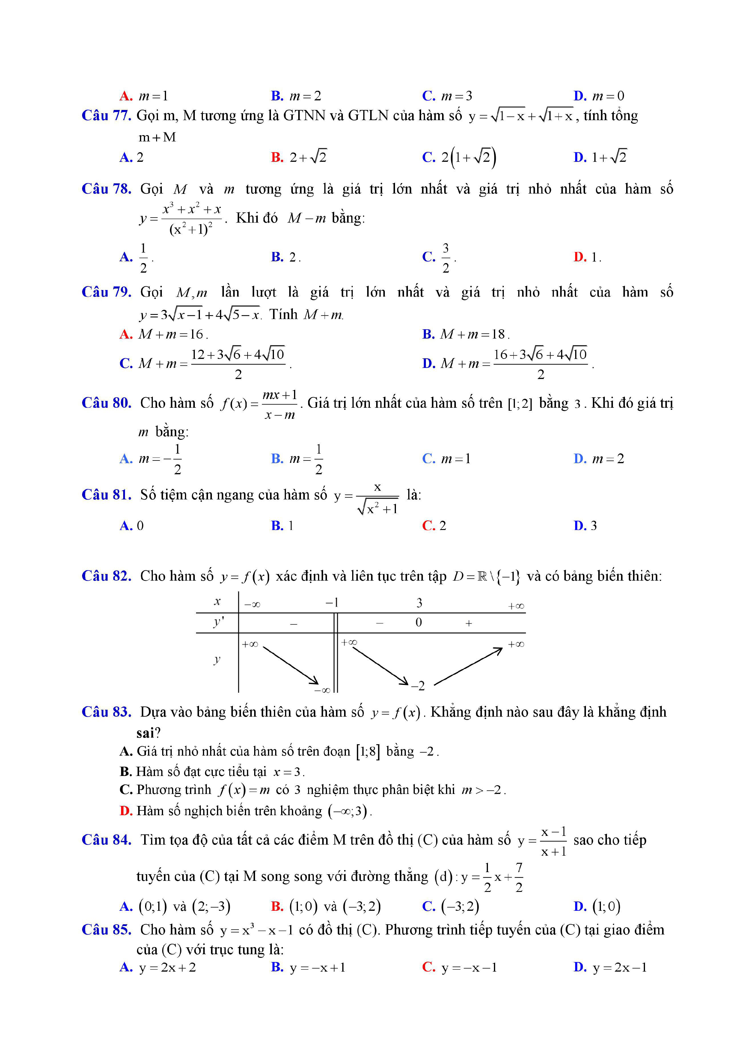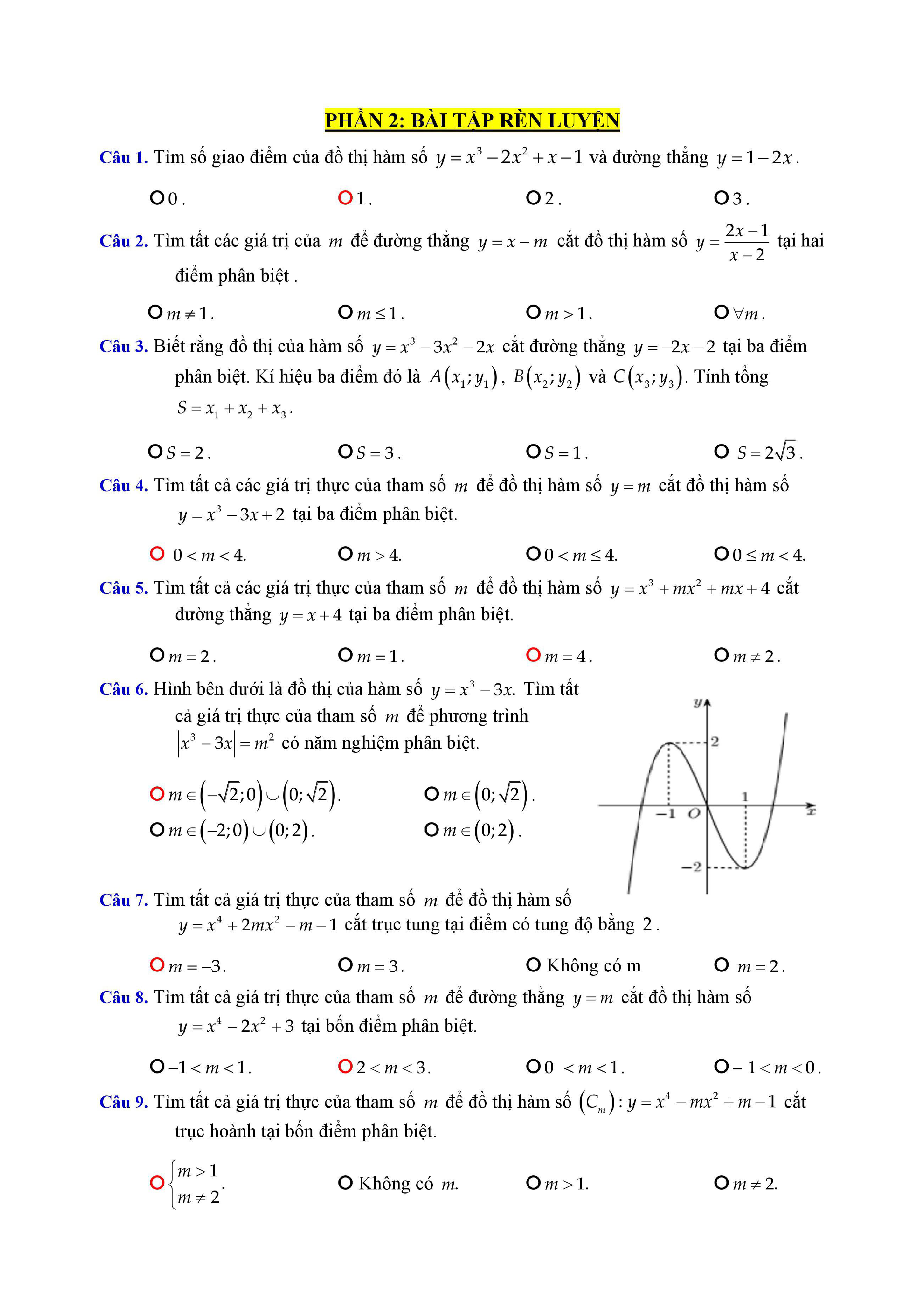 Phân dạng và bài tập trắc nghiệm chuyên đề Hàm số