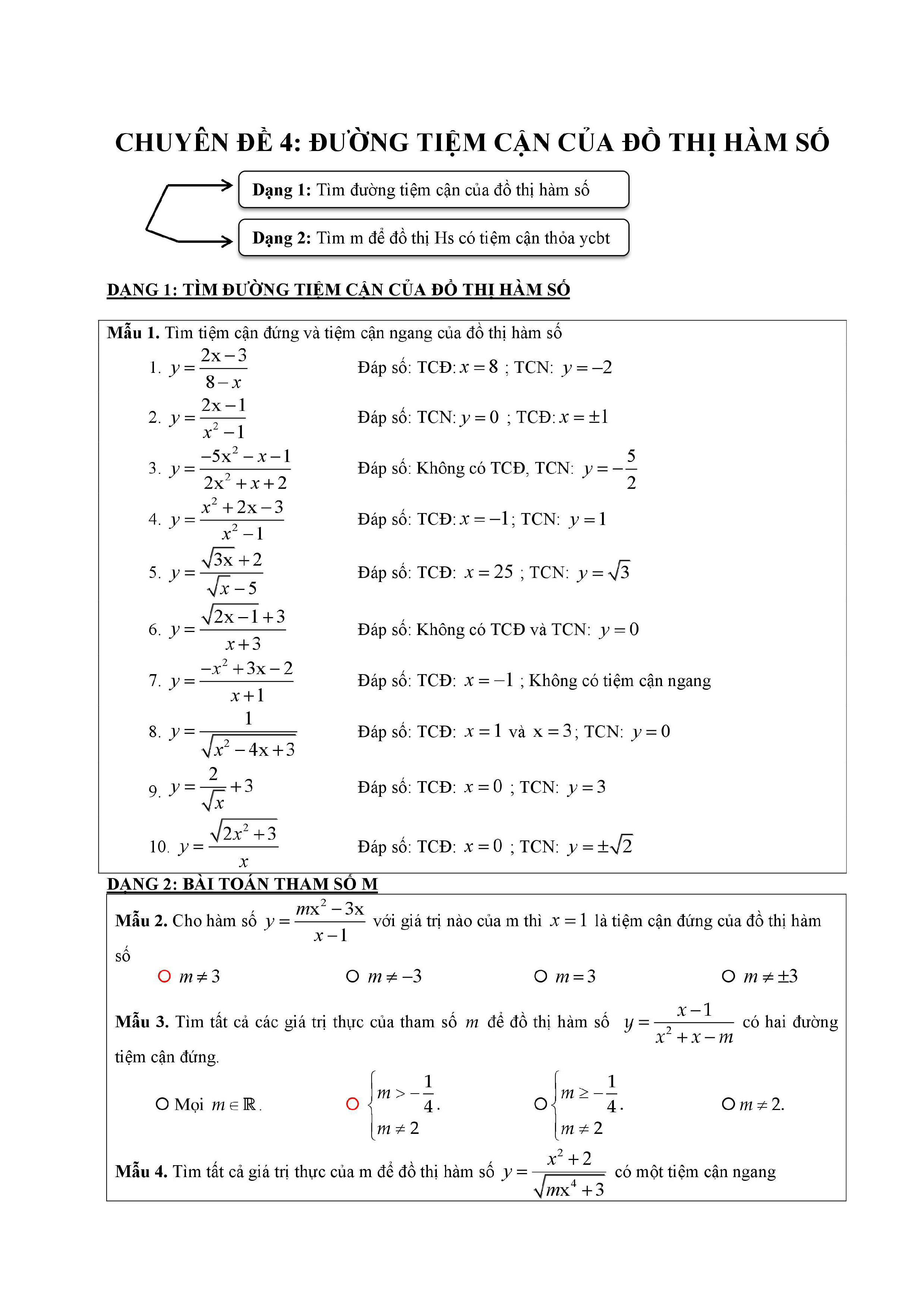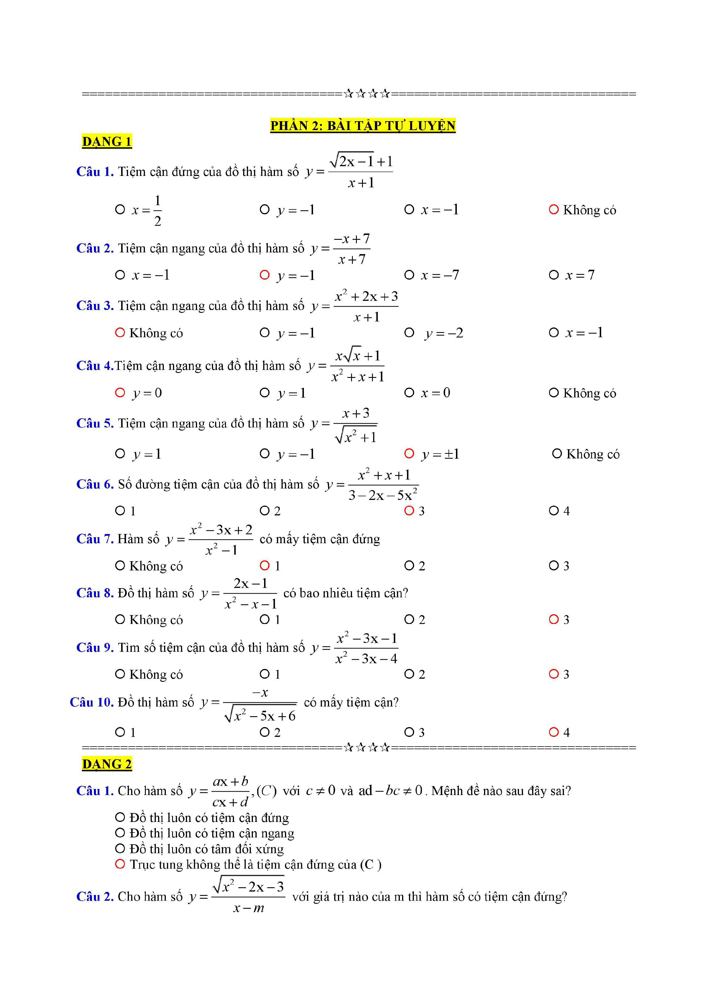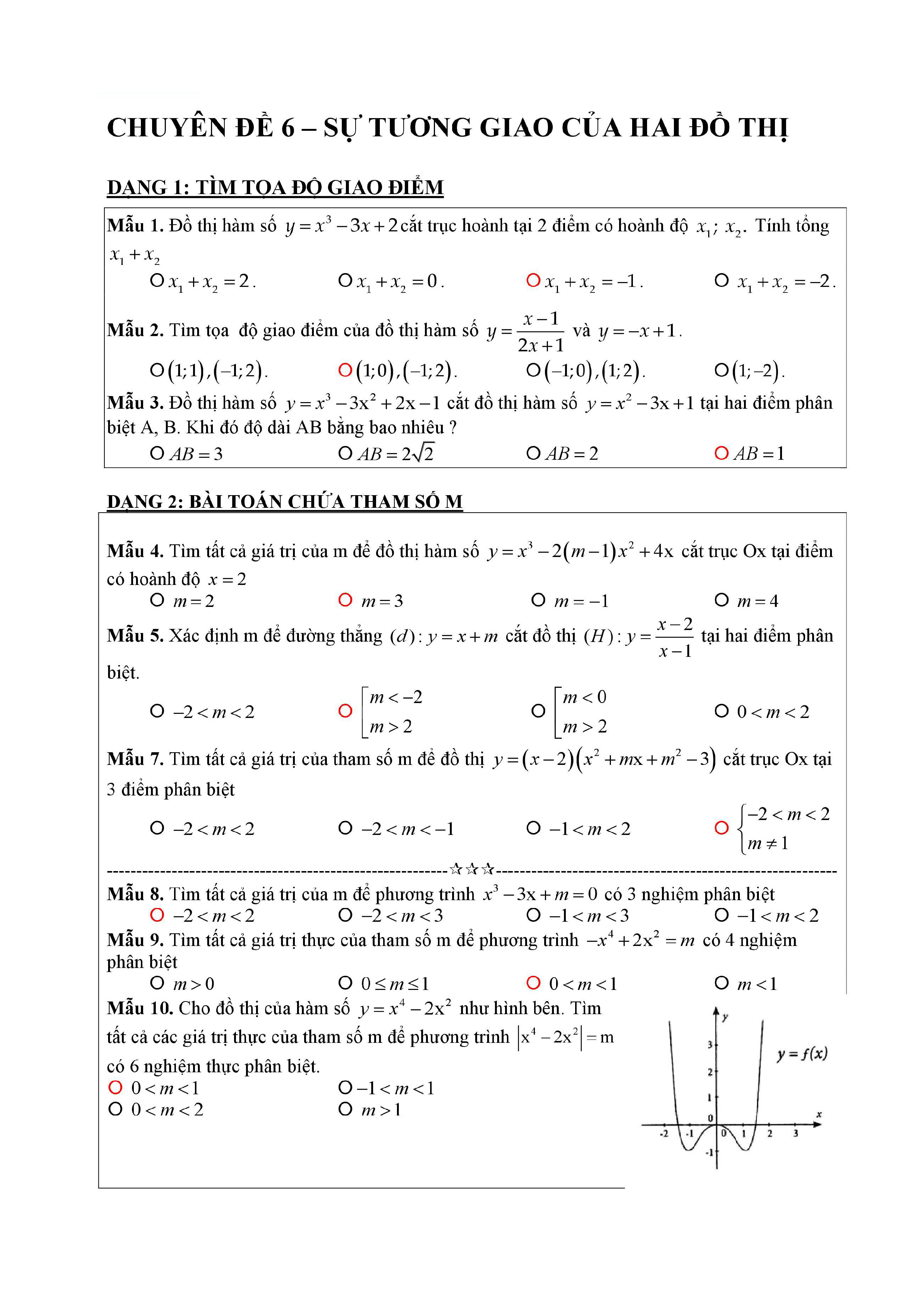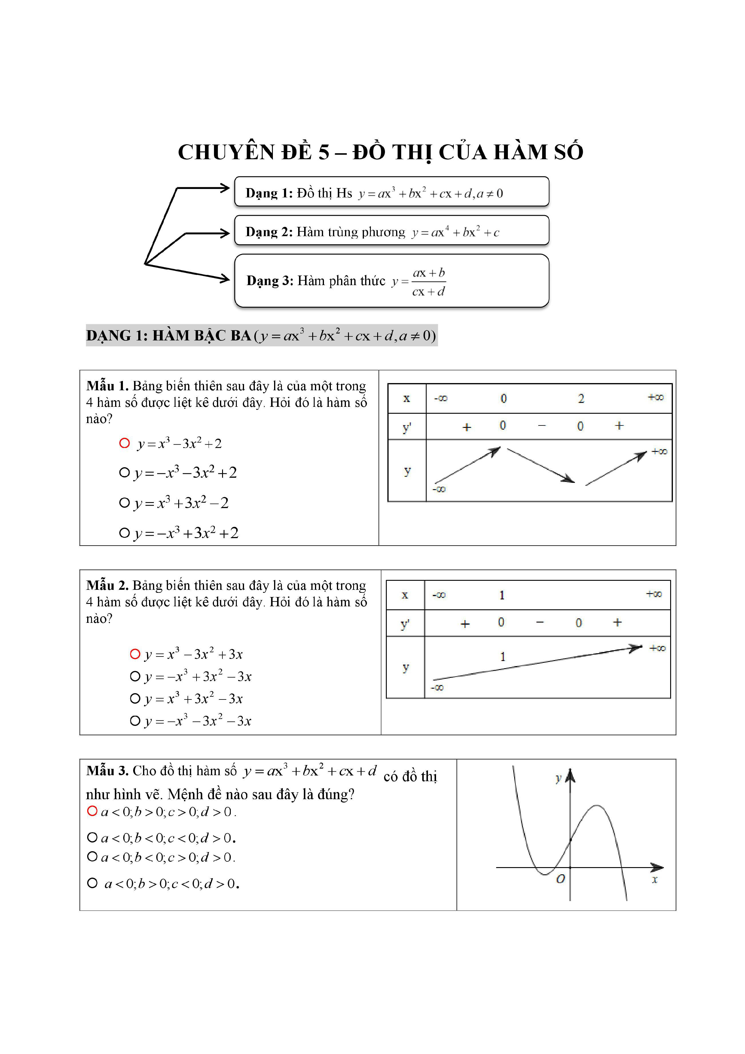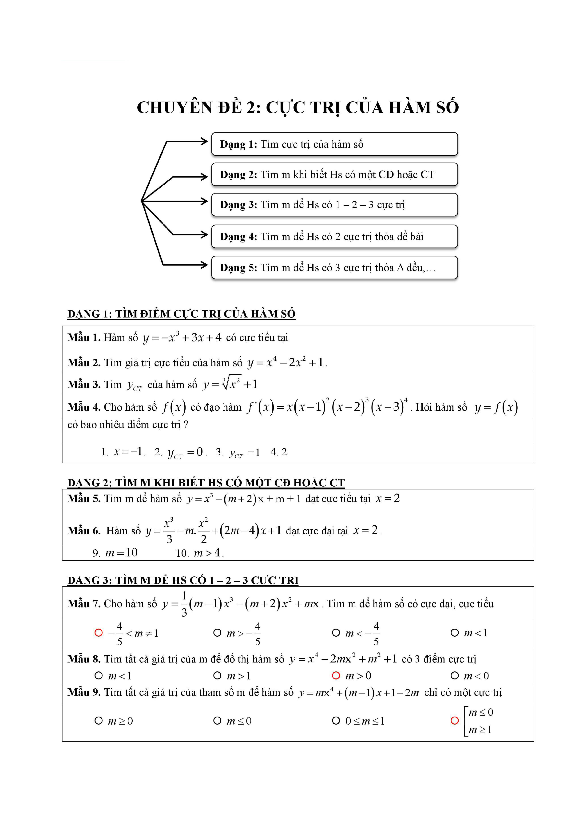 PHÂN DẠNG VÀ BÀI TẬP TRẮC NGHIỆM CHUYÊN ĐỀ HÀM SỐ