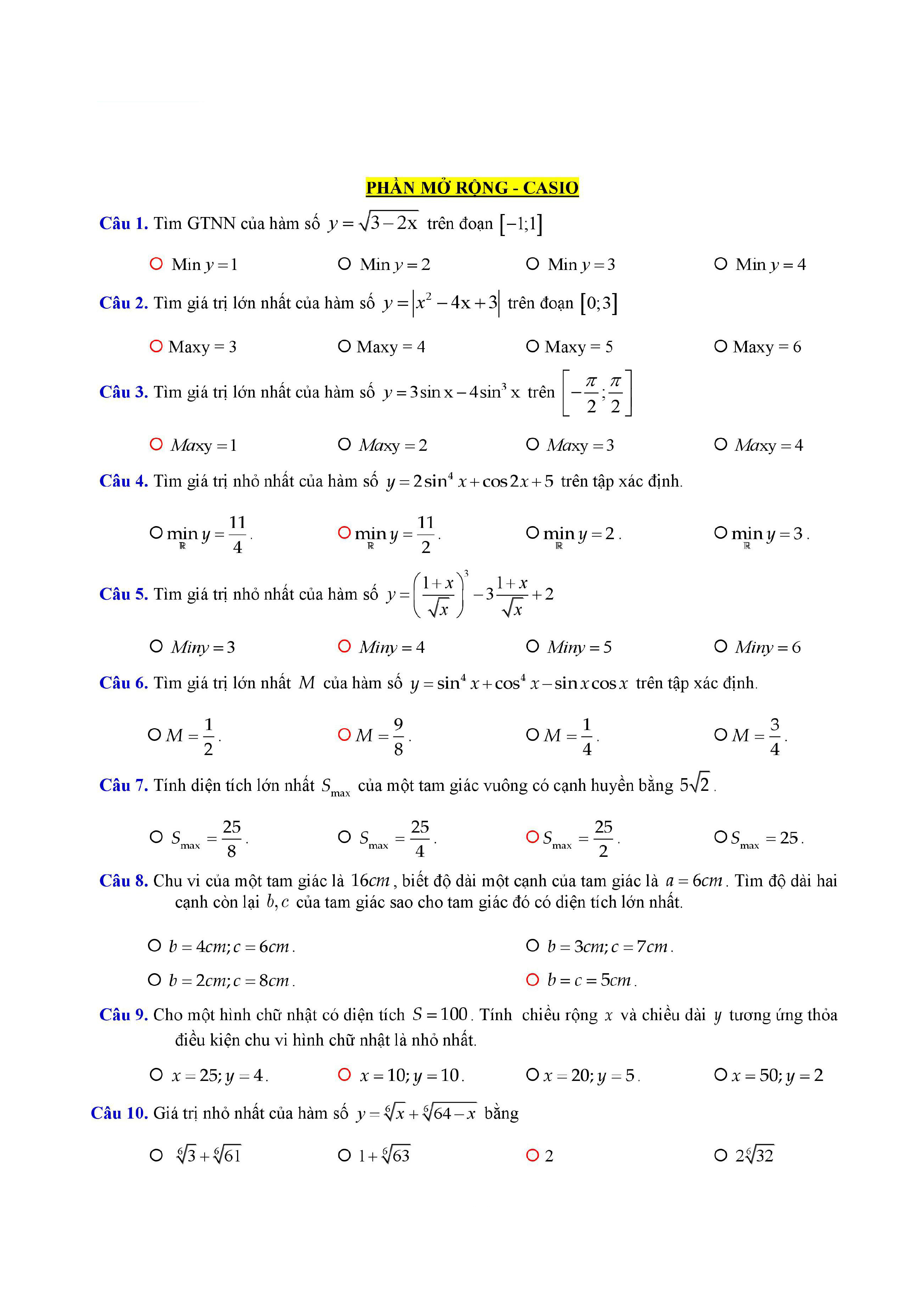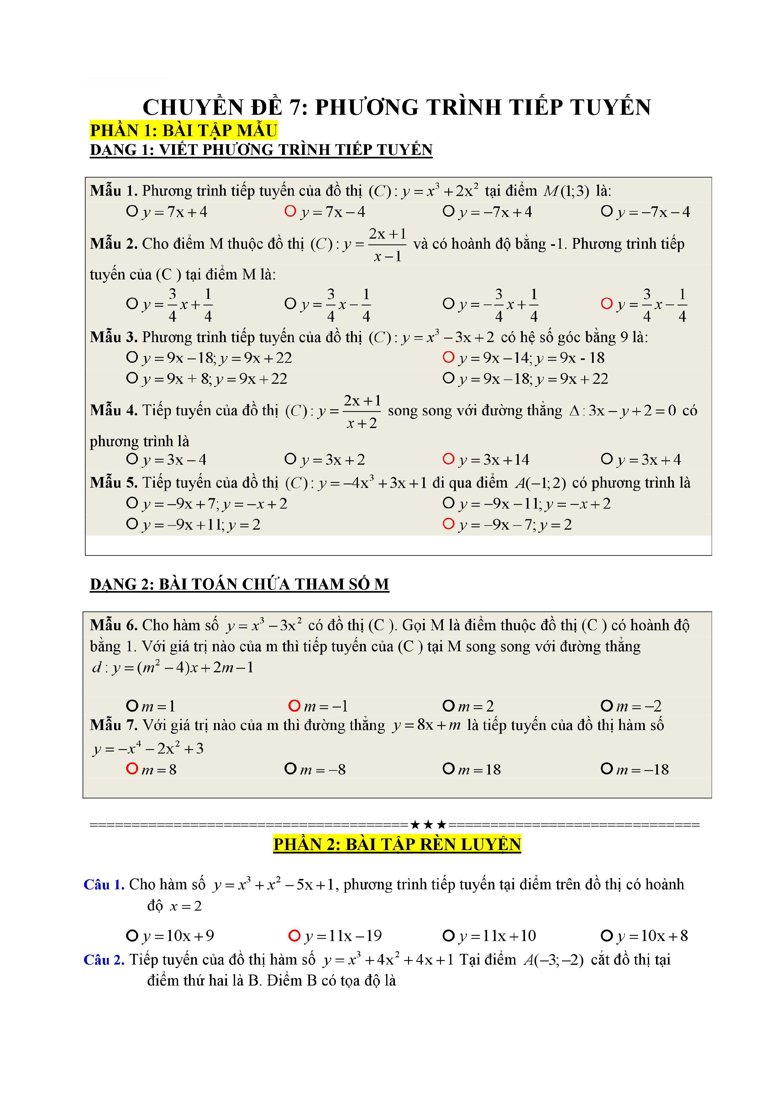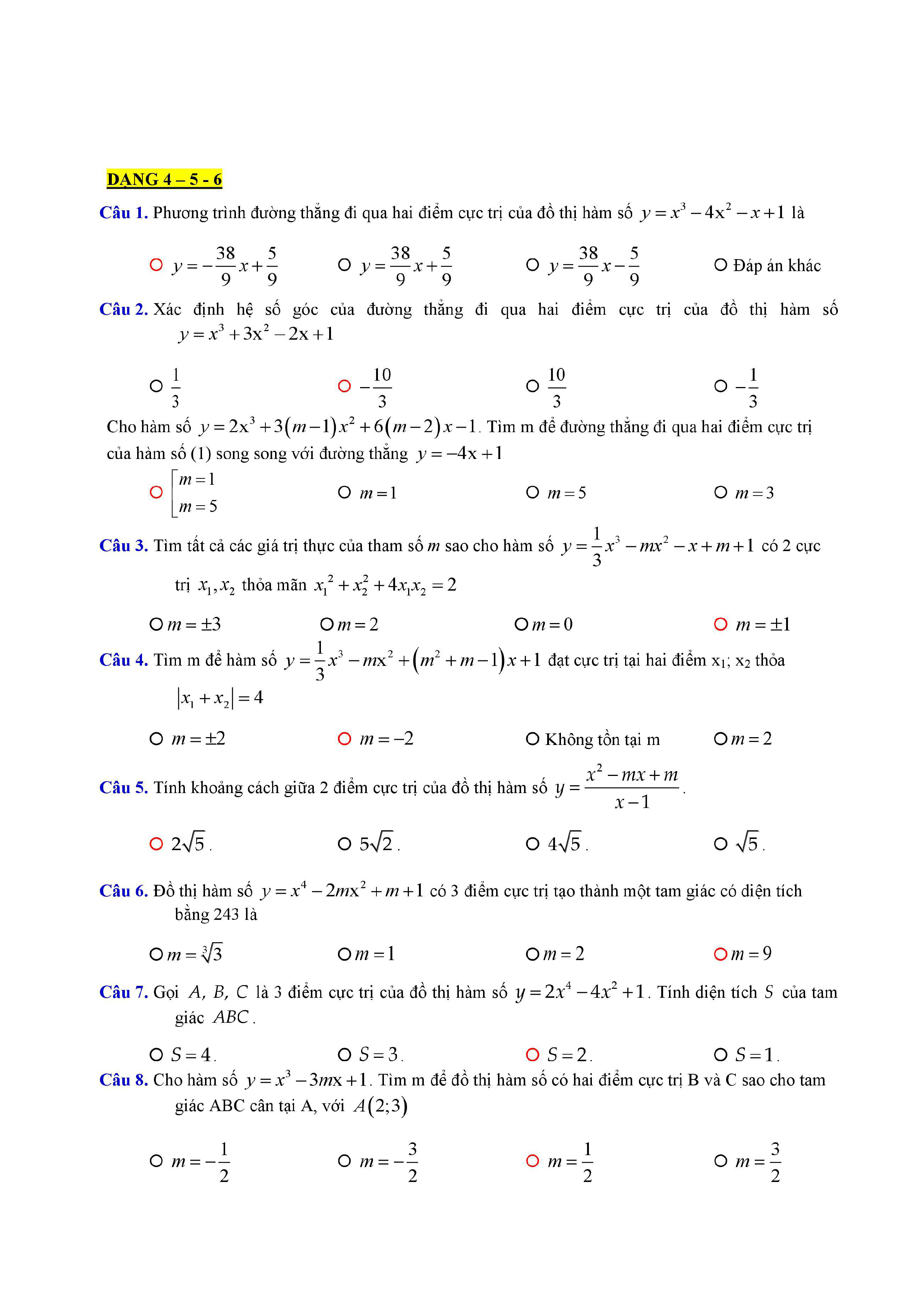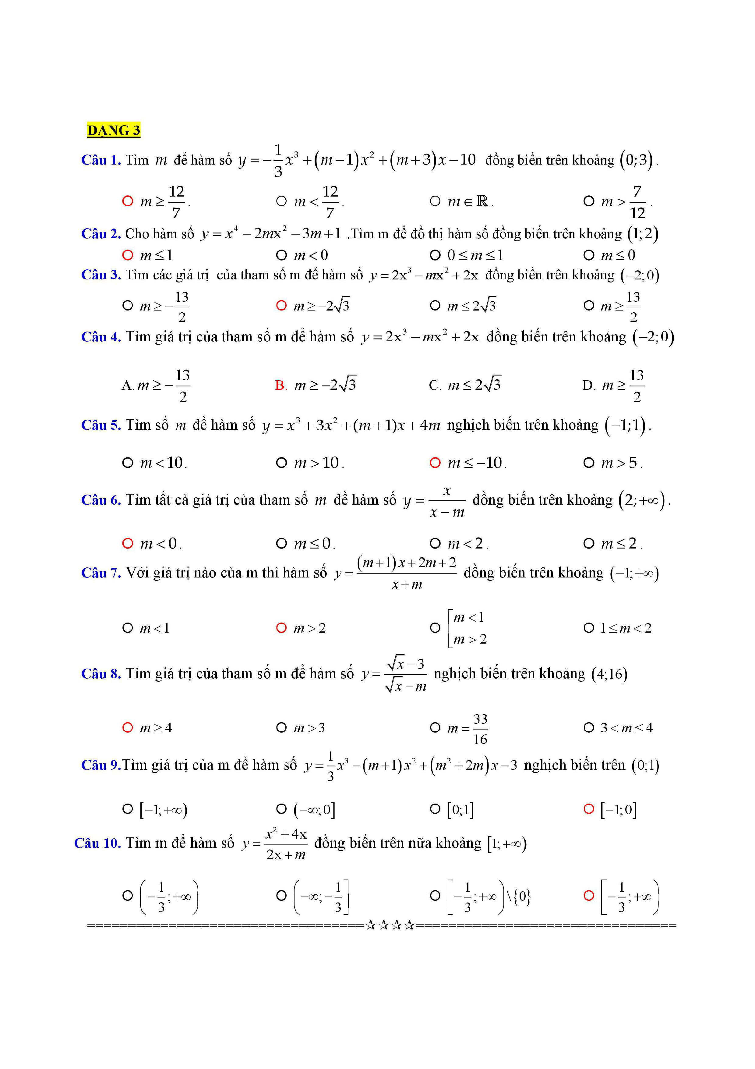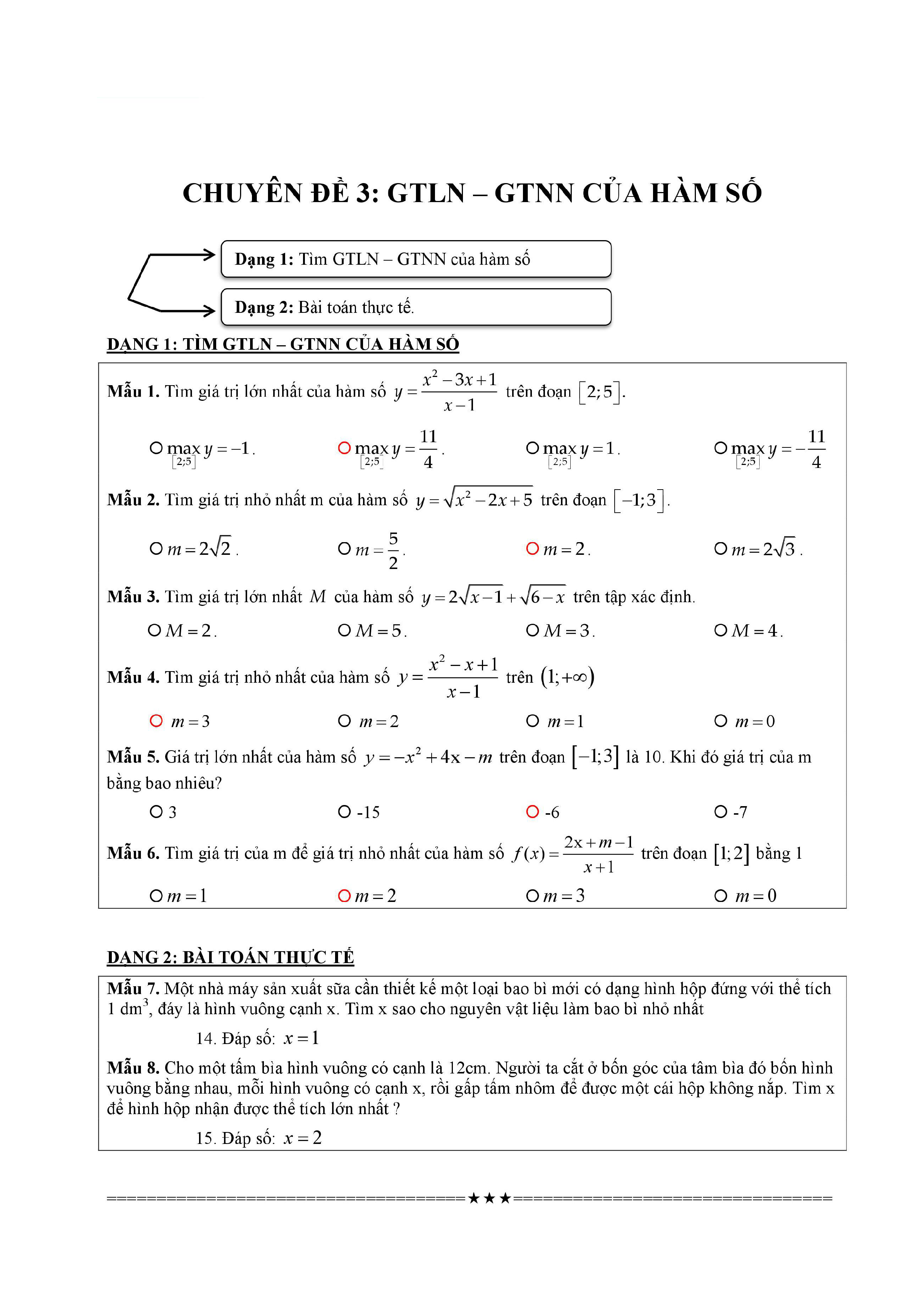 PHÂN DẠNG VÀ BÀI TẬP TRẮC NGHIỆM CHUYÊN ĐỀ HÀM SỐ