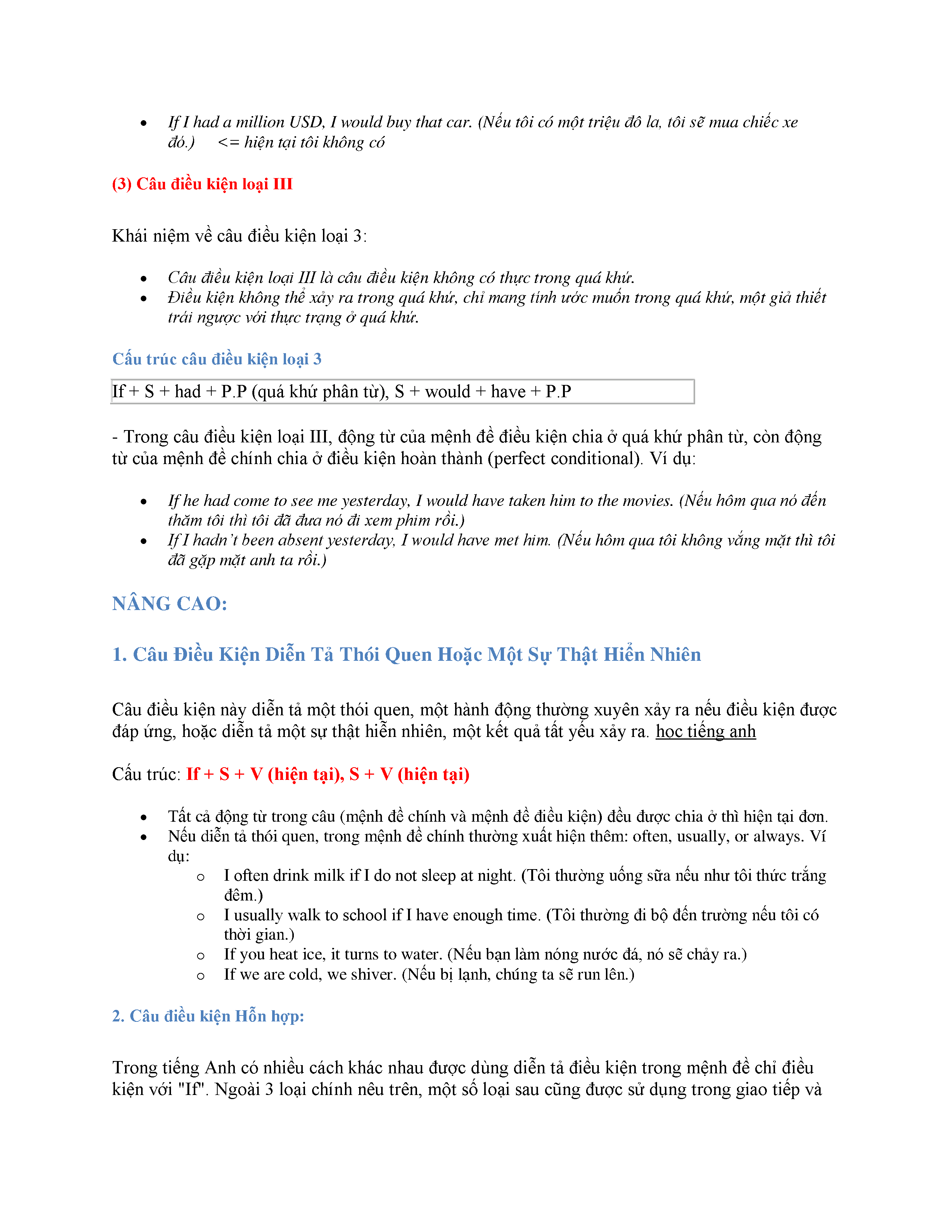 Lý thuyết và bài tập áp dụng về câu điều kiện trong tiếng Anh
