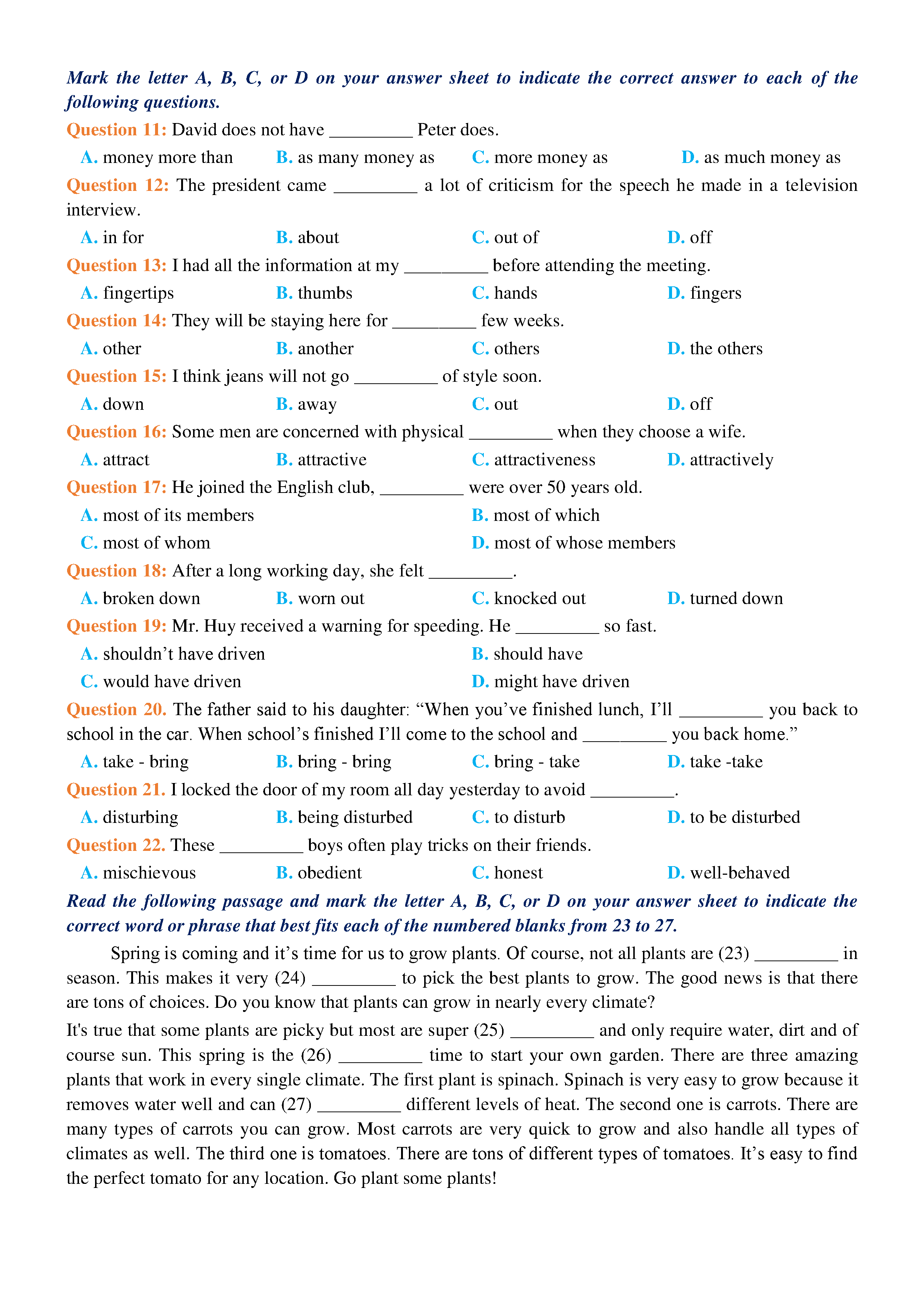 Đề thi tổng duyệt cho kỳ thi THPT quốc gia 2019 môn Tiếng Anh (Đề 1)