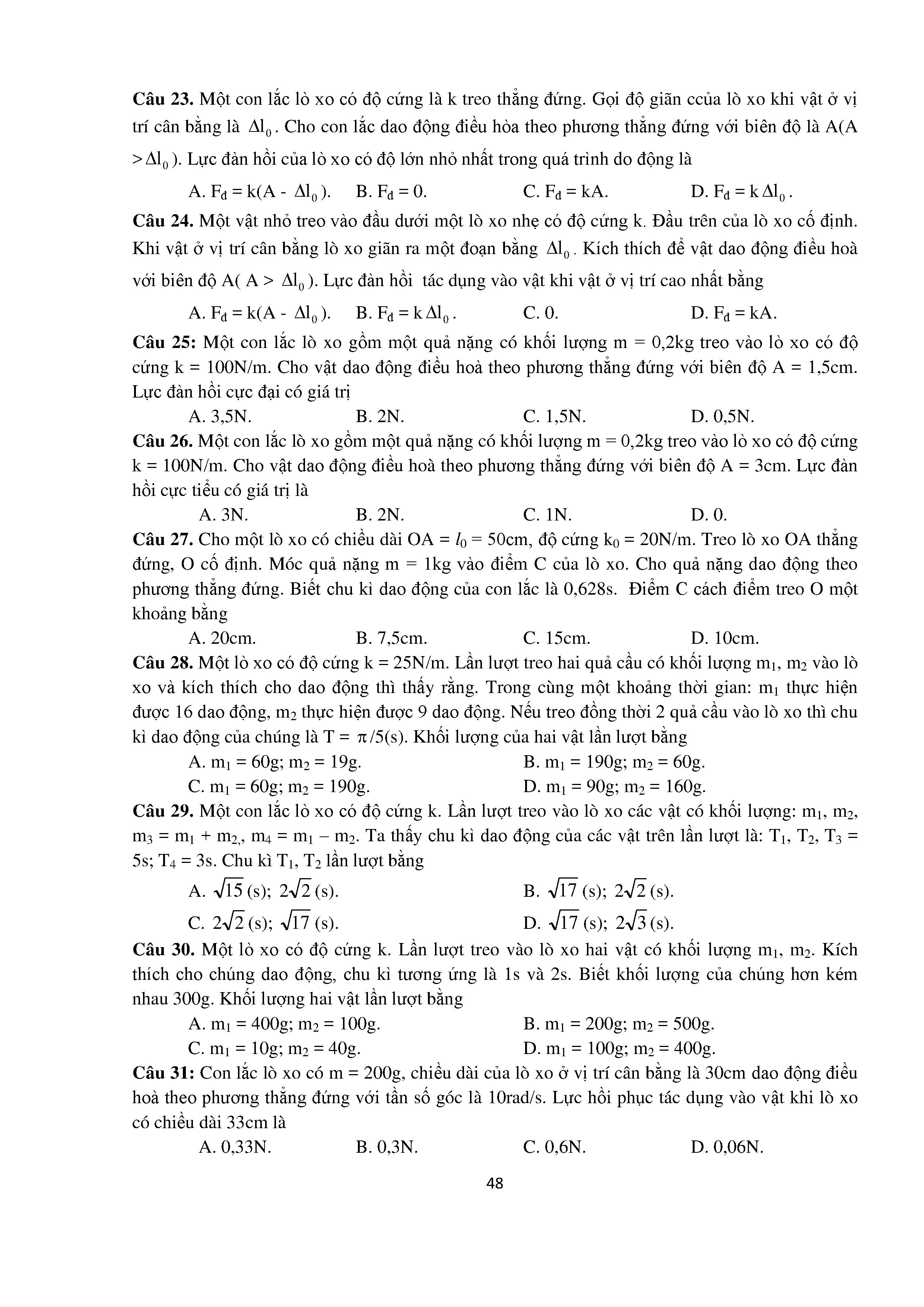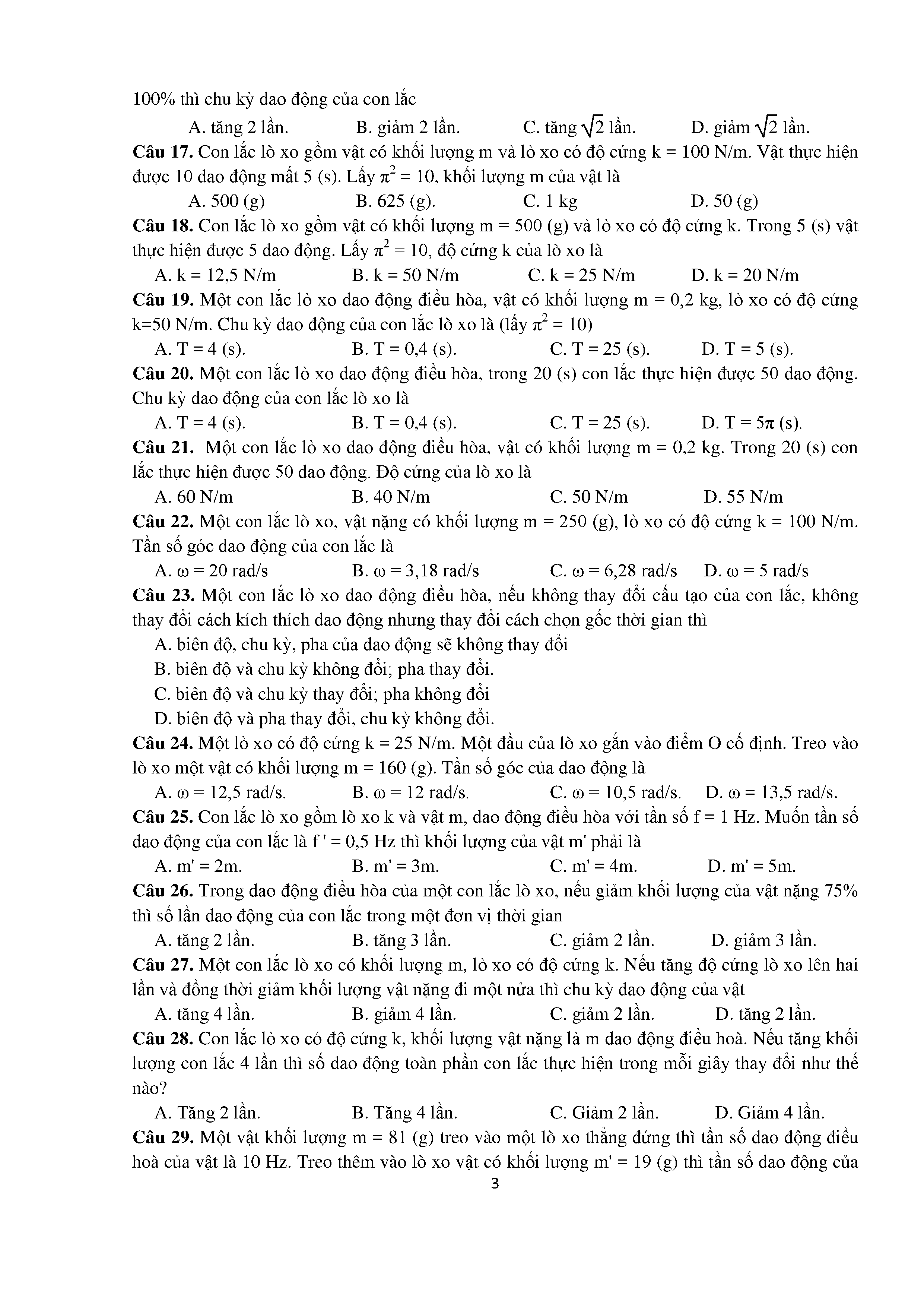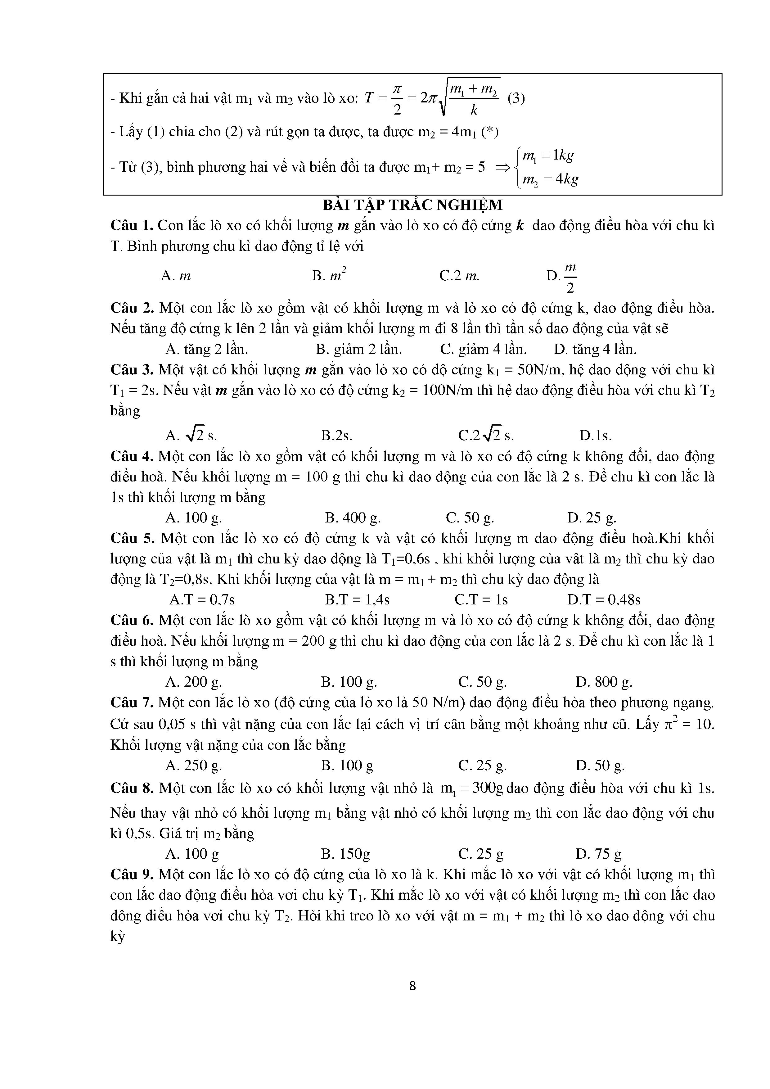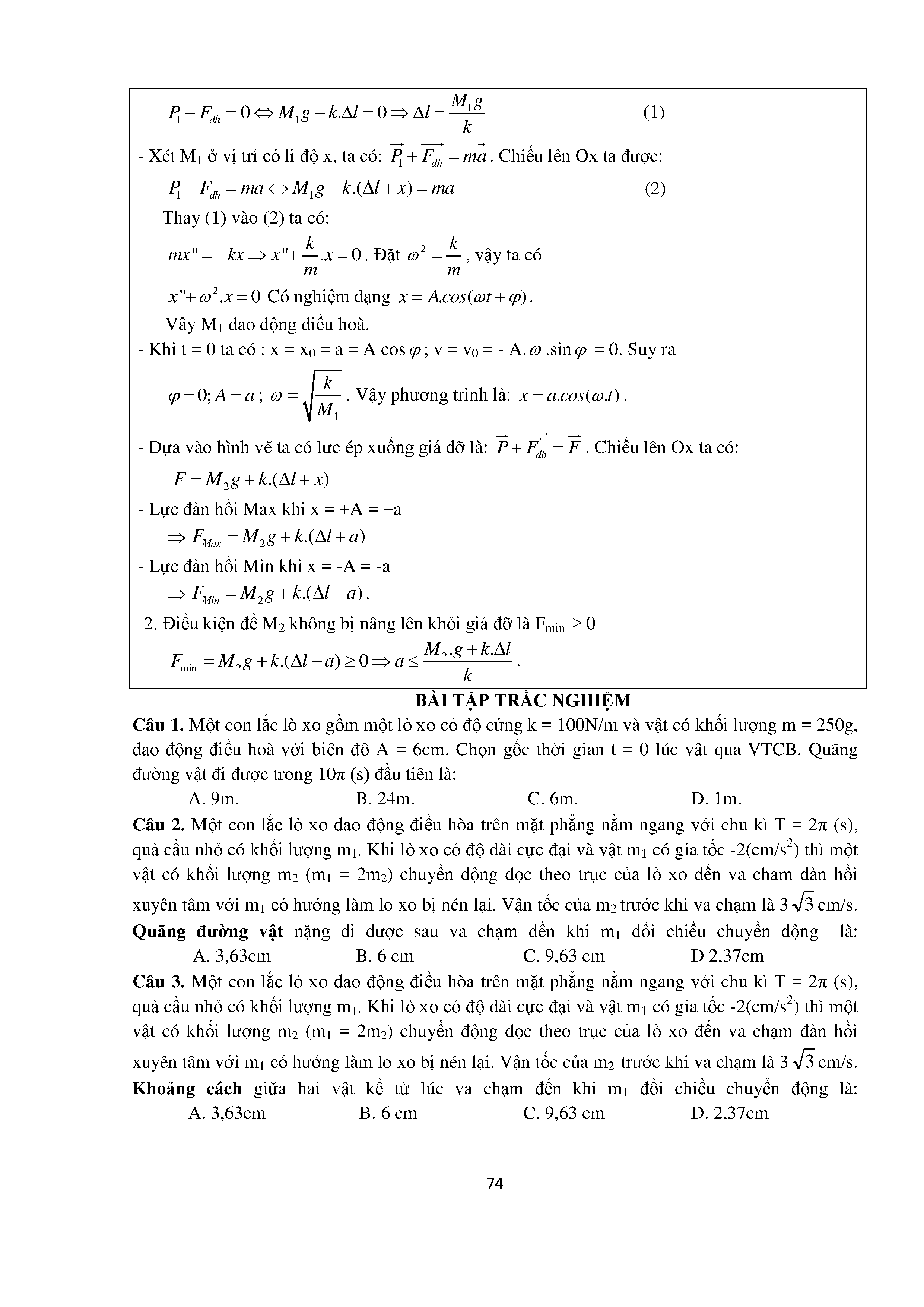 Bài tập trắc nghiệm con lắc lò xo
