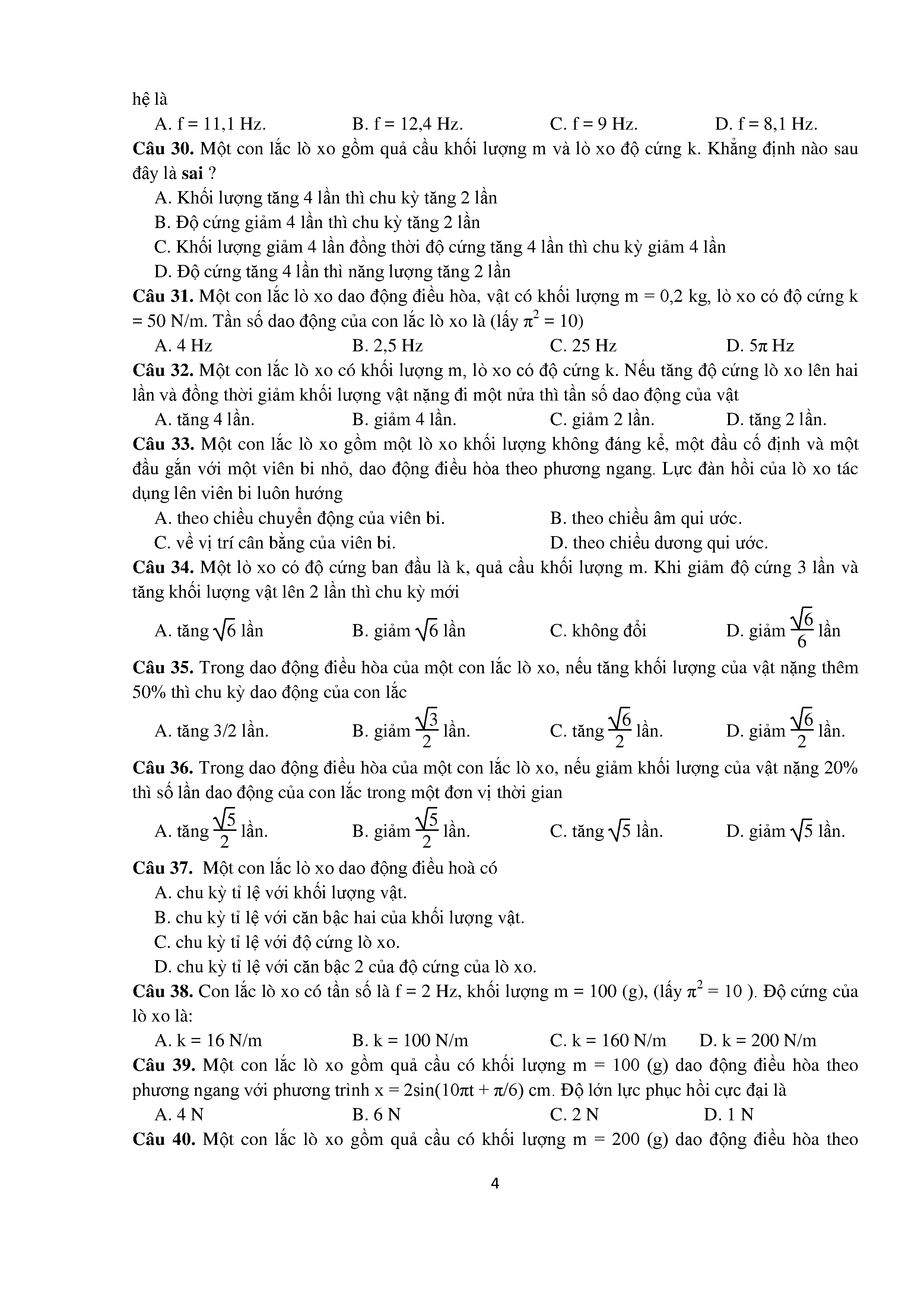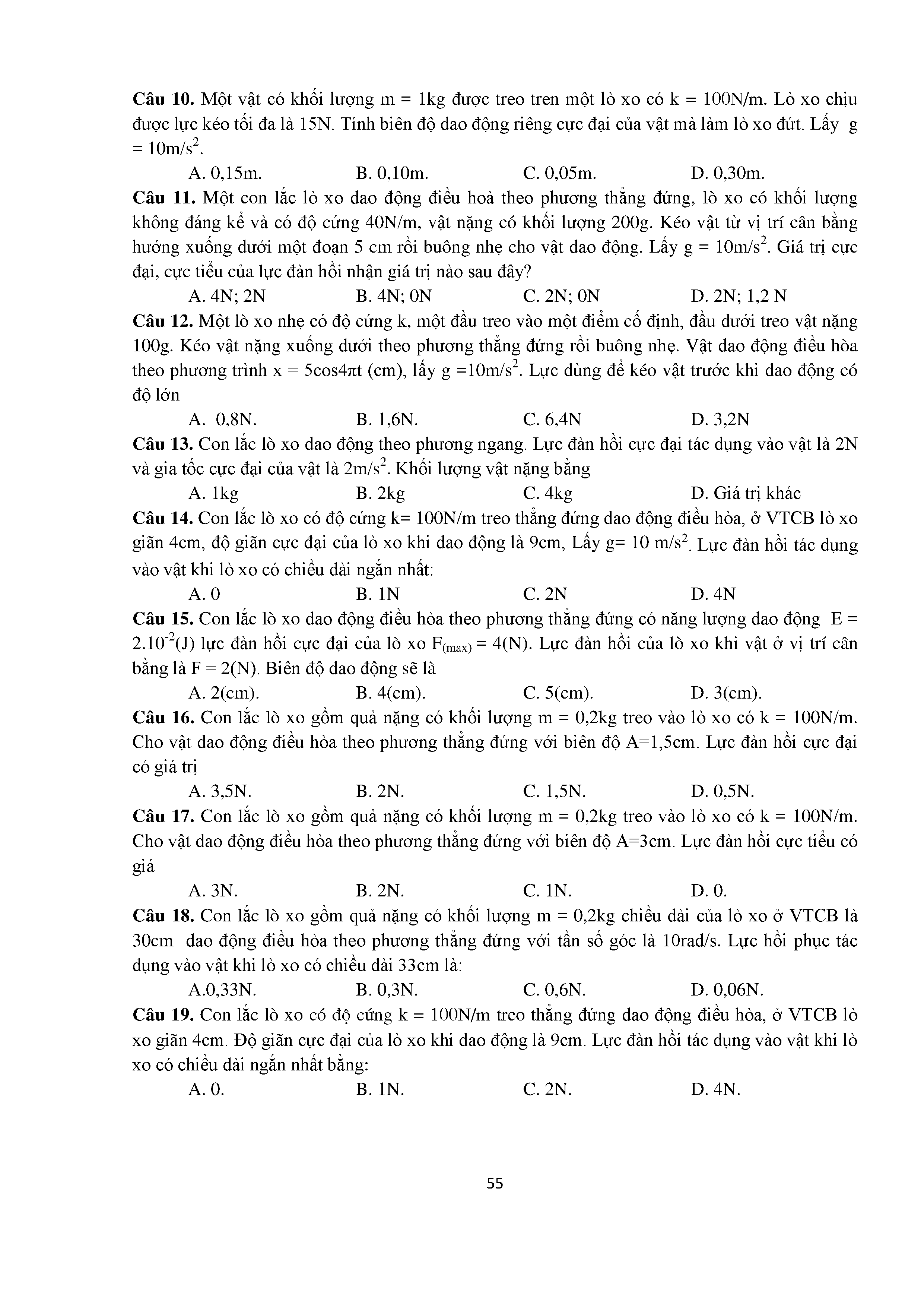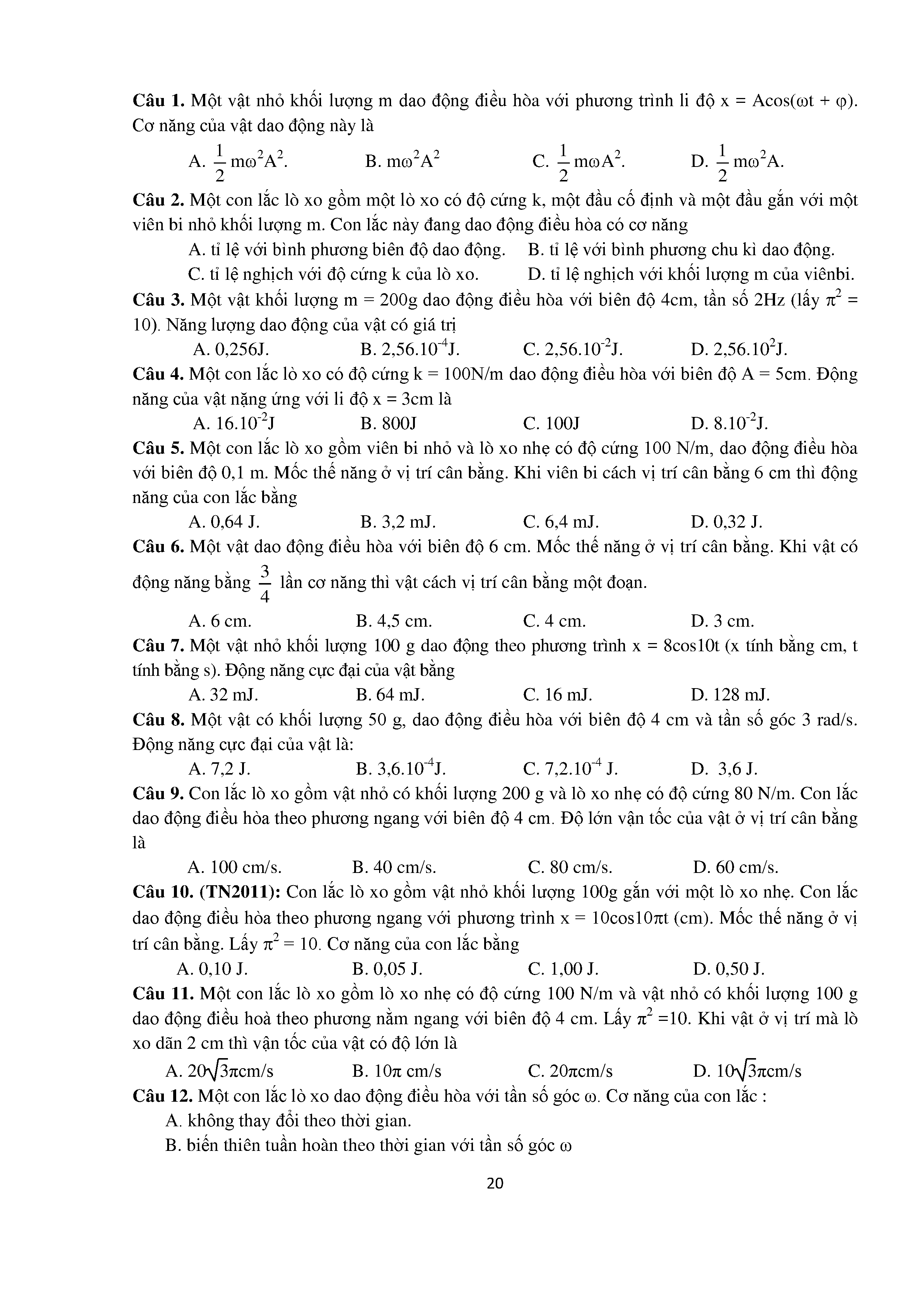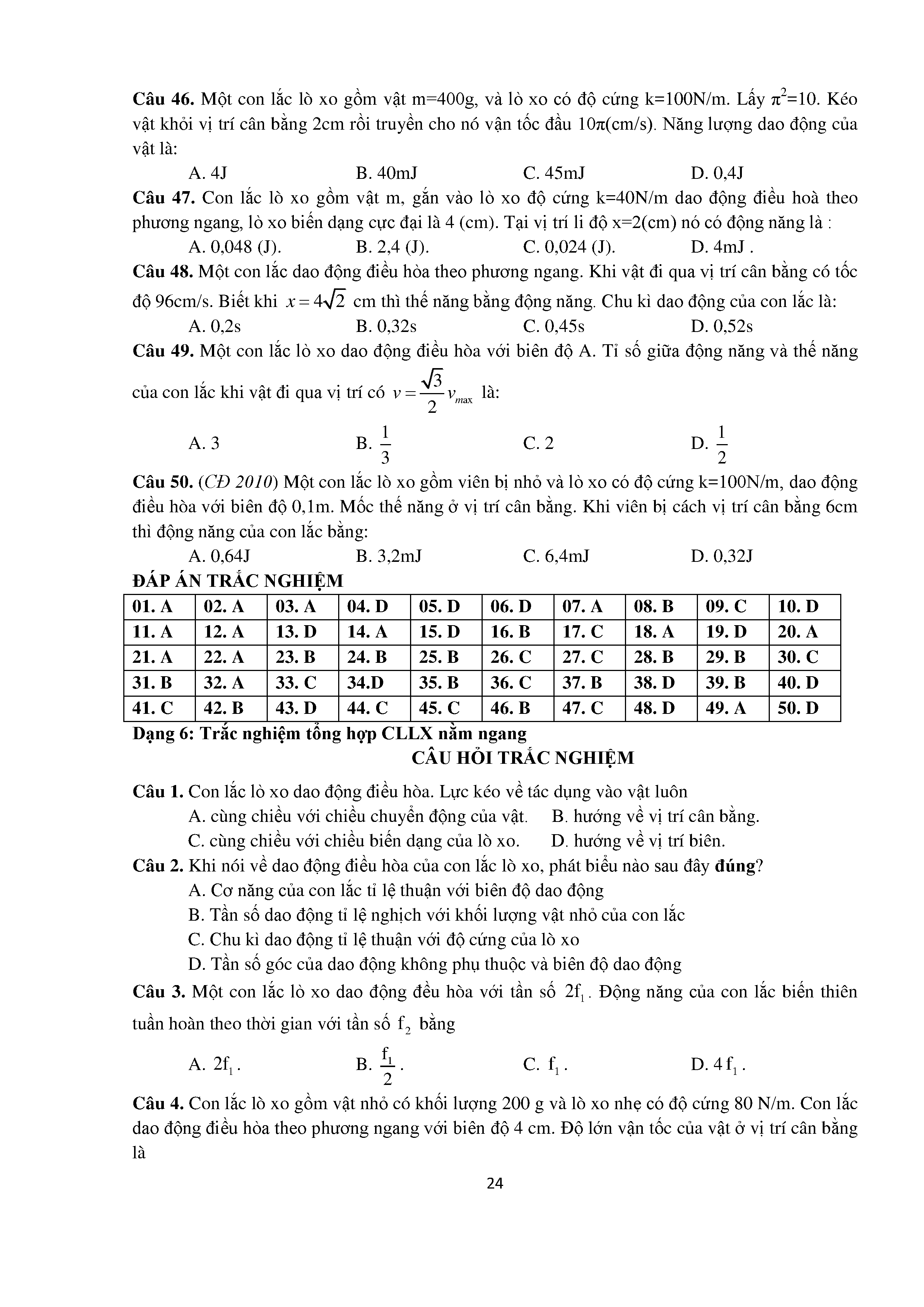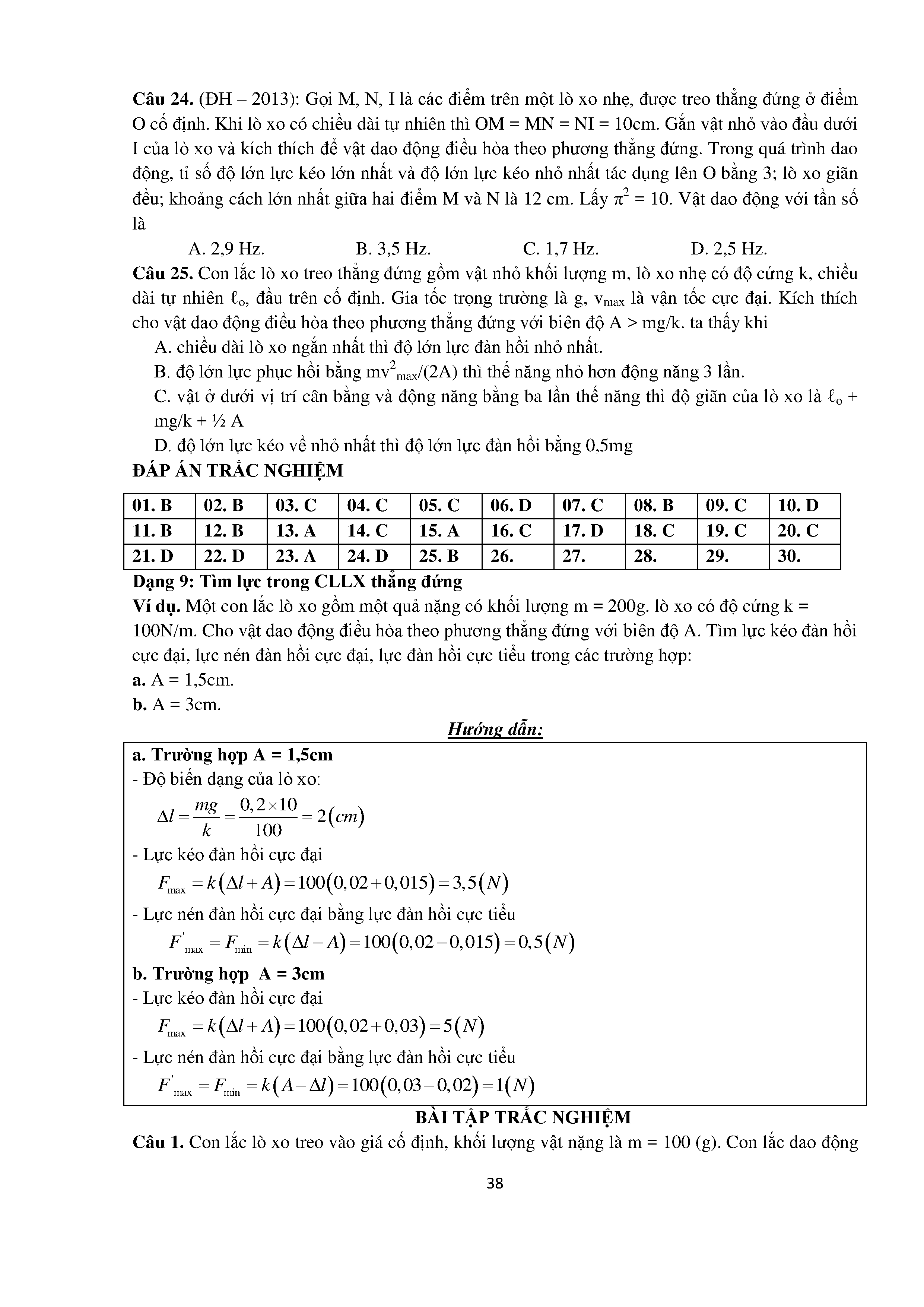 Bài tập trắc nghiệm con lắc lò xo