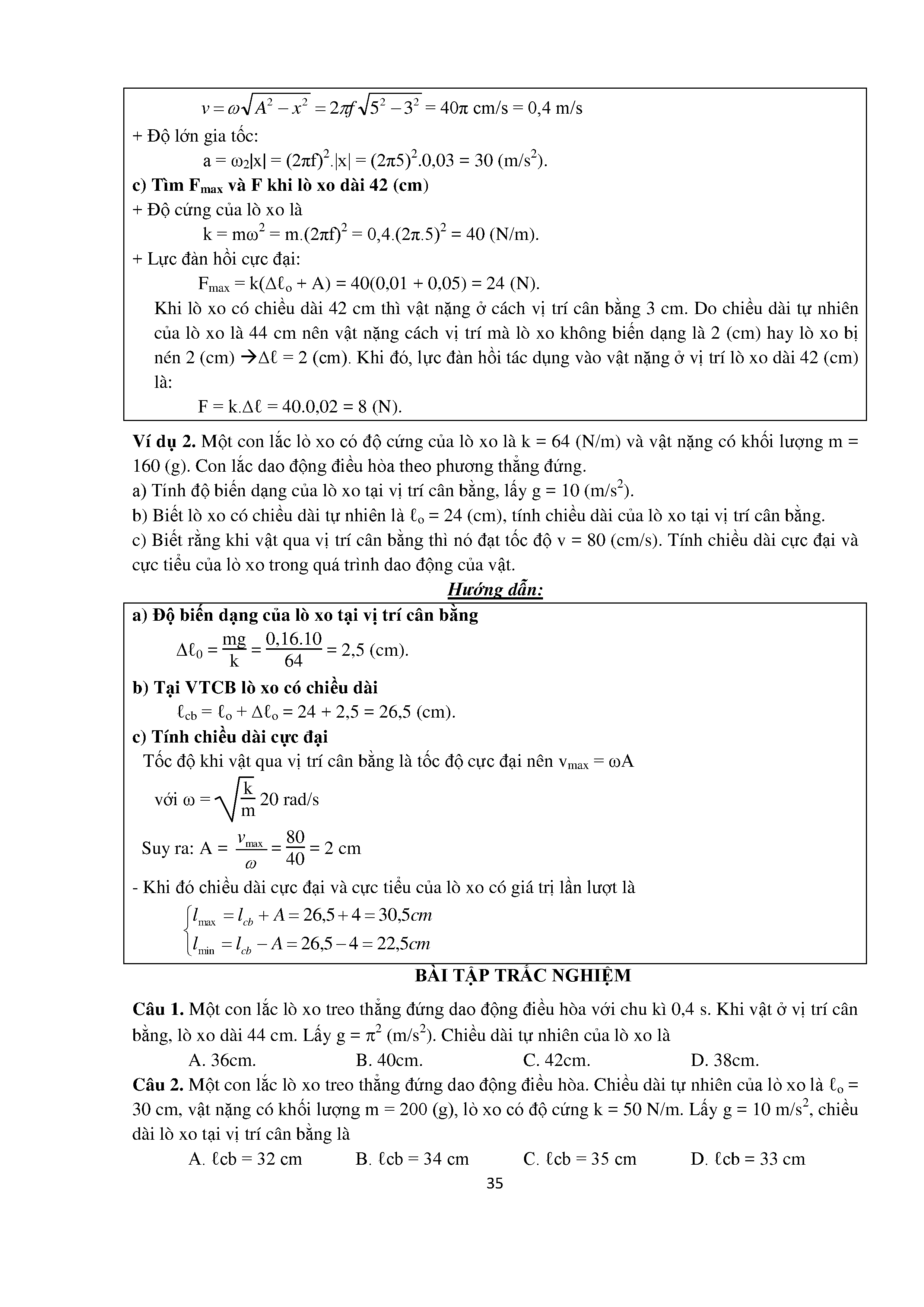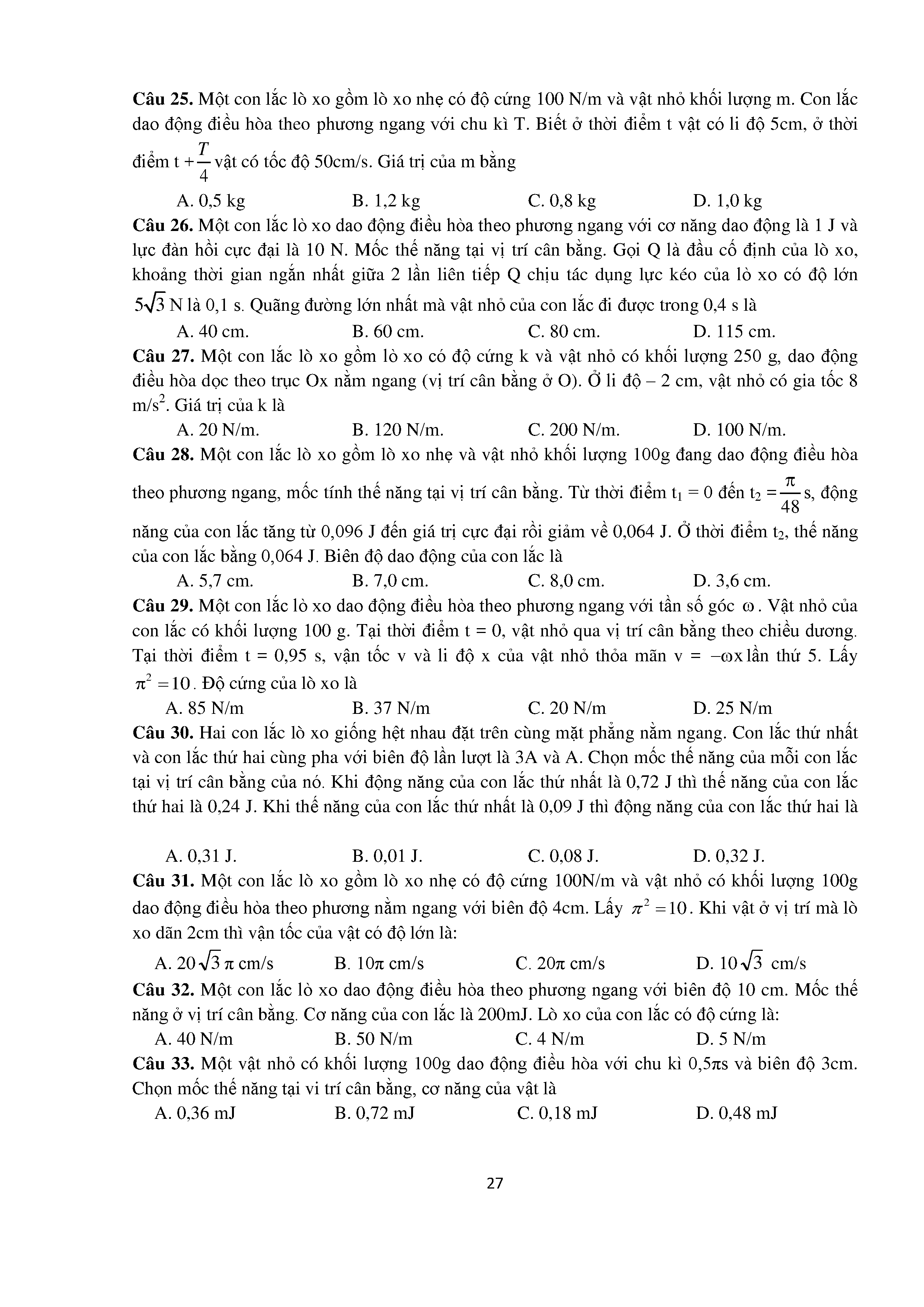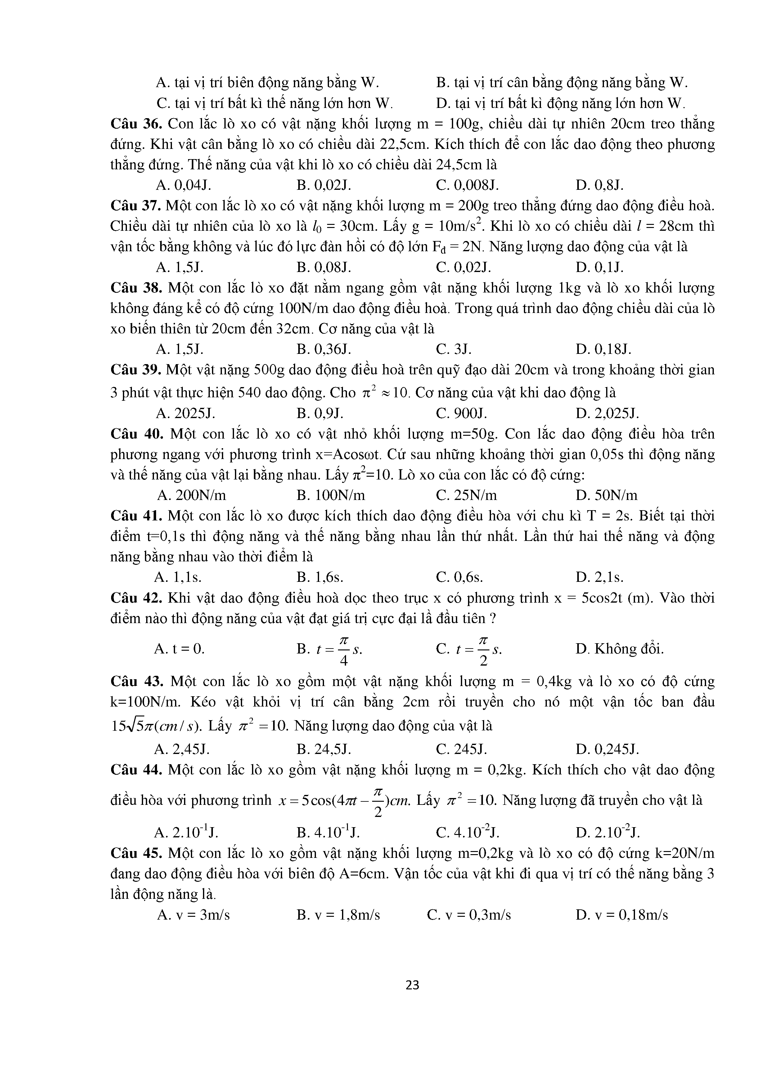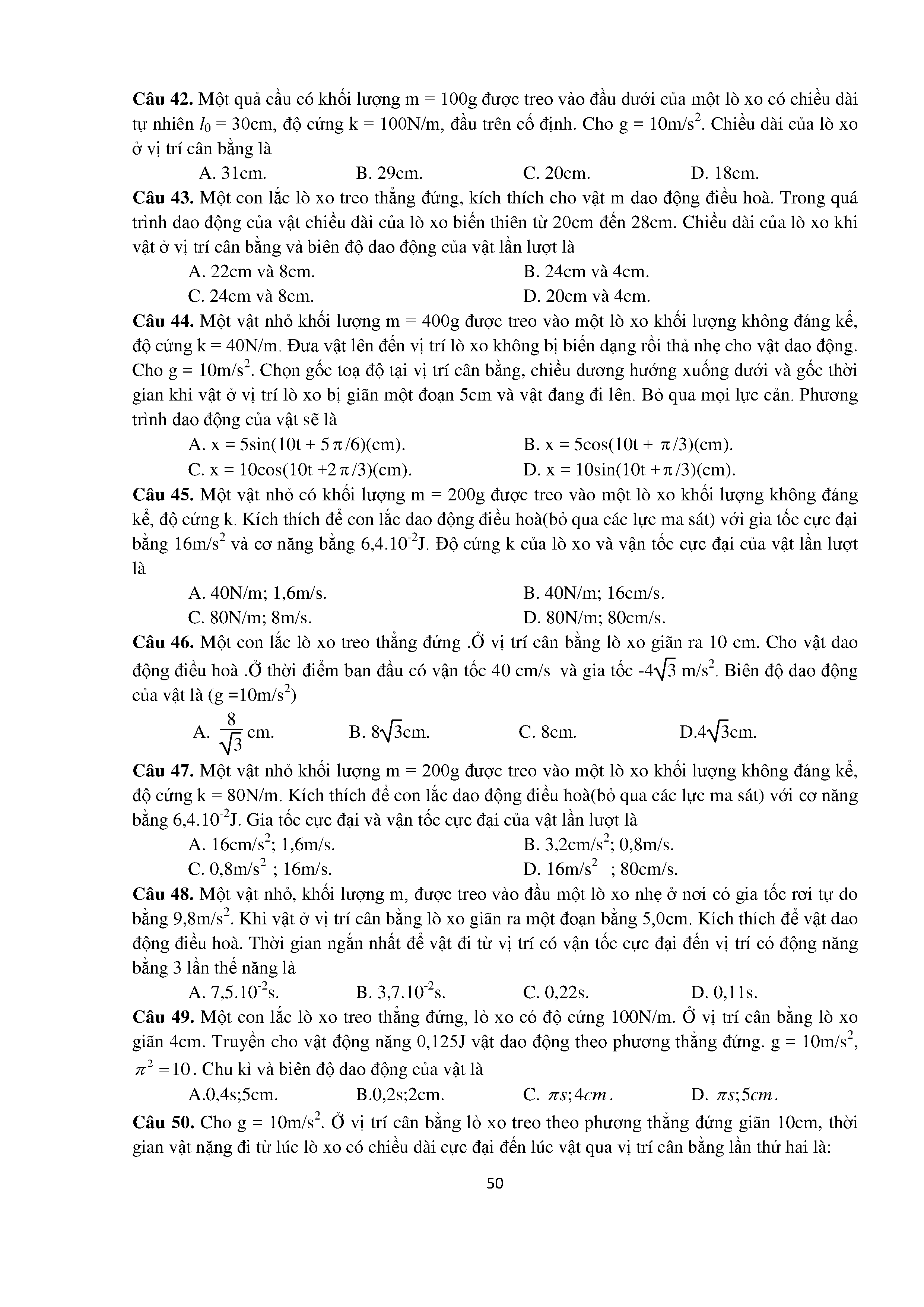 Bài tập trắc nghiệm con lắc lò xo
