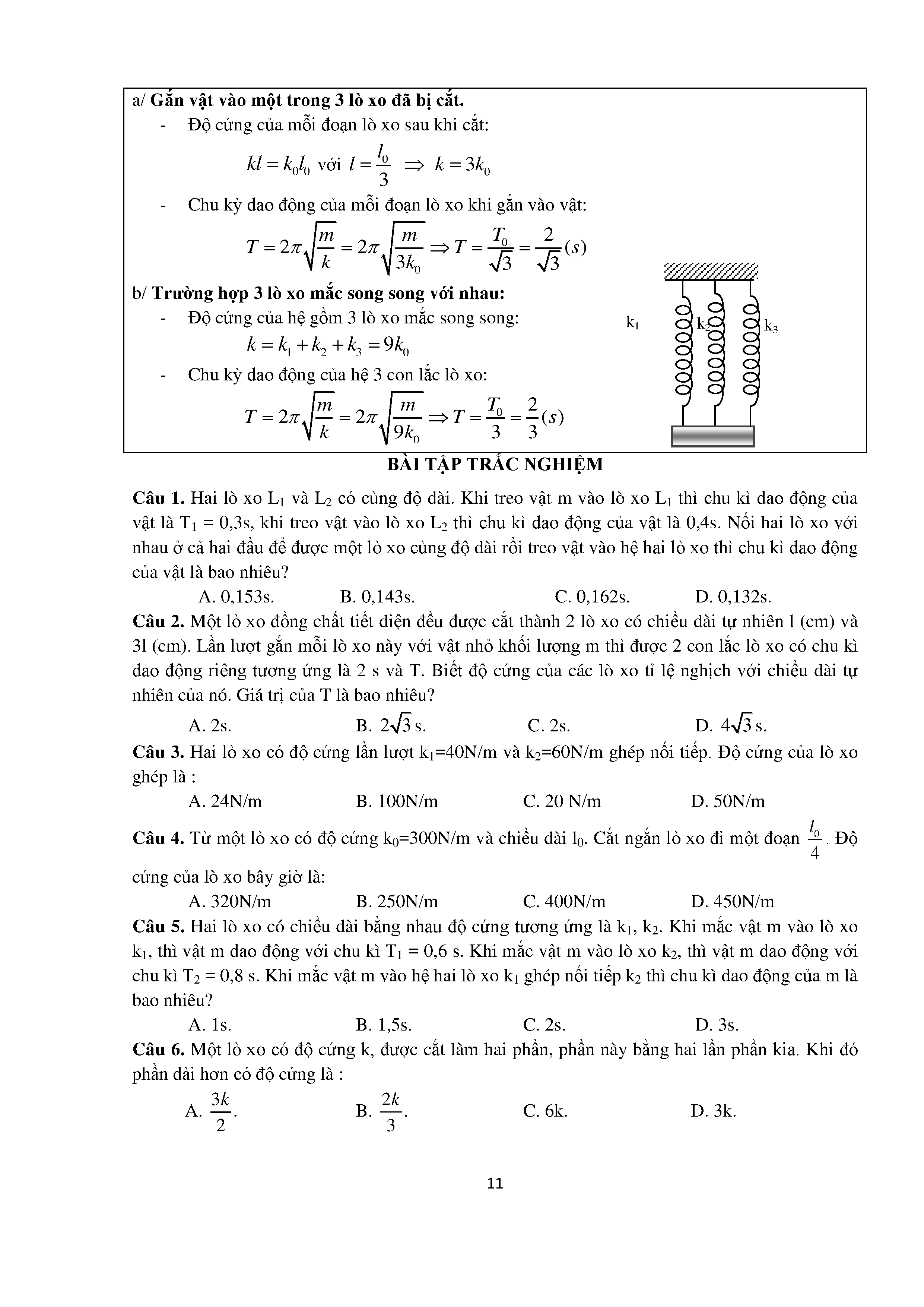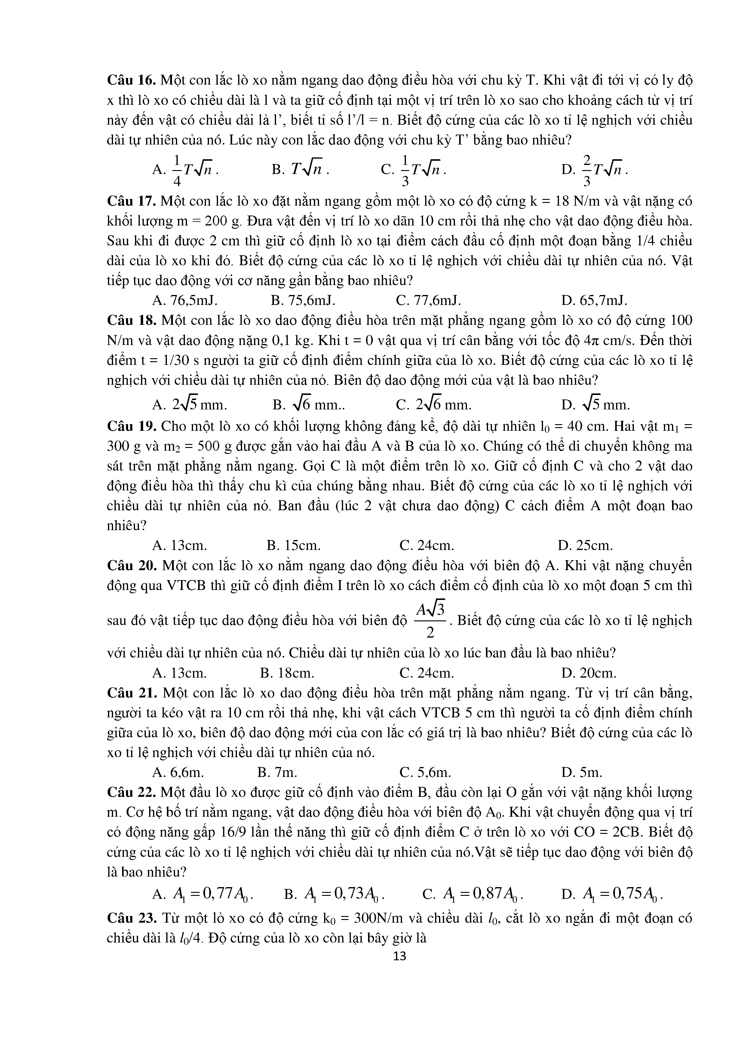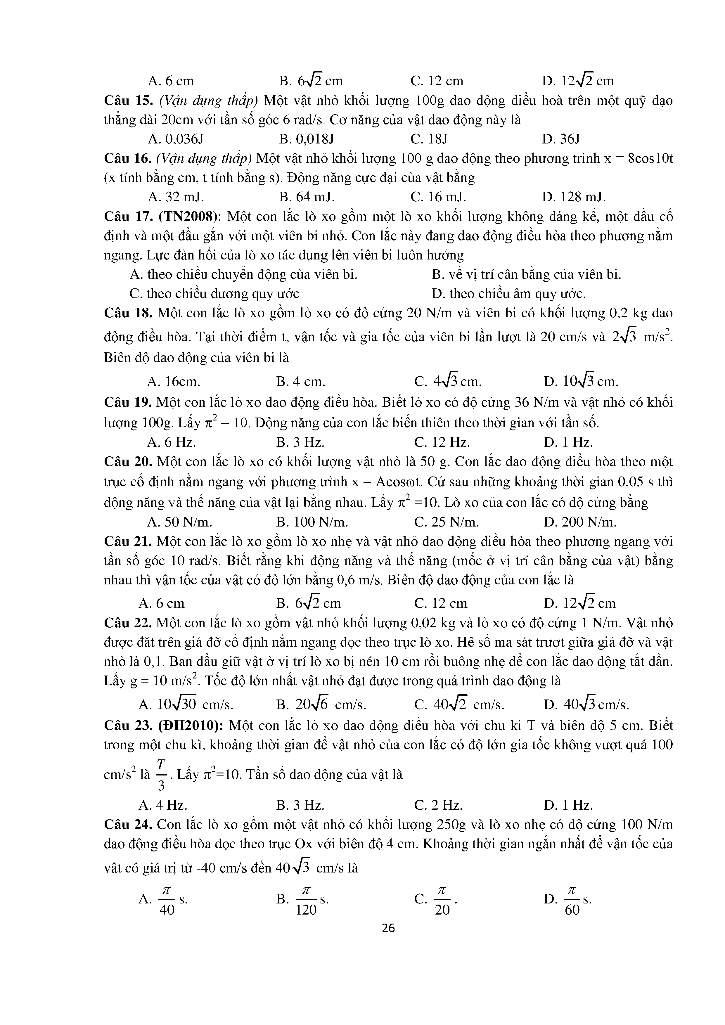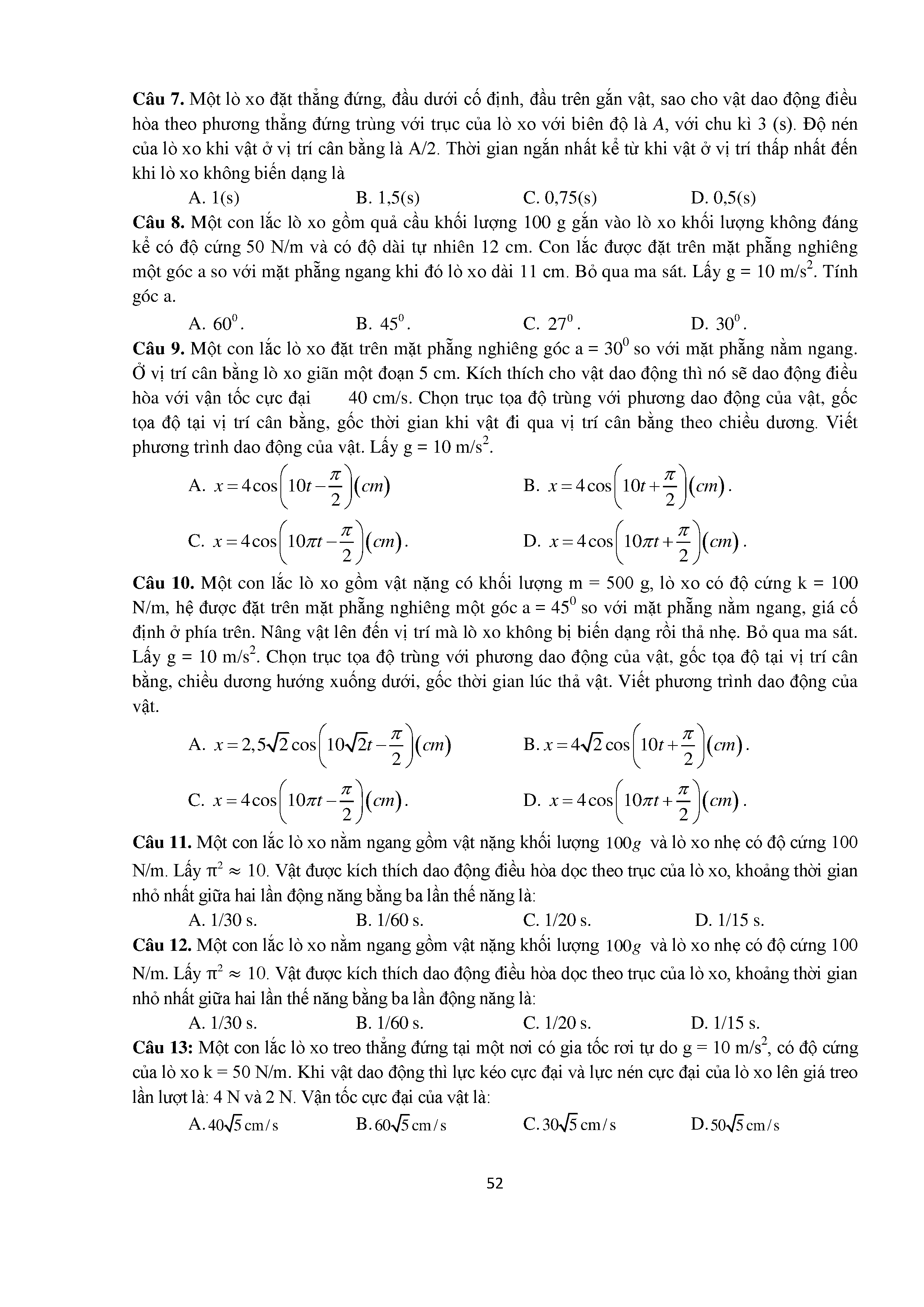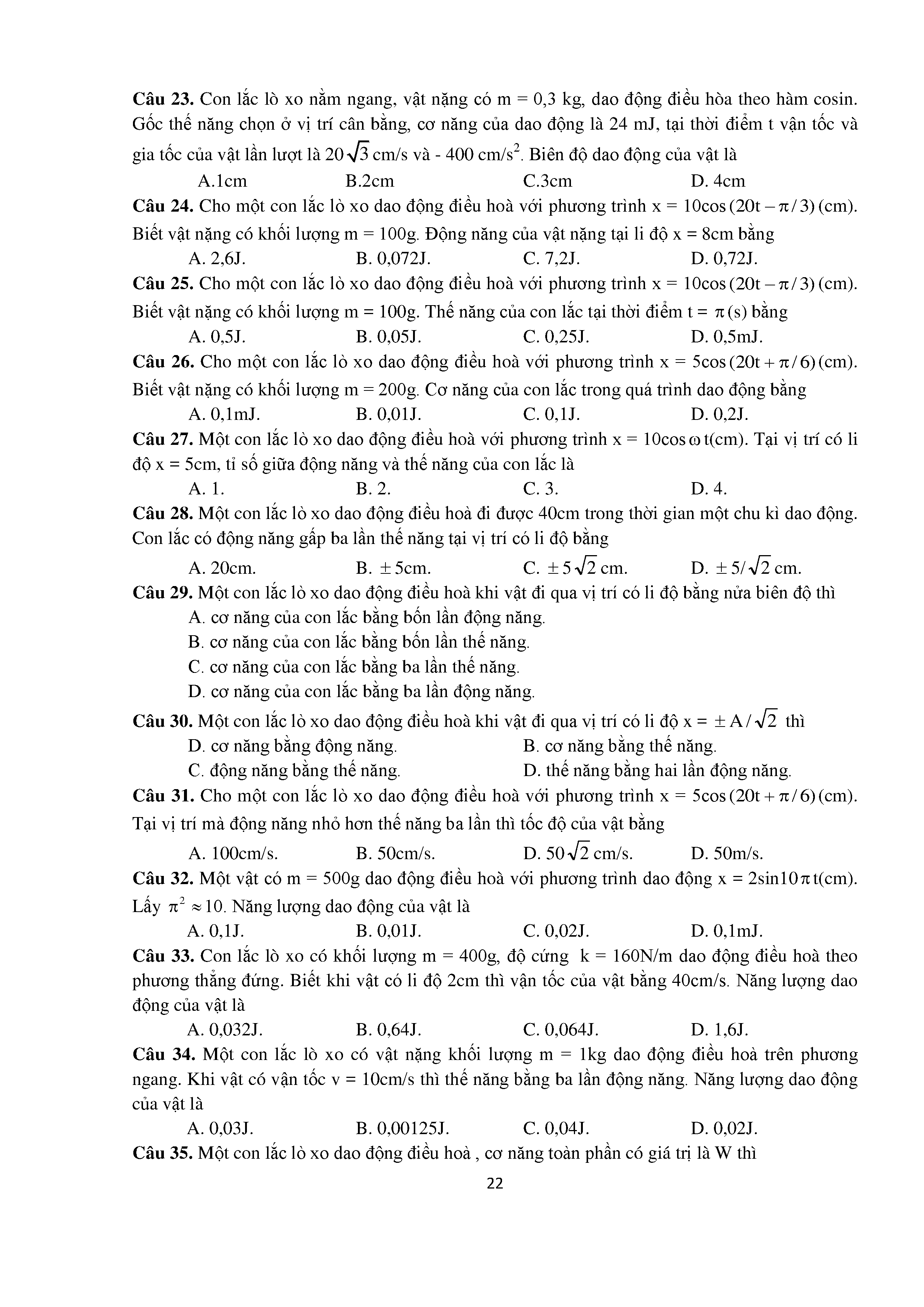 Bài tập trắc nghiệm con lắc lò xo