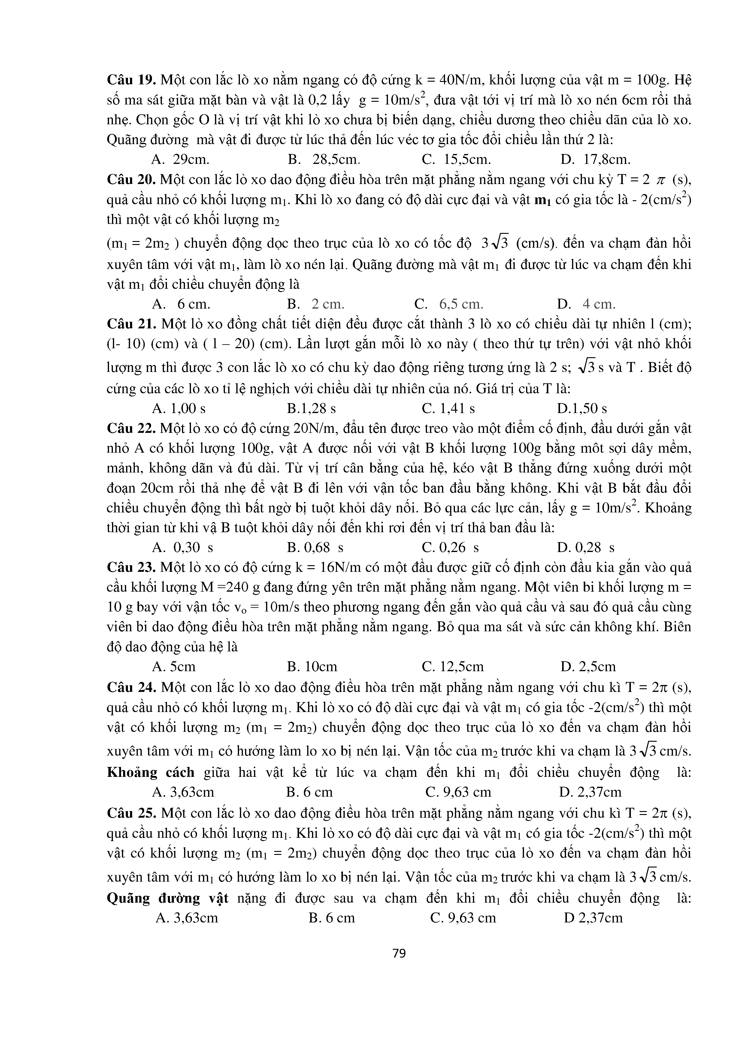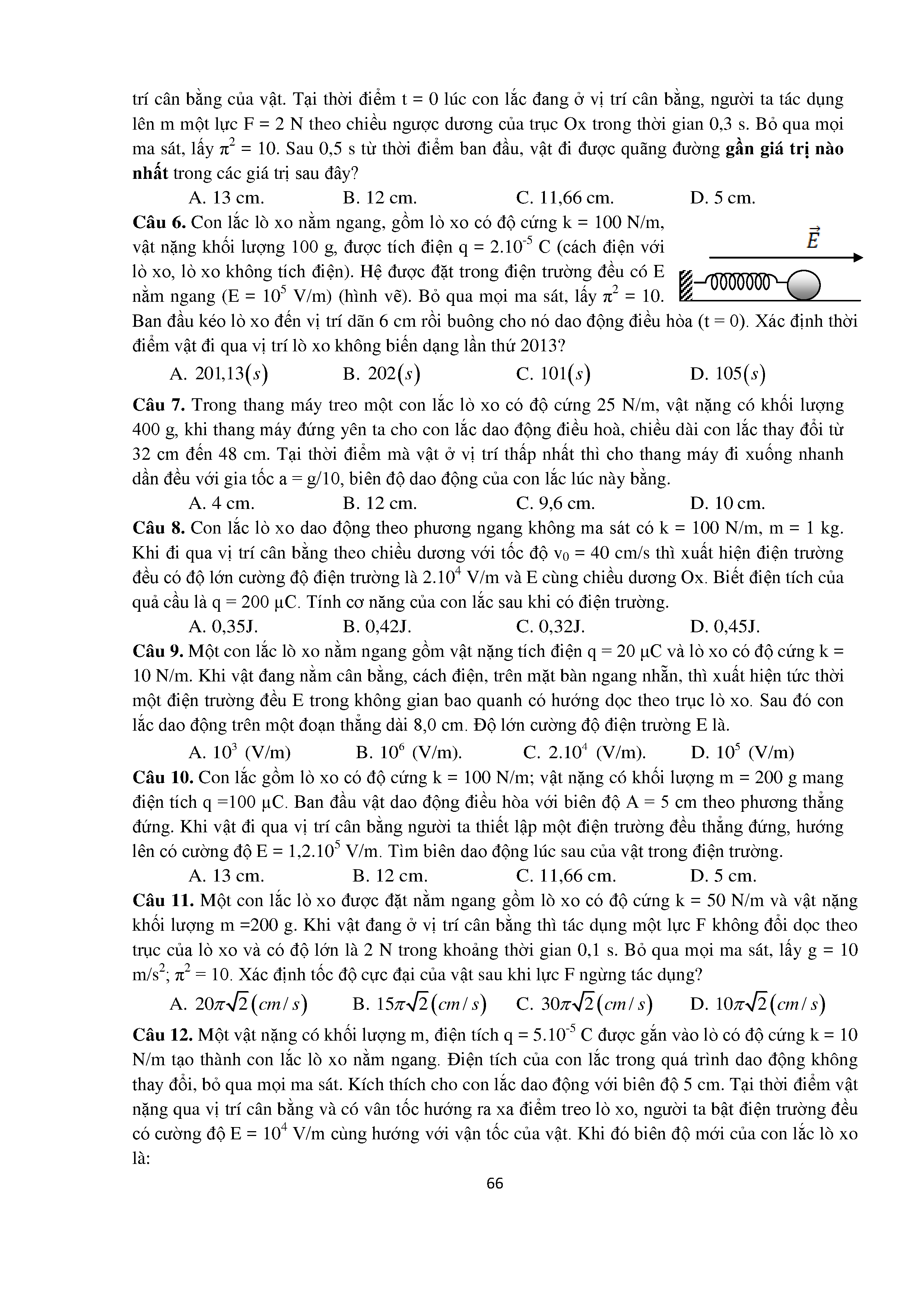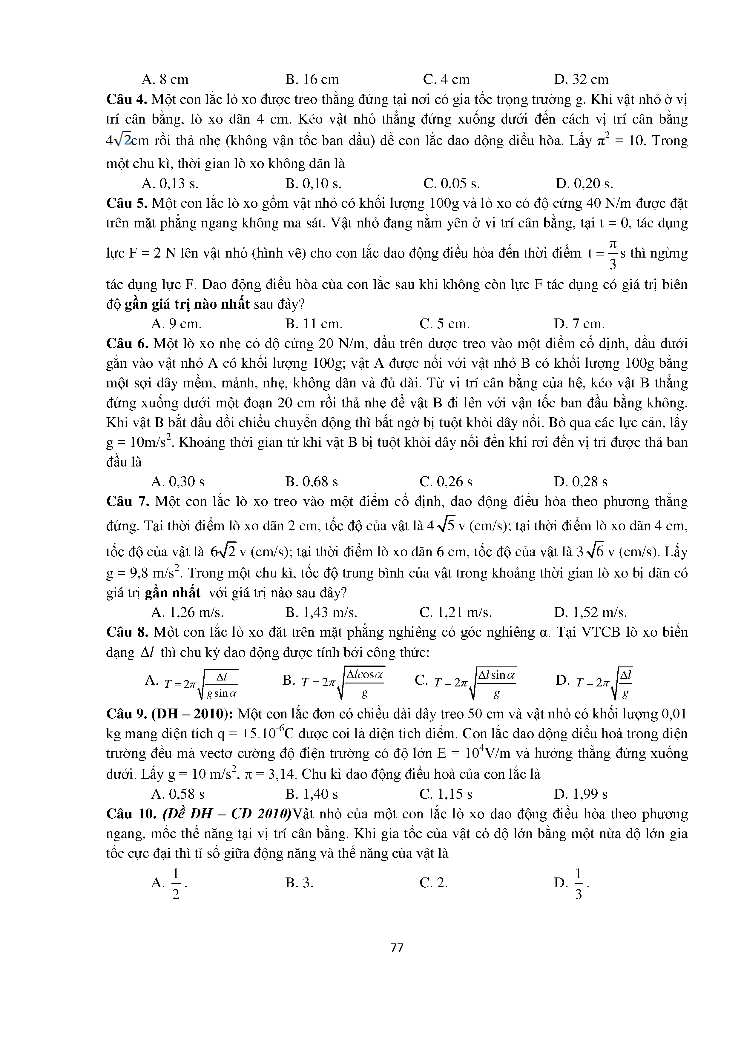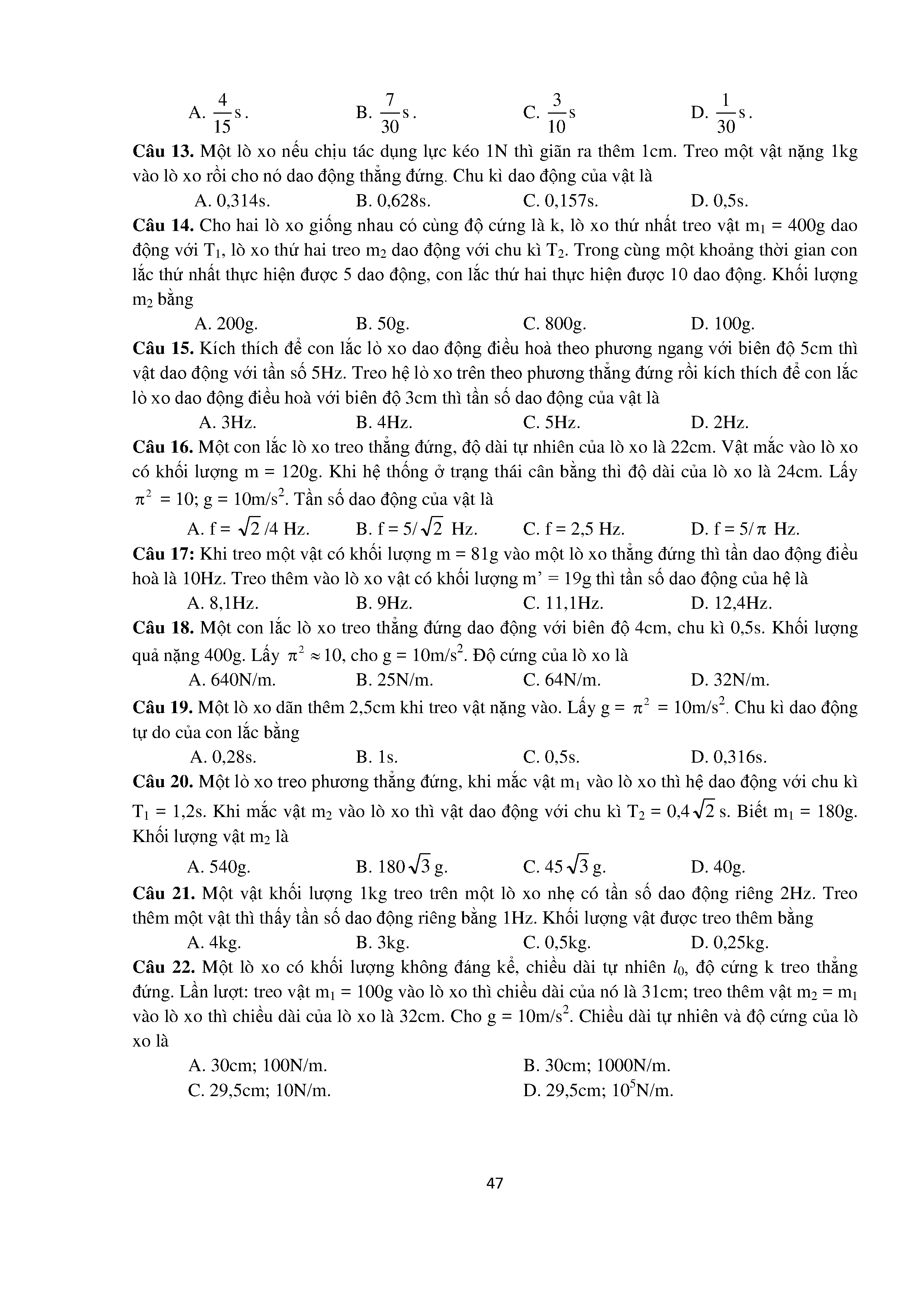 Bài tập trắc nghiệm con lắc lò xo