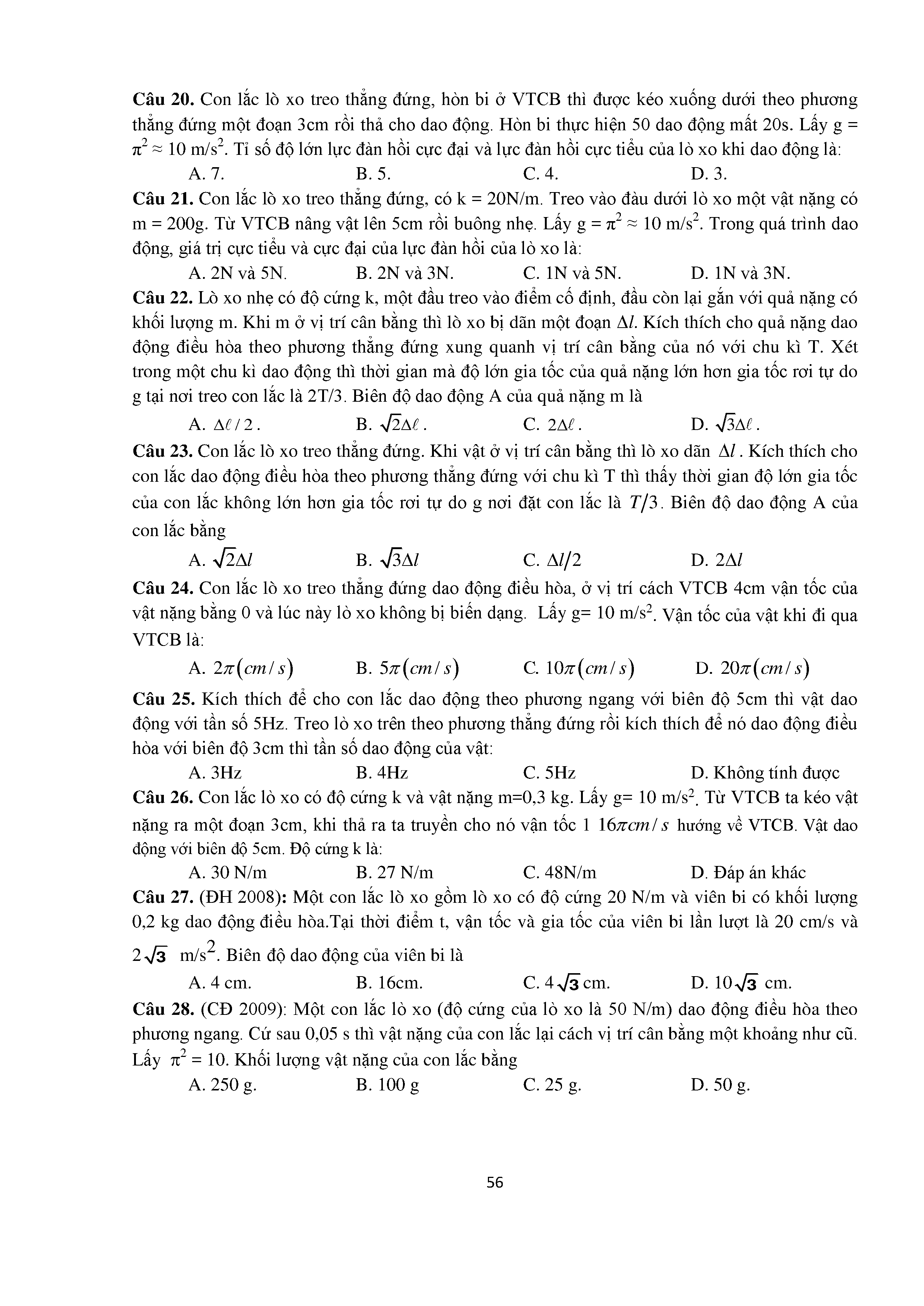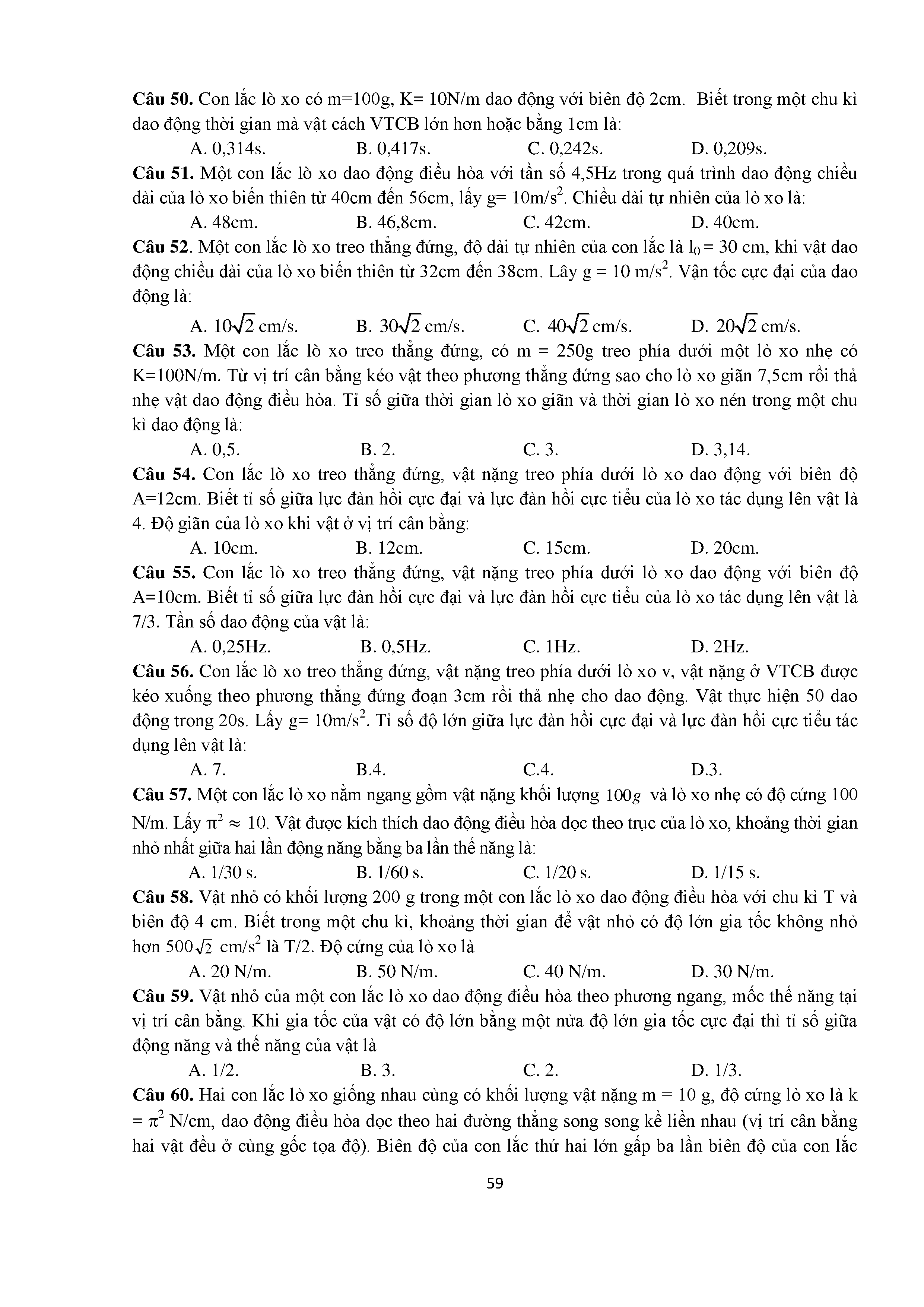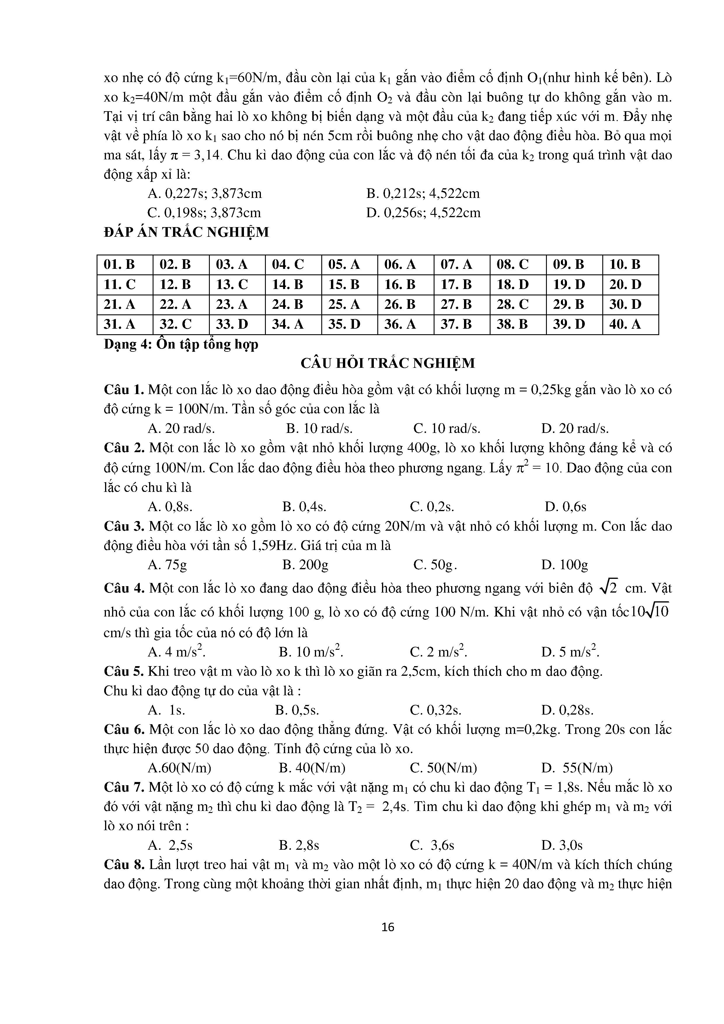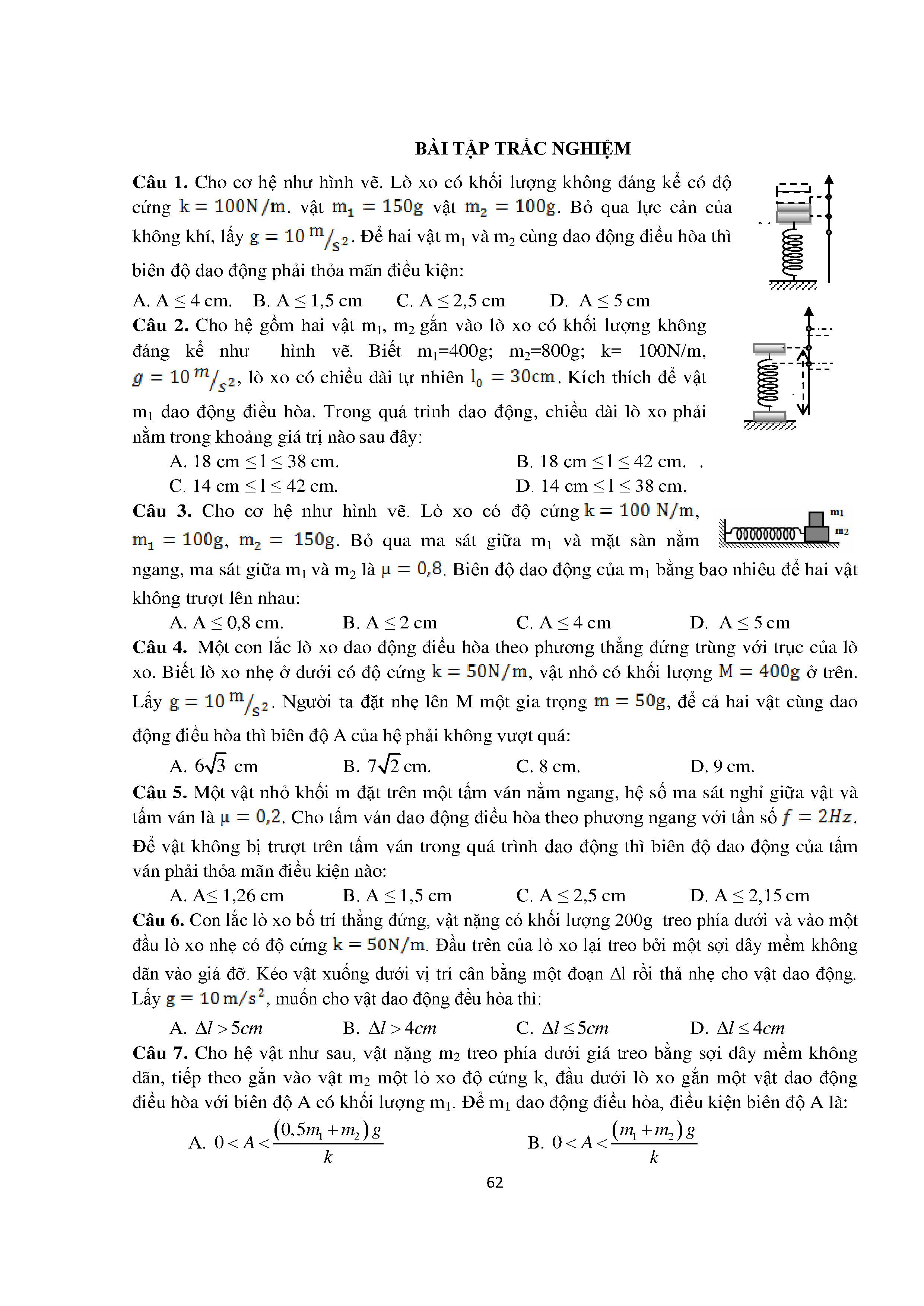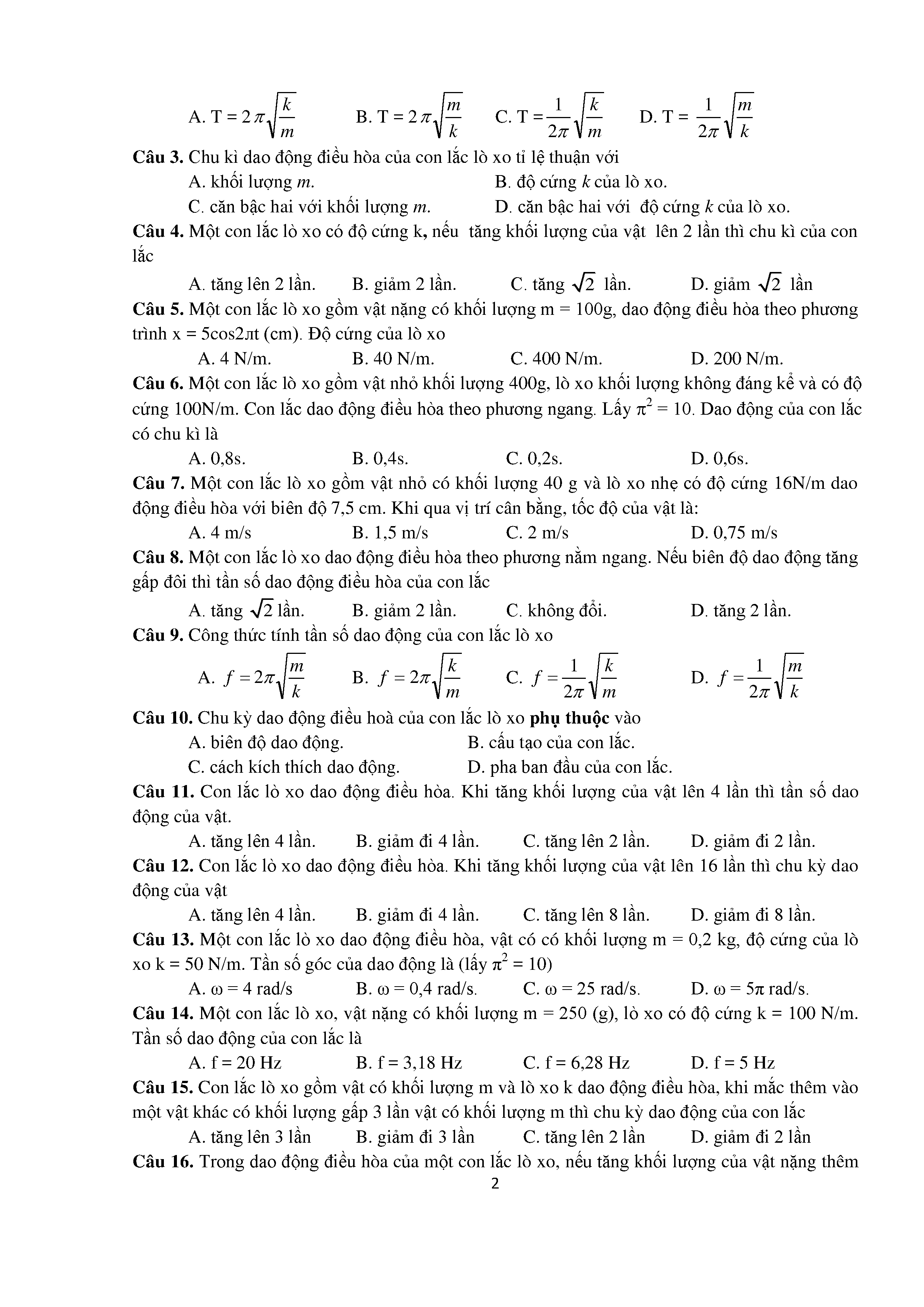 Bài tập trắc nghiệm con lắc lò xo