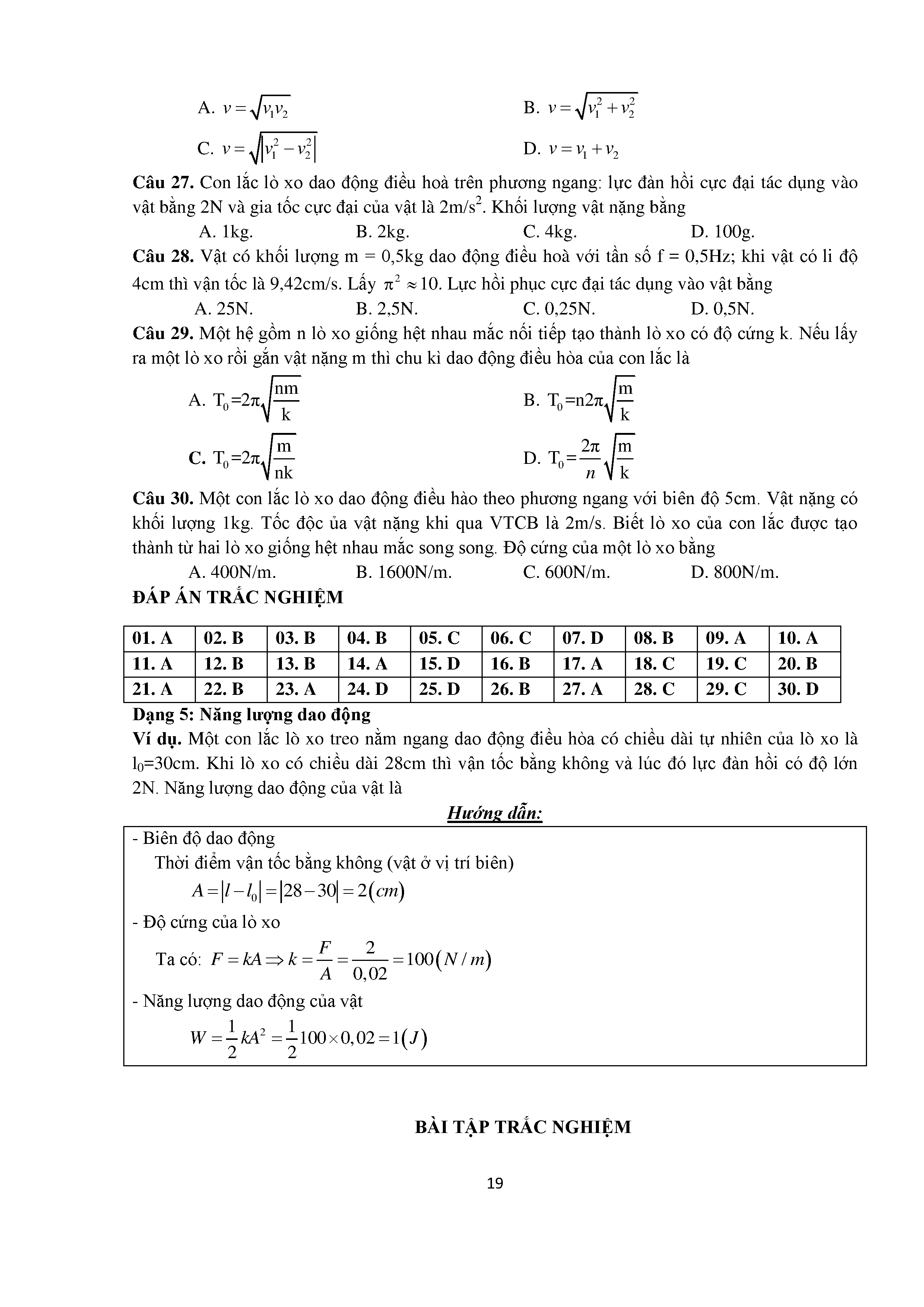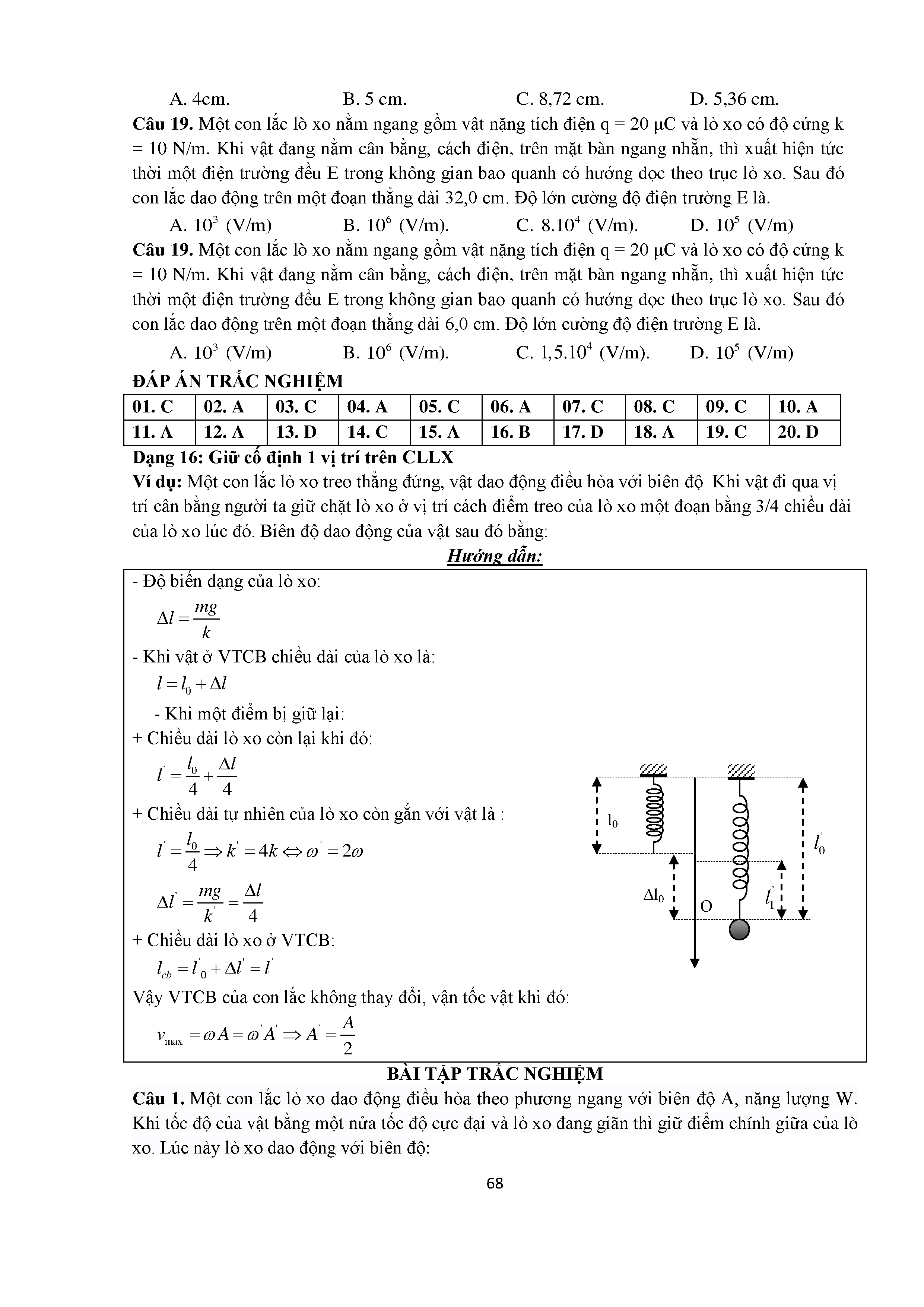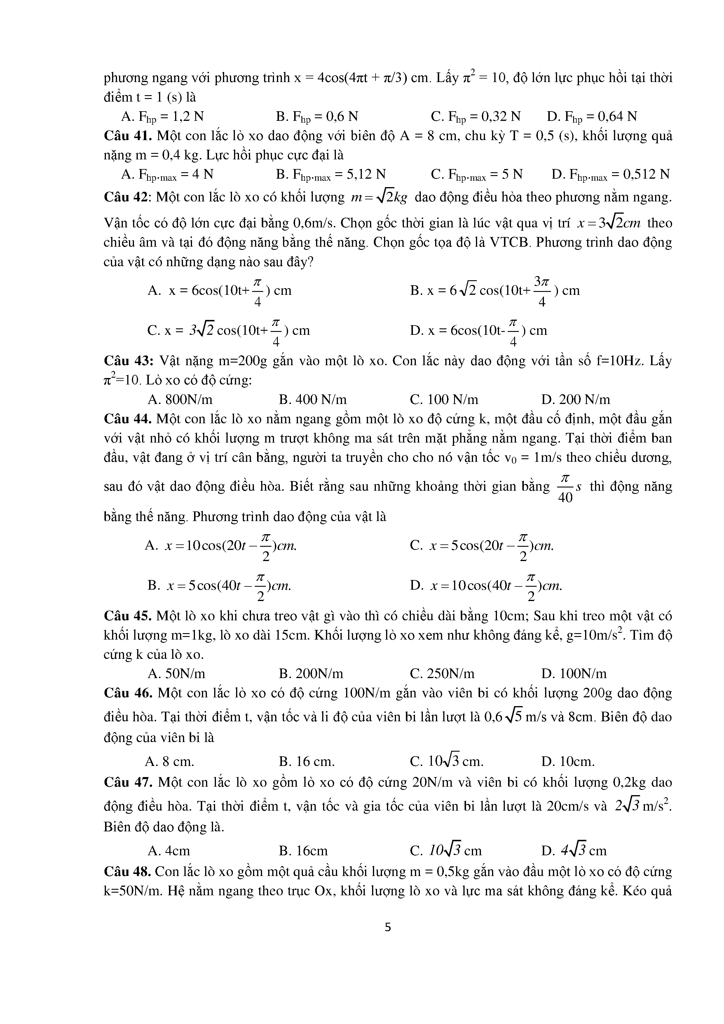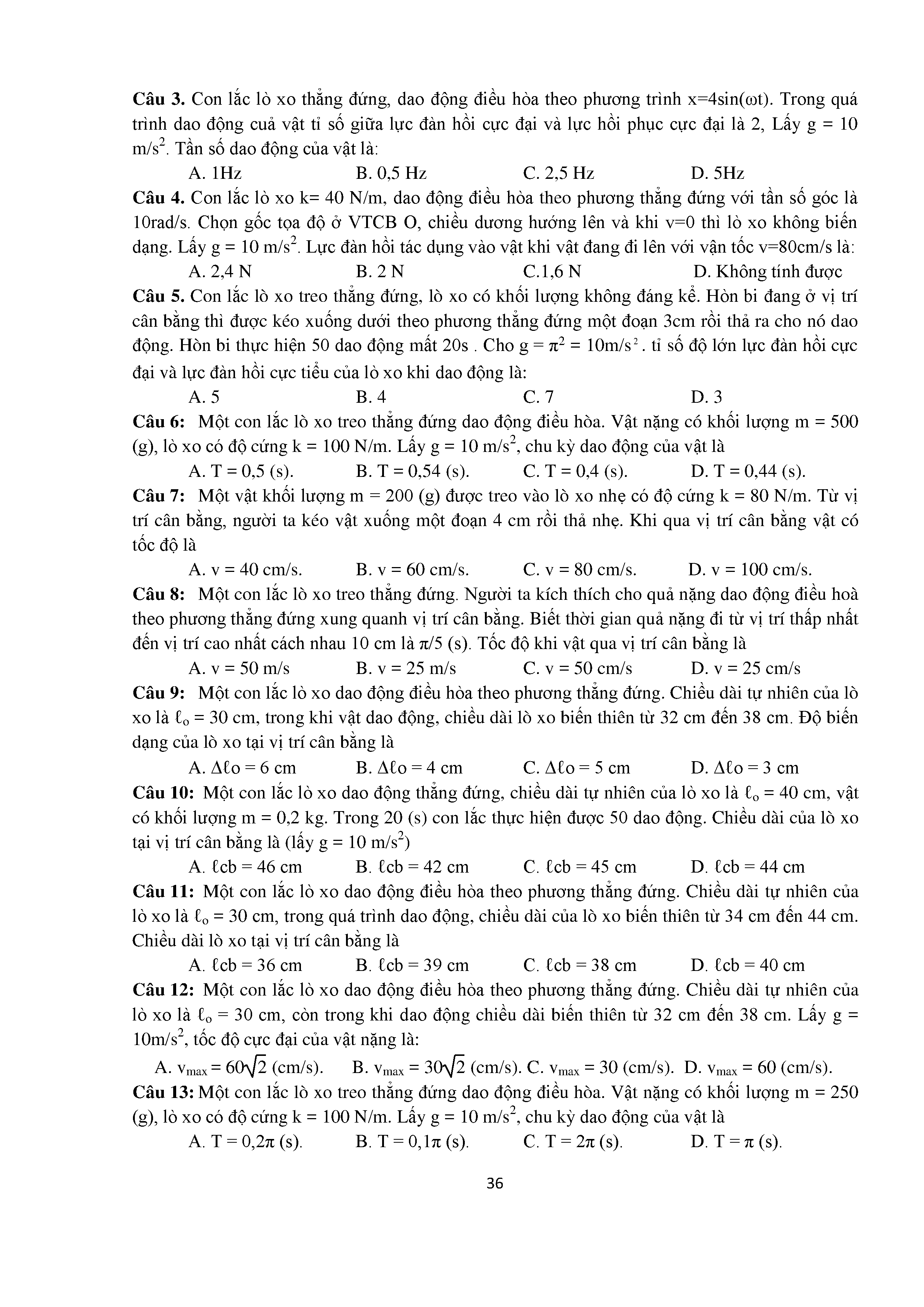 Bài tập trắc nghiệm con lắc lò xo