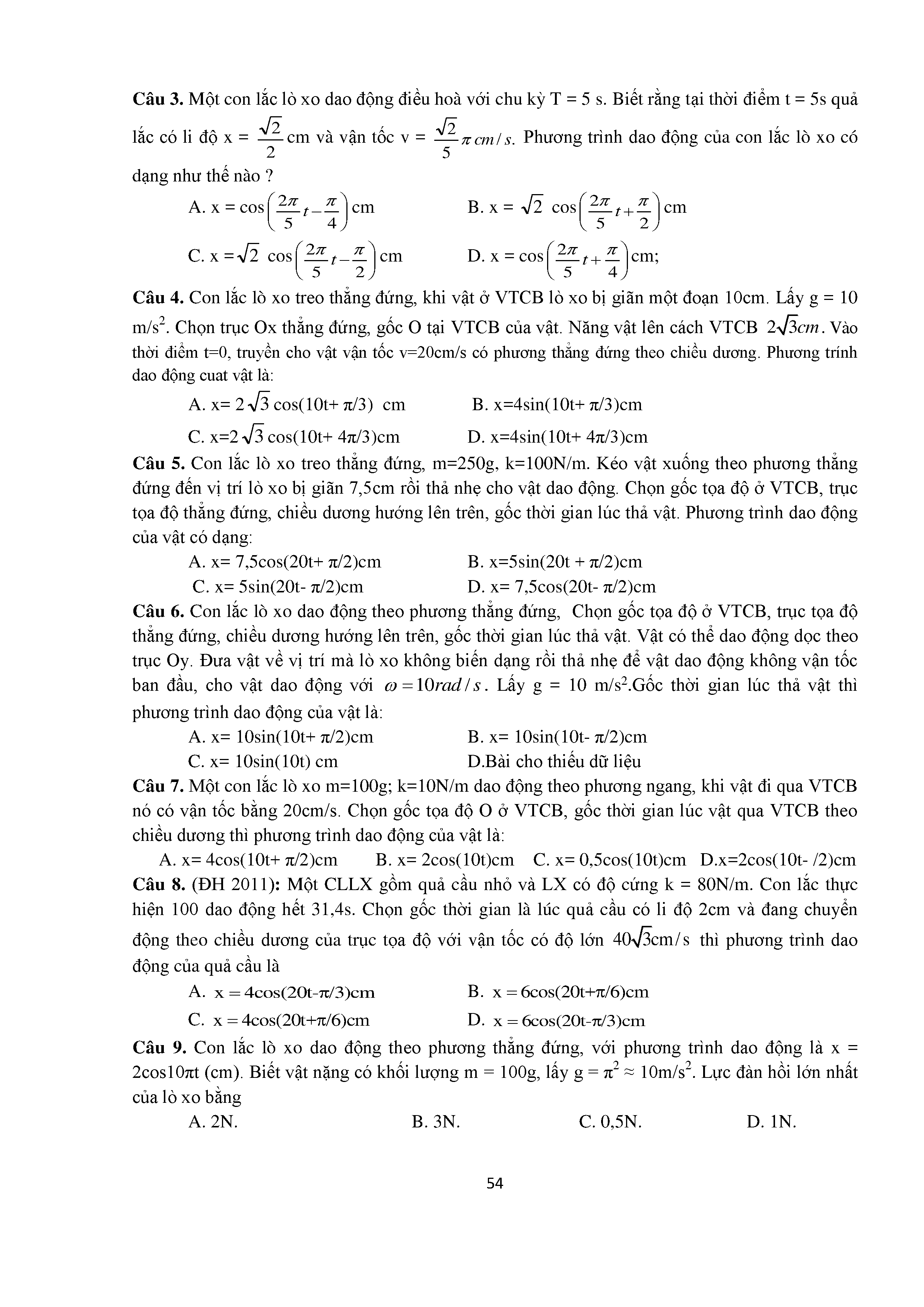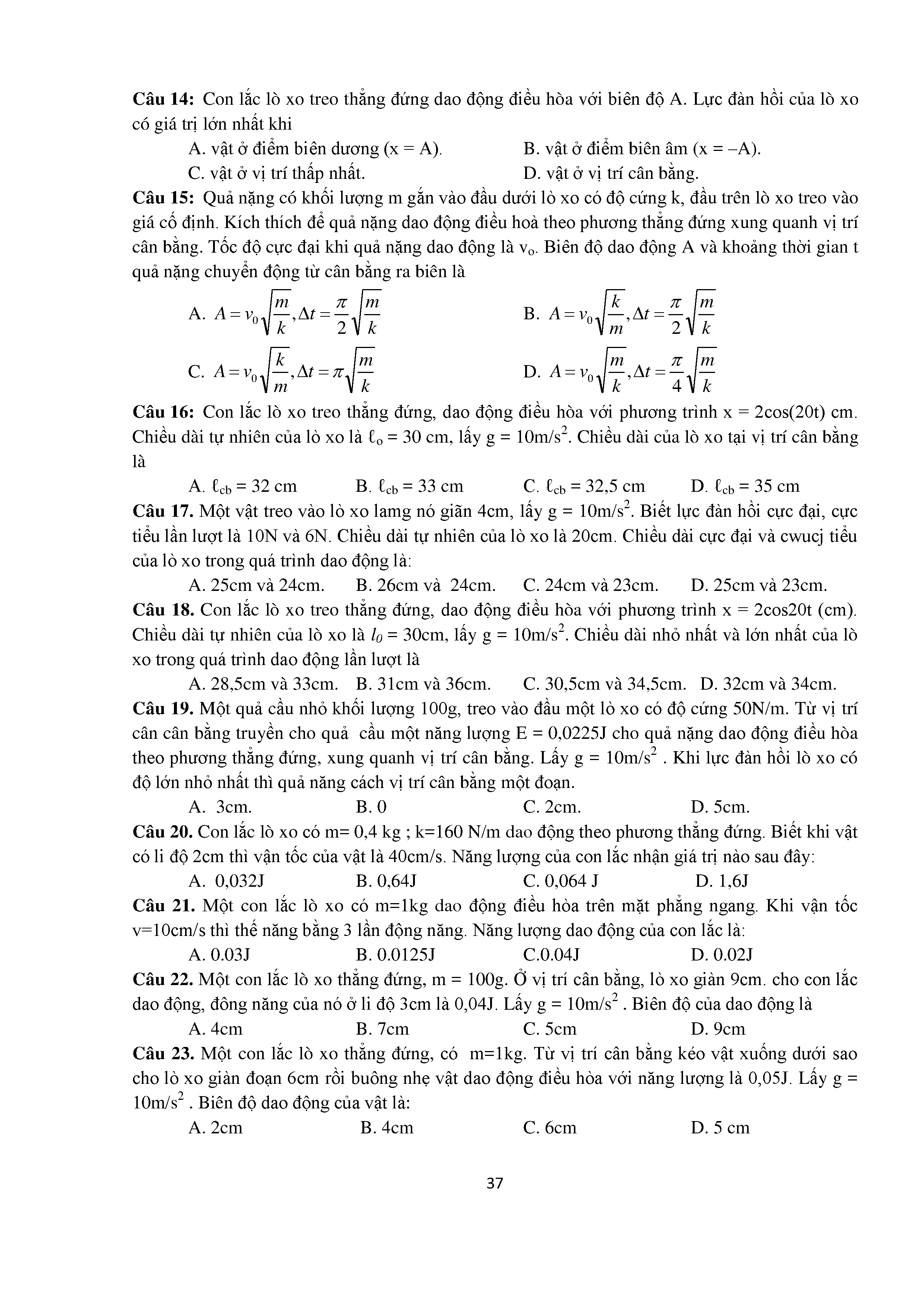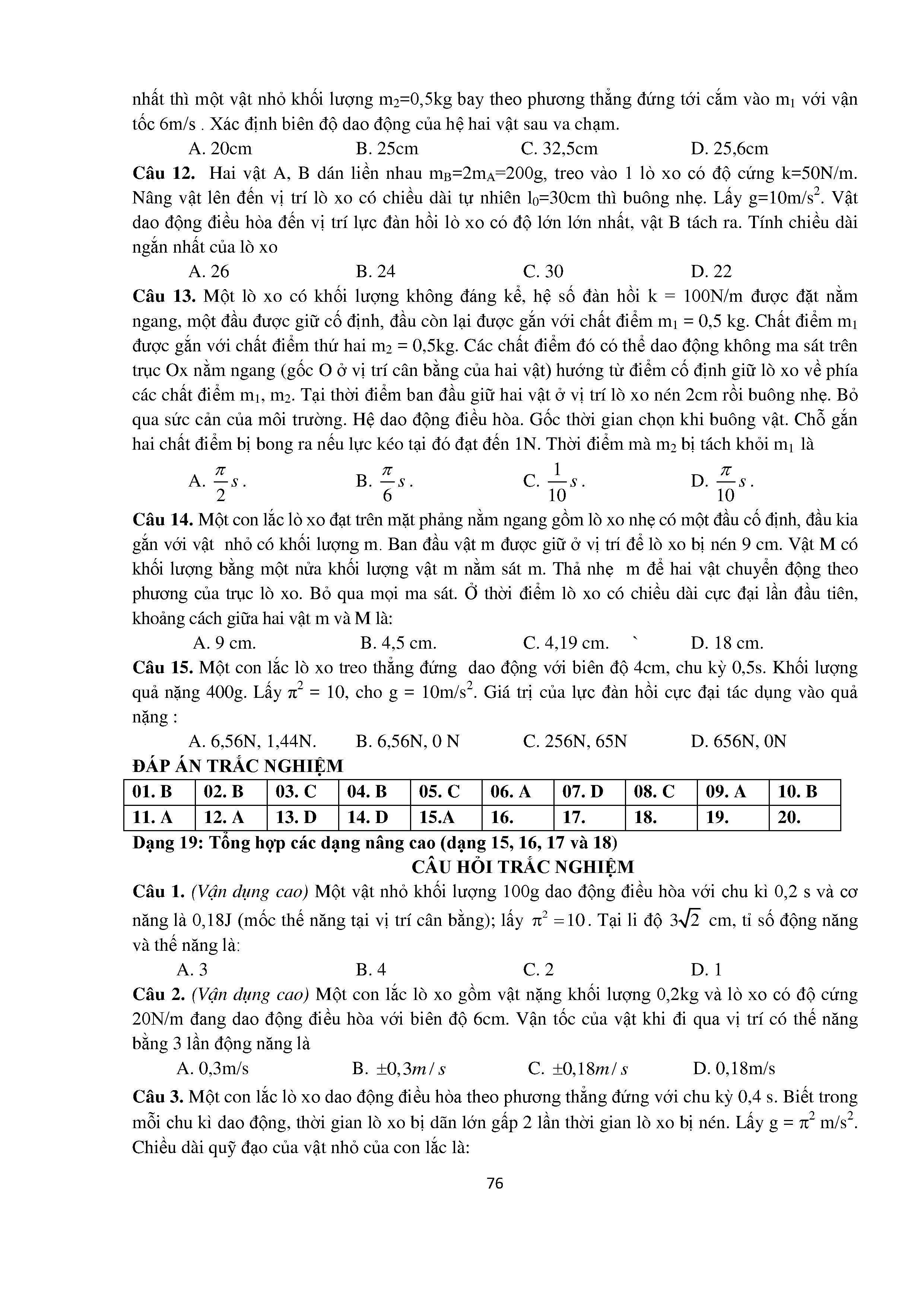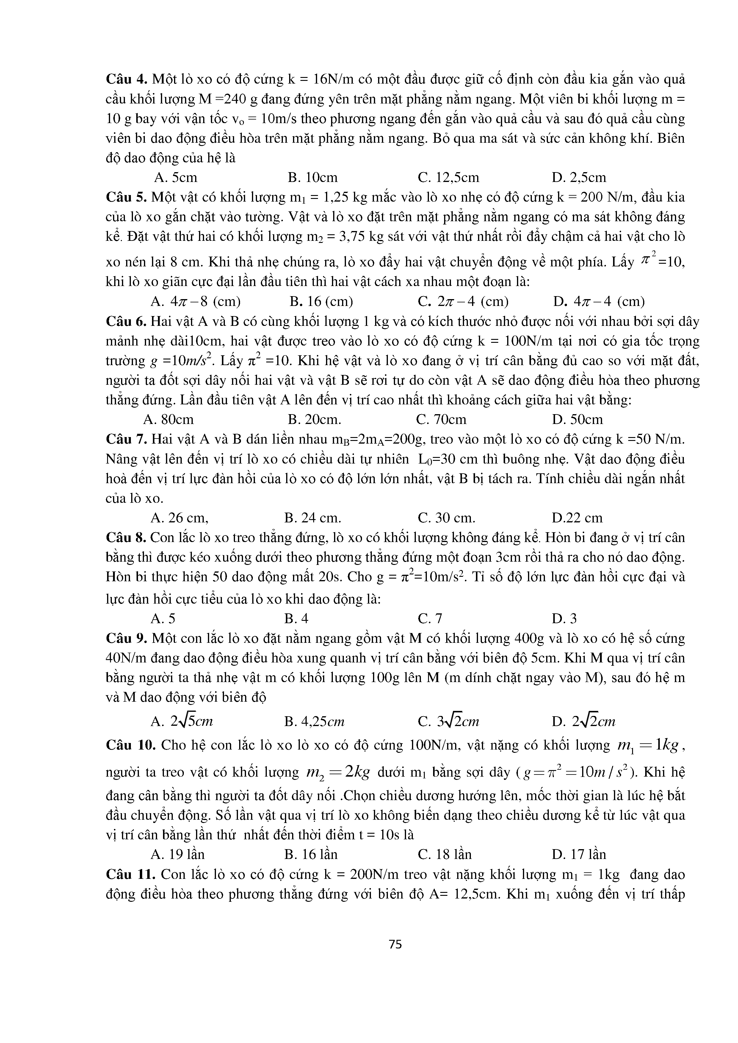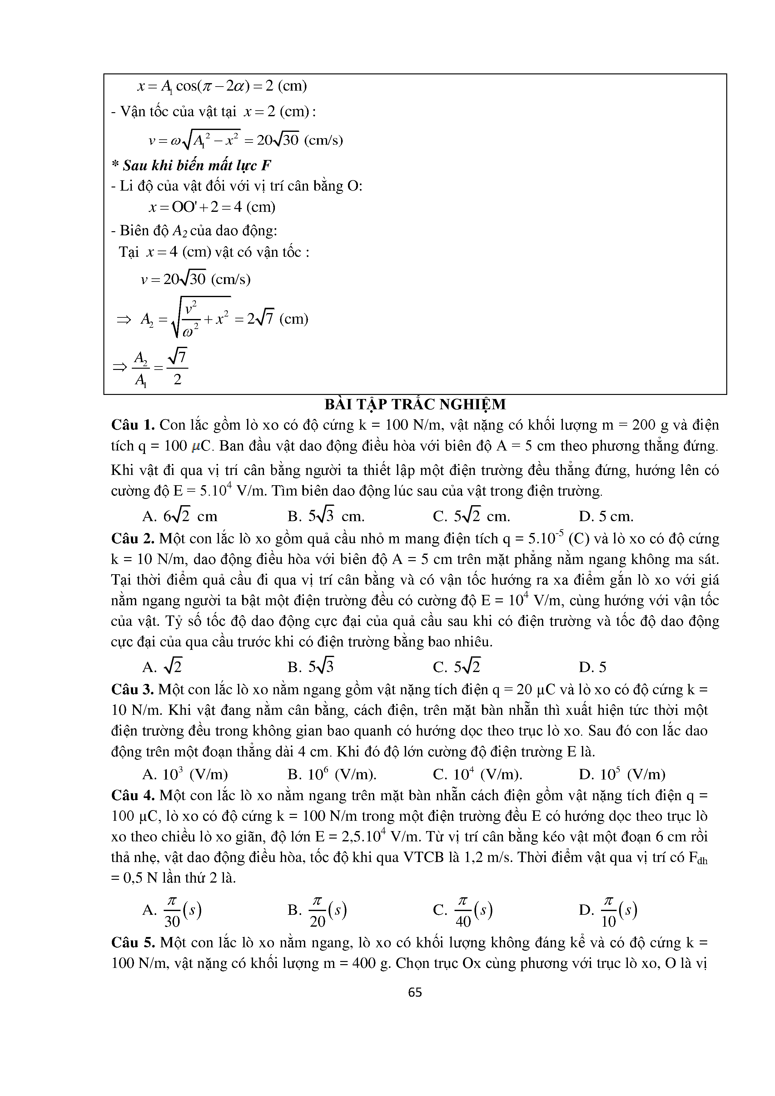 Bài tập trắc nghiệm con lắc lò xo