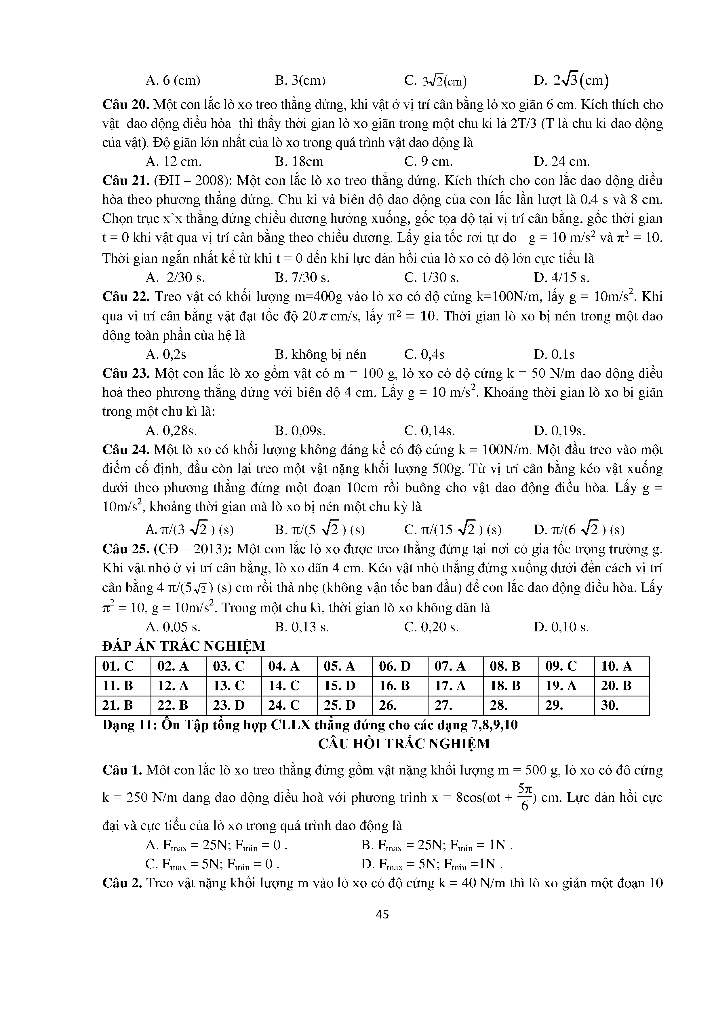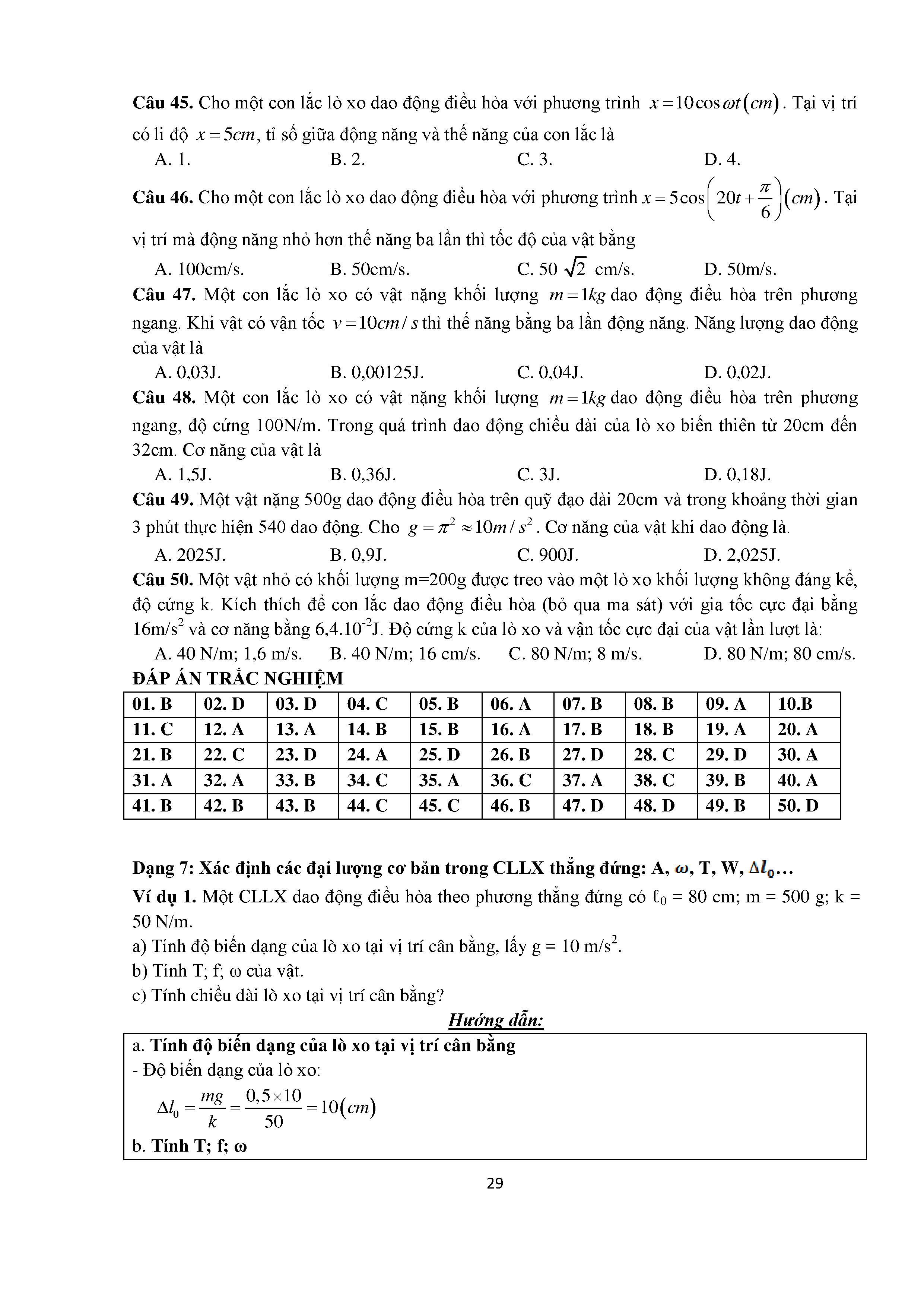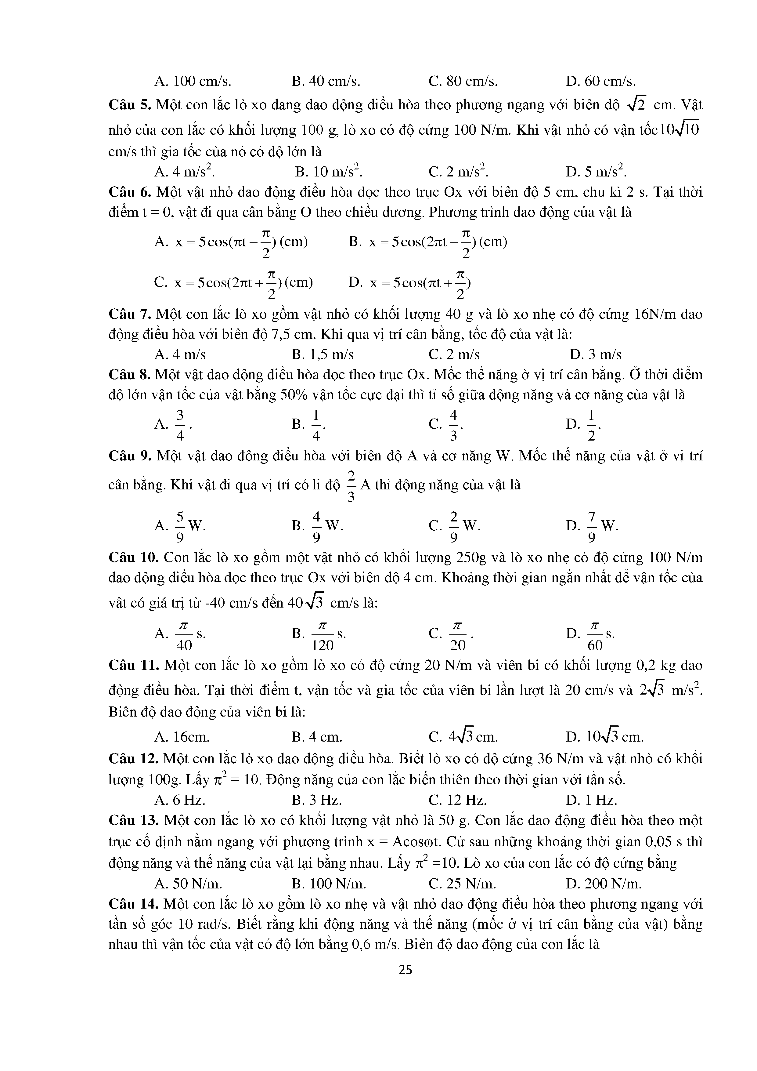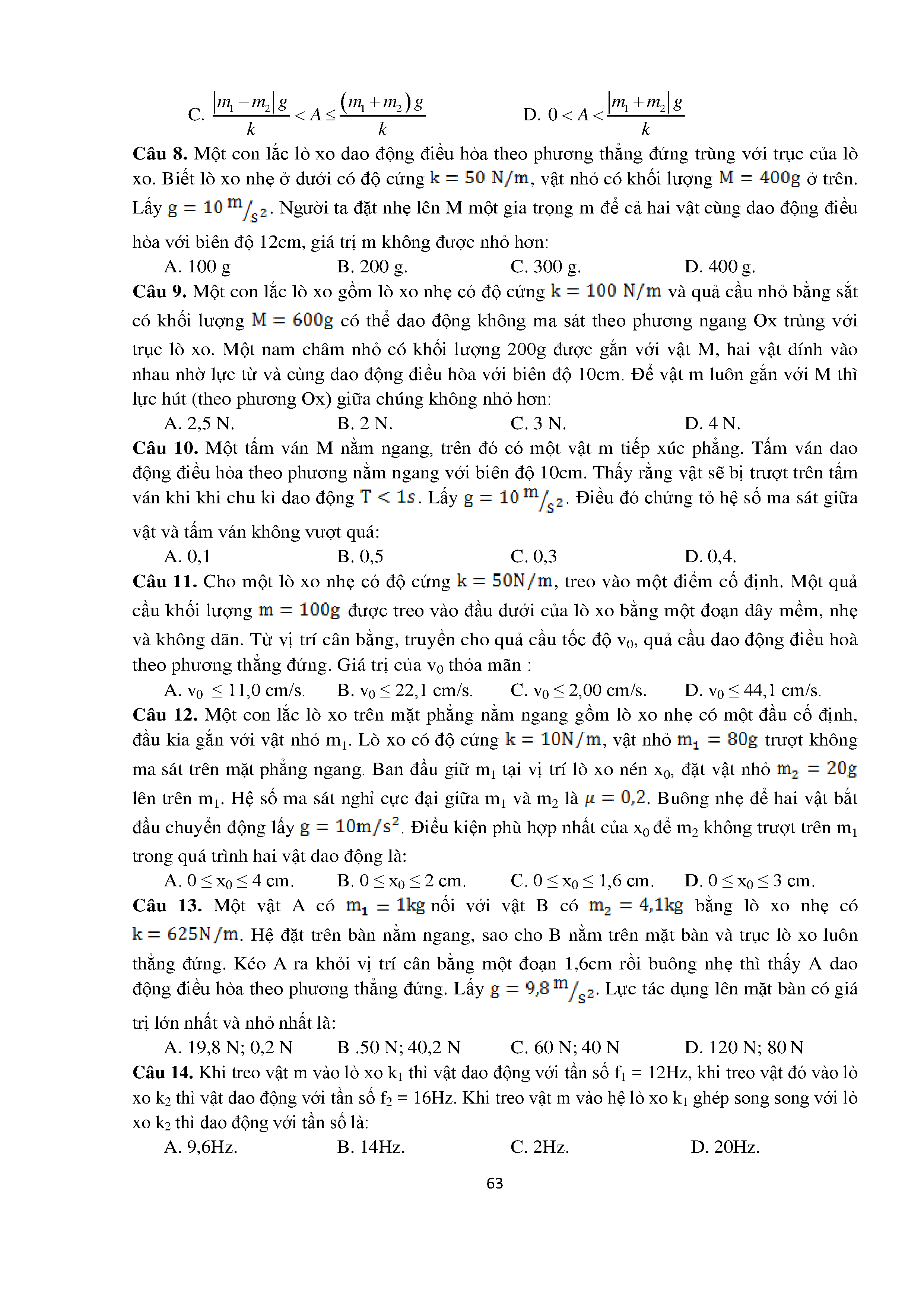 Bài tập trắc nghiệm con lắc lò xo