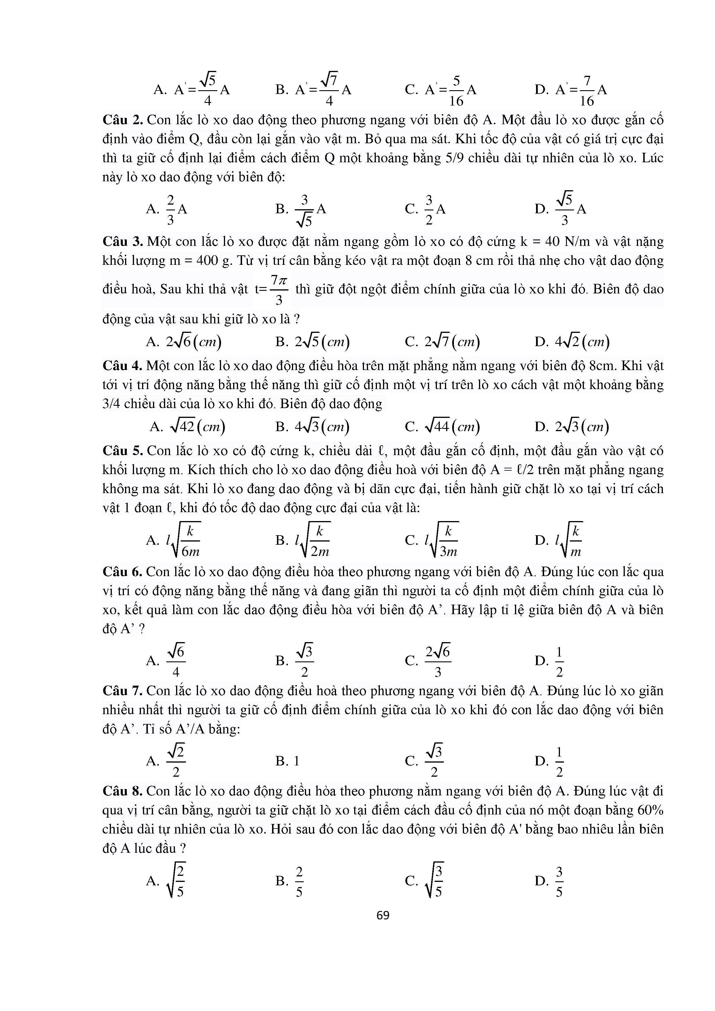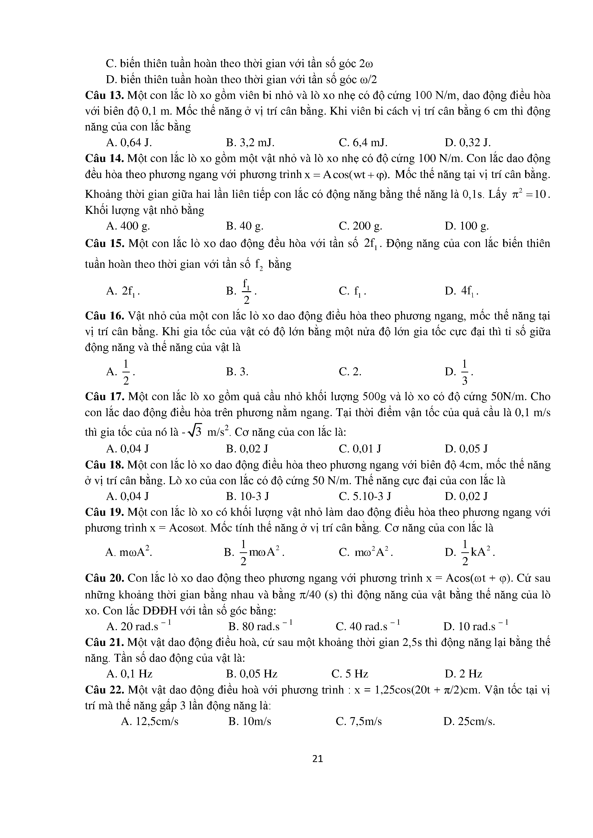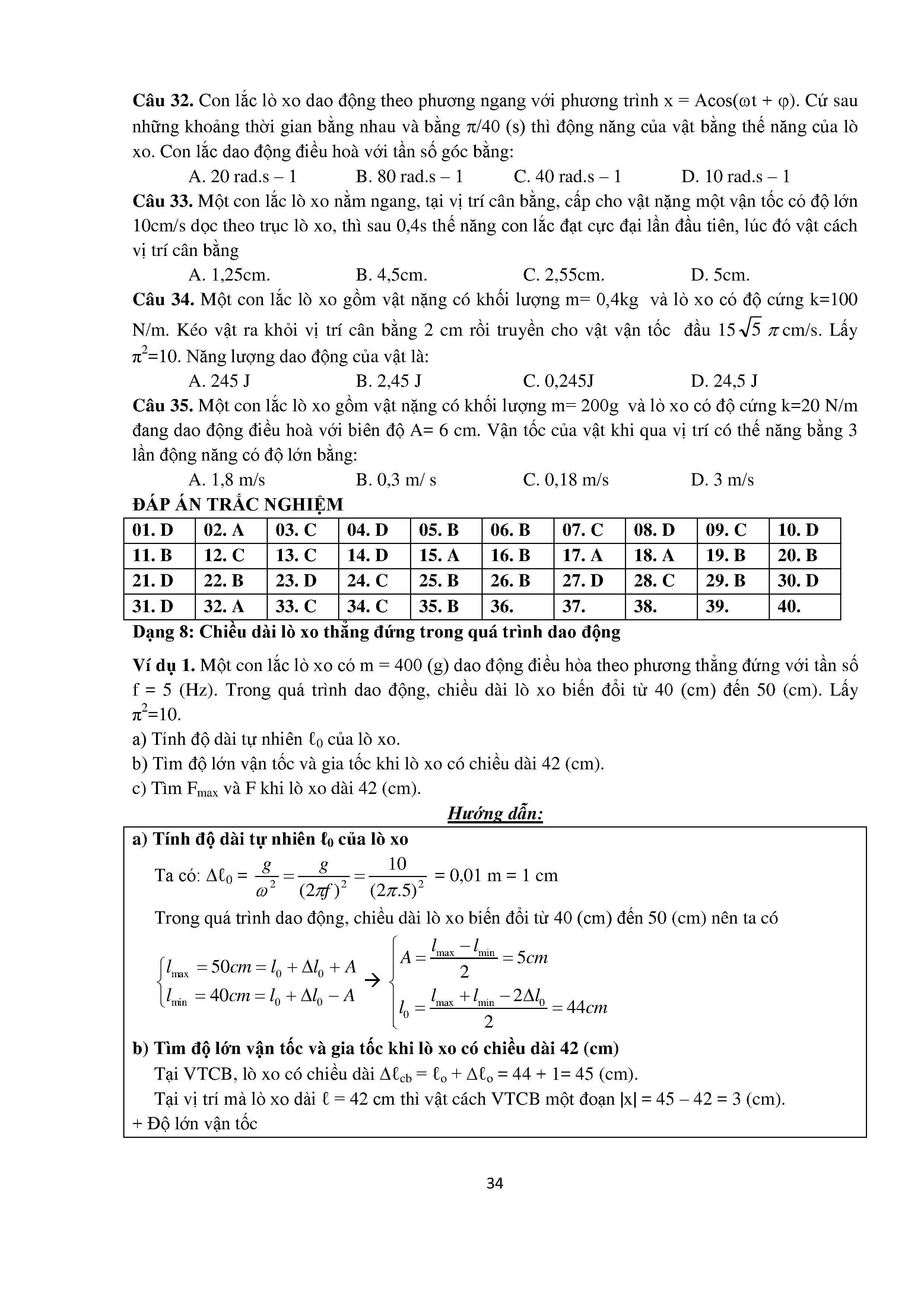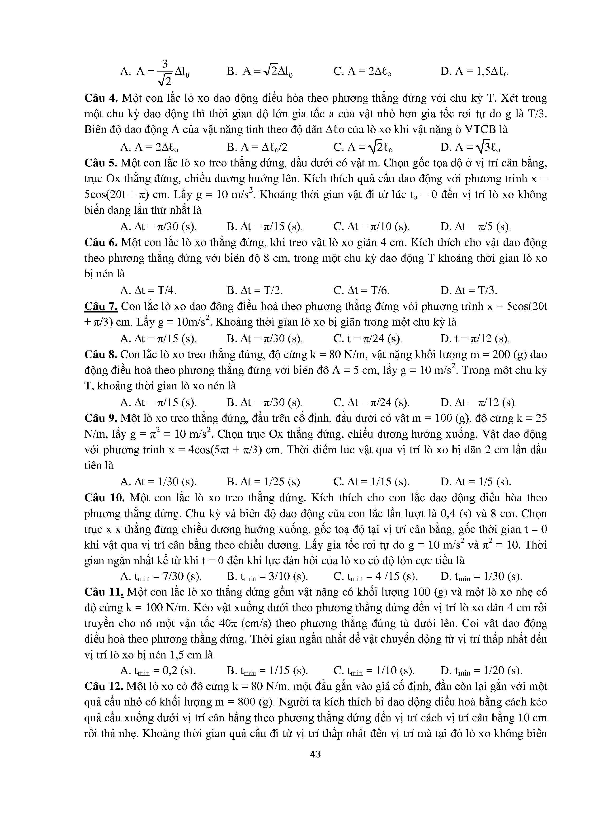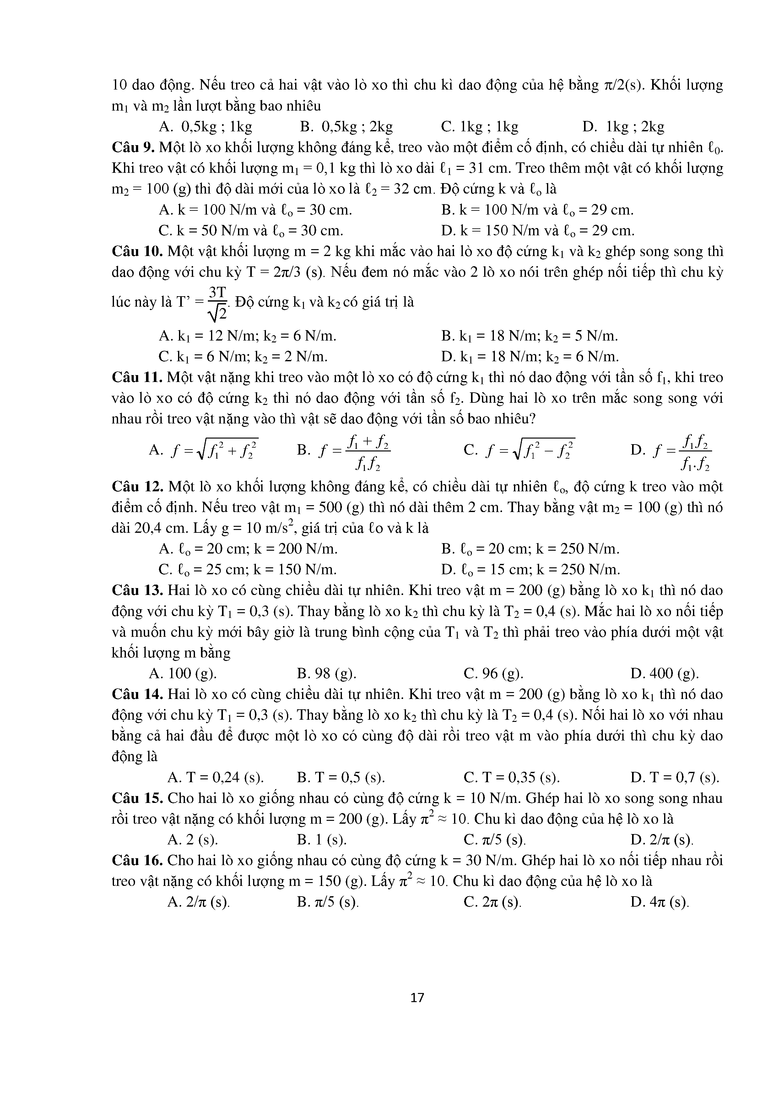 Bài tập trắc nghiệm con lắc lò xo