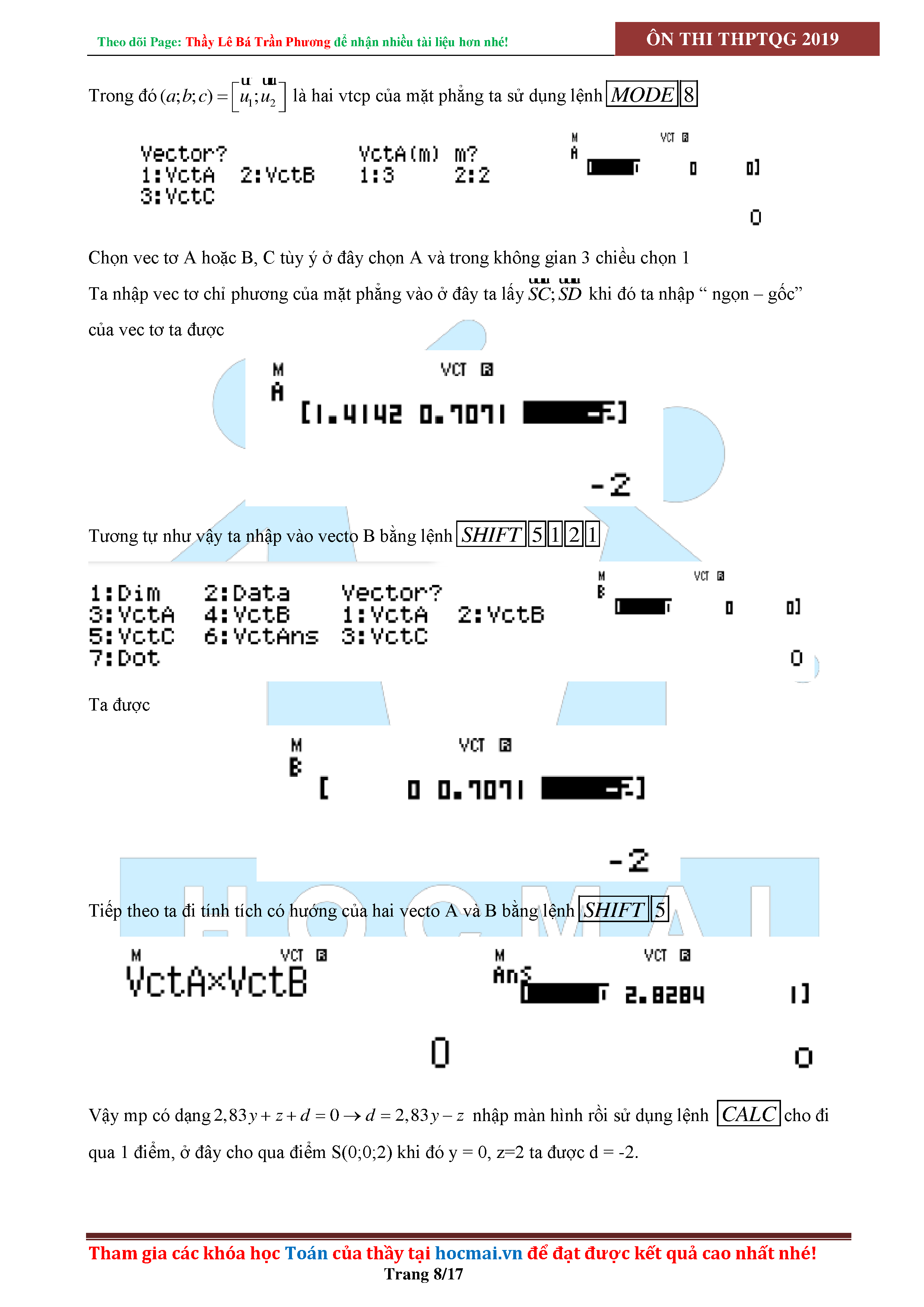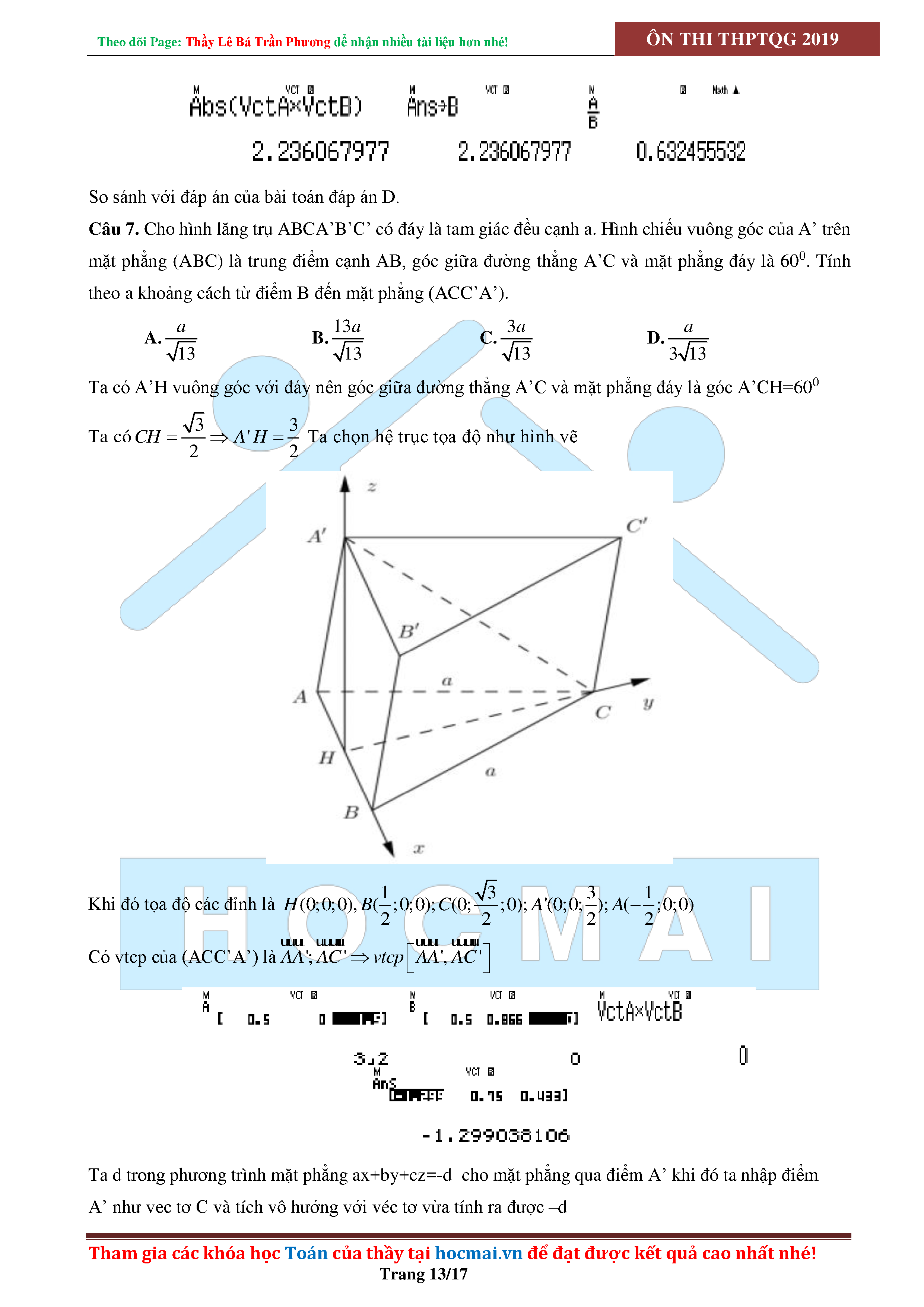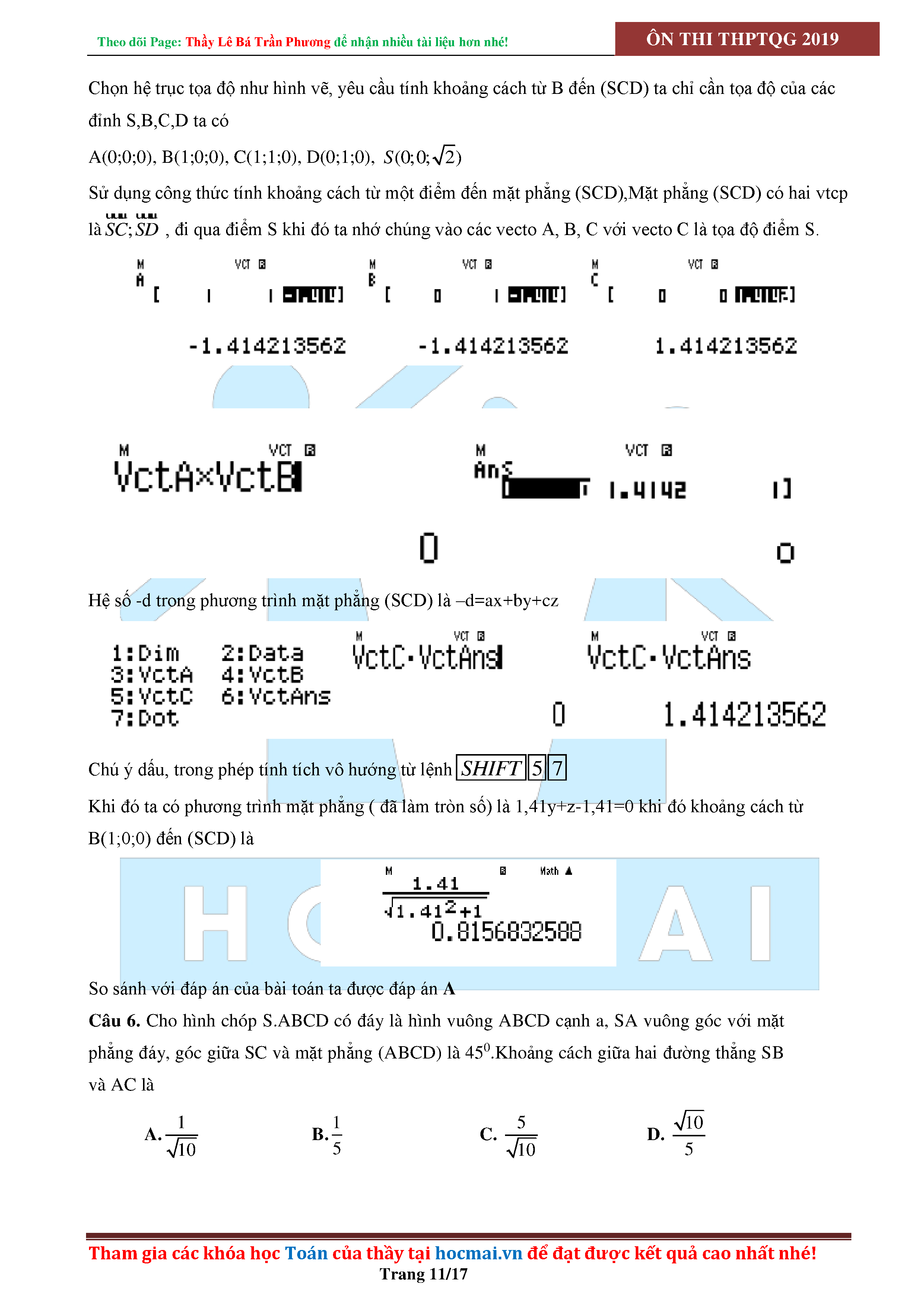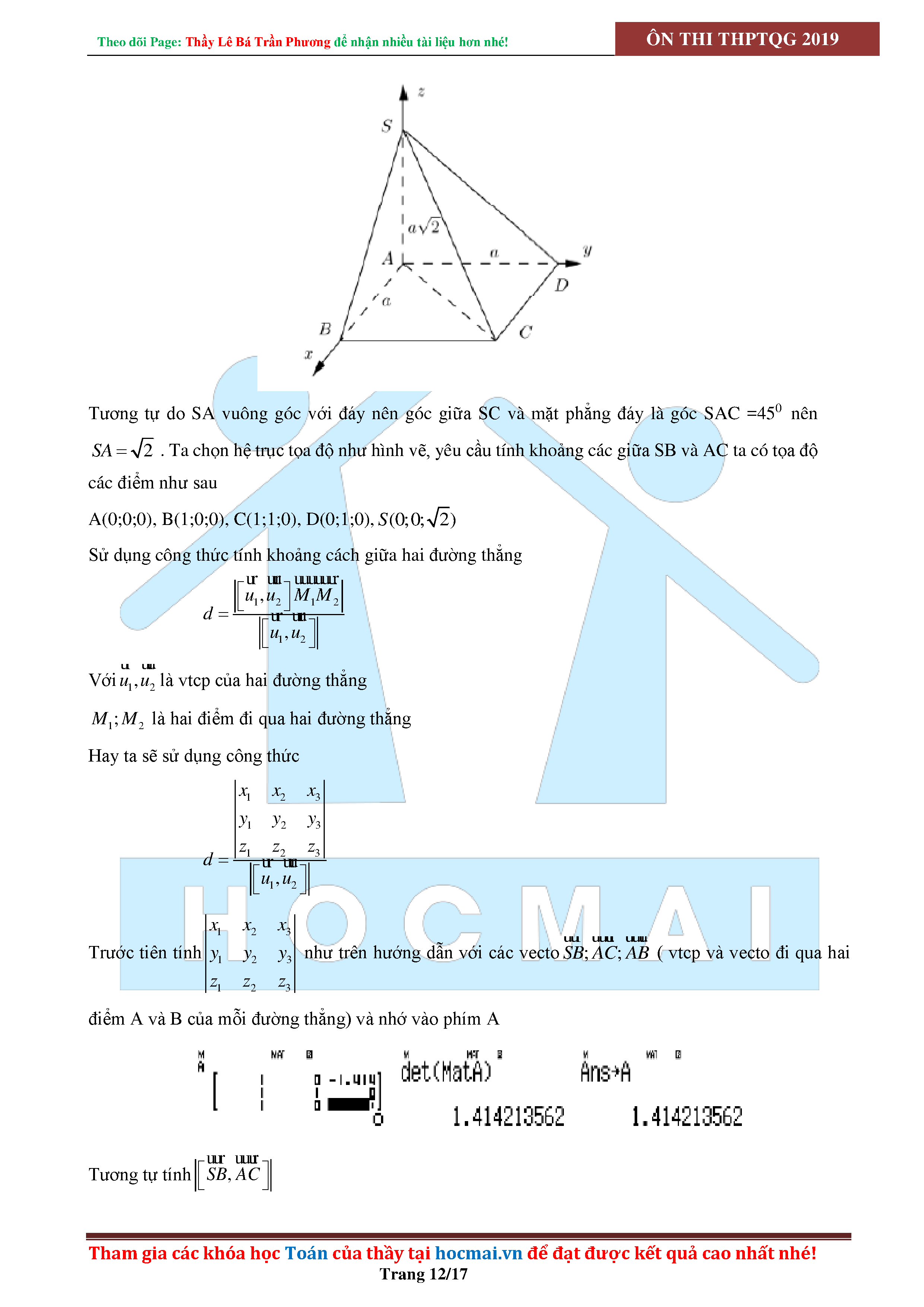 SỬ DỤNG CASIO ĐỂ GIẢI CÁC BÀI TOÁN HÌNH HỌC KHÔNG GIAN