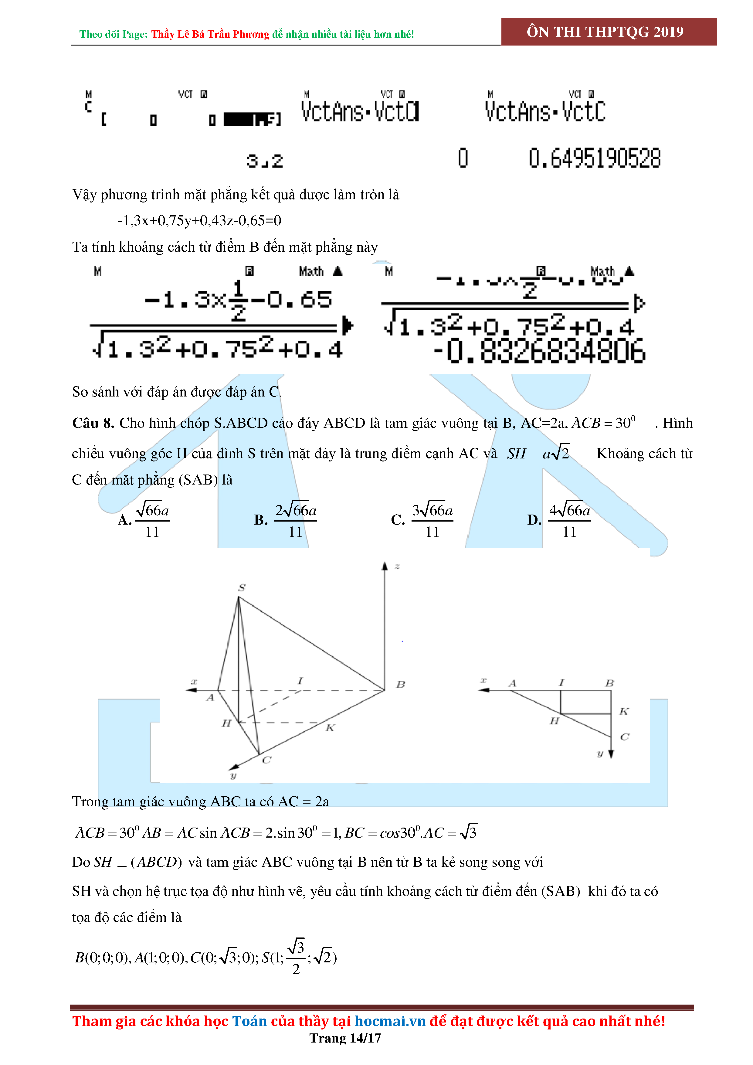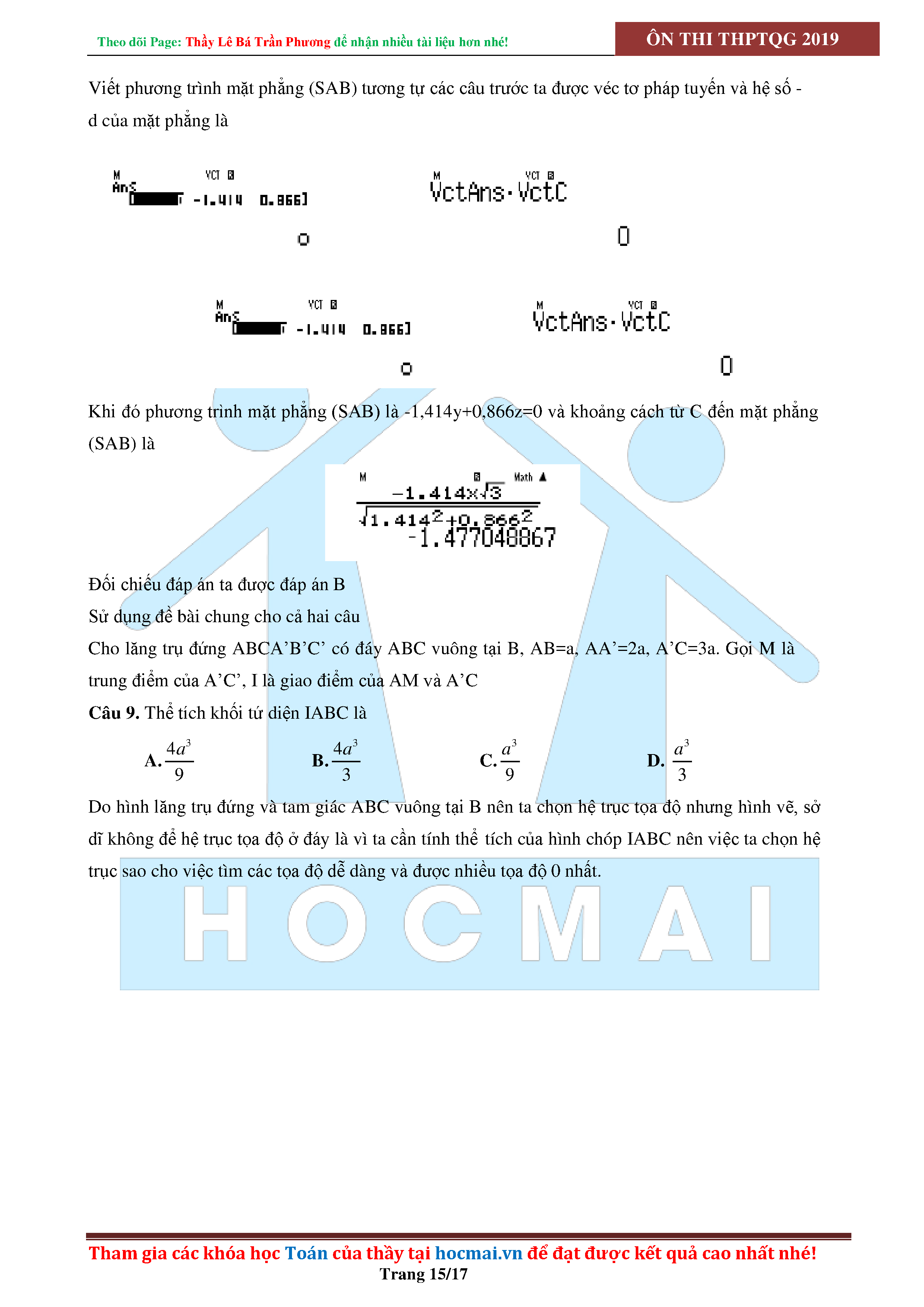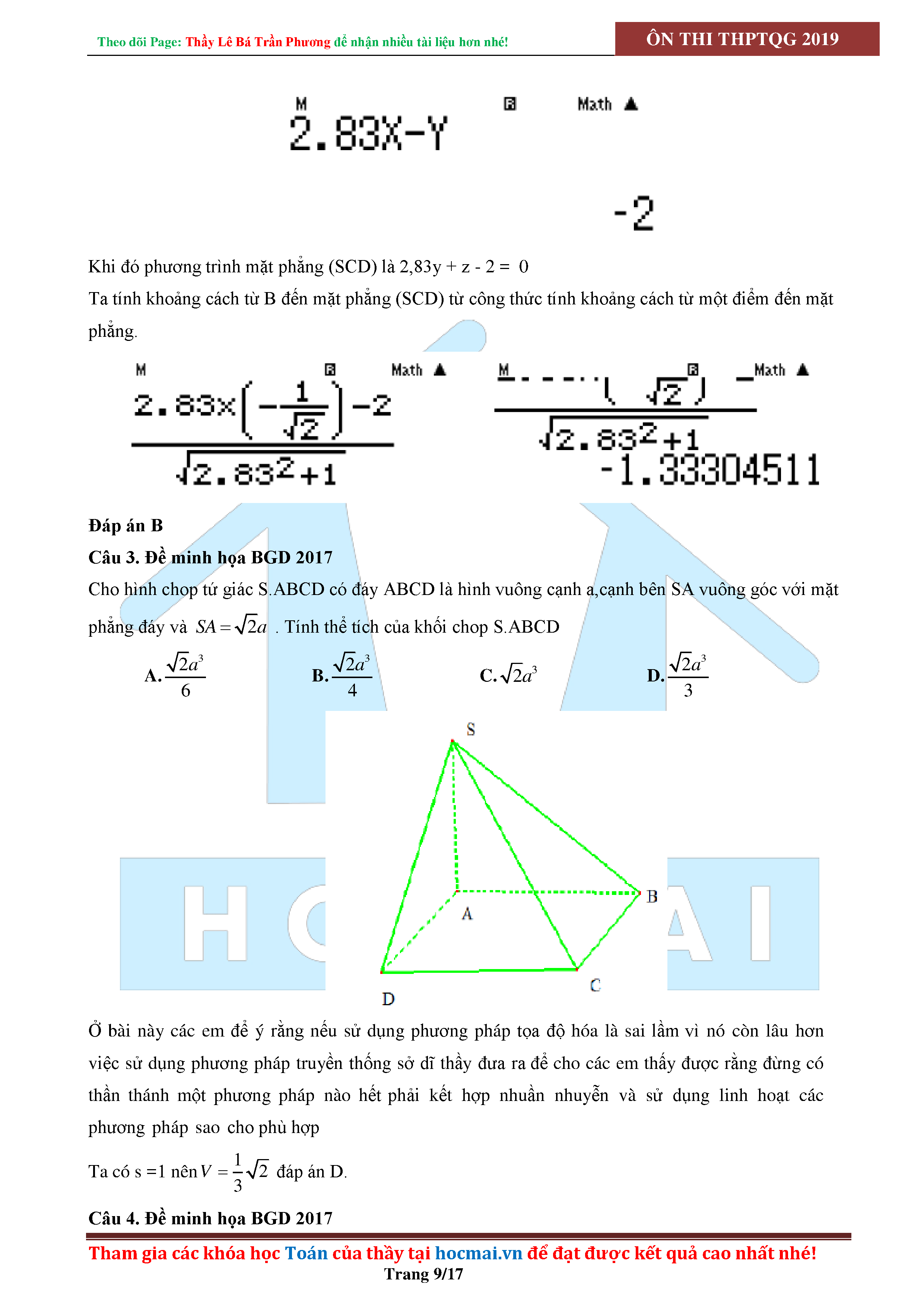 SỬ DỤNG CASIO ĐỂ GIẢI CÁC BÀI TOÁN HÌNH HỌC KHÔNG GIAN