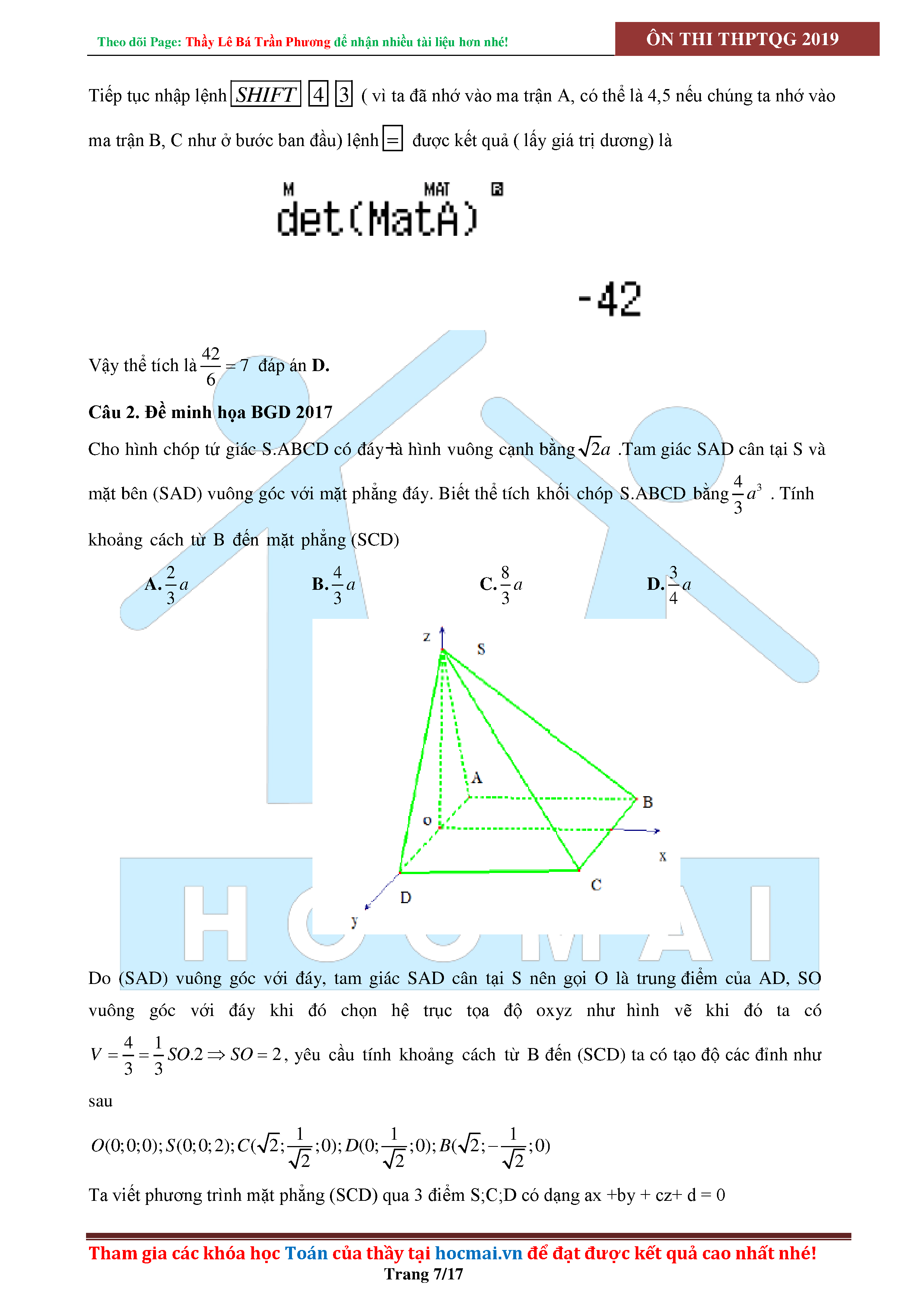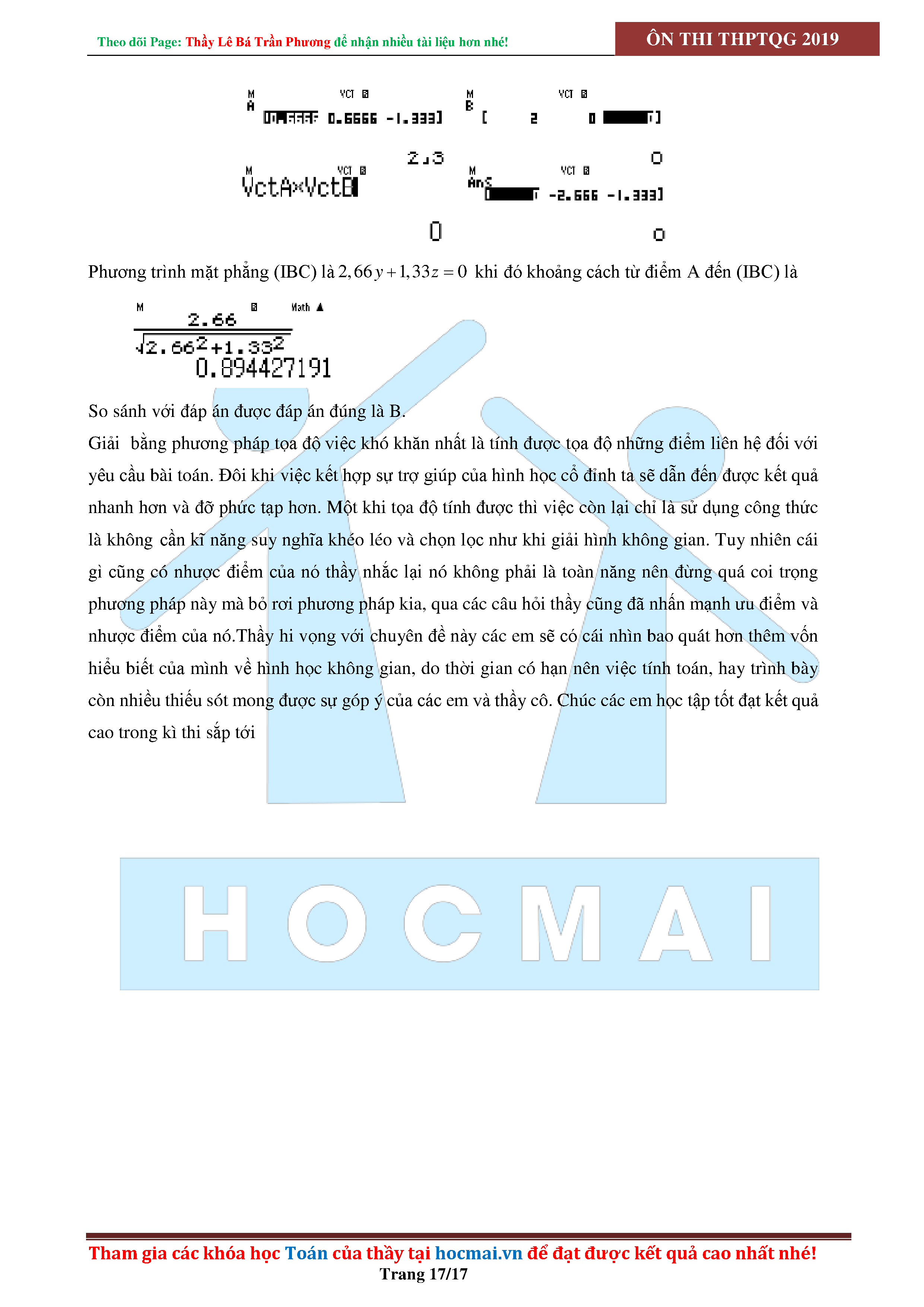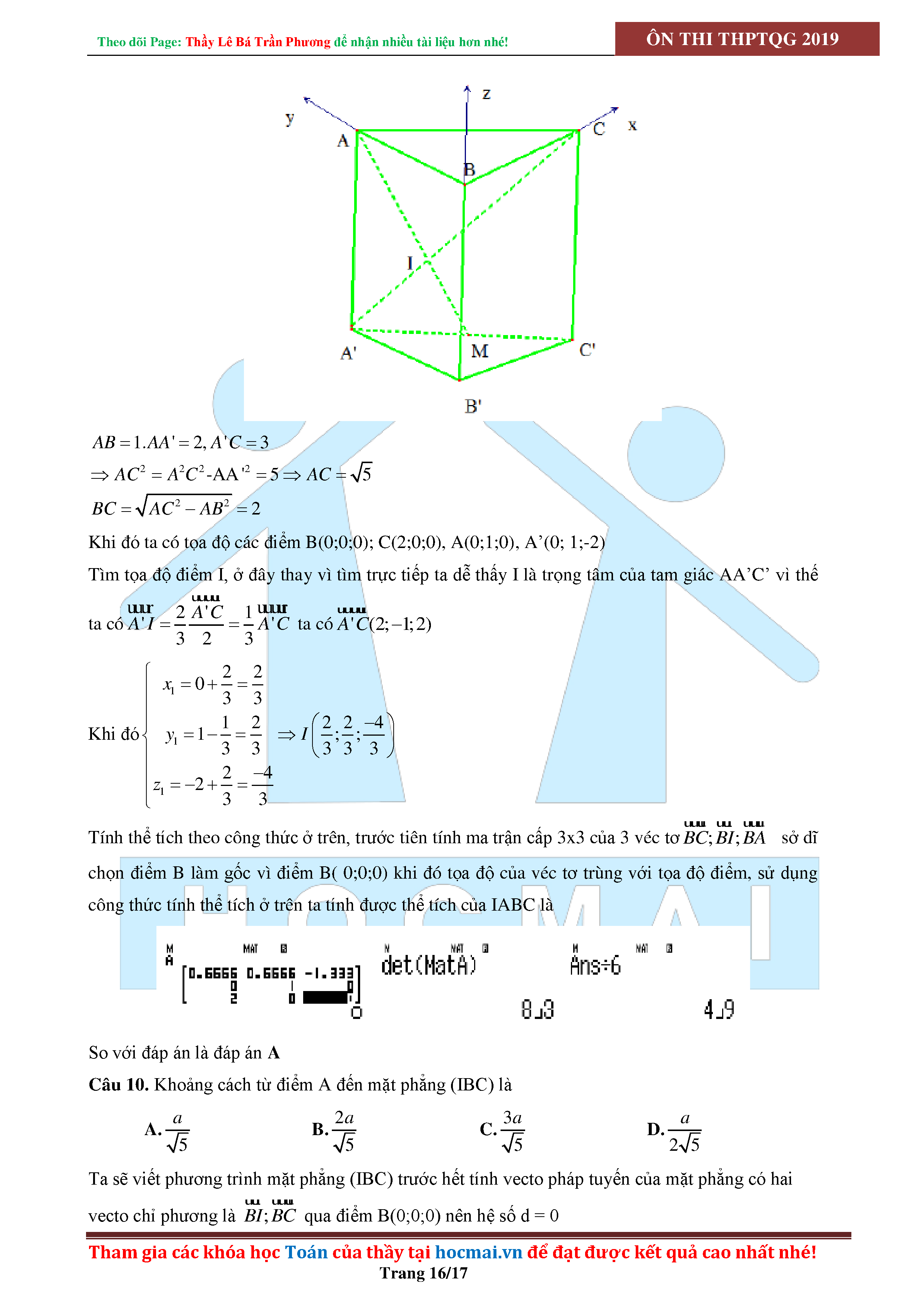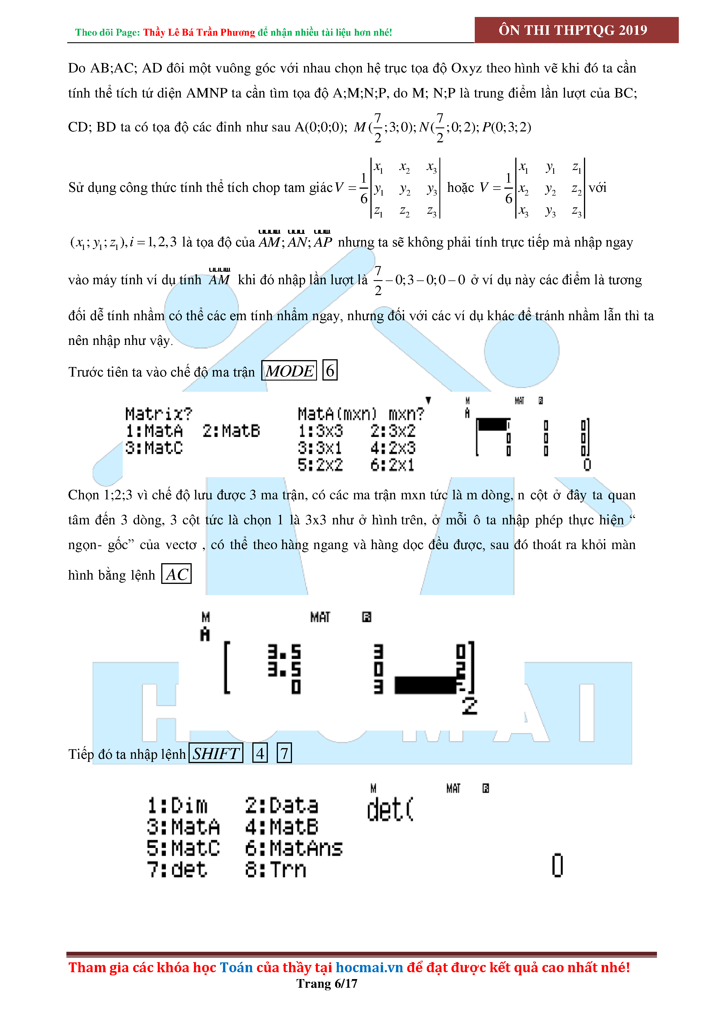 SỬ DỤNG CASIO ĐỂ GIẢI CÁC BÀI TOÁN HÌNH HỌC KHÔNG GIAN