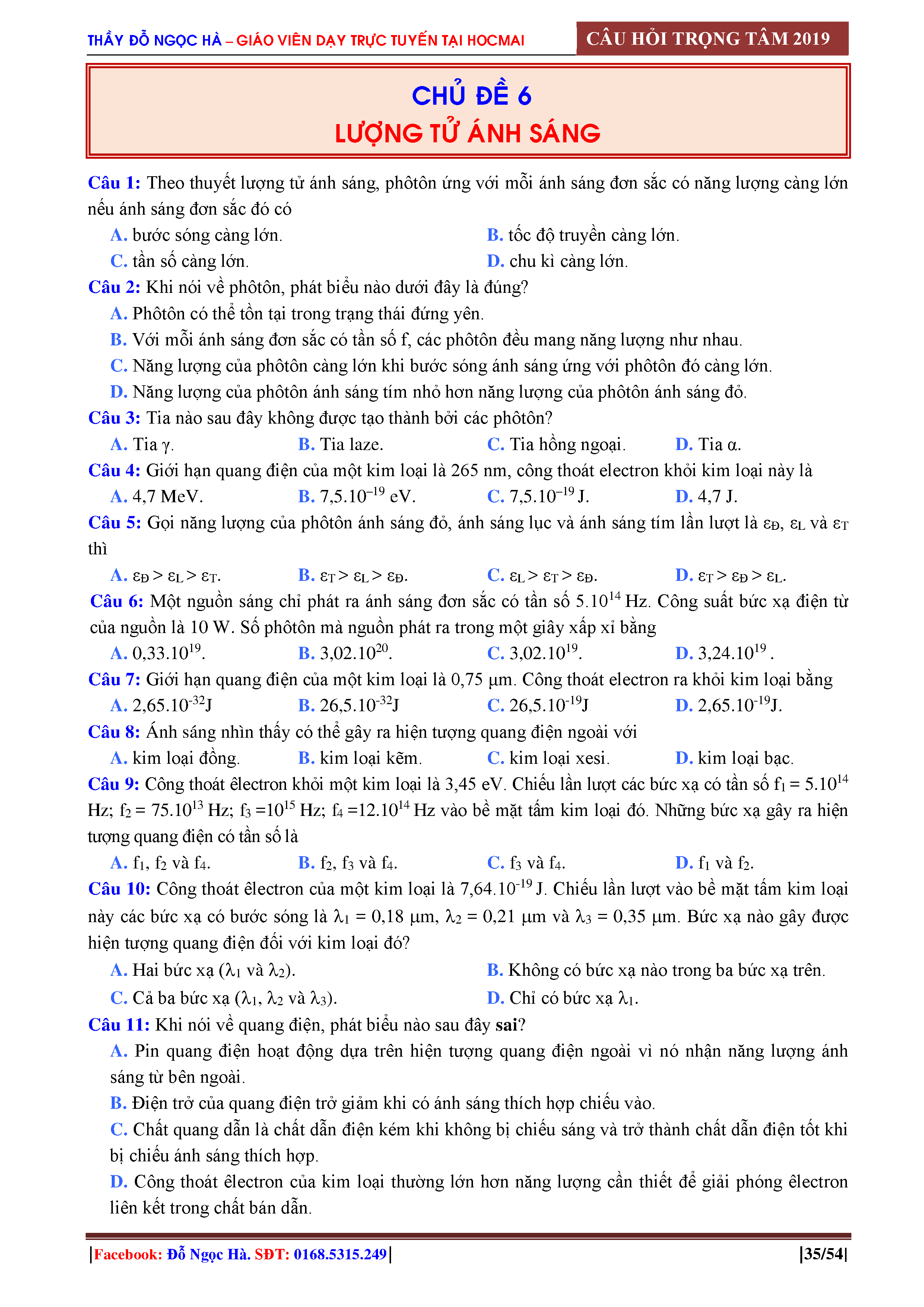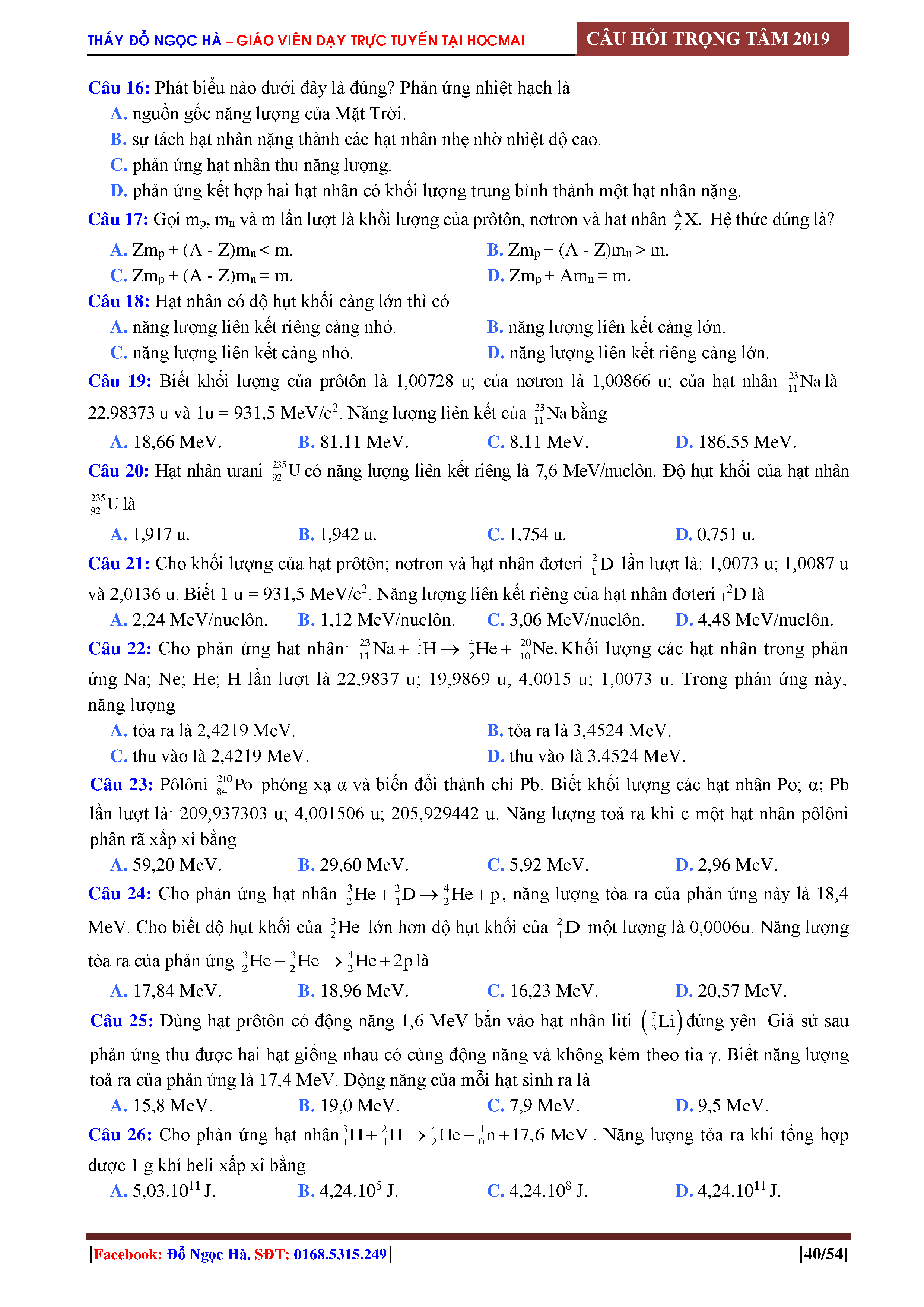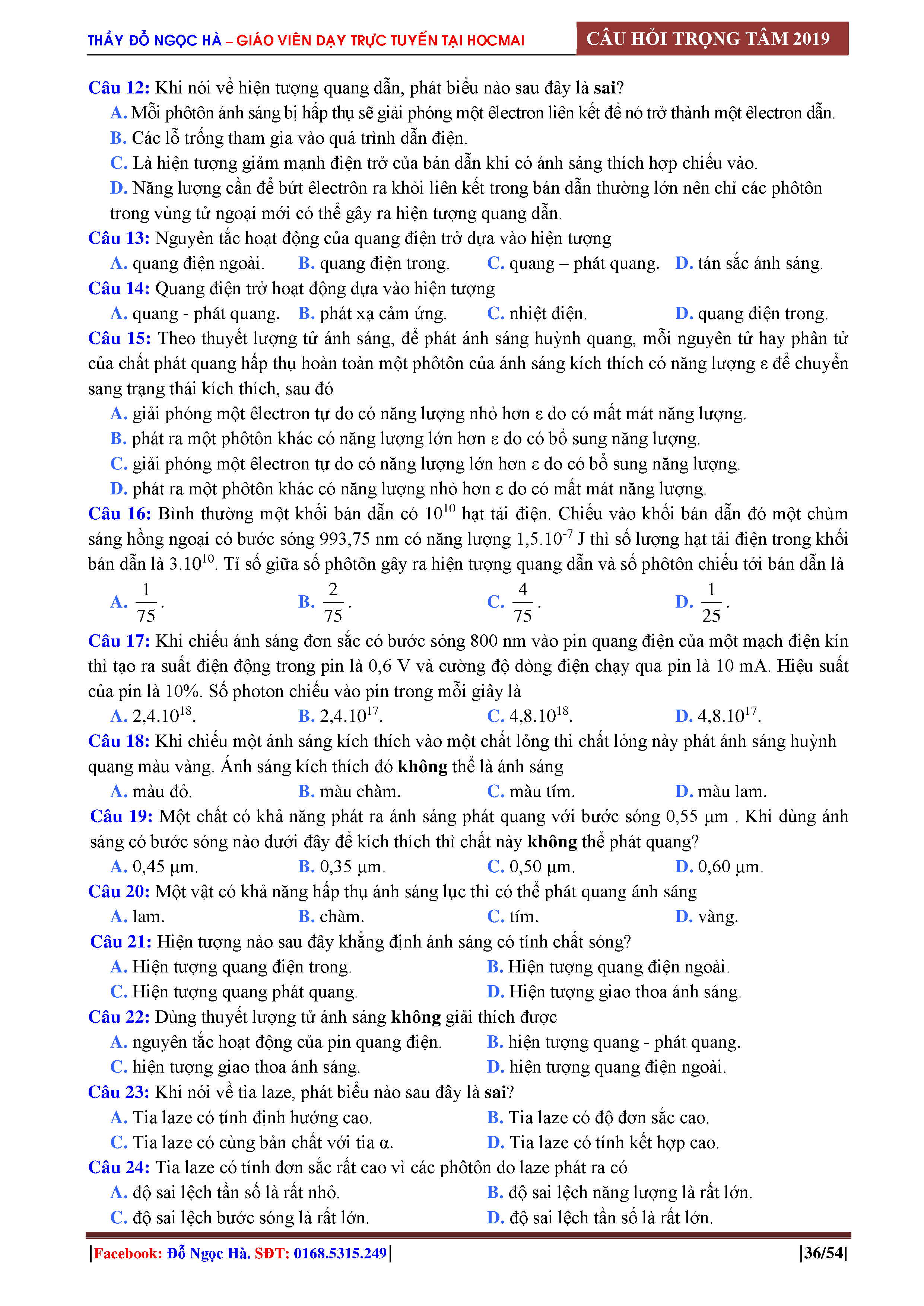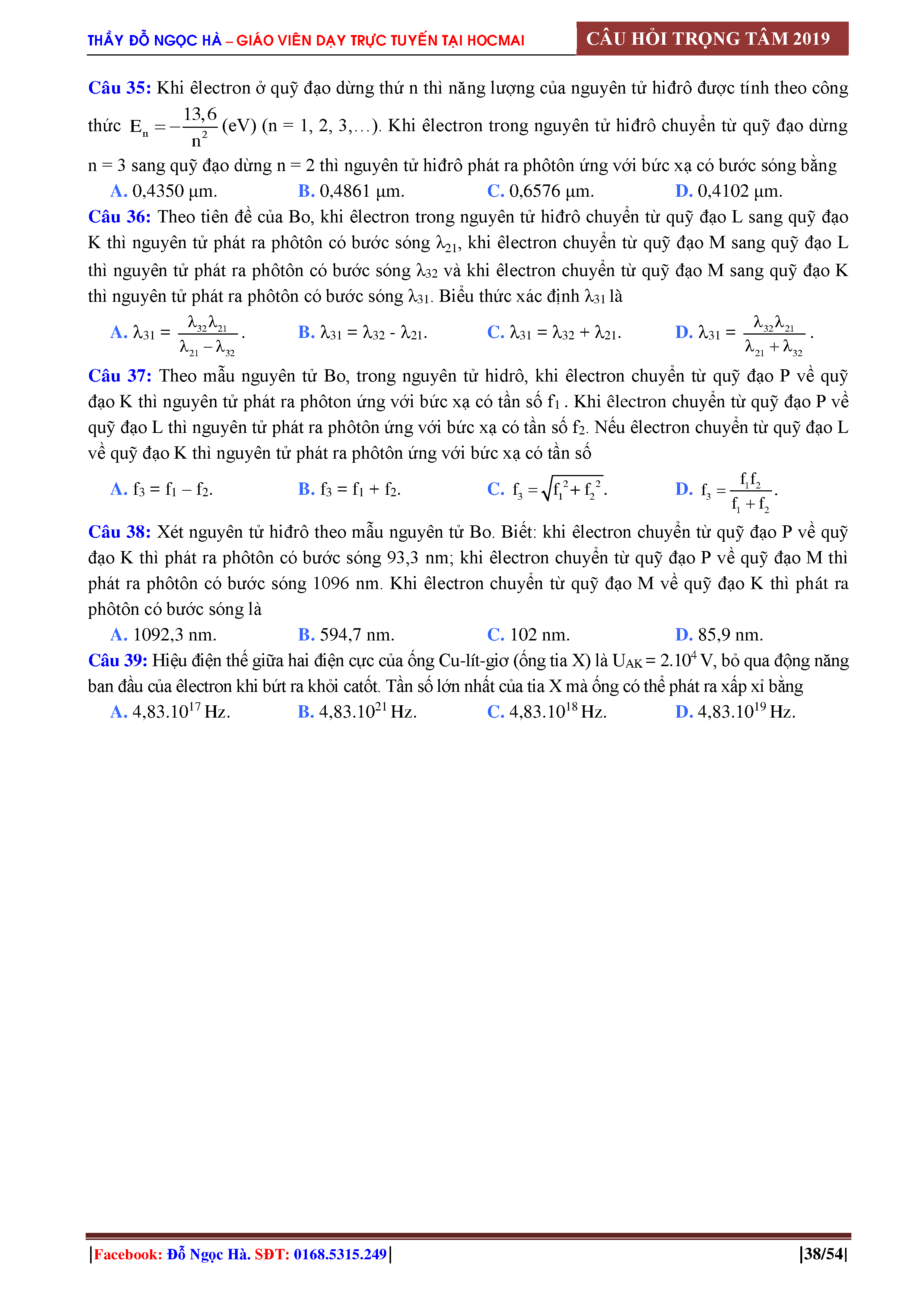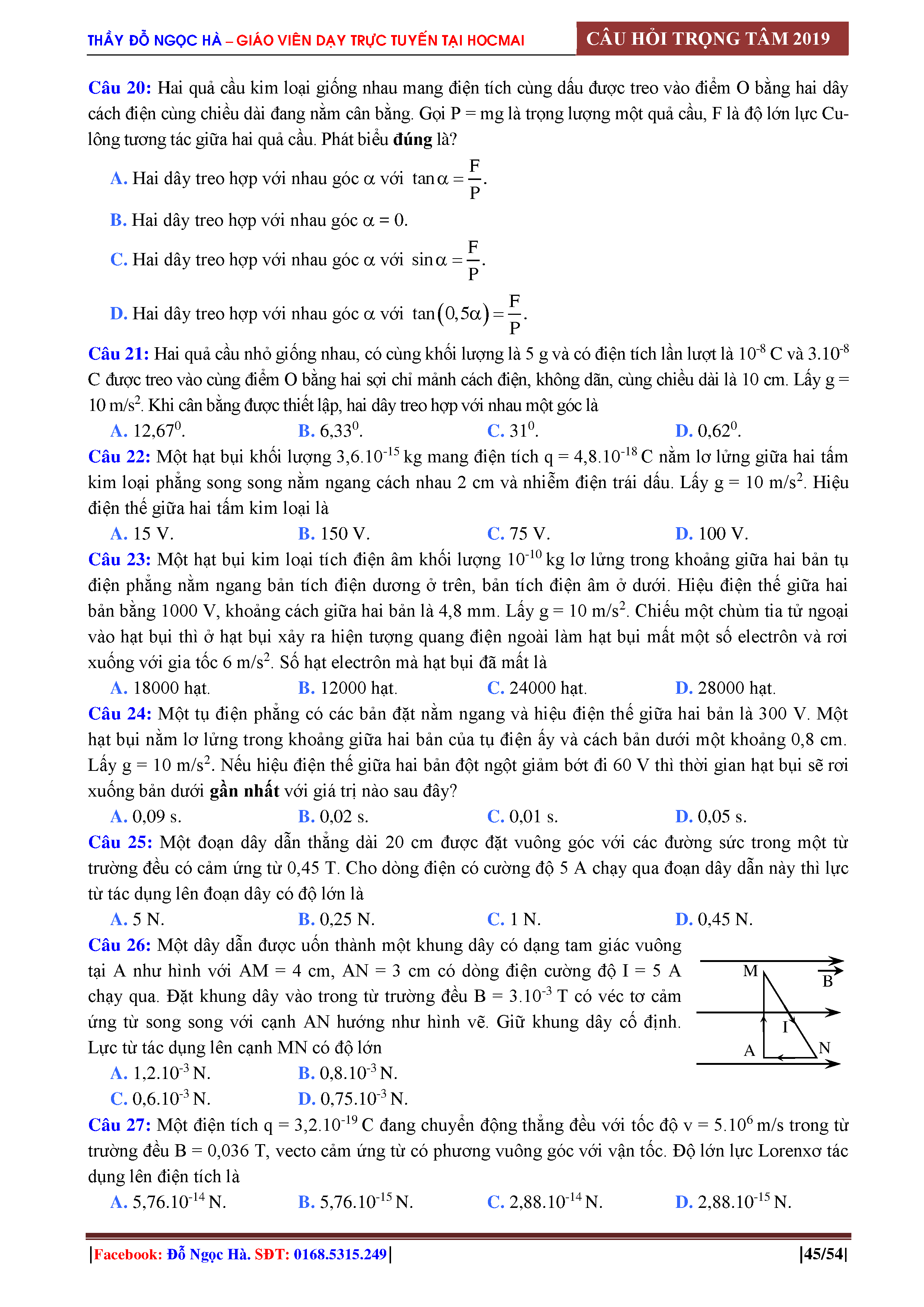 300 câu hỏi trọng tâm môn Vật Lí - Ôn thi THPT QG năm 2019