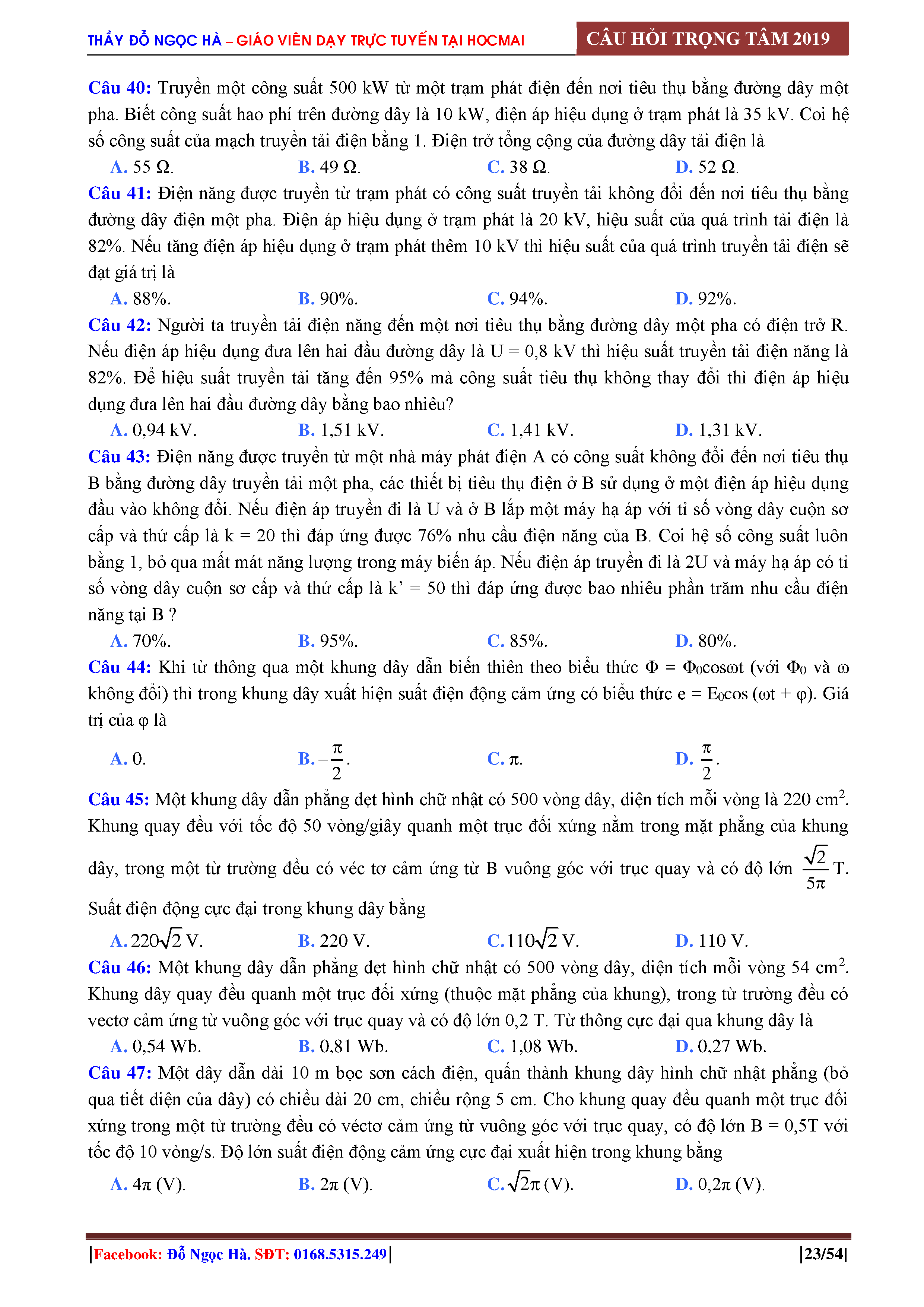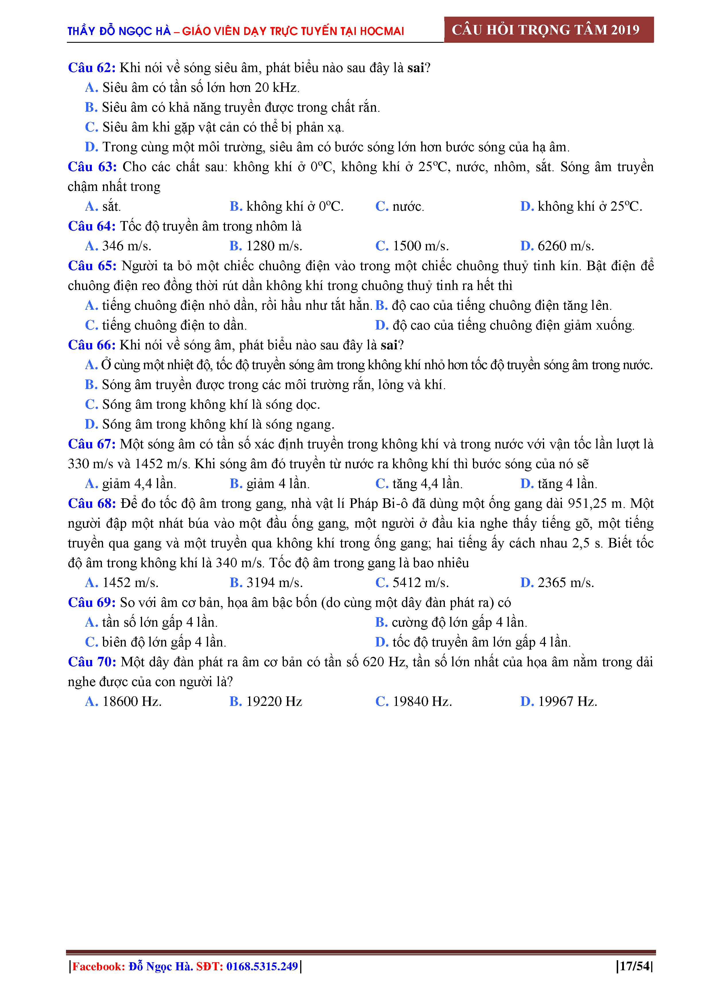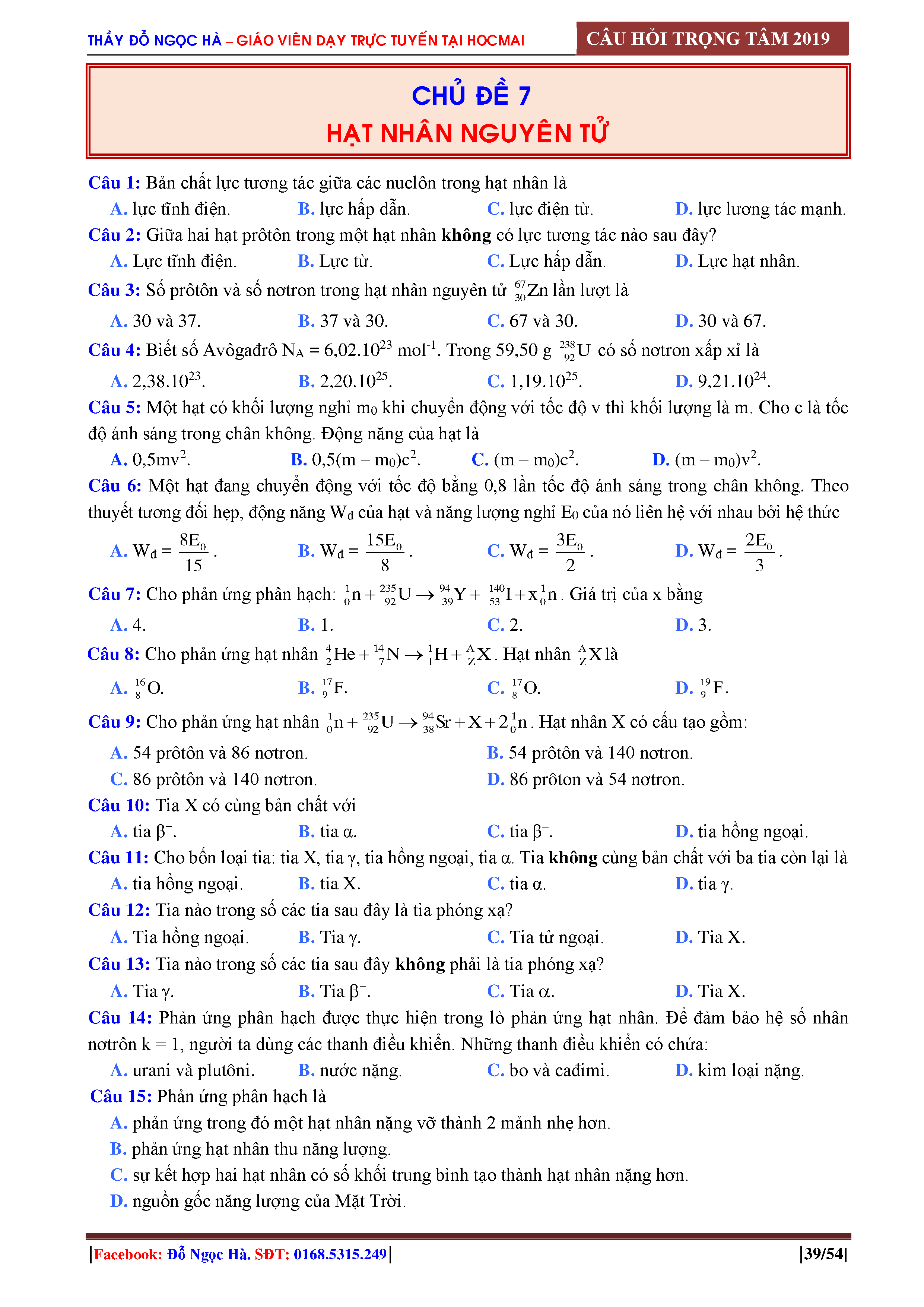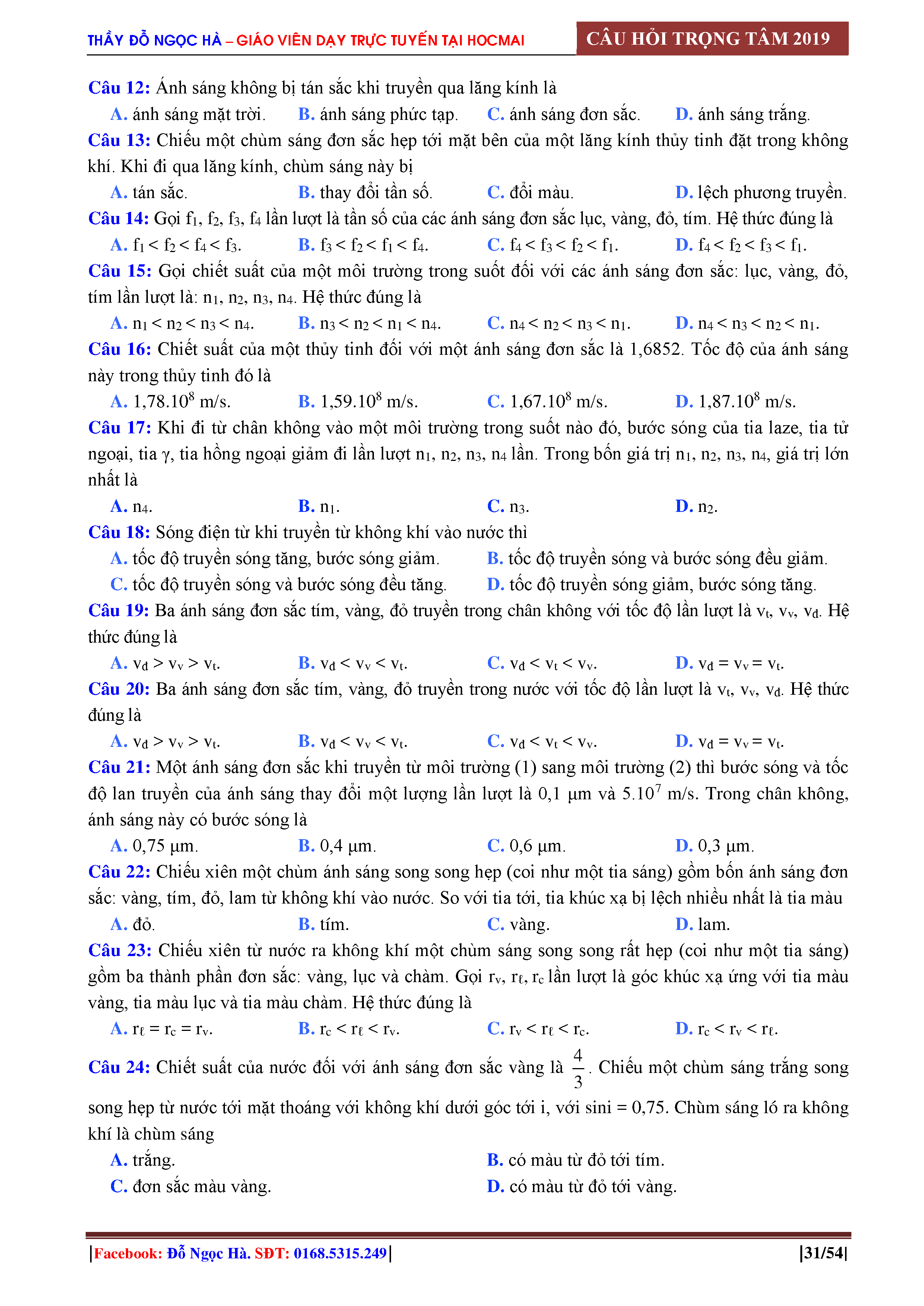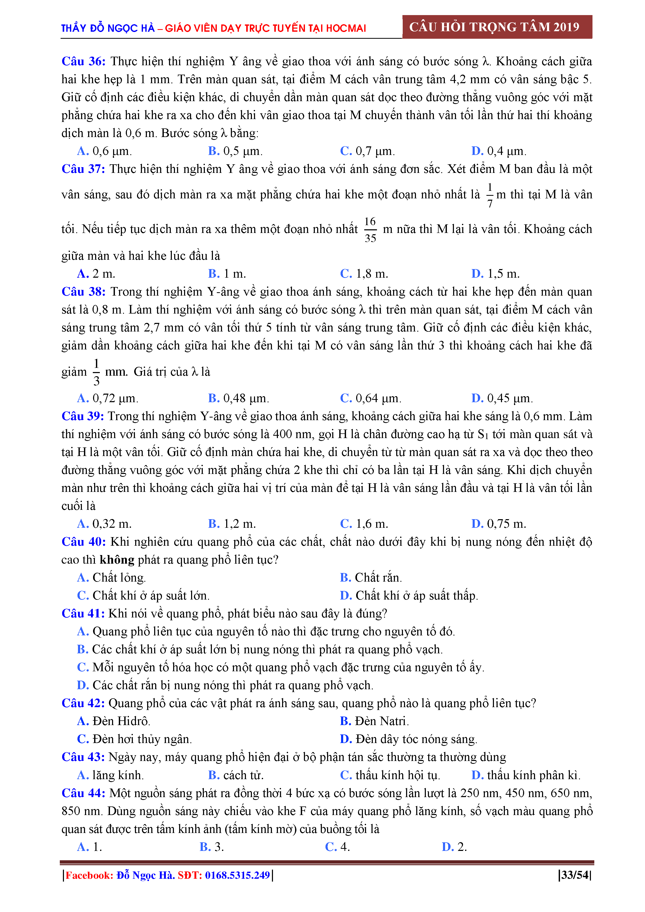 300 câu hỏi trọng tâm môn Vật Lí - Ôn thi THPT QG năm 2019