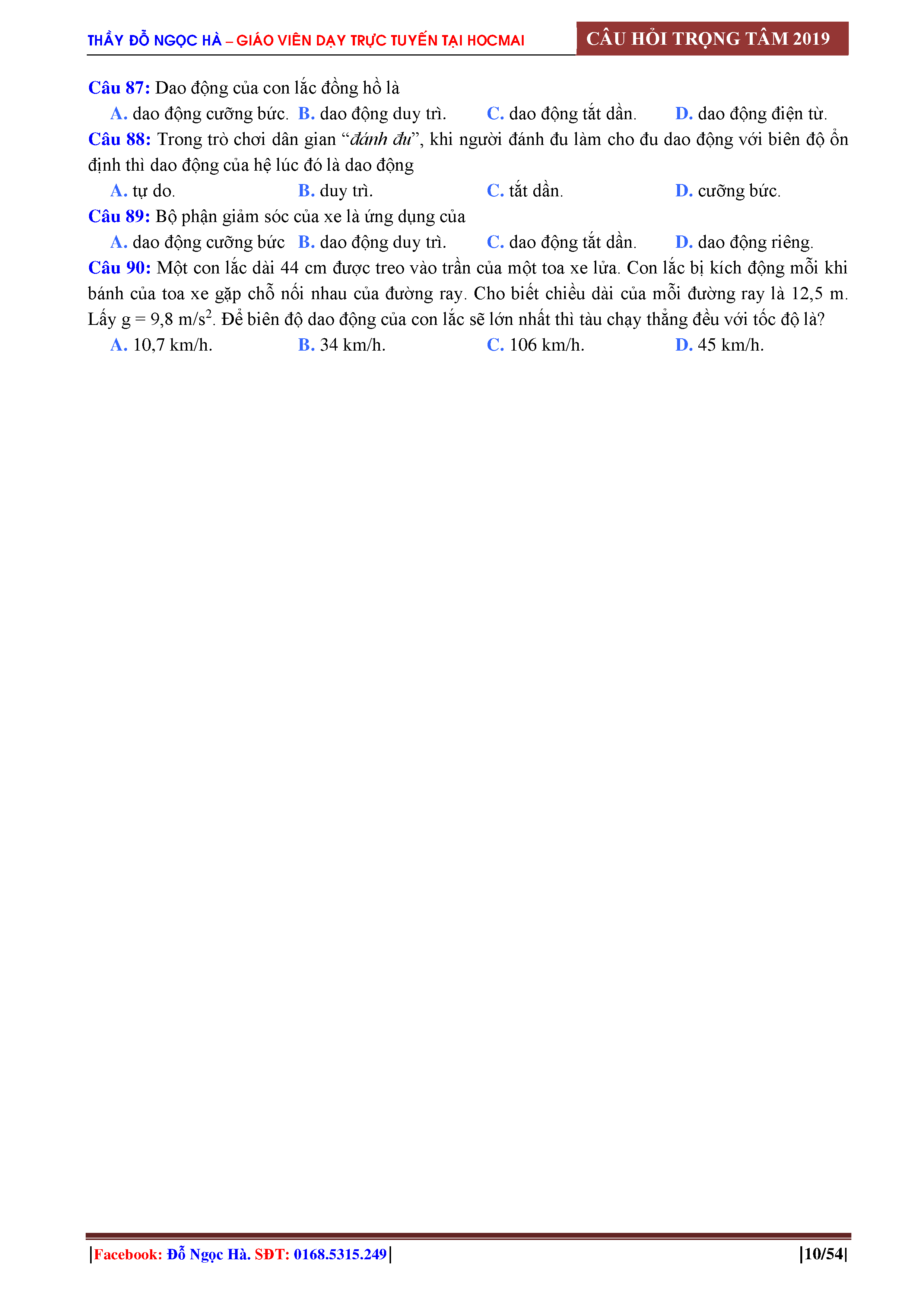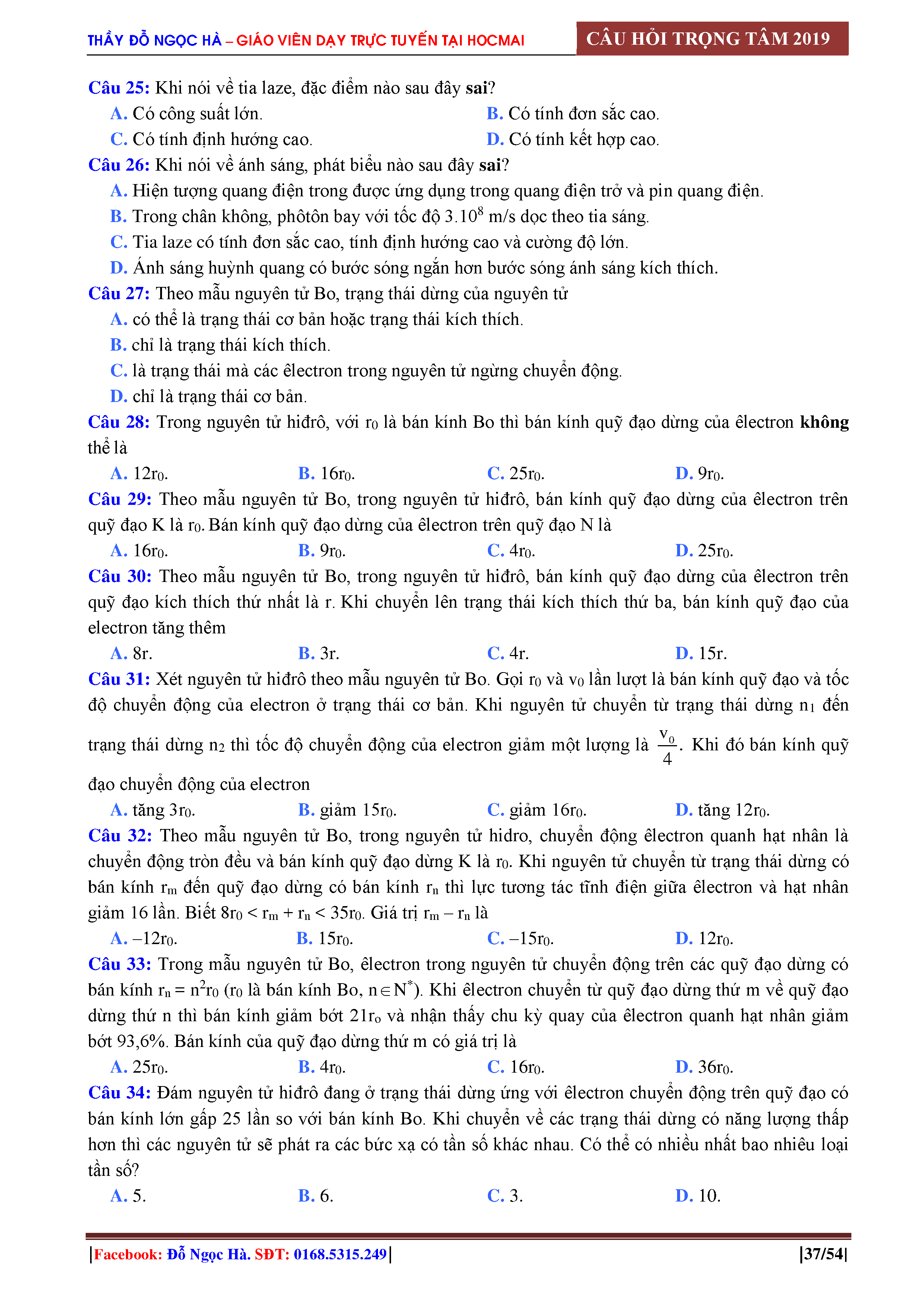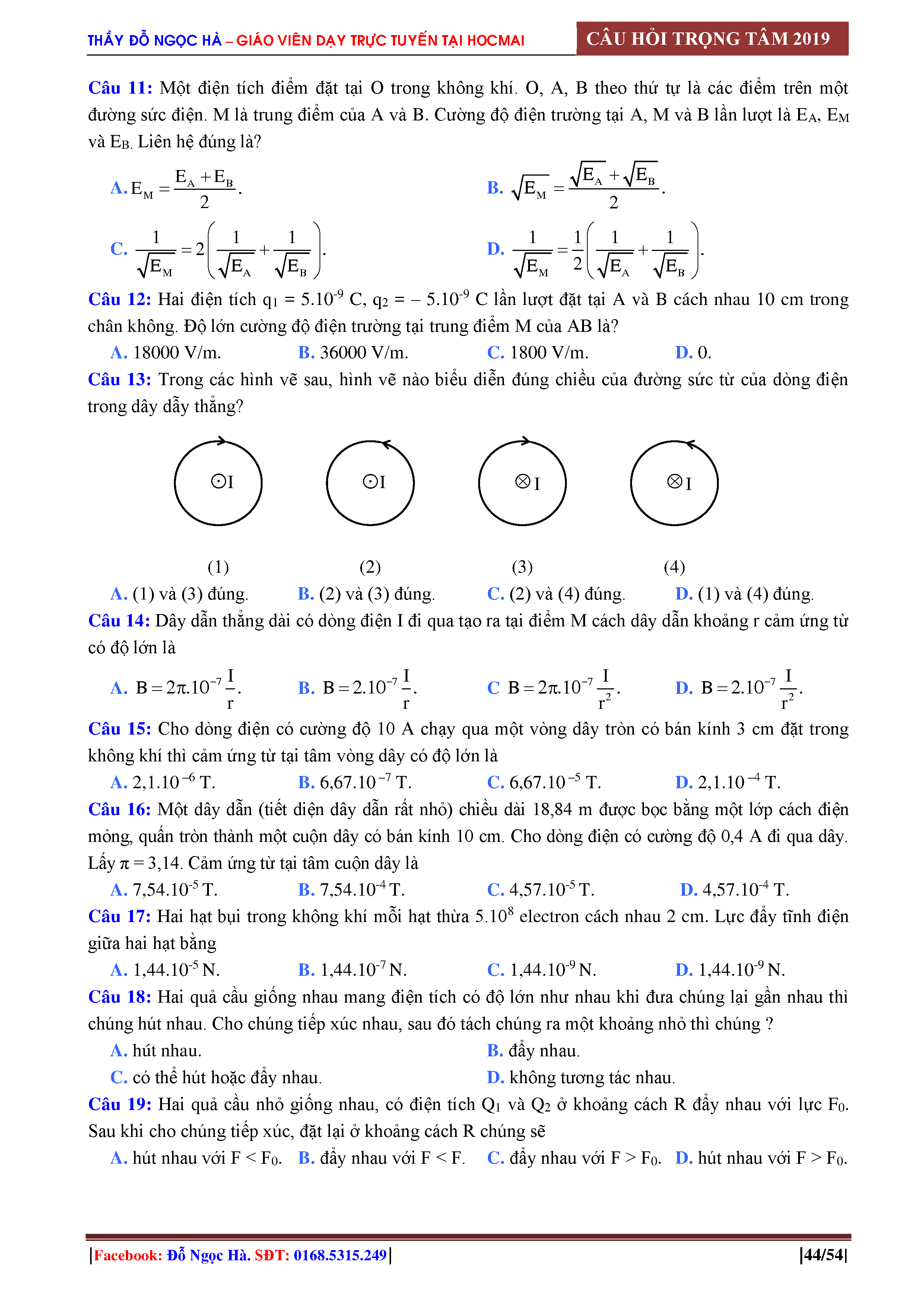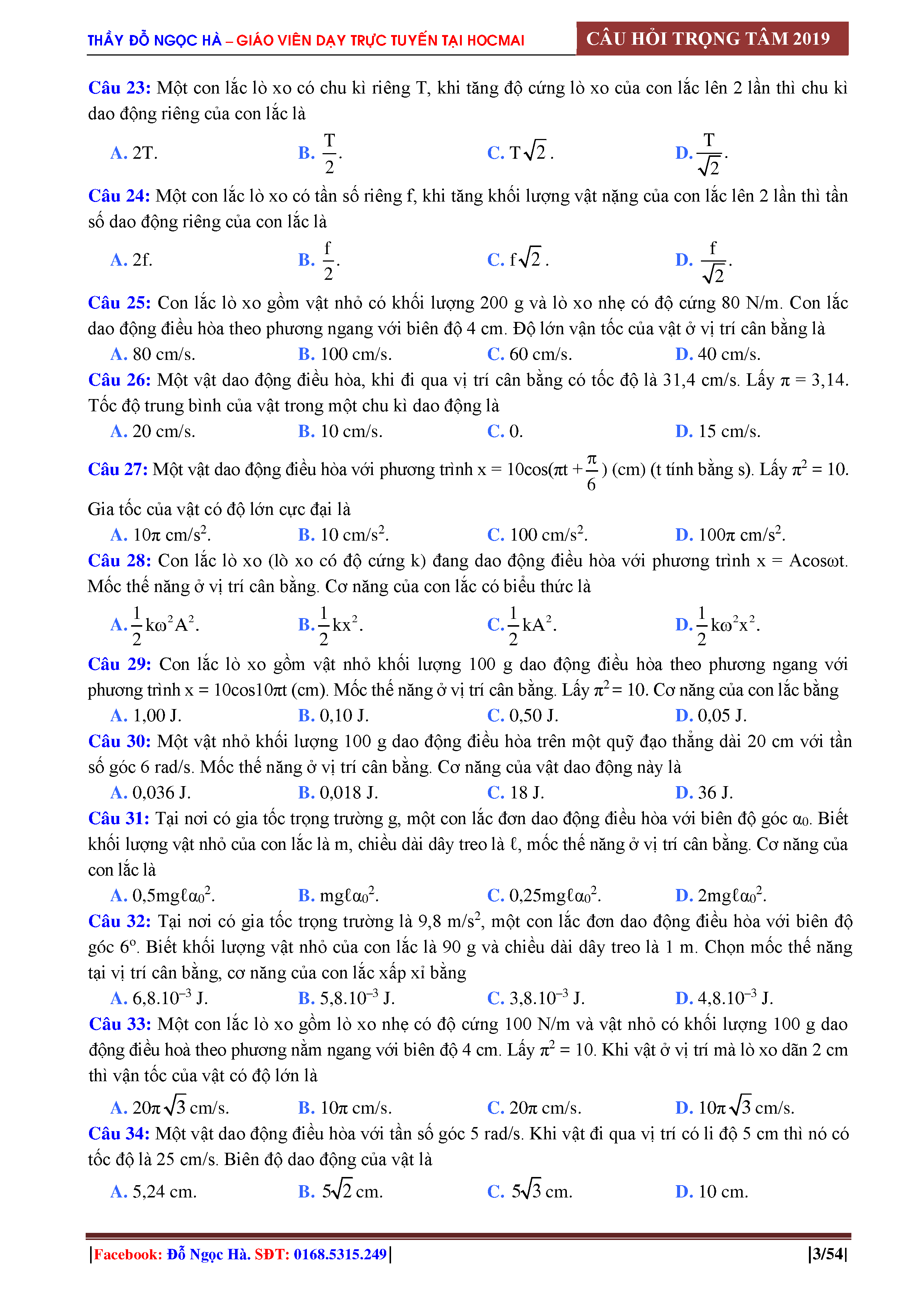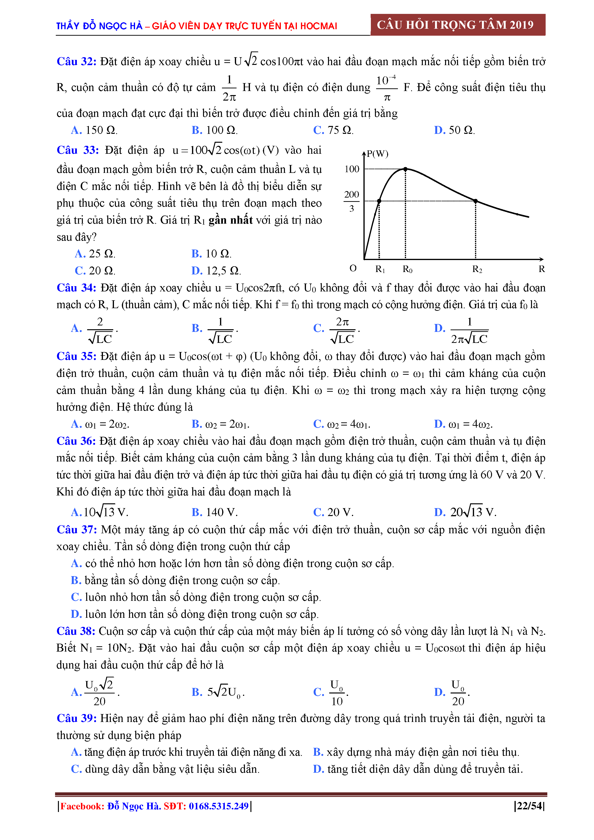 300 câu hỏi trọng tâm môn Vật Lí - Ôn thi THPT QG năm 2019