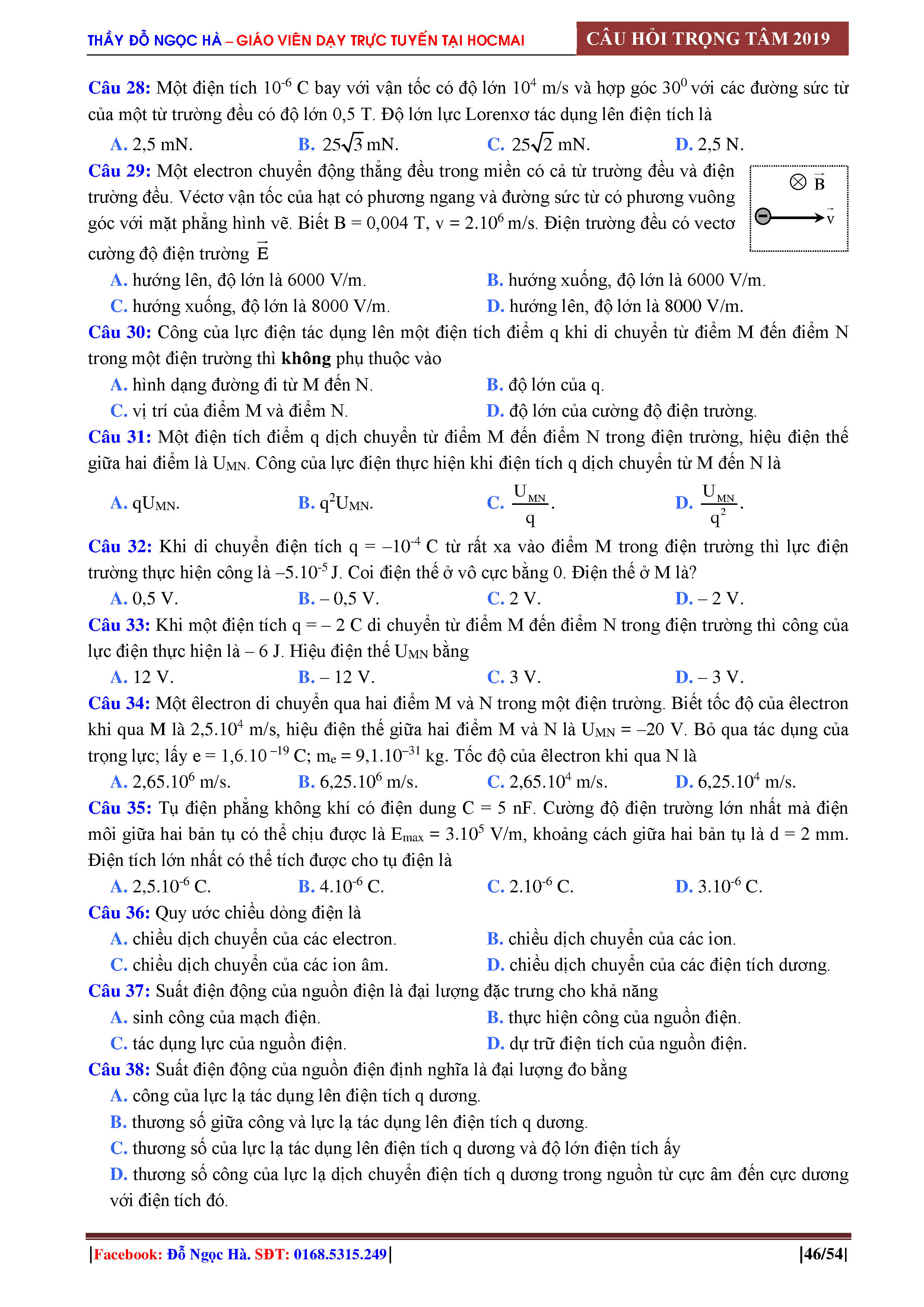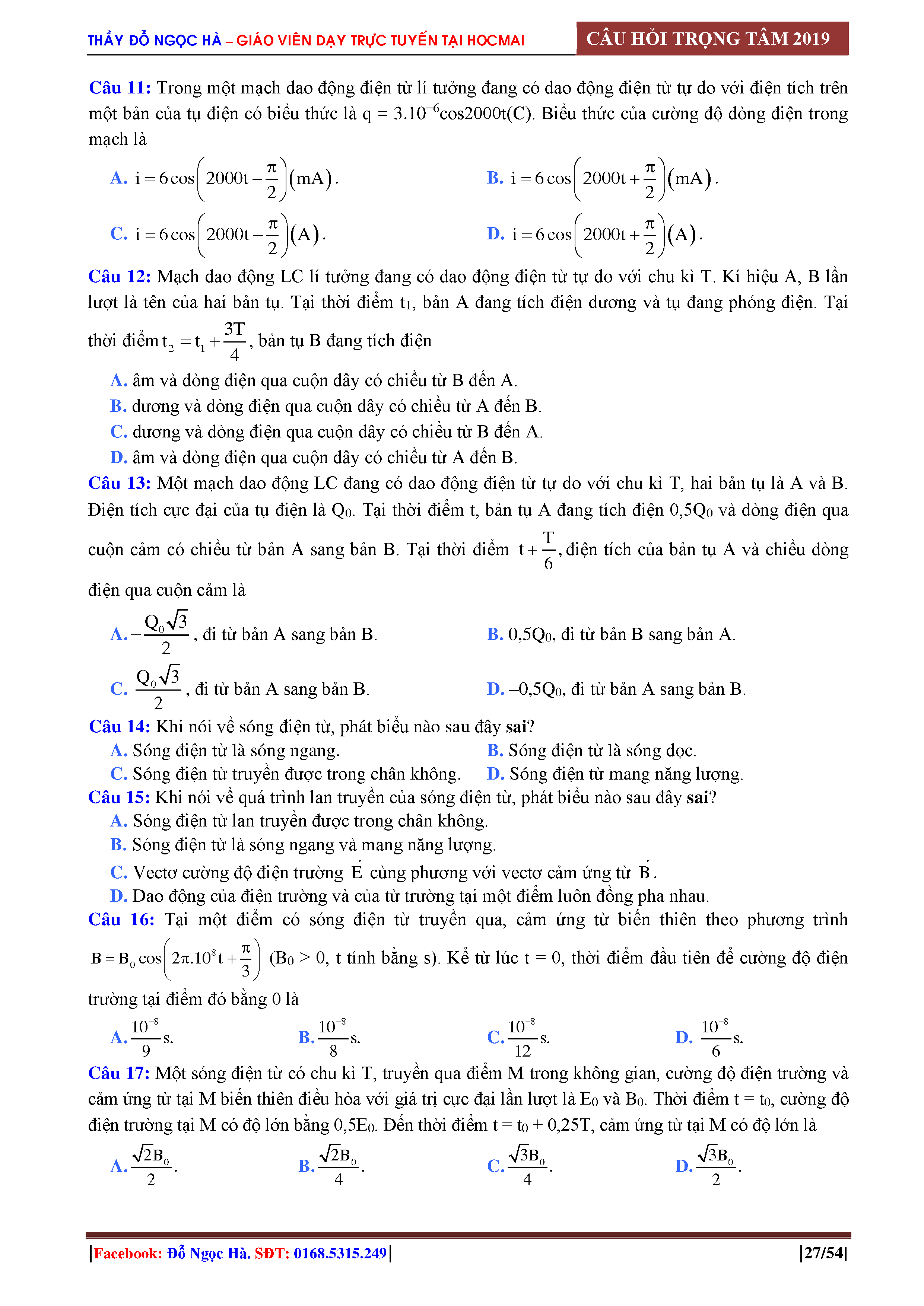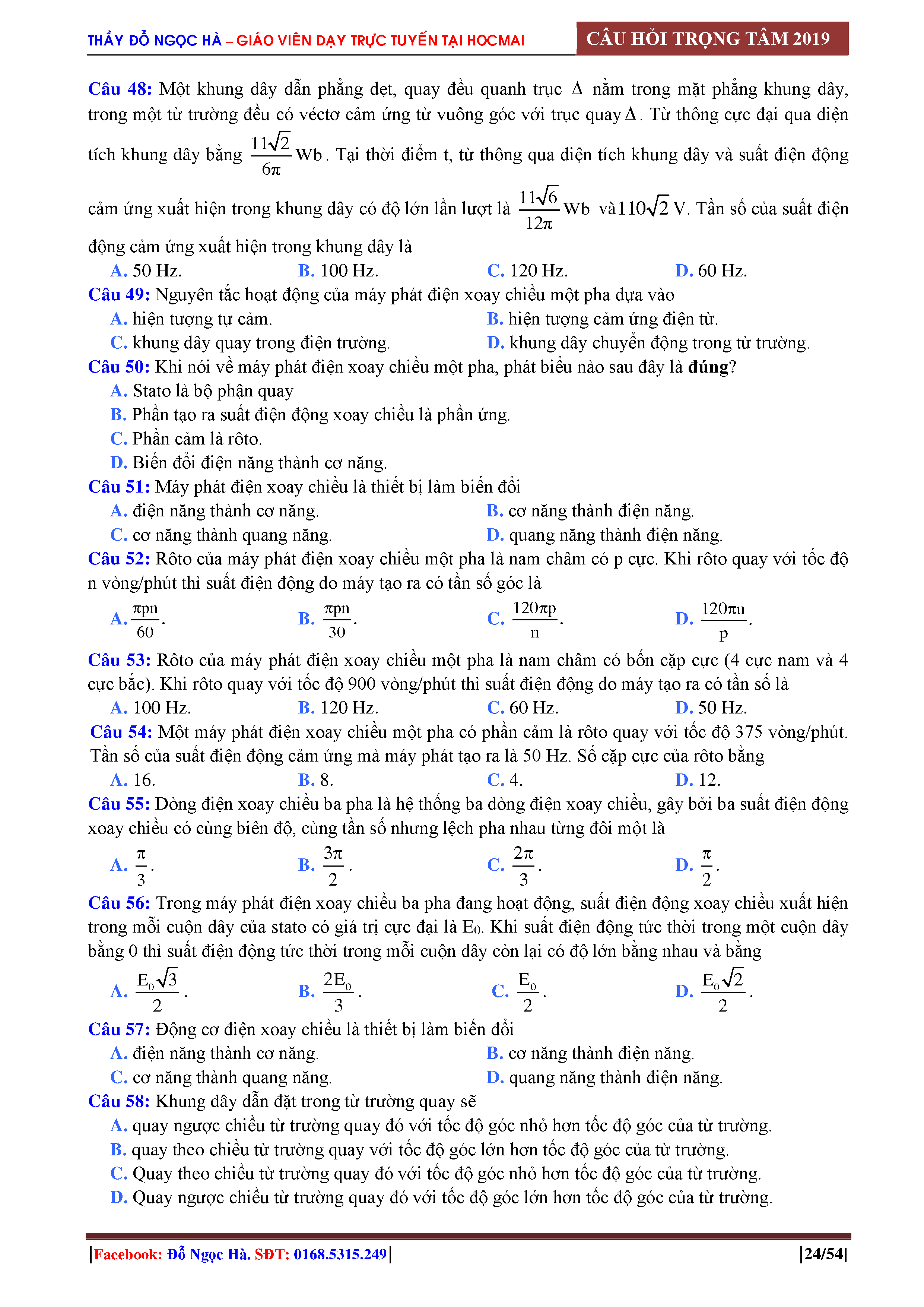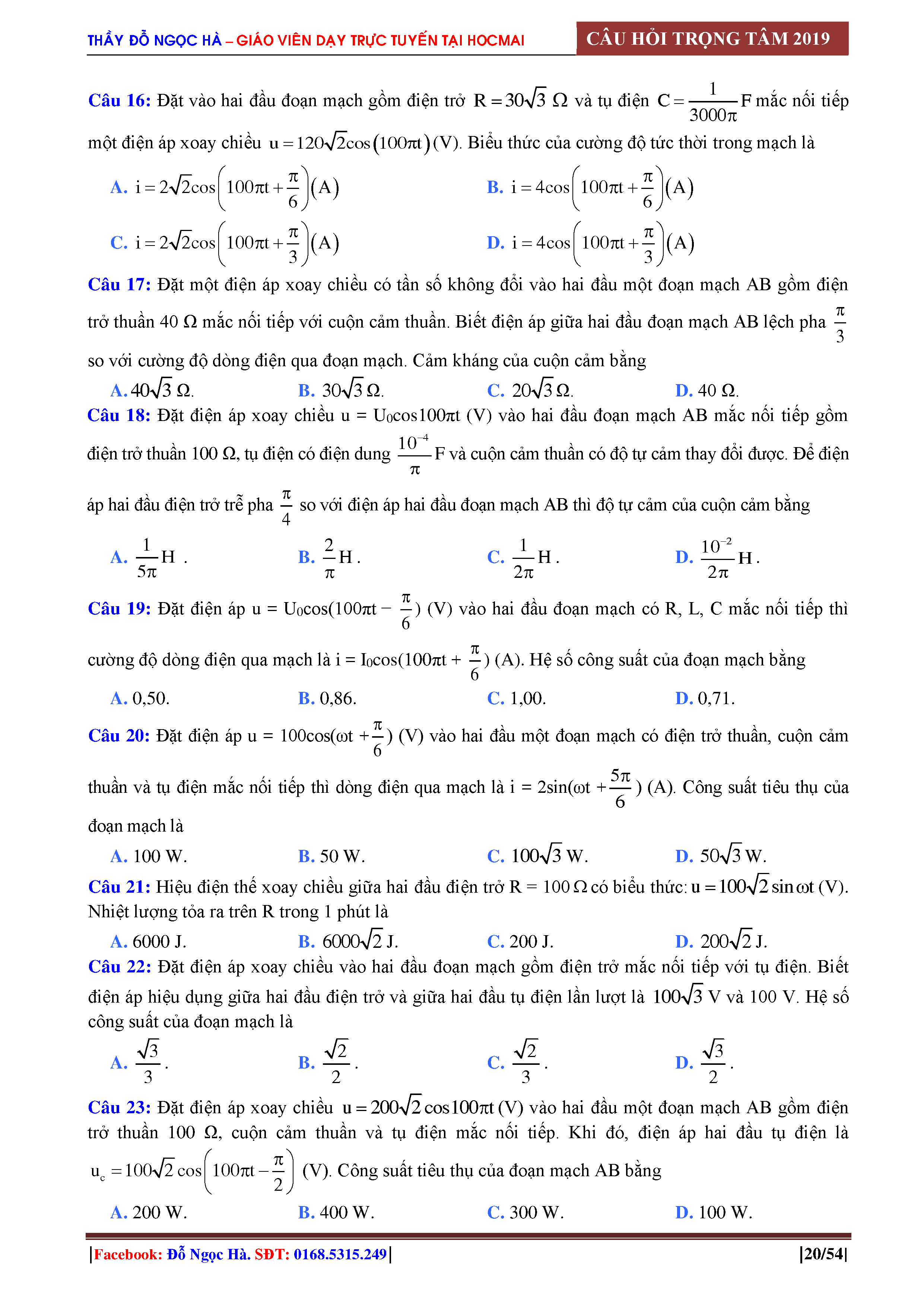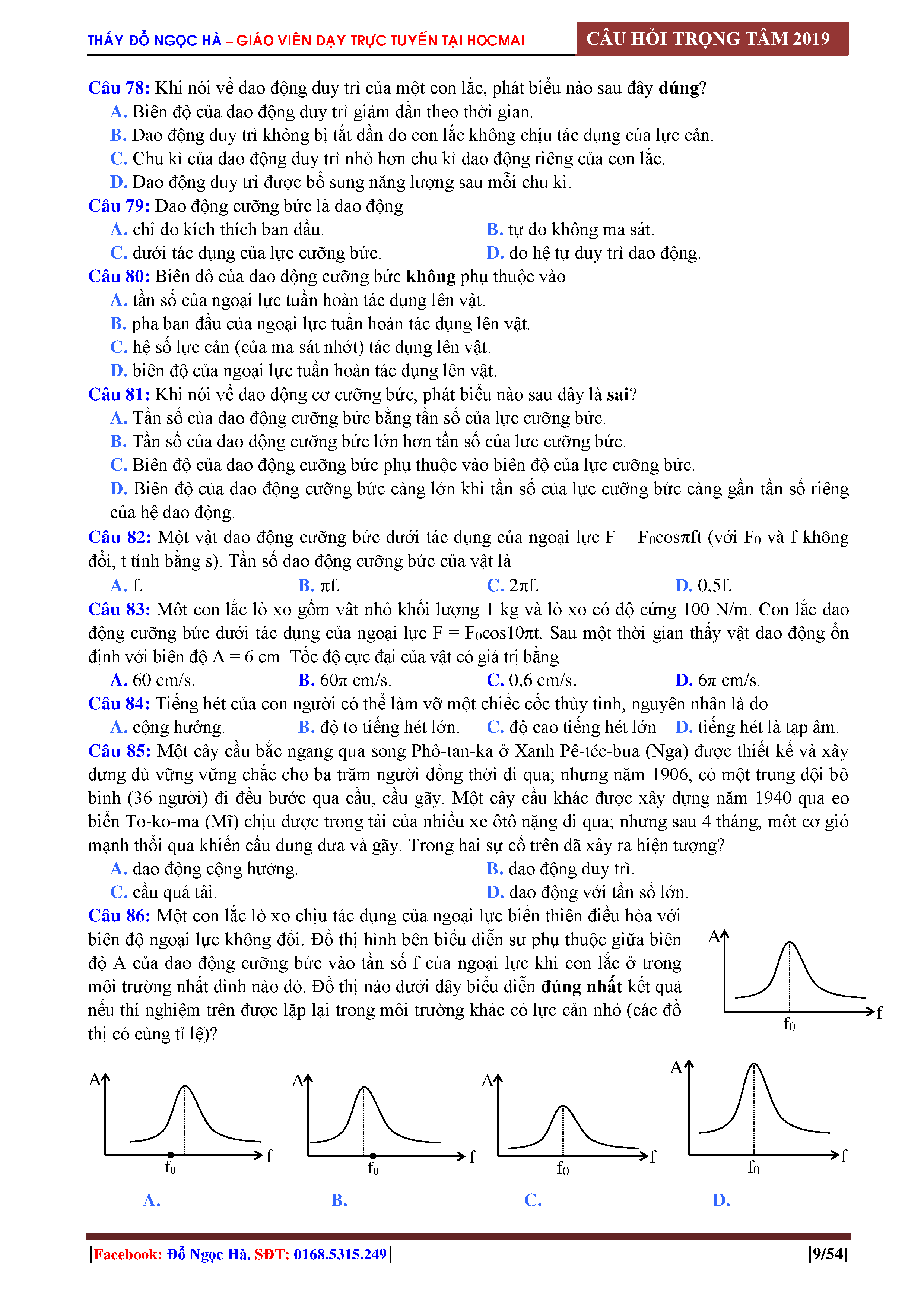 300 câu hỏi trọng tâm môn Vật Lí - Ôn thi THPT QG năm 2019