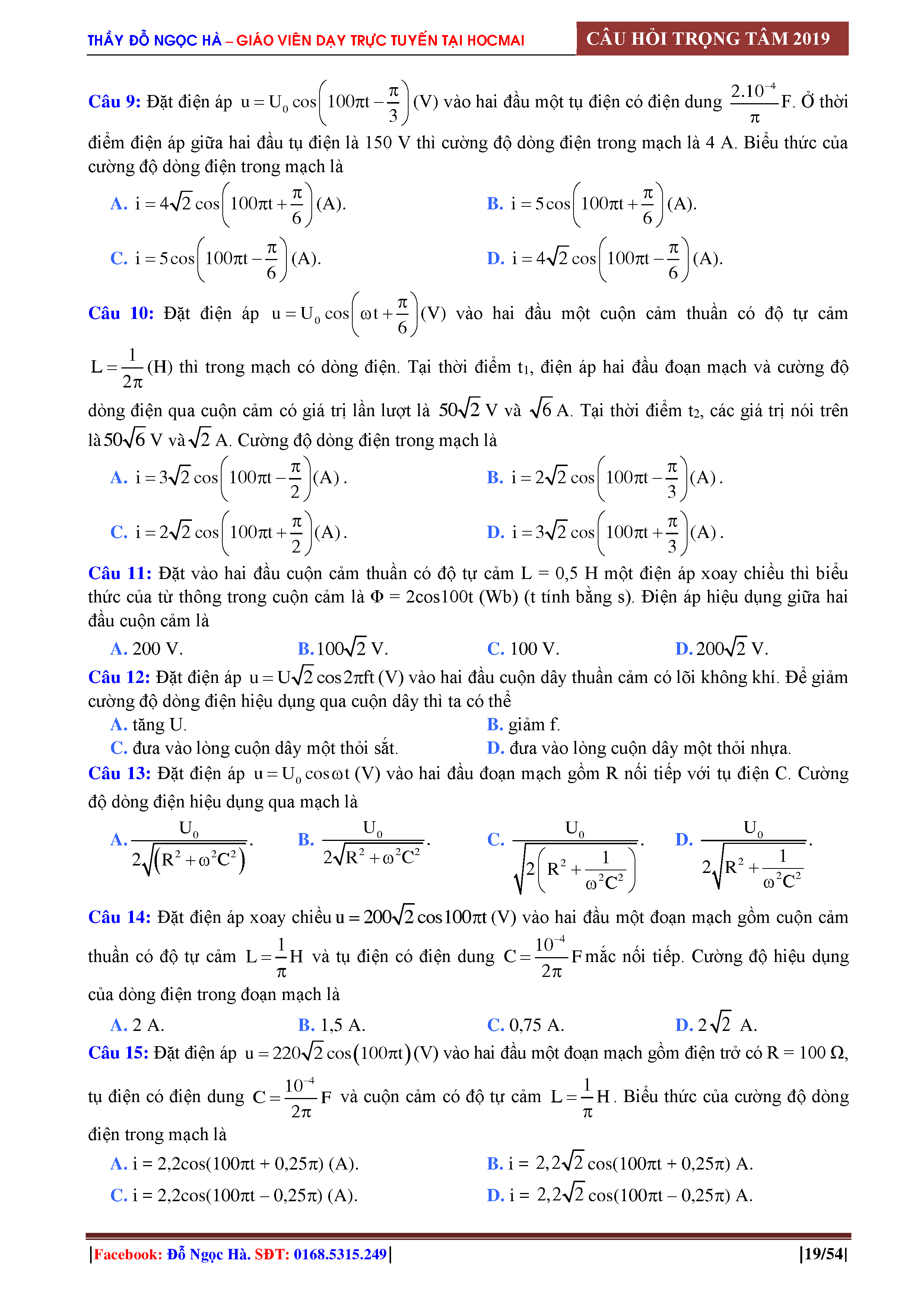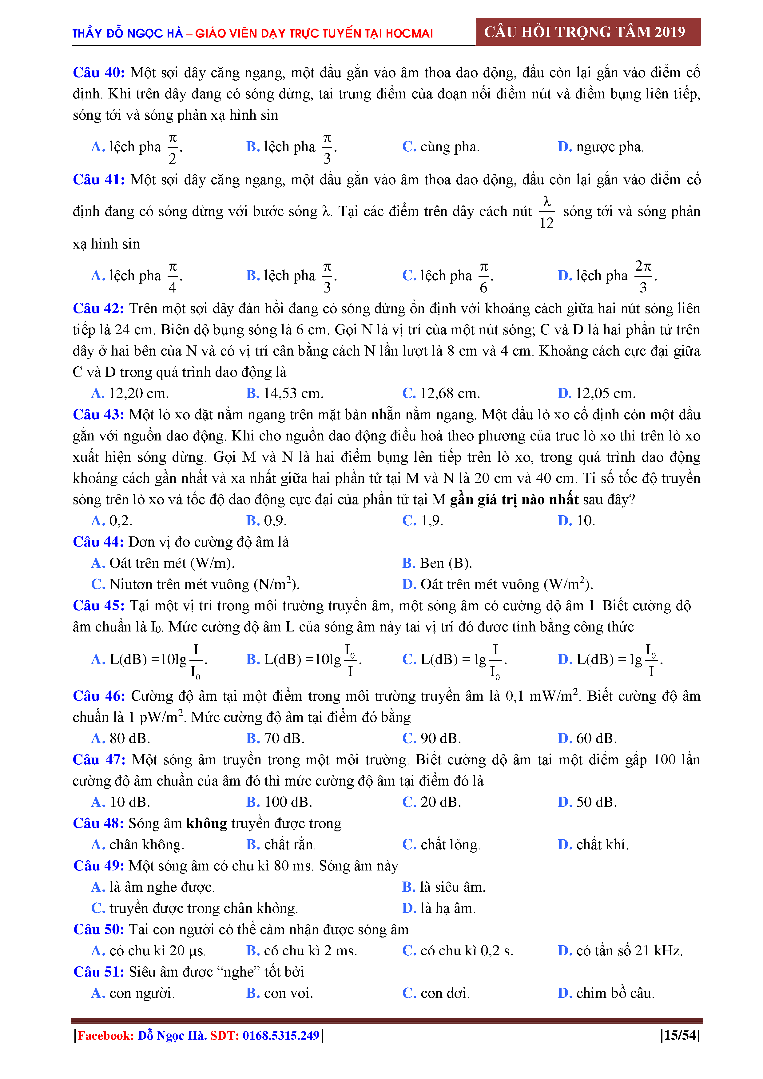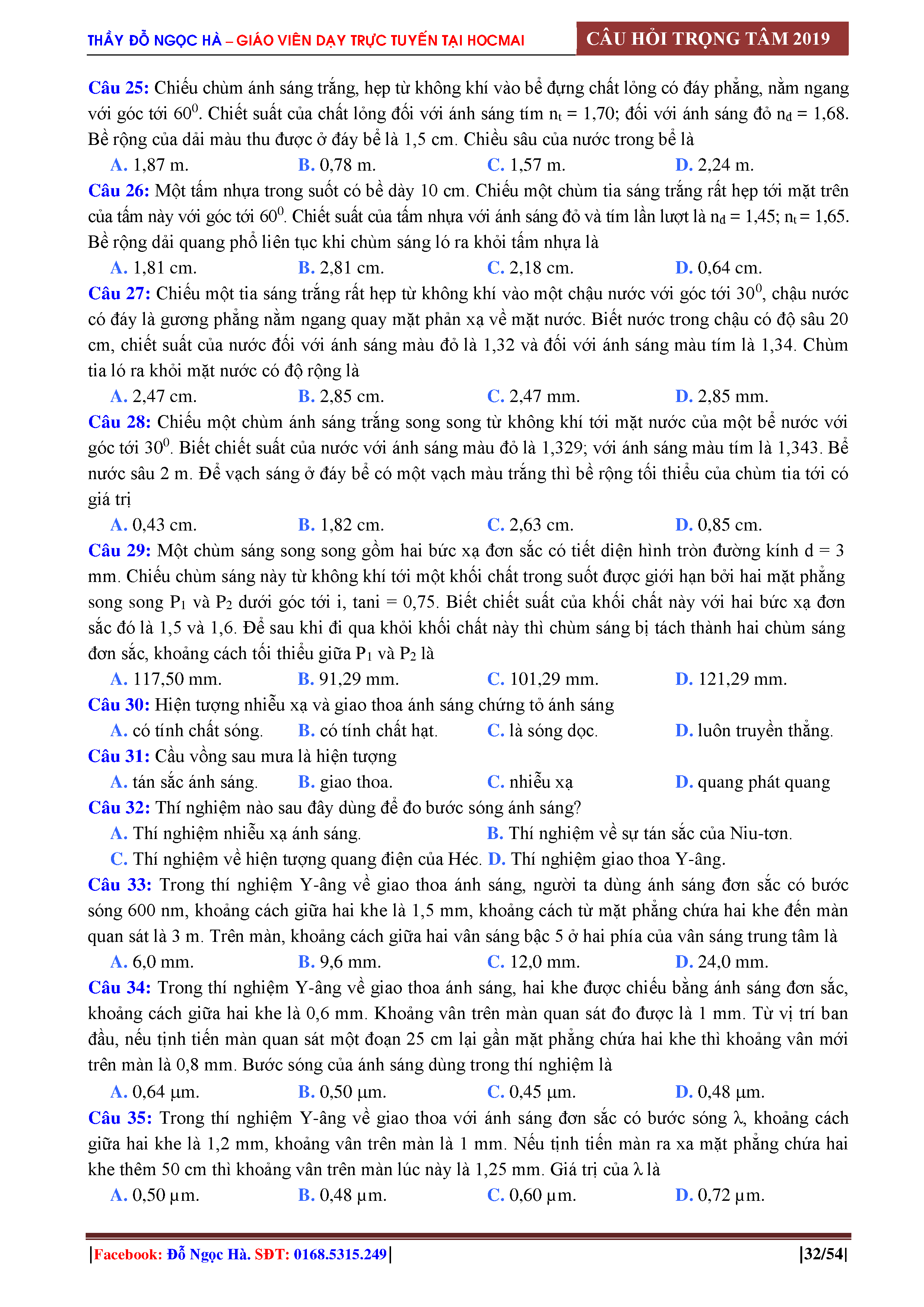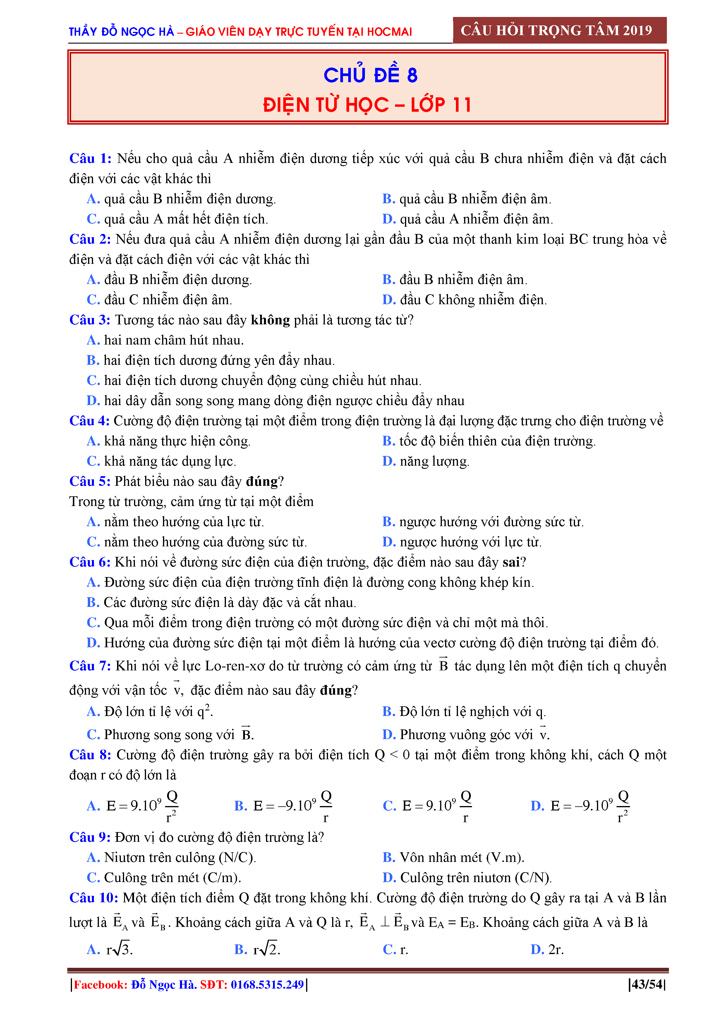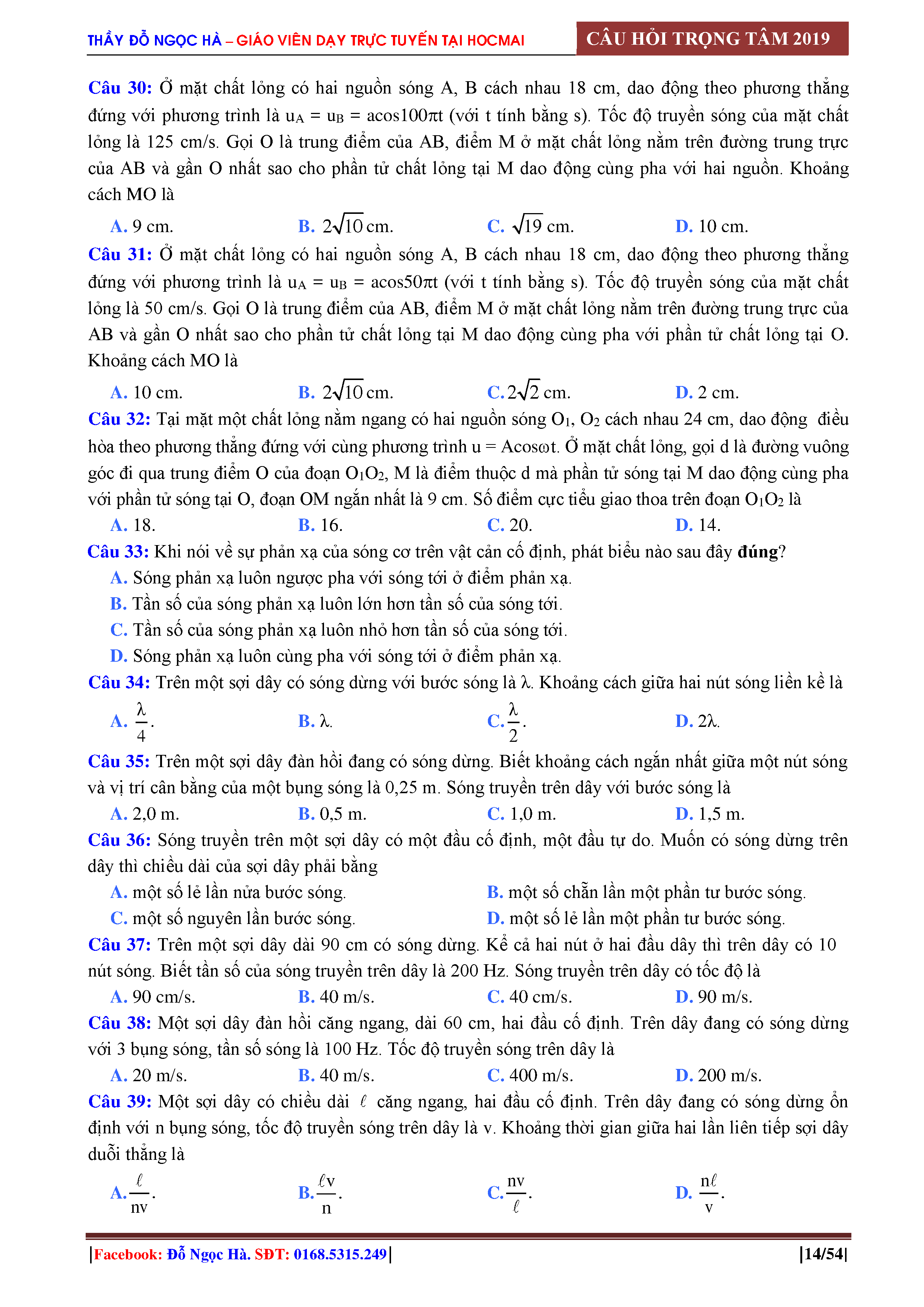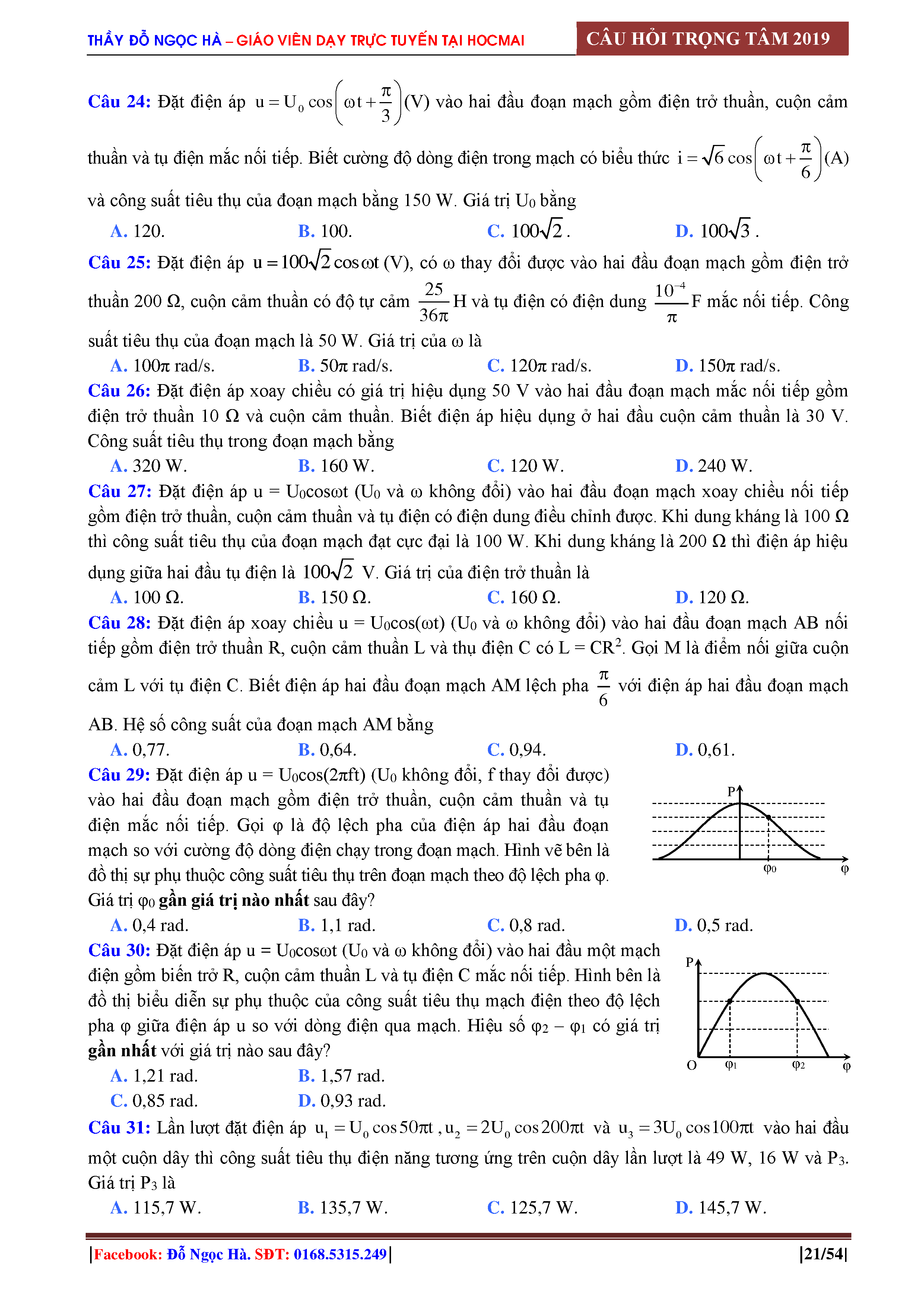 300 câu hỏi trọng tâm môn Vật Lí - Ôn thi THPT QG năm 2019