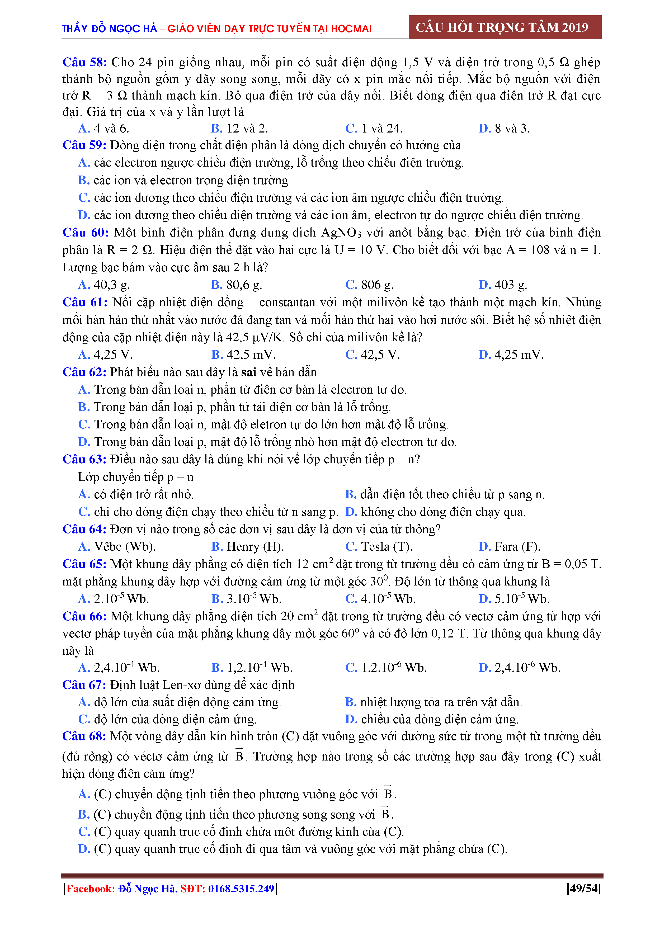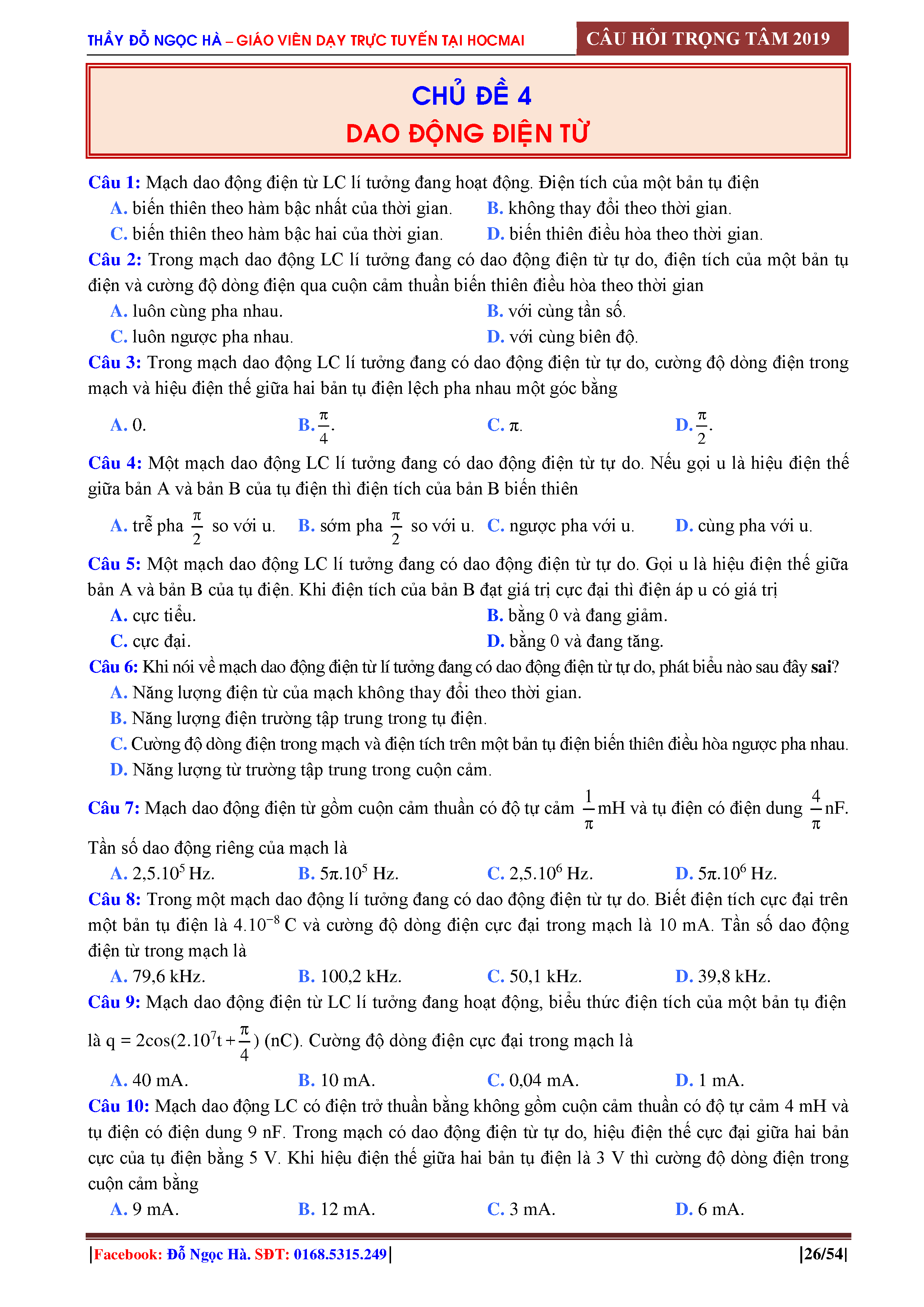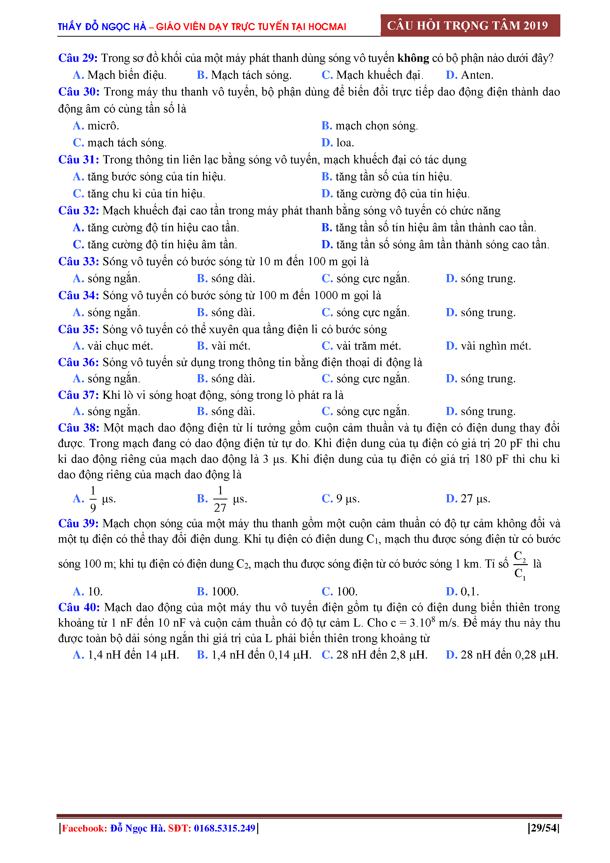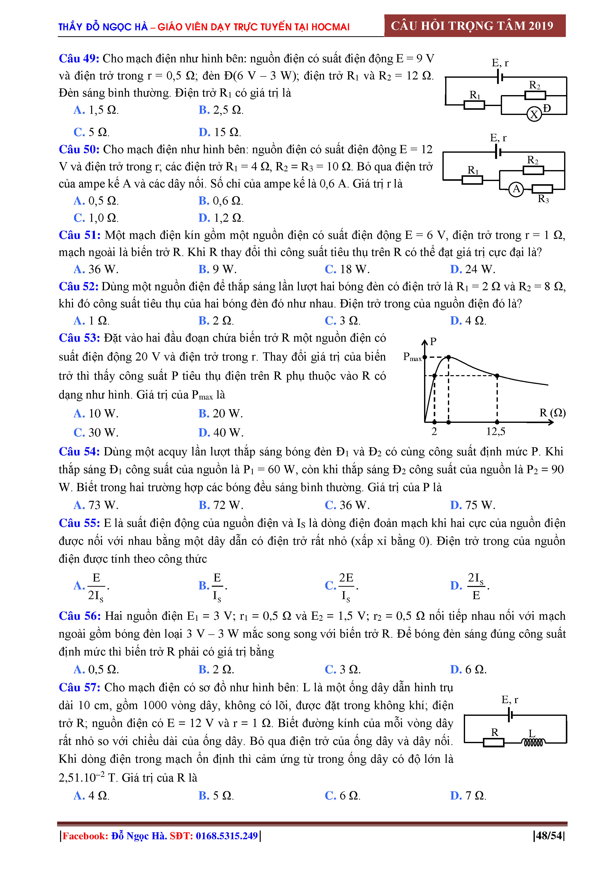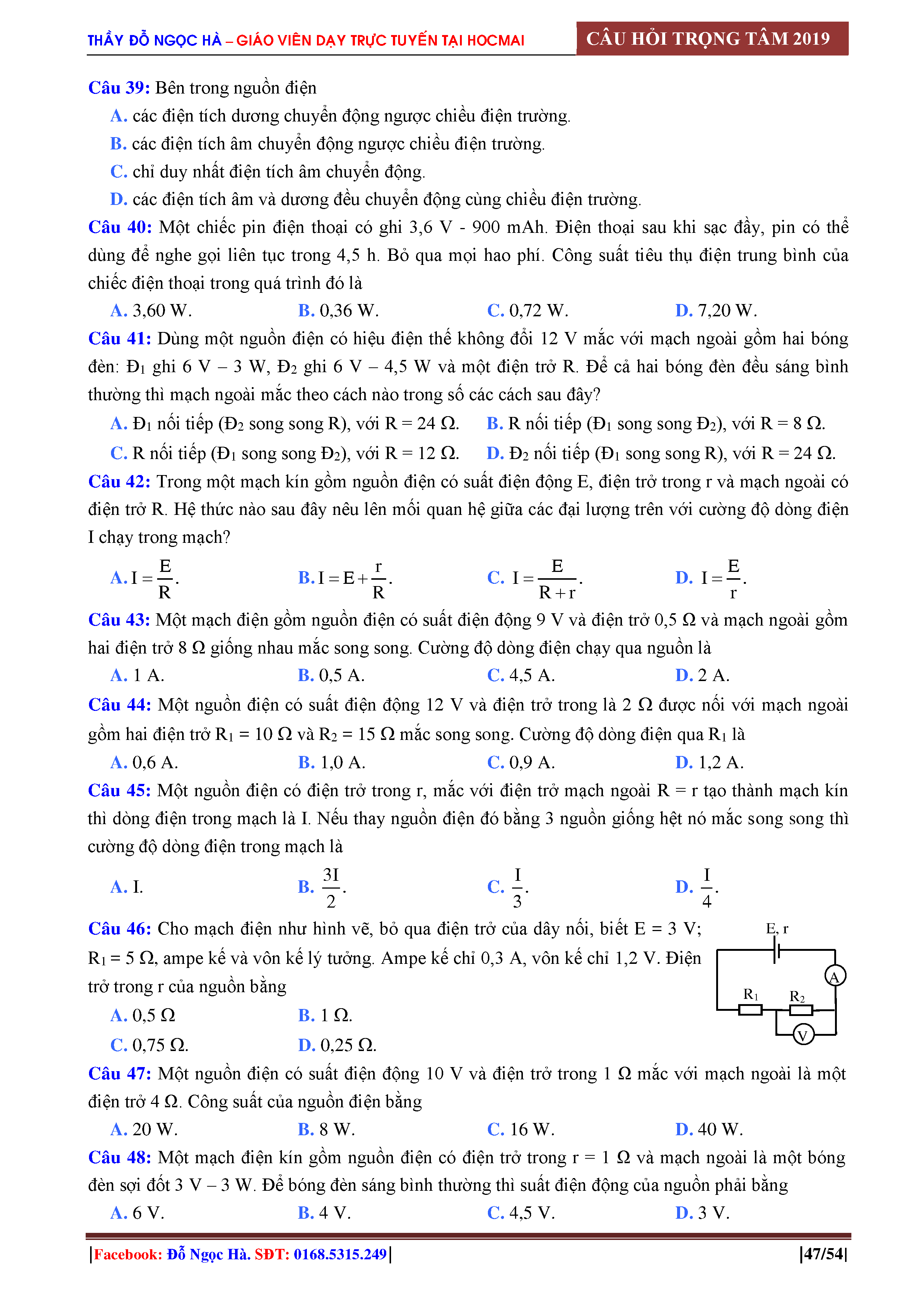 300 câu hỏi trọng tâm môn Vật Lí - Ôn thi THPT QG năm 2019