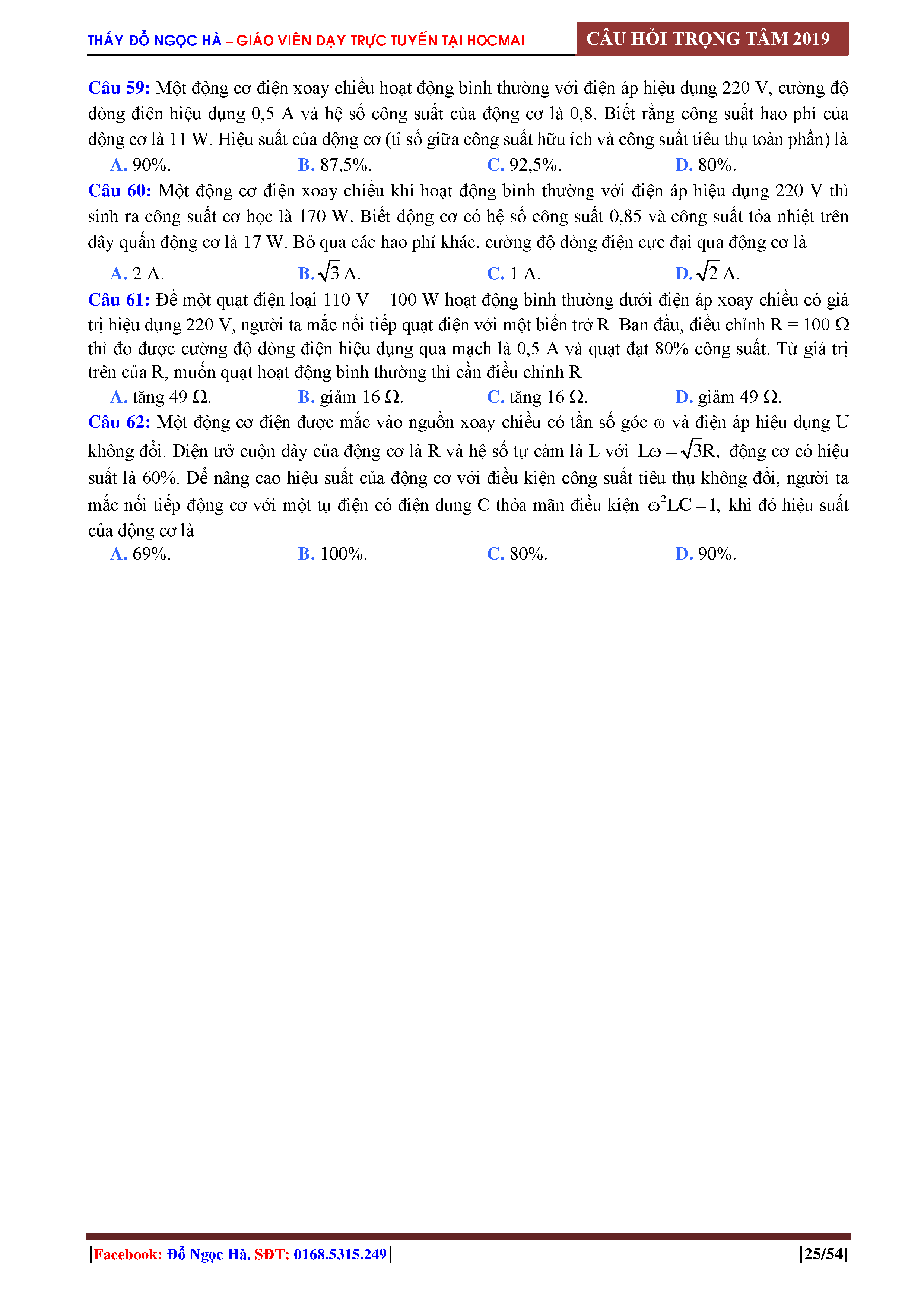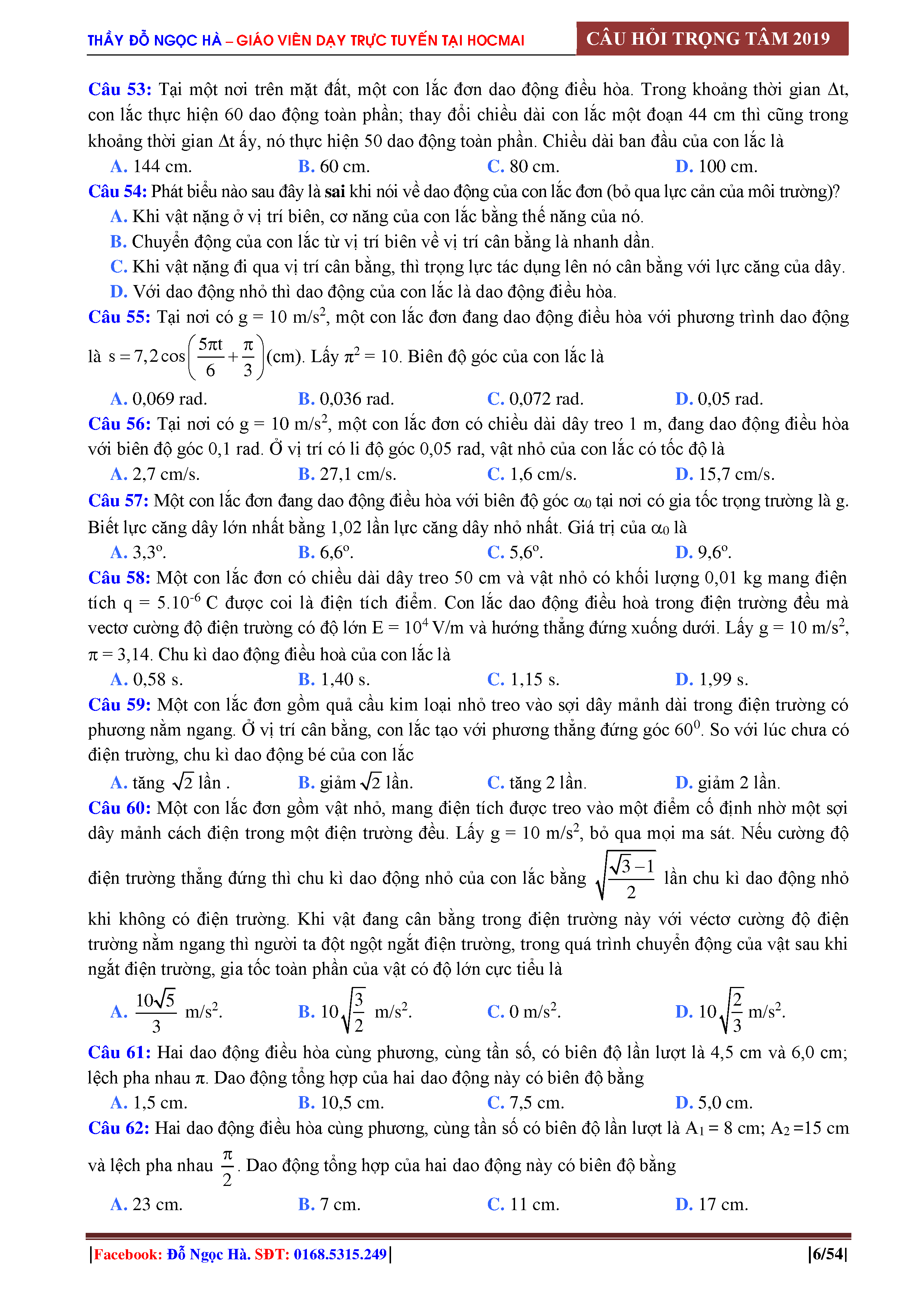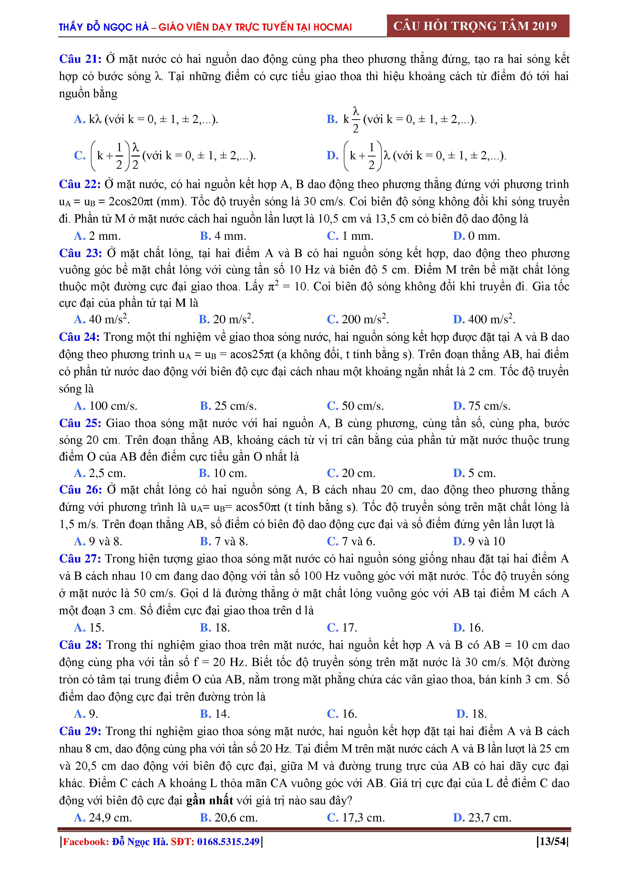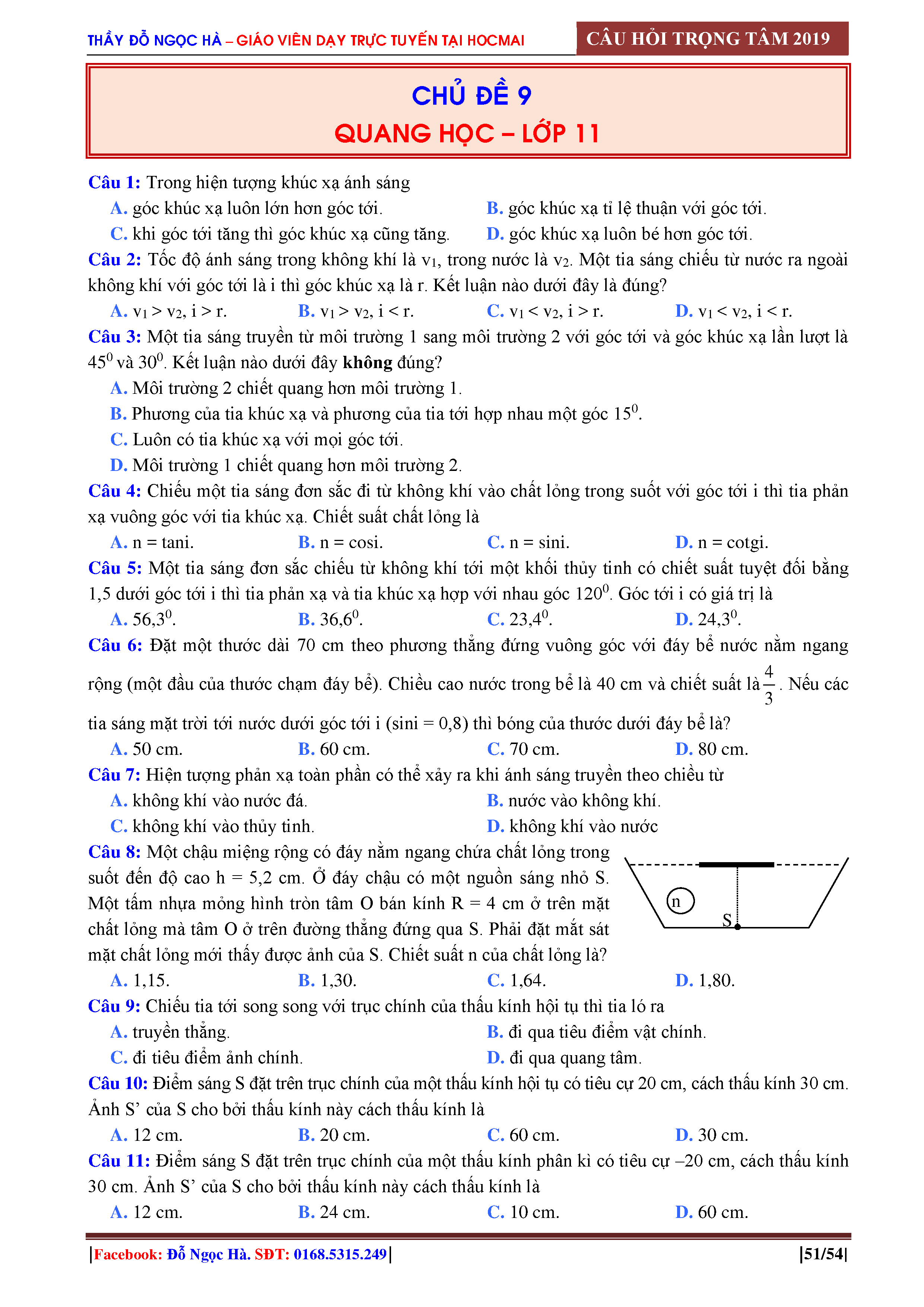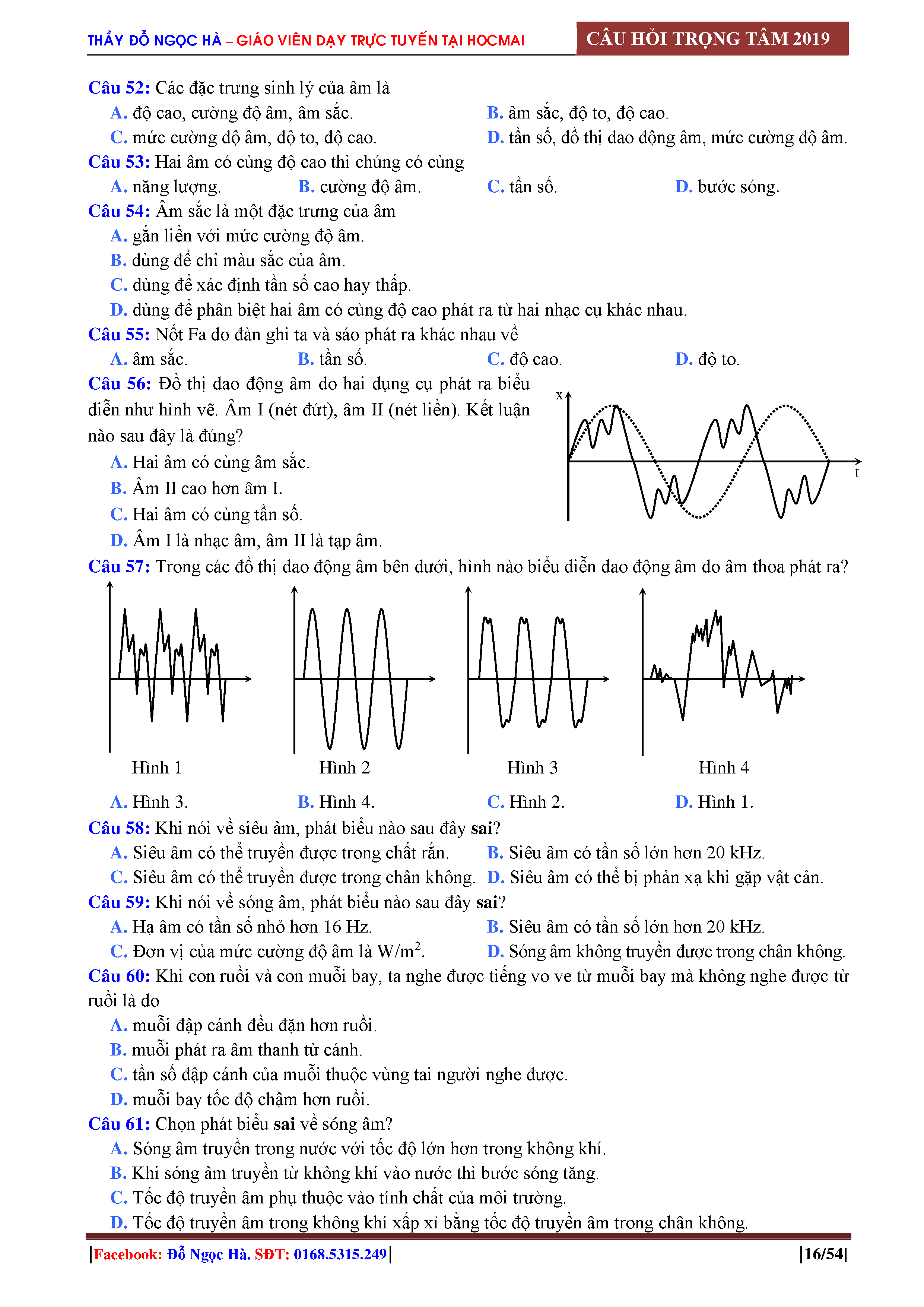 300 câu hỏi trọng tâm môn Vật Lí - Ôn thi THPT QG năm 2019