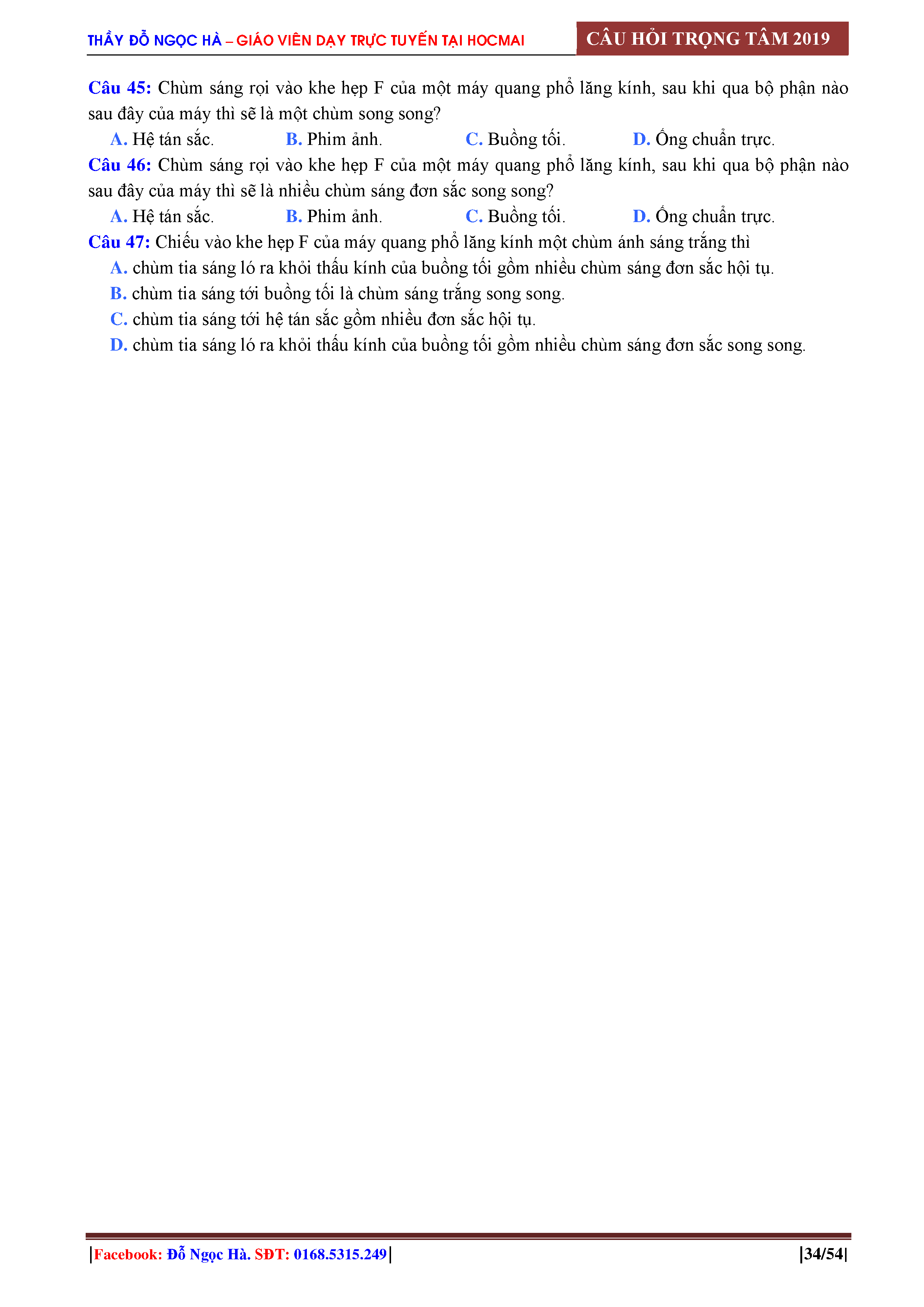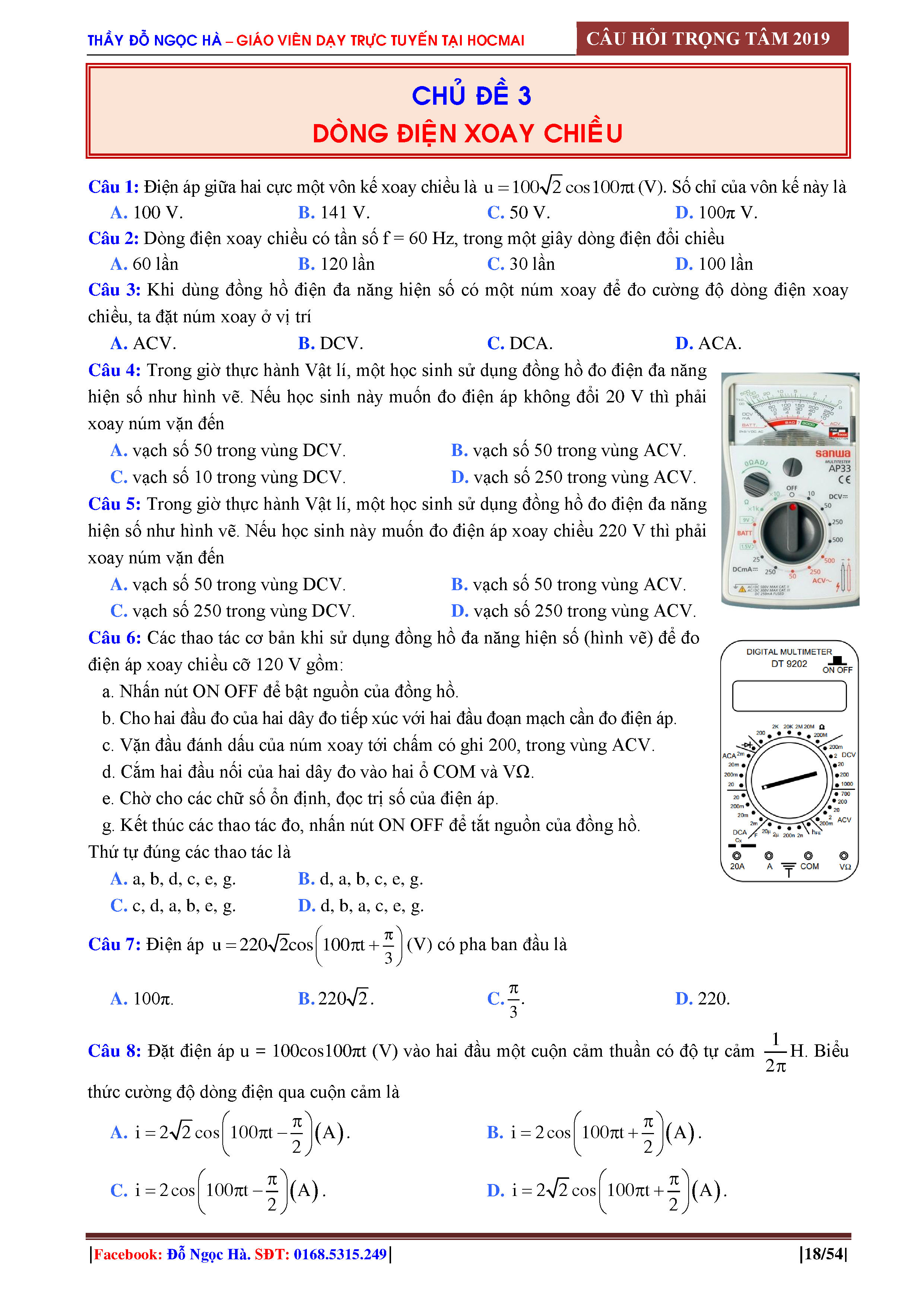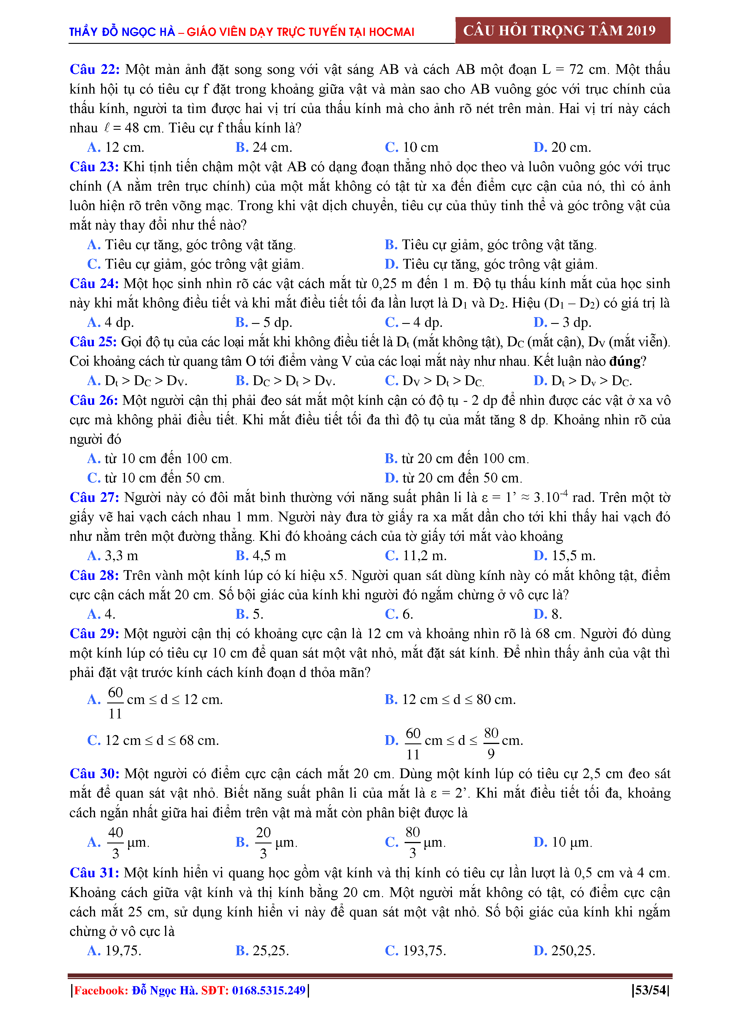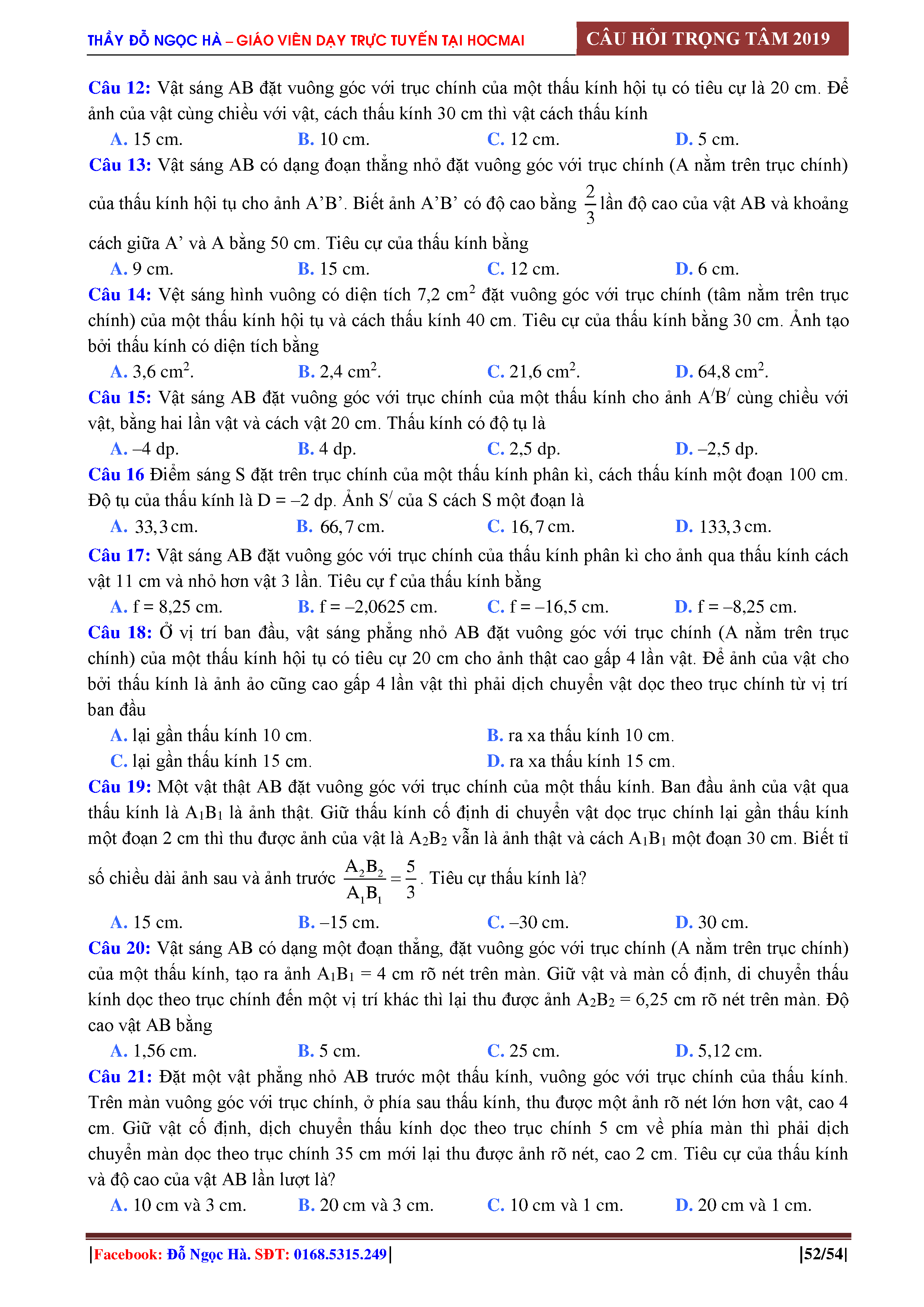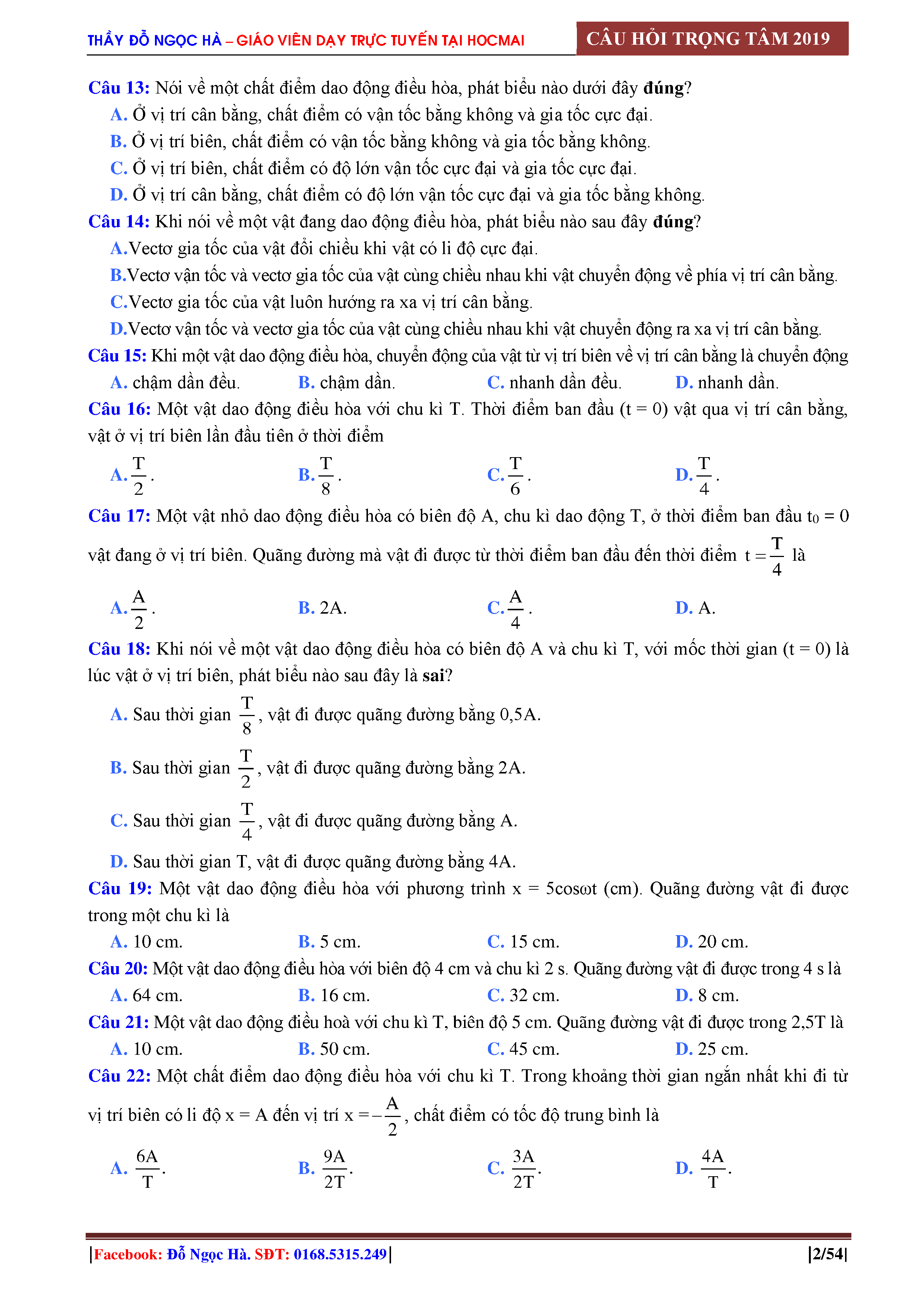 300 câu hỏi trọng tâm môn Vật Lí - Ôn thi THPT QG năm 2019