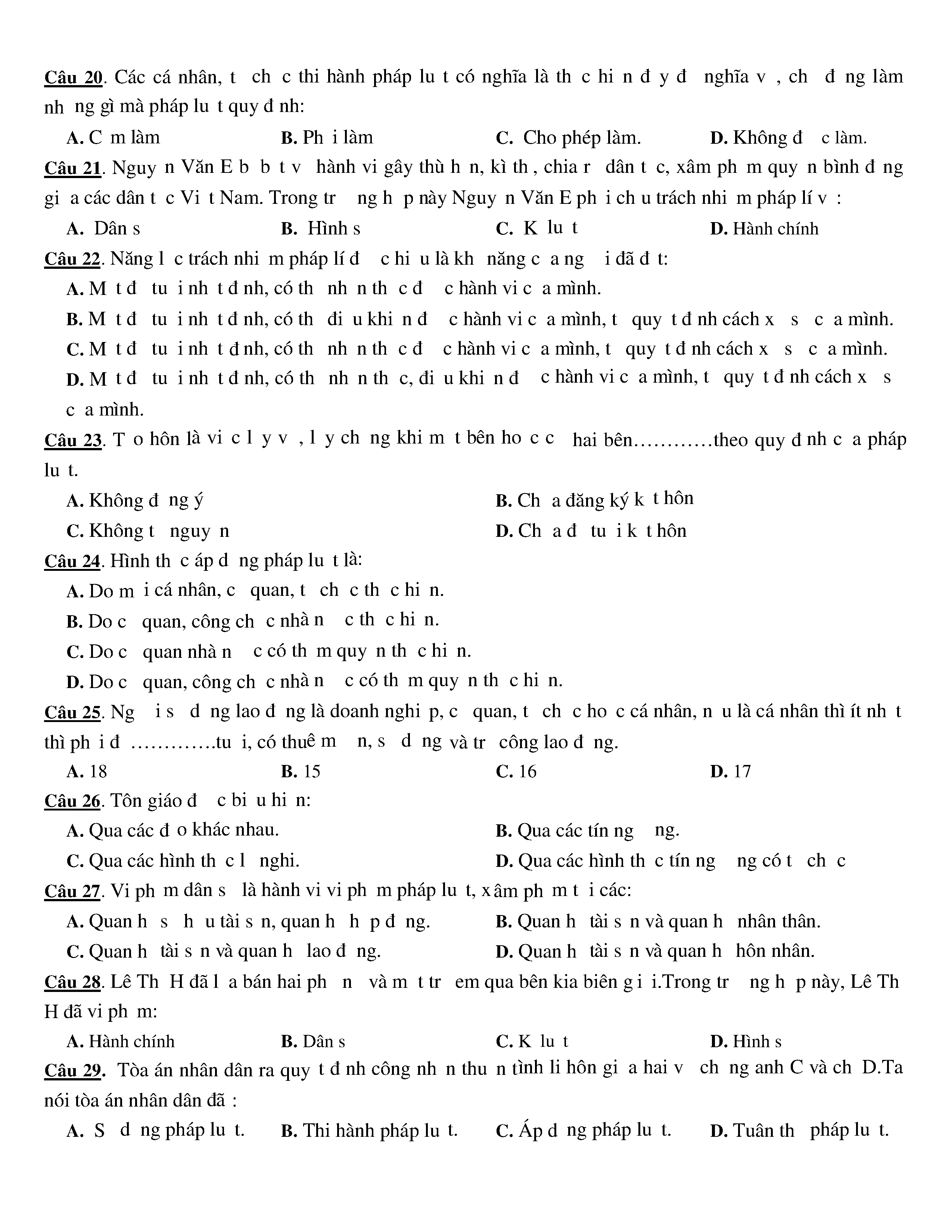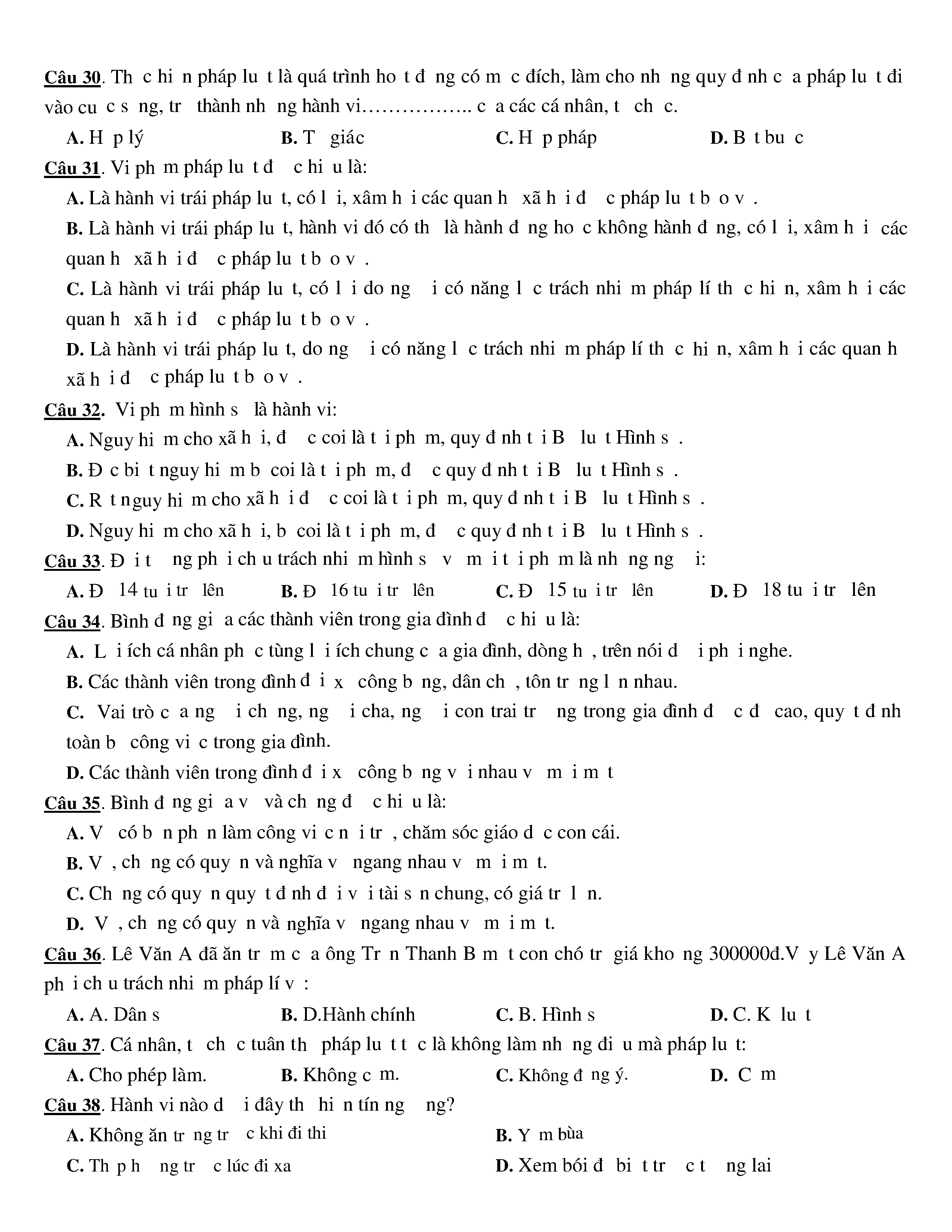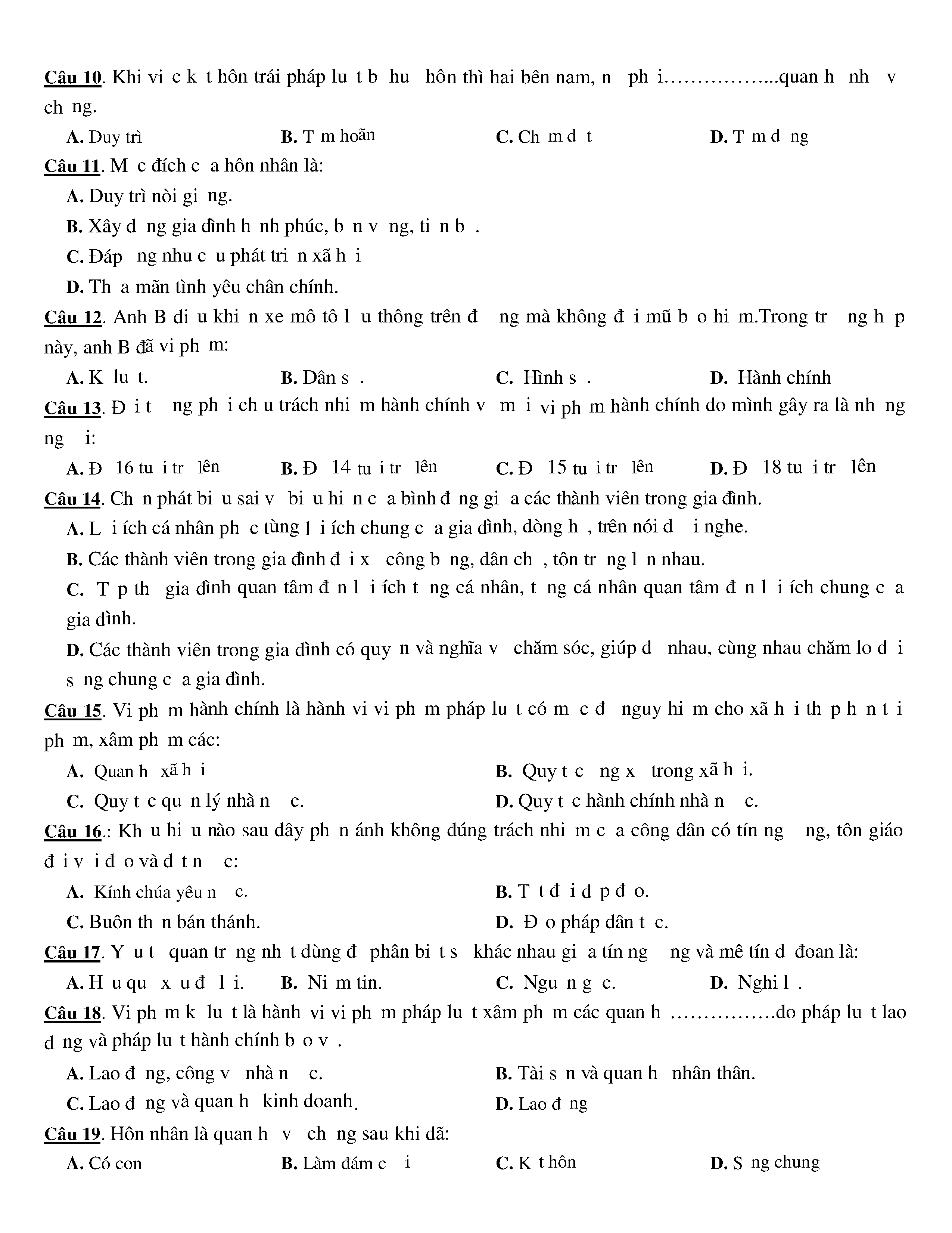 Đề kiểm tra HK I năm học 2016 - 2017 môn GDCD Trường THPT Chi Lăng (đề số 1) - Lớp 12