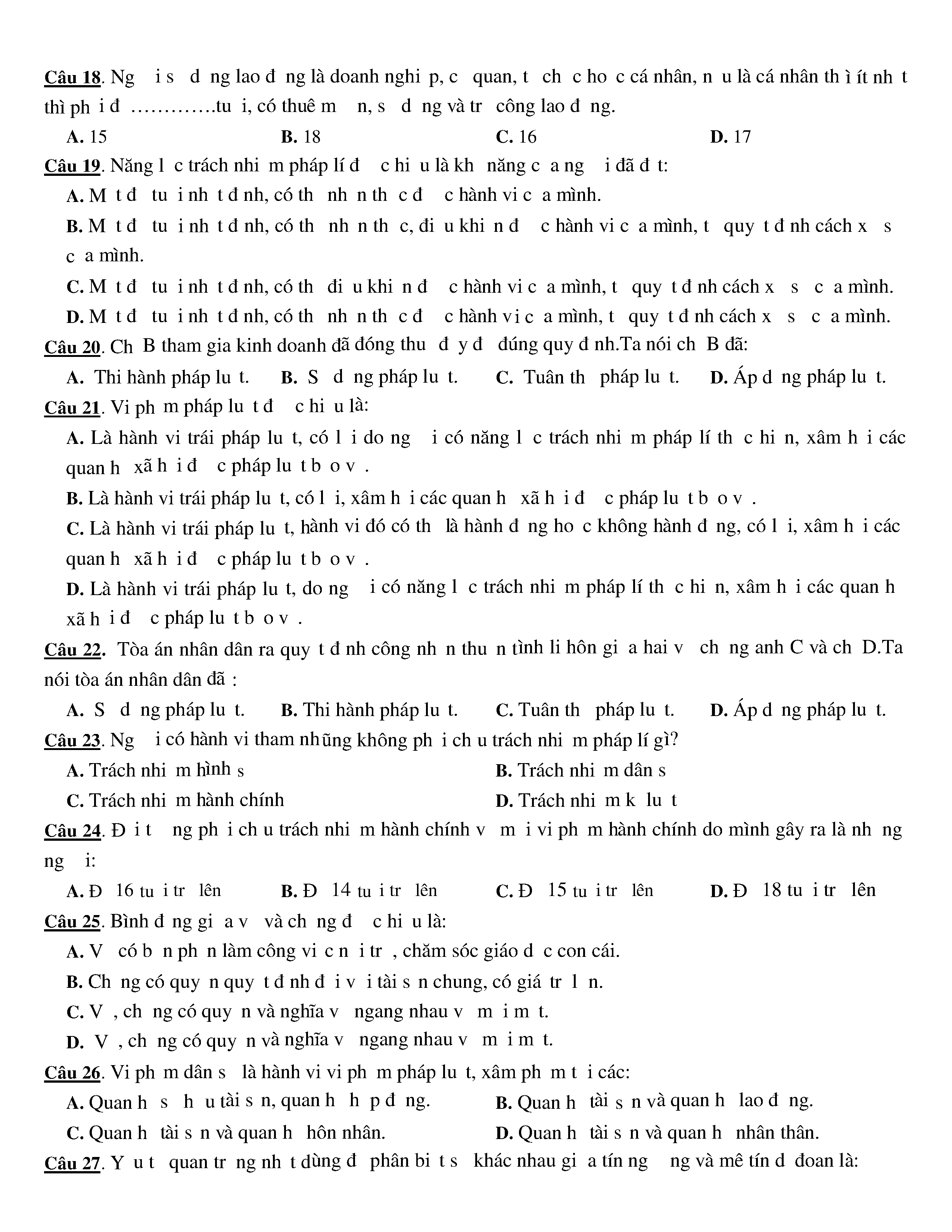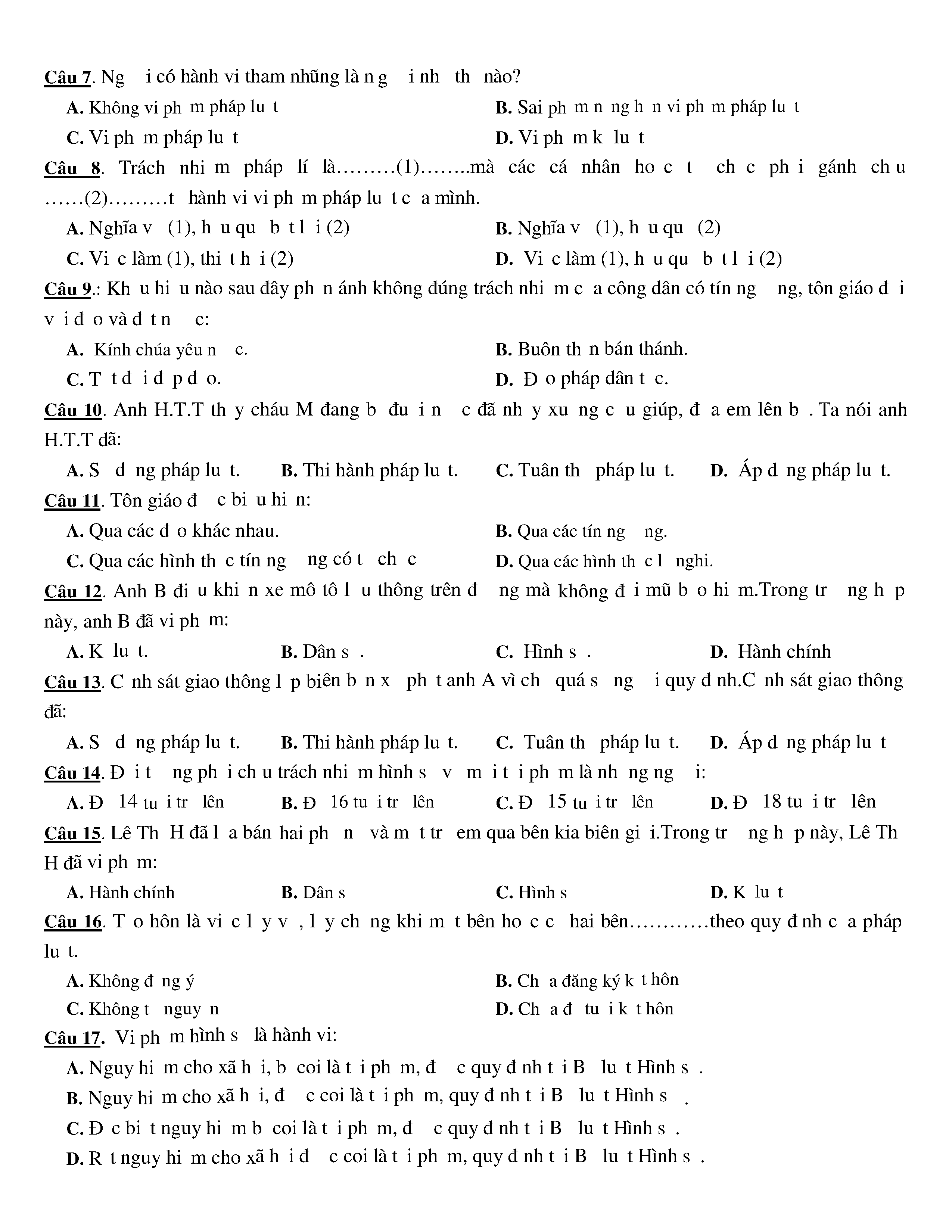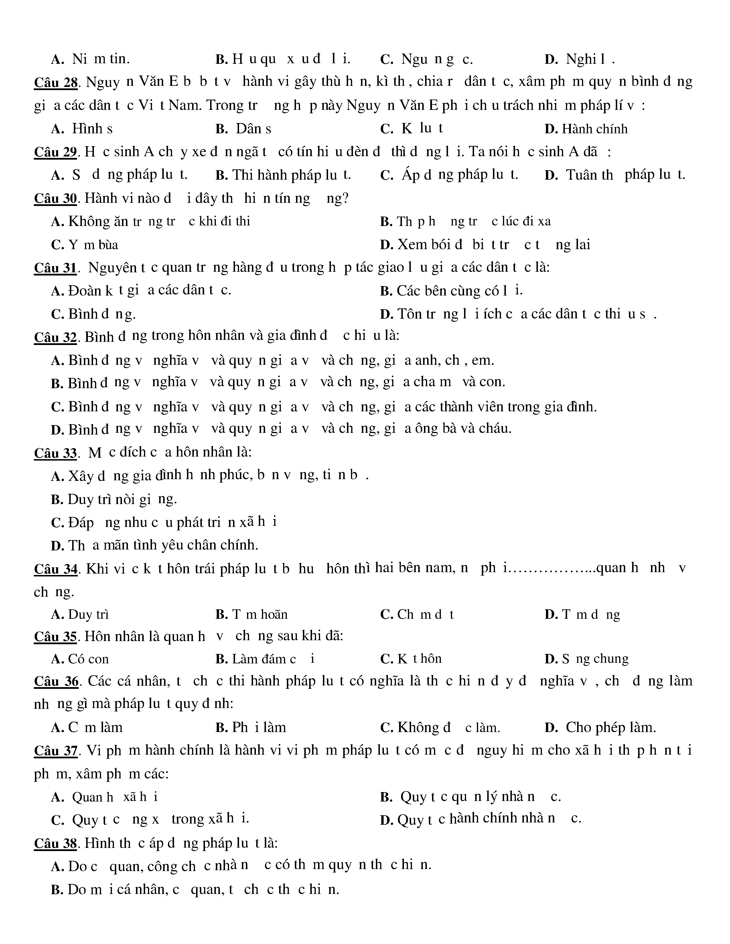 Đề kiểm tra HK I năm học 2016 - 2017 môn GDCD Trường THPT Chi Lăng (đề số 2) - Lớp 12