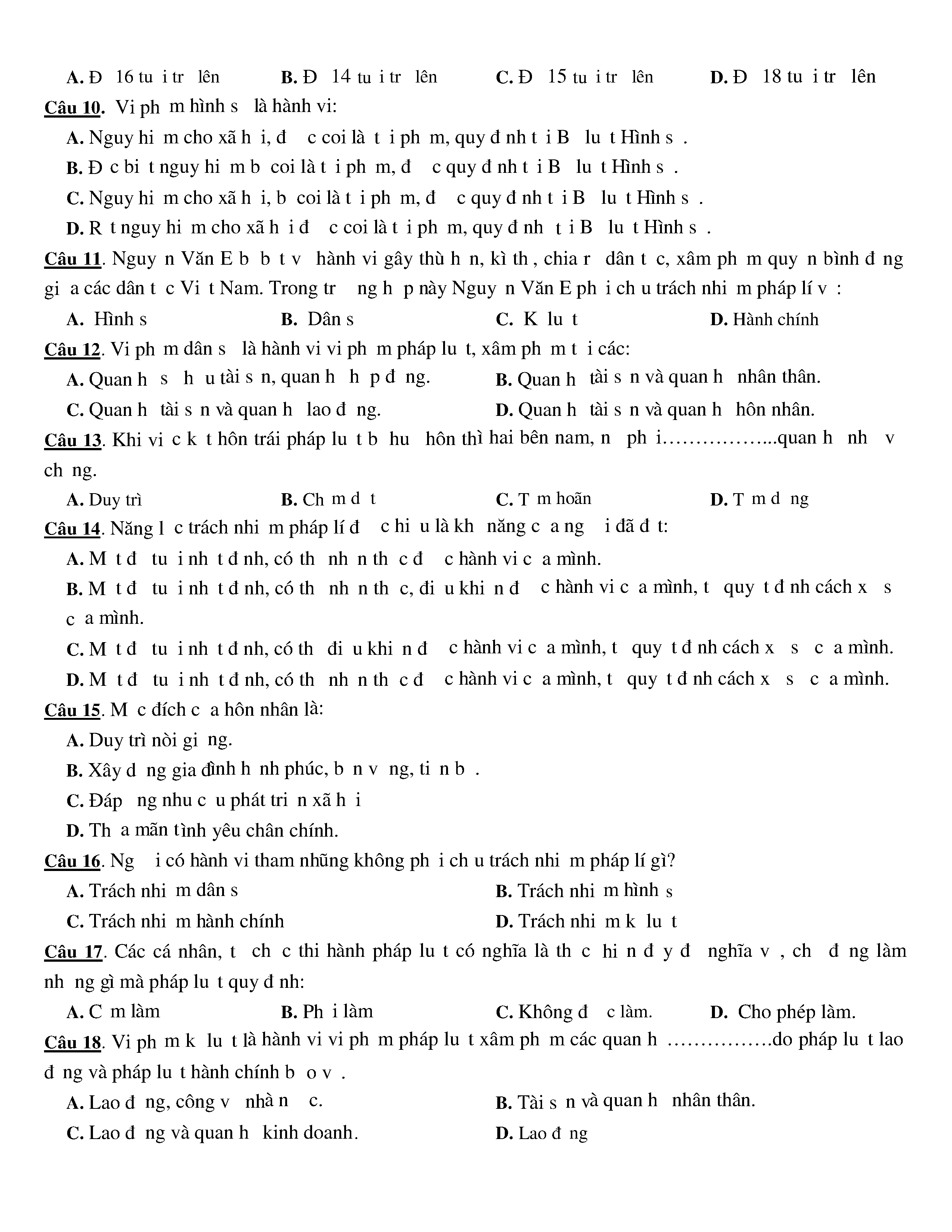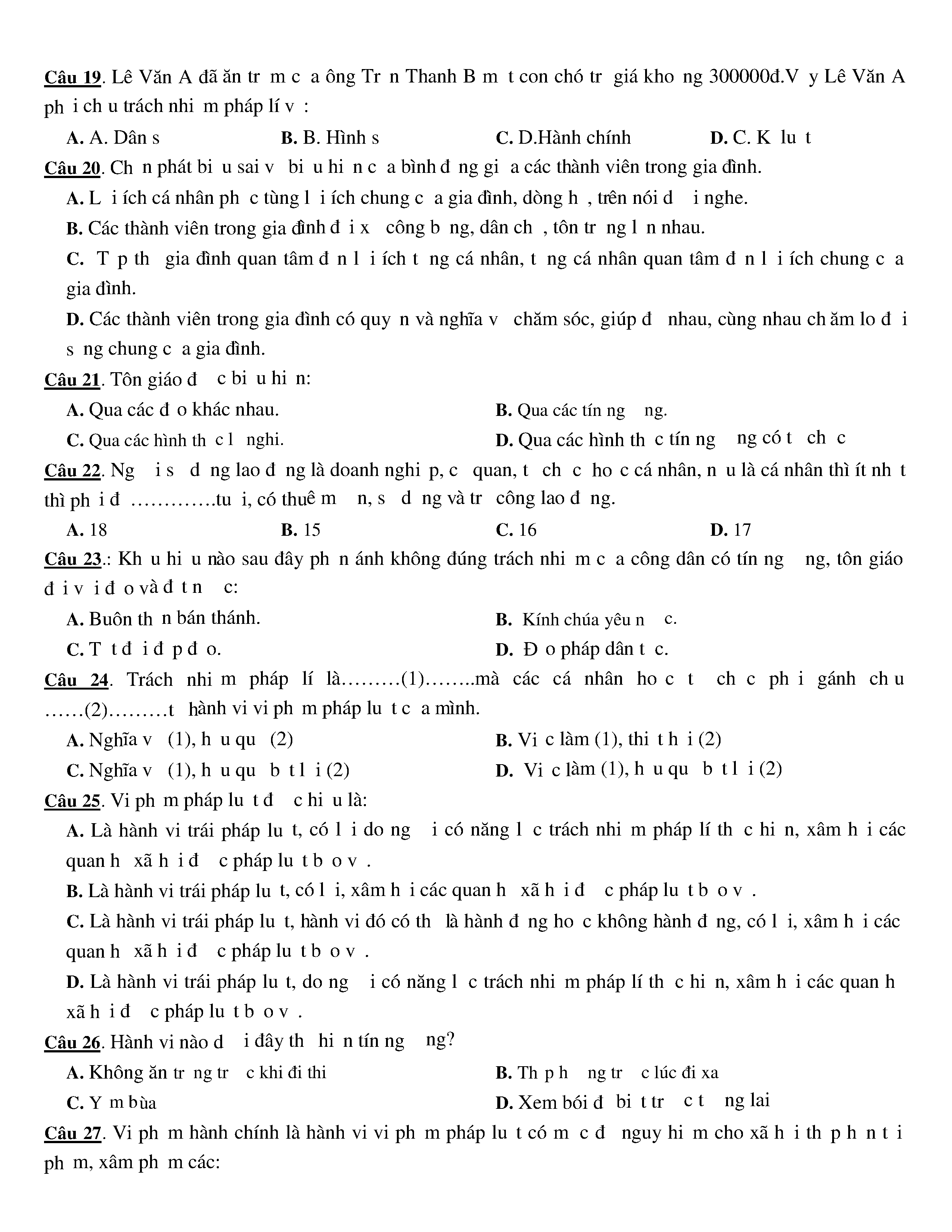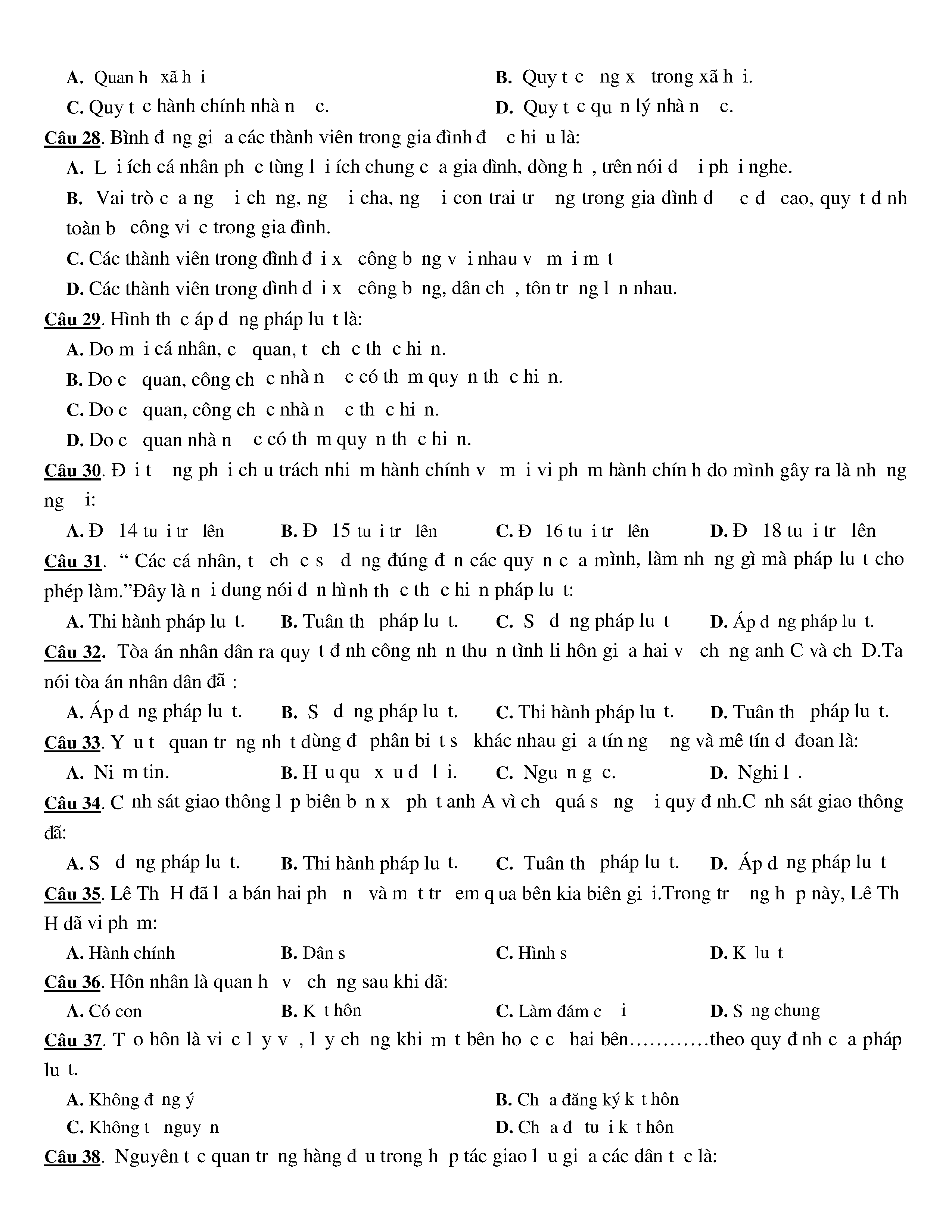 Đề kiểm tra HK I năm học 2016 - 2017 môn GDCD Trường THPT Chi Lăng (đề số 3) - Lớp 12