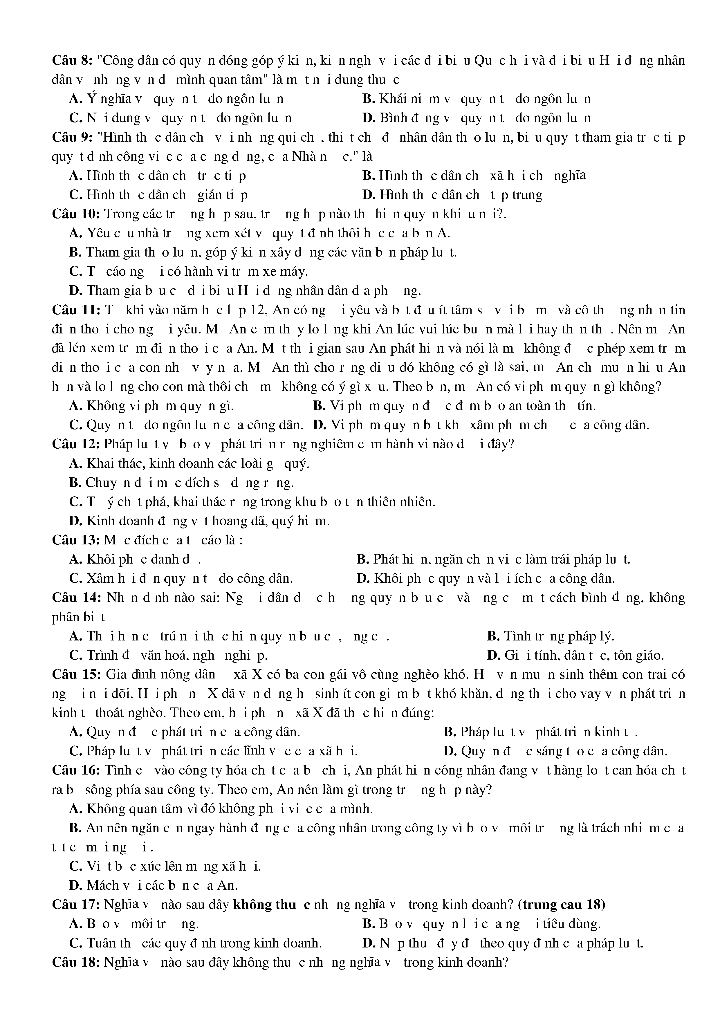 Đề kiểm tra HK II năm học 2017 - 2018 môn GDCD (đề số 2) - Lớp 12
