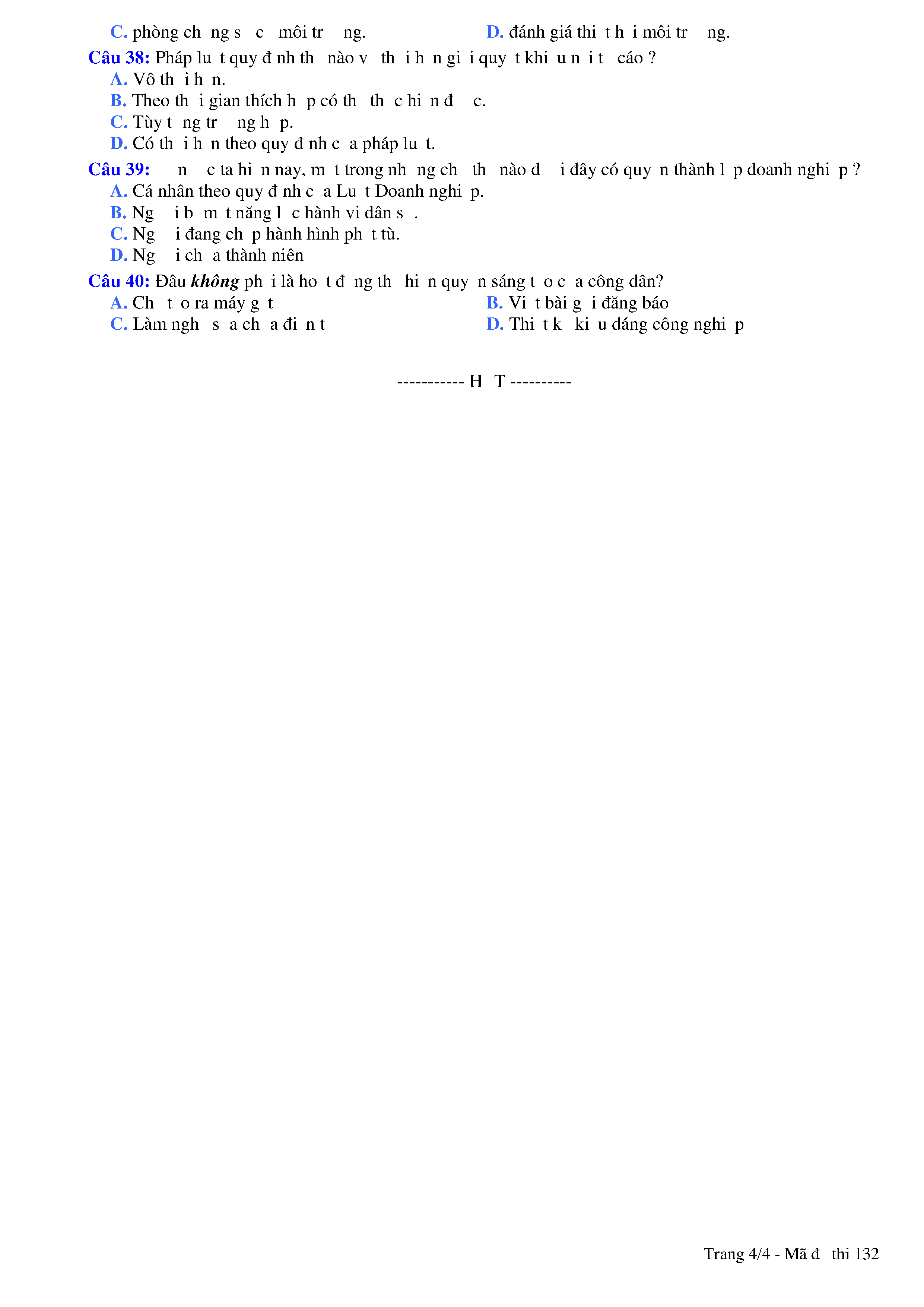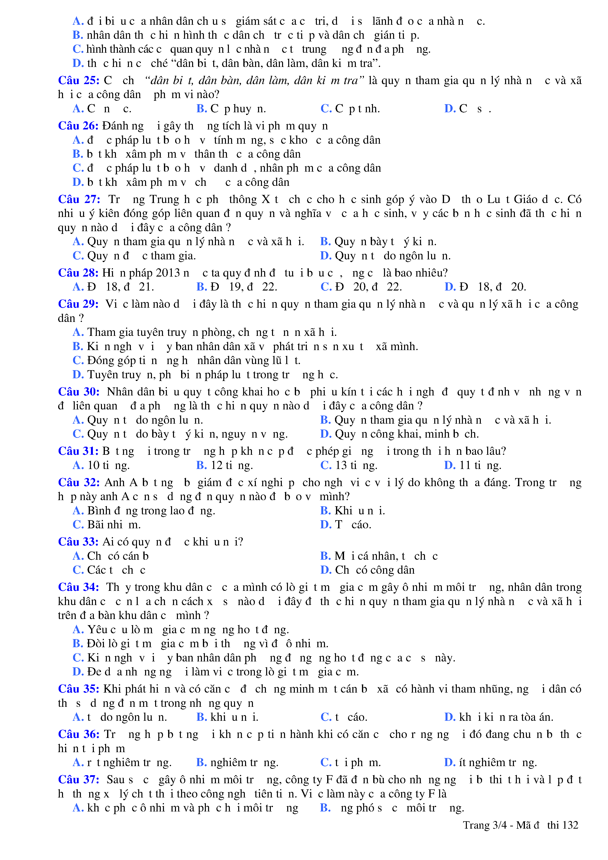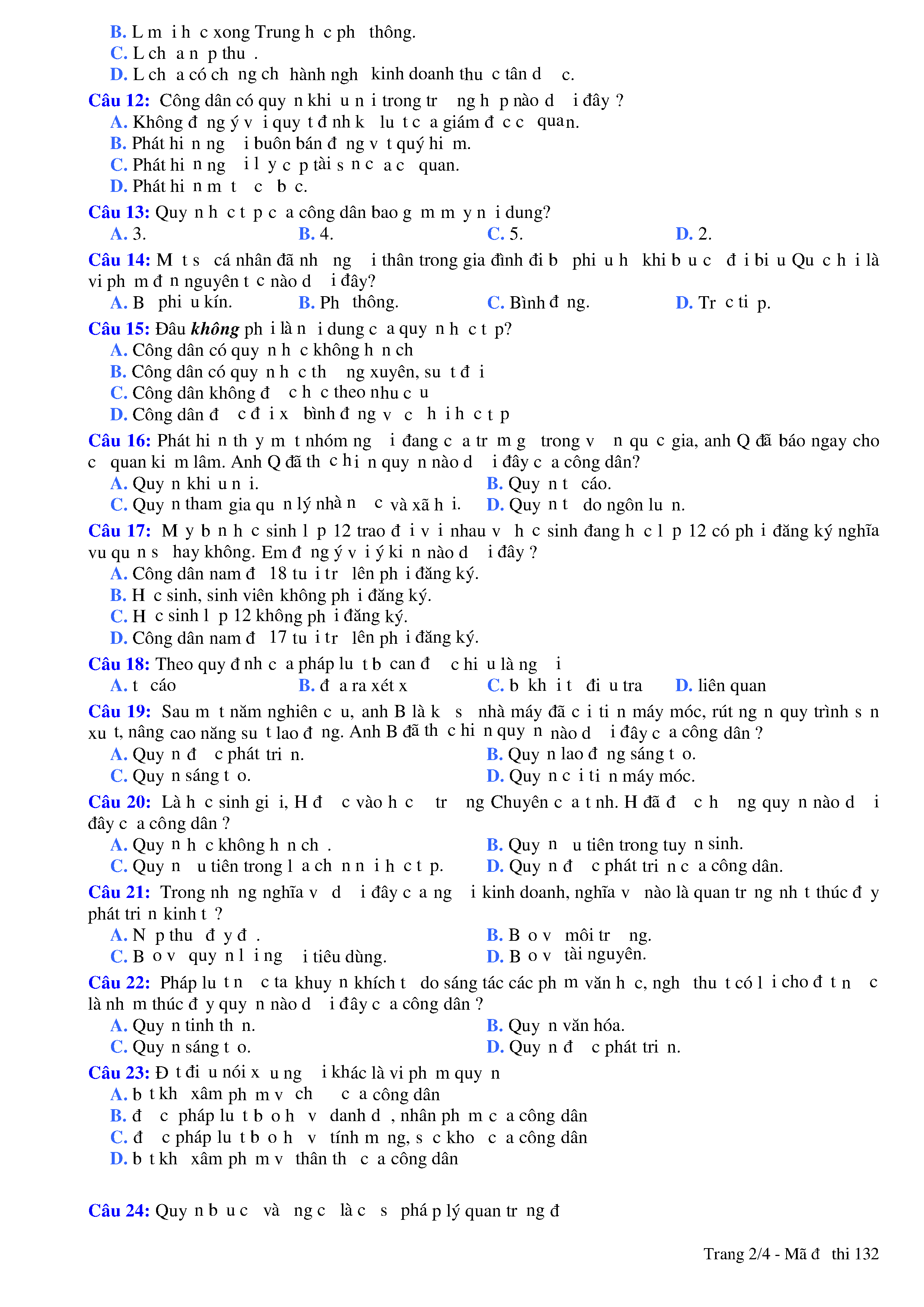 Đề kiểm tra HK II năm học 2017 - 2018 môn GDCD Trường THPT Lý Thái Tổ - Lớp 12