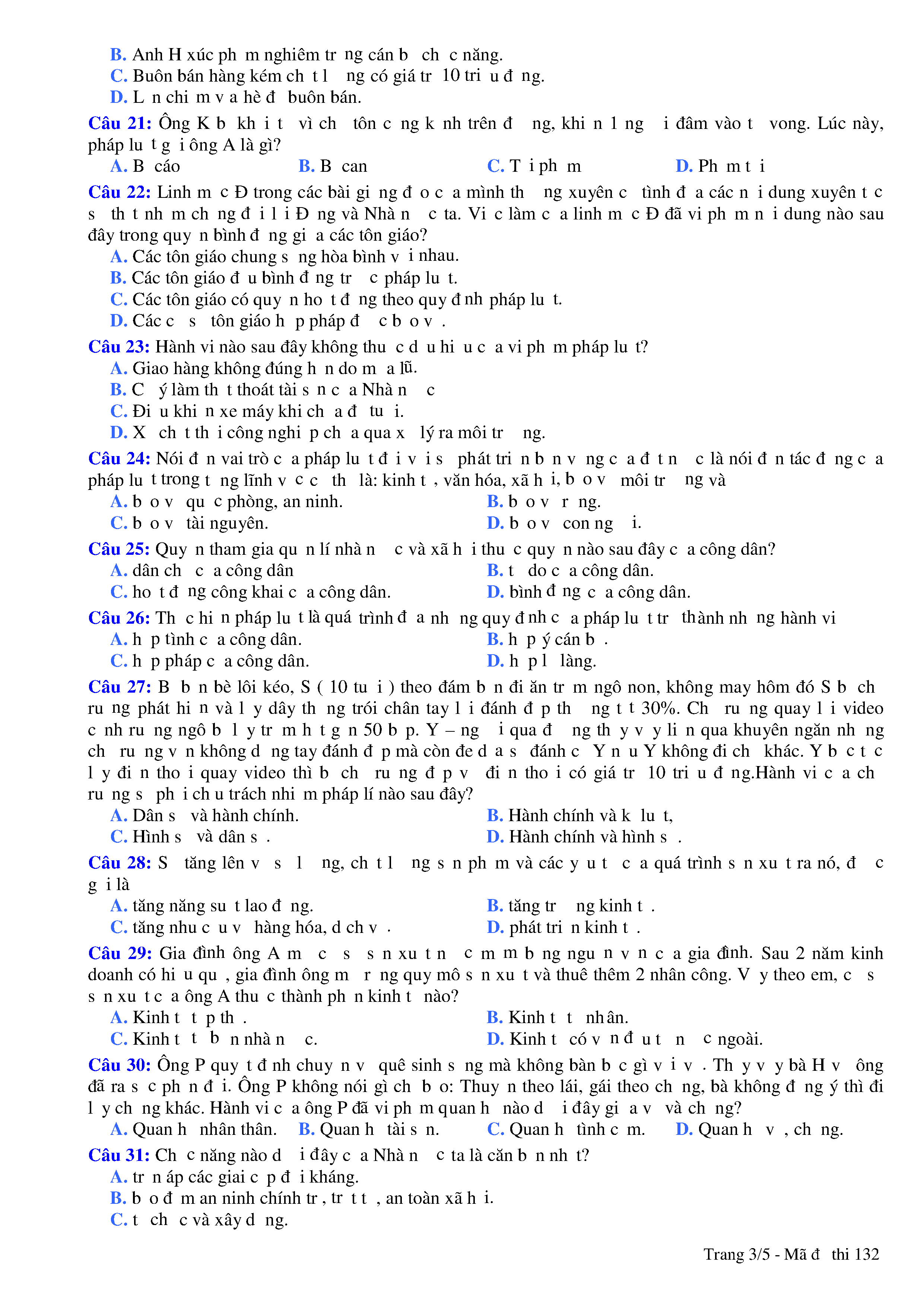Đề kiểm tra HK II năm học 2017 - 2018 môn GDCD Trường THPT Phạm Công Bình - Lớp 12