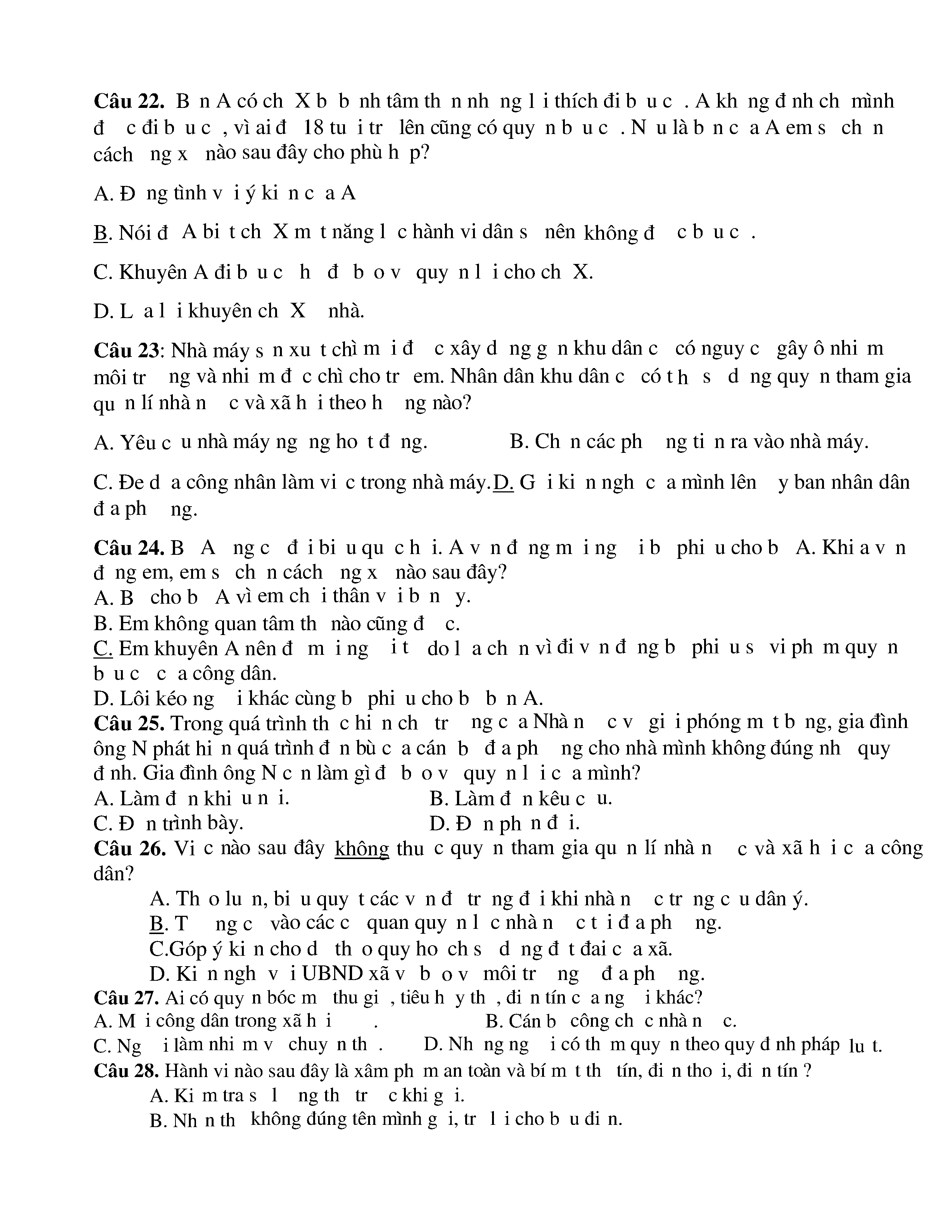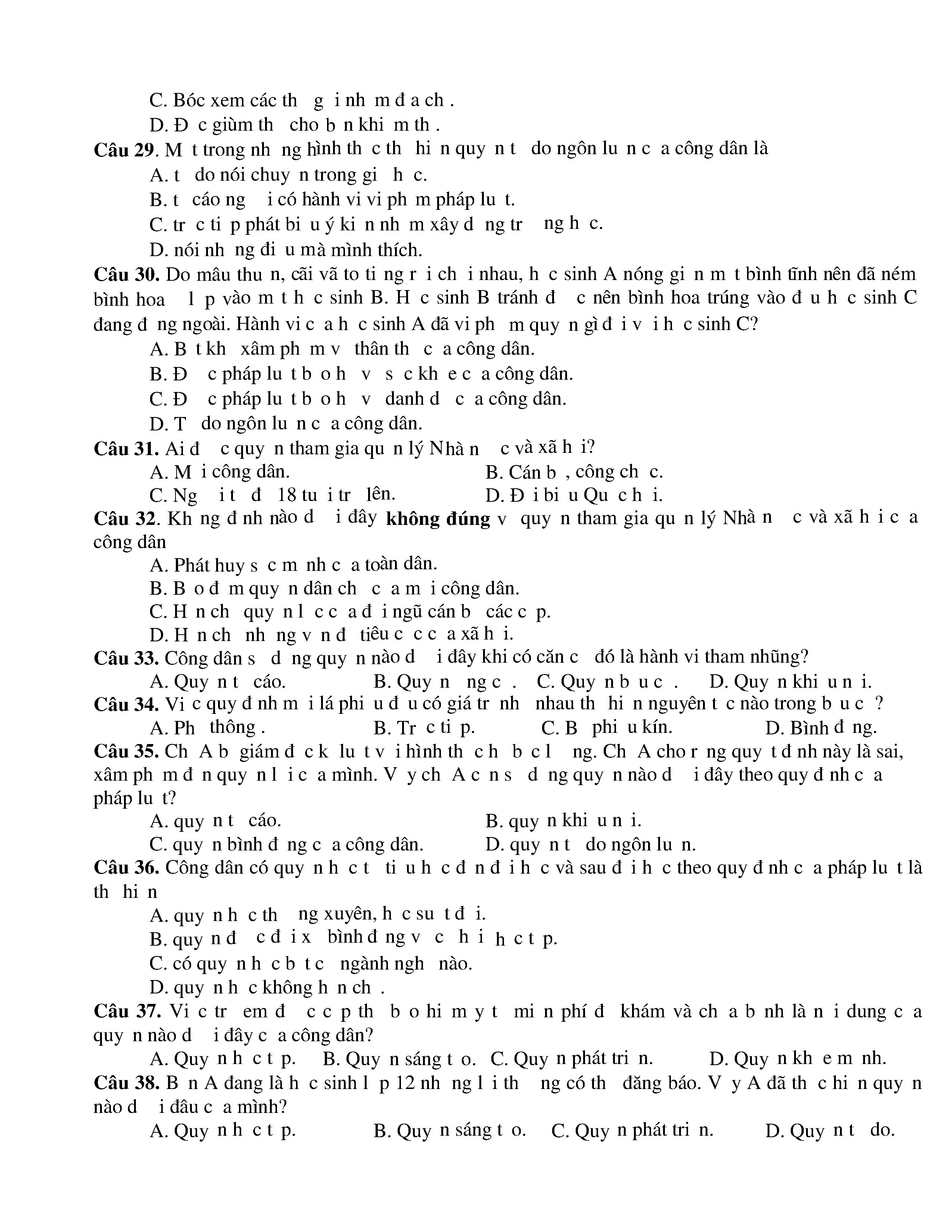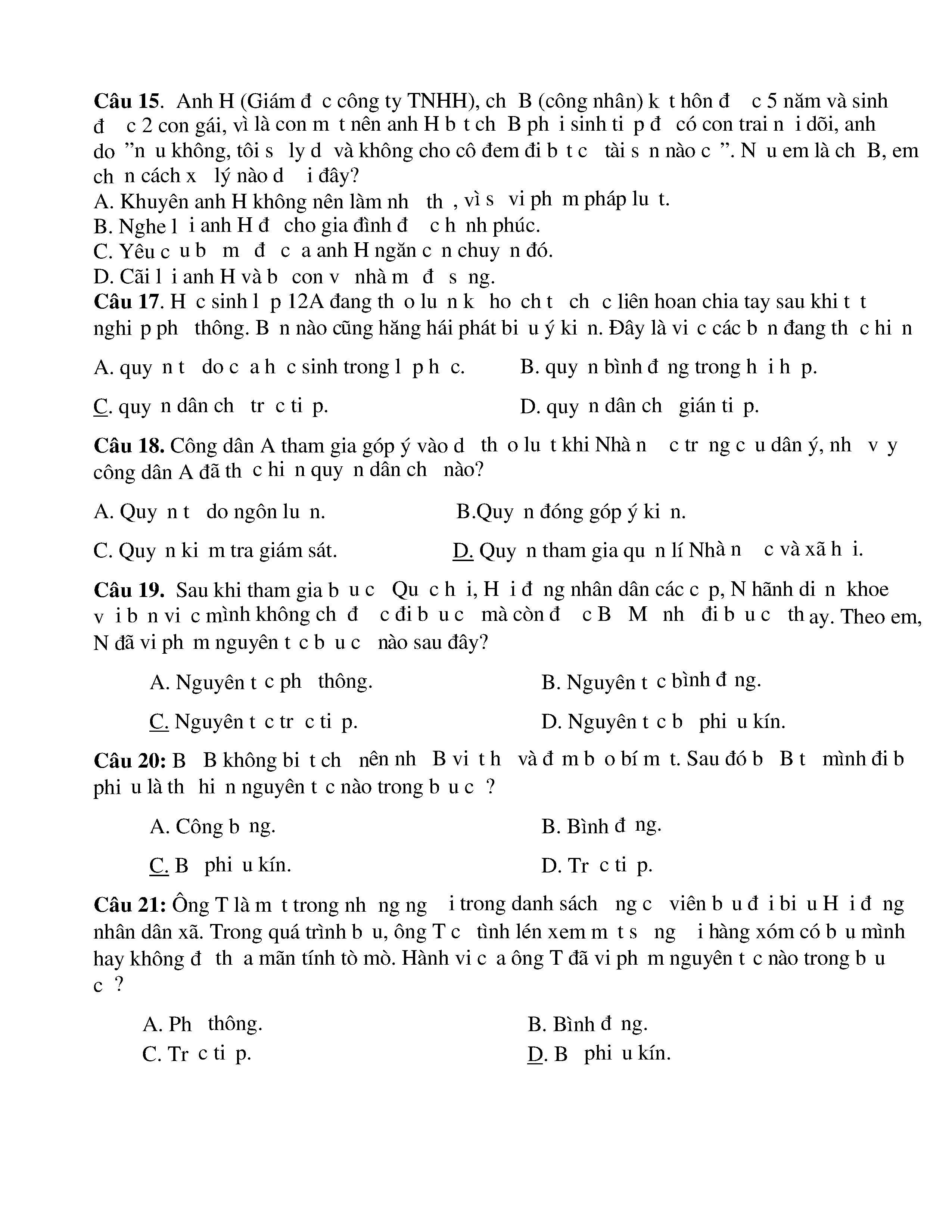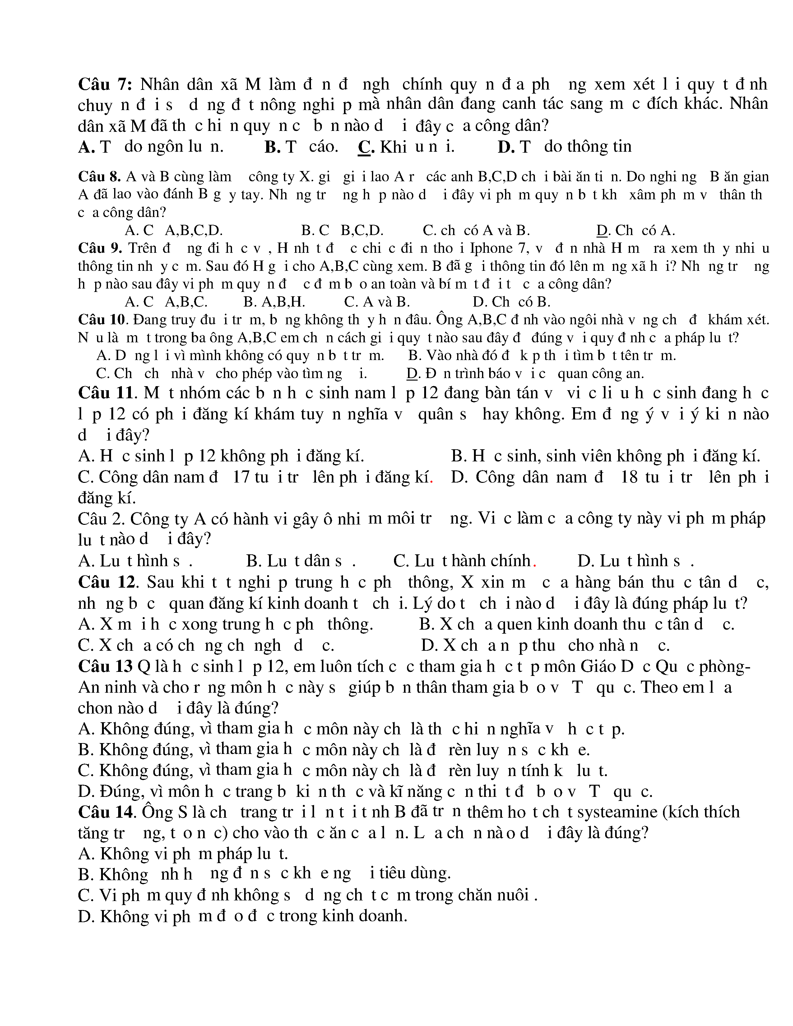 Đề kiểm tra HK II năm học 2018 - 2019 môn GDCD (đề số 1) - Lớp 12