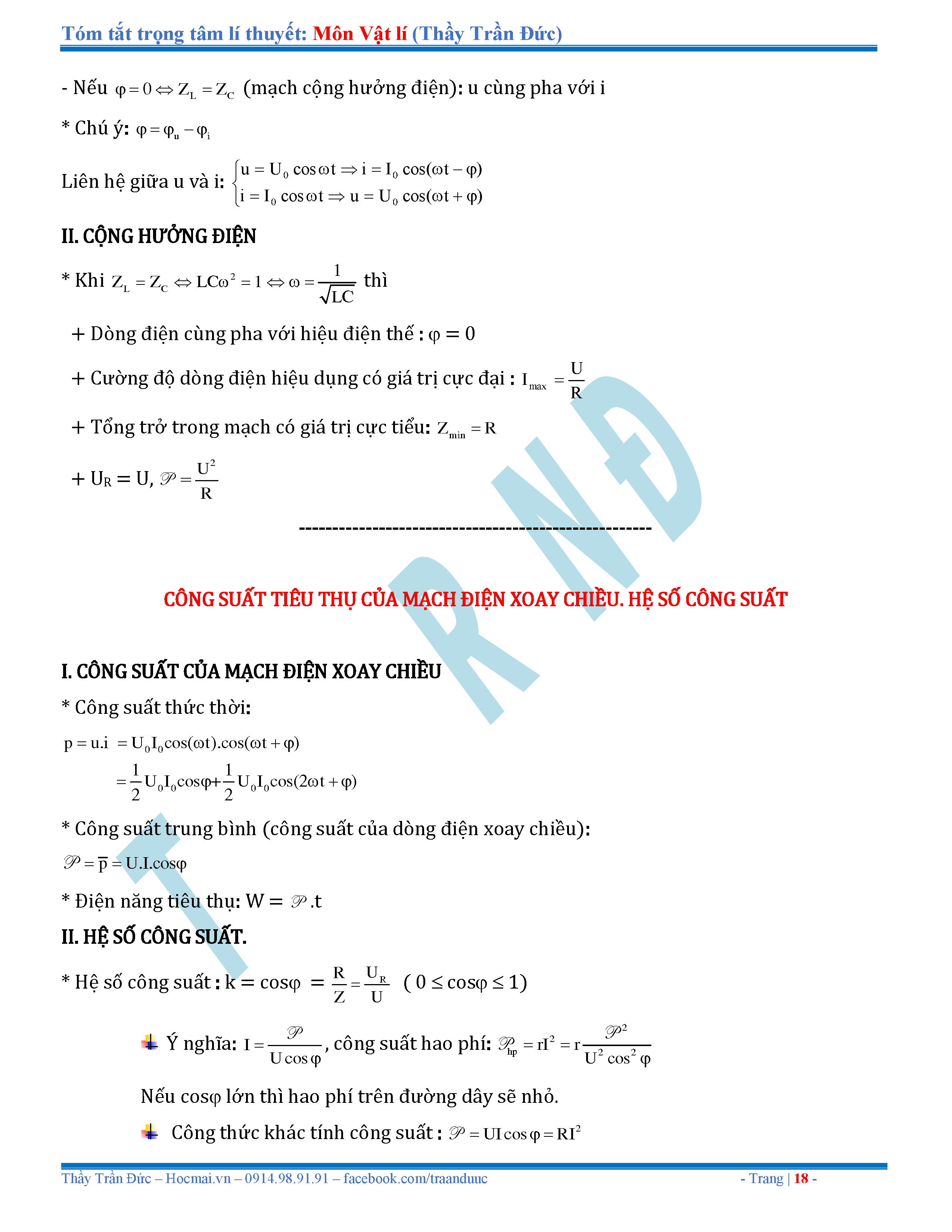 3.4 Công suất tiêu thụ của mạch điện xoay chiều, hệ số công suất