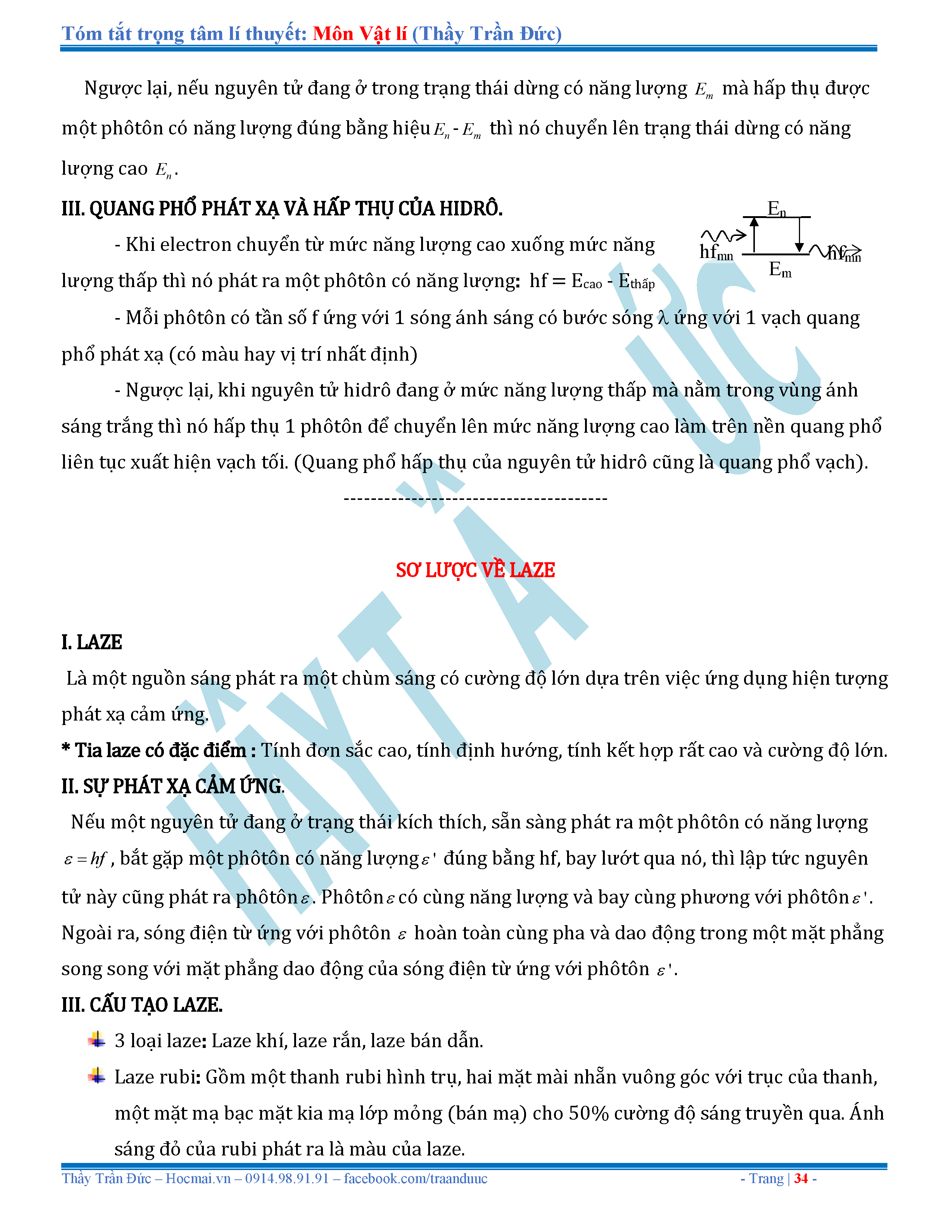 - Quang phổ phát xạ và hấp thụ của Hidro