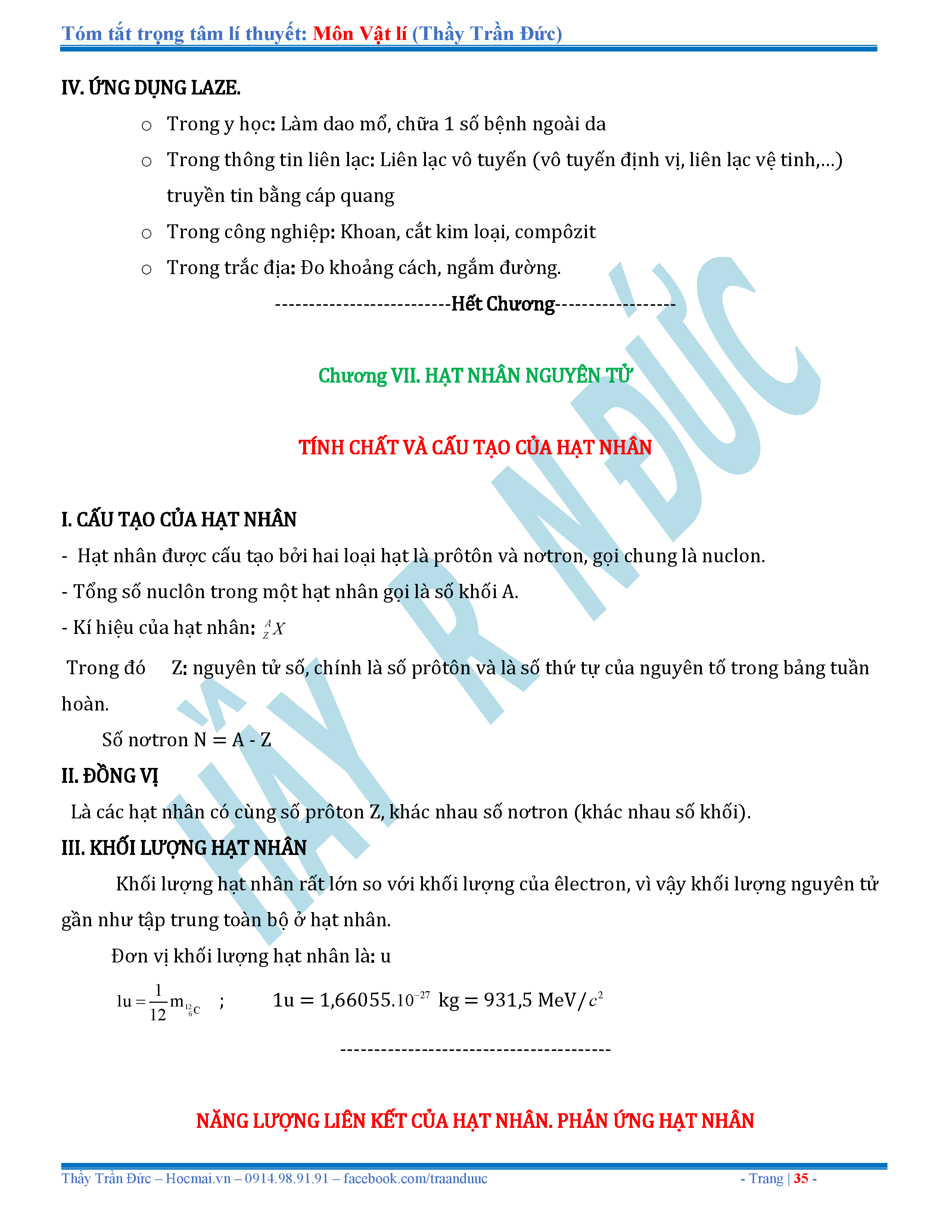 7.2 Năng lượng liên kết của hạt nhân. Phản ứng hạt nhân