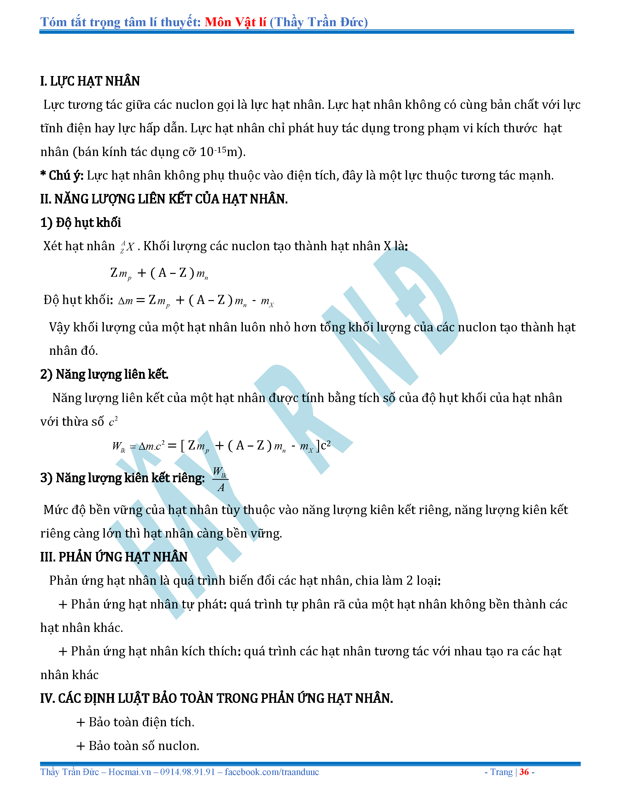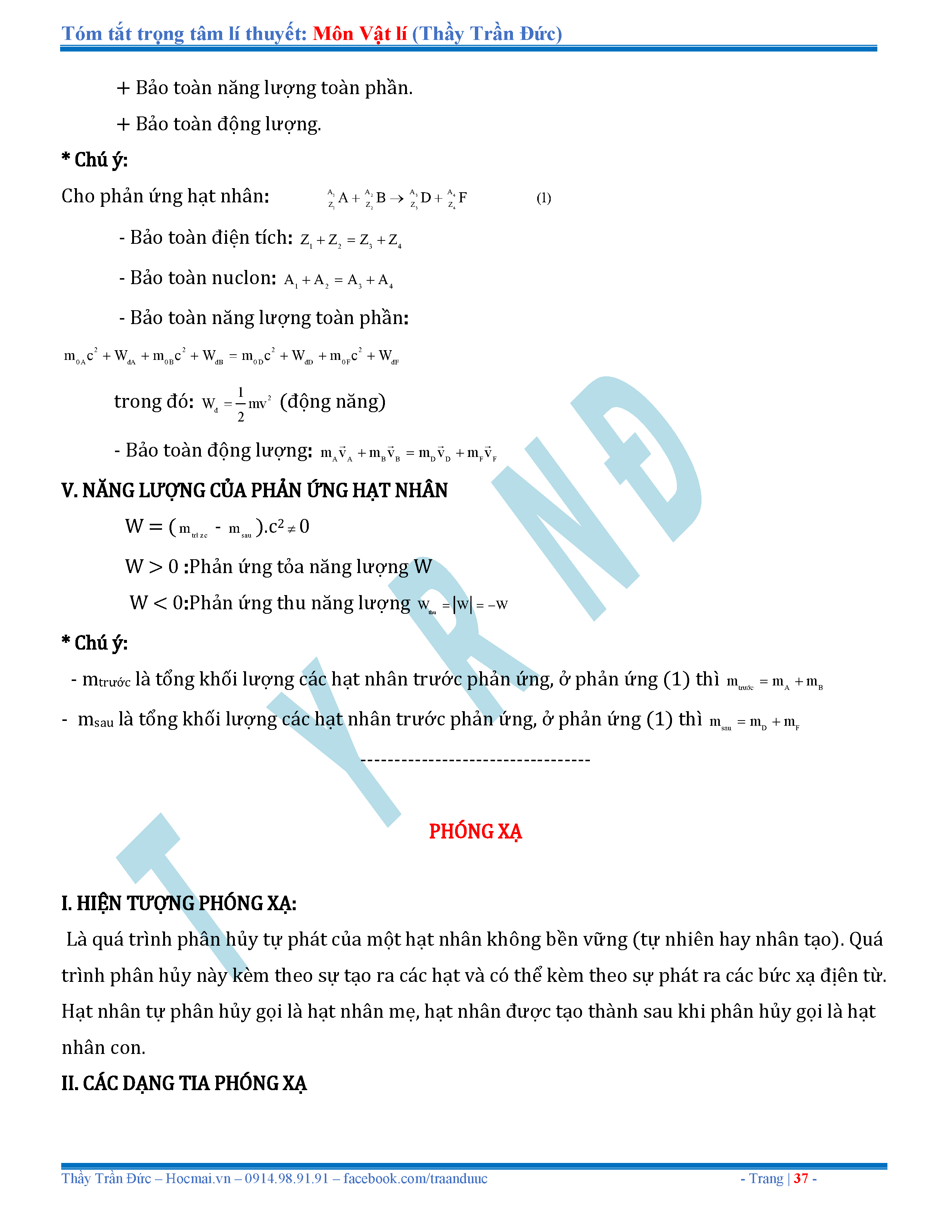 - Các định luật bảo toàn trong phản ứng hạt nhân