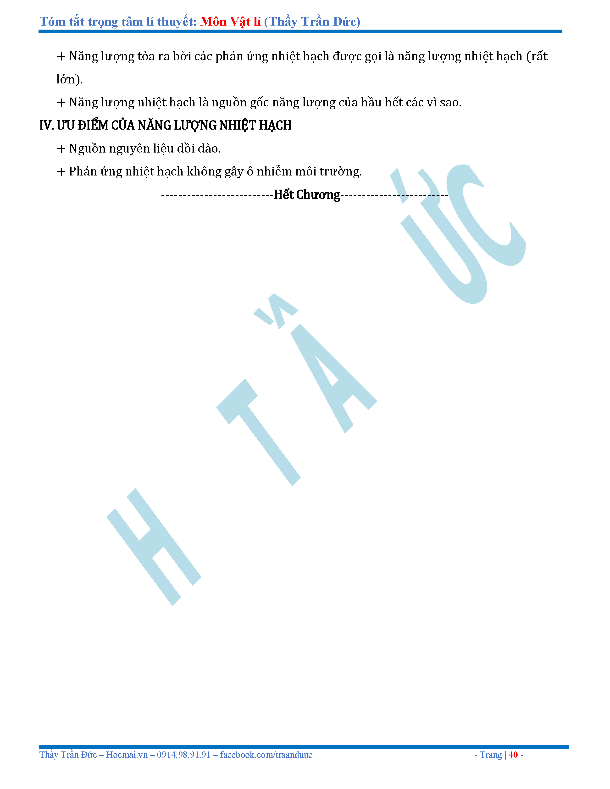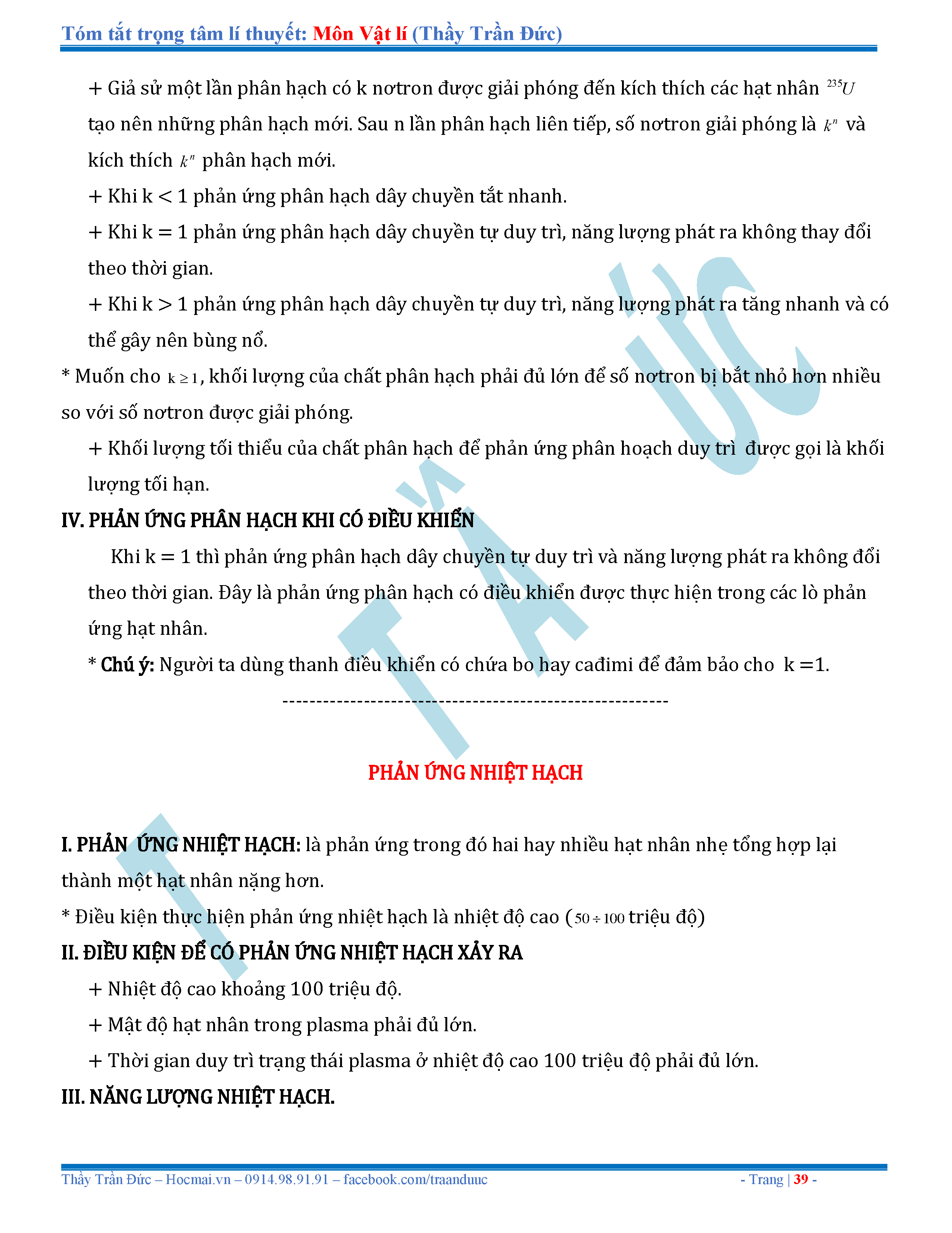 - Điều kiện để có phản ứng nhiệt hạch xảy ra