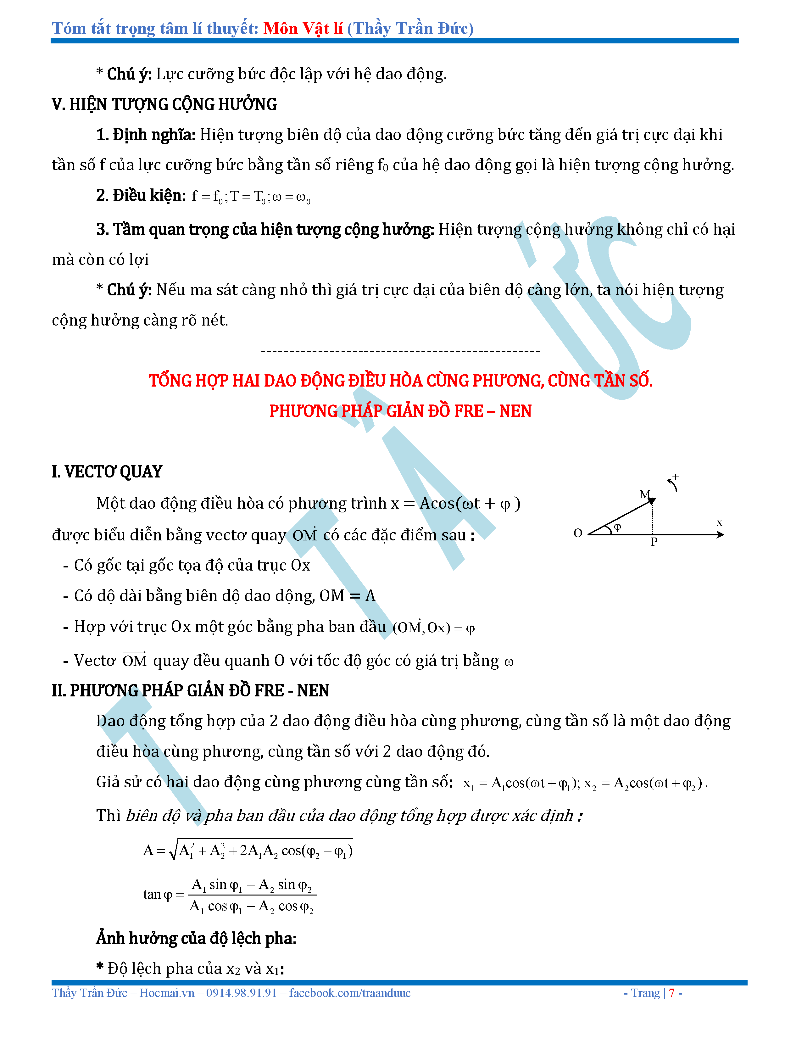 1.5 Tổng hợp hai dao động điều hòa cùng phương, cùng tần số. Phương pháp giản đồ Fre-nen