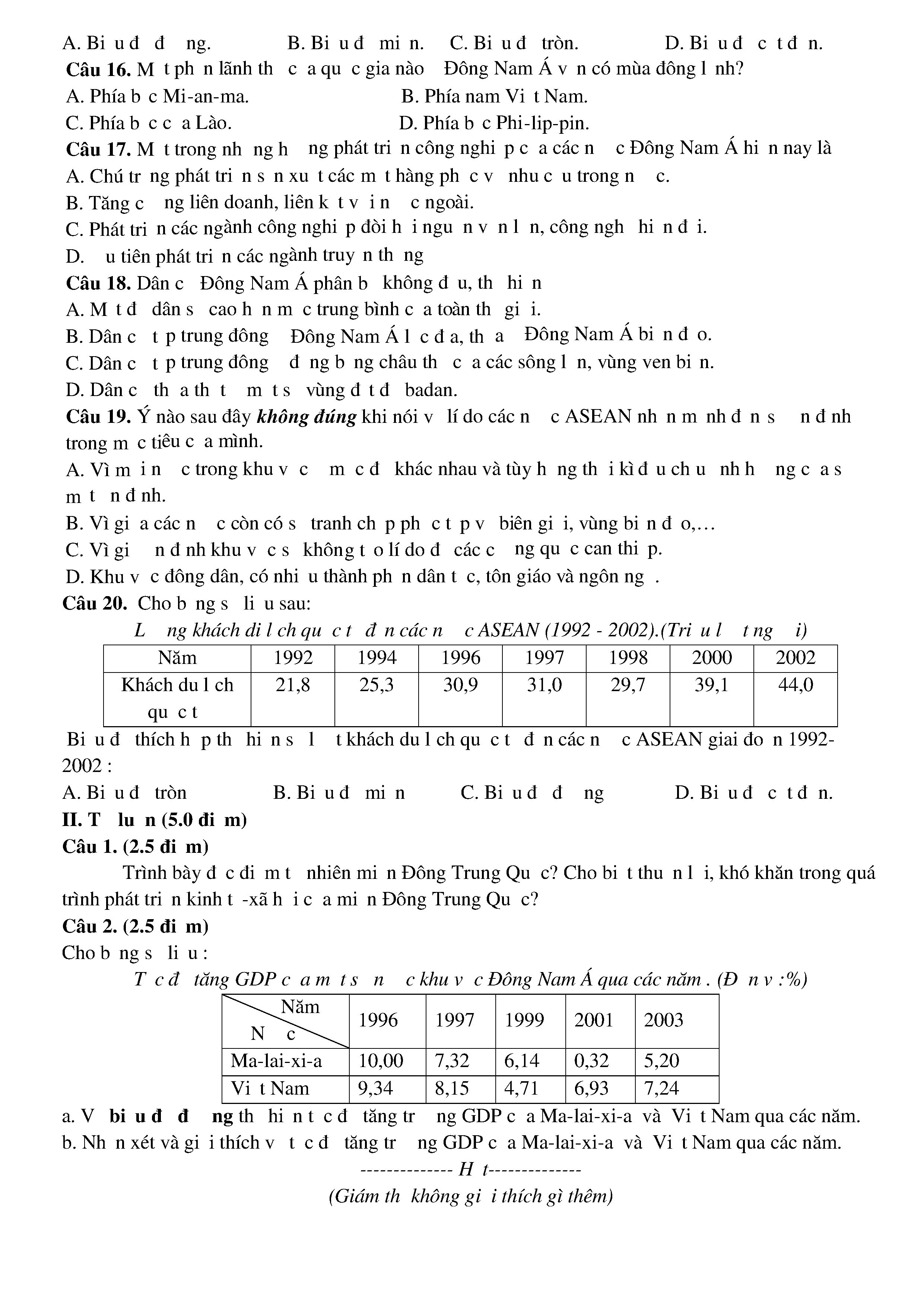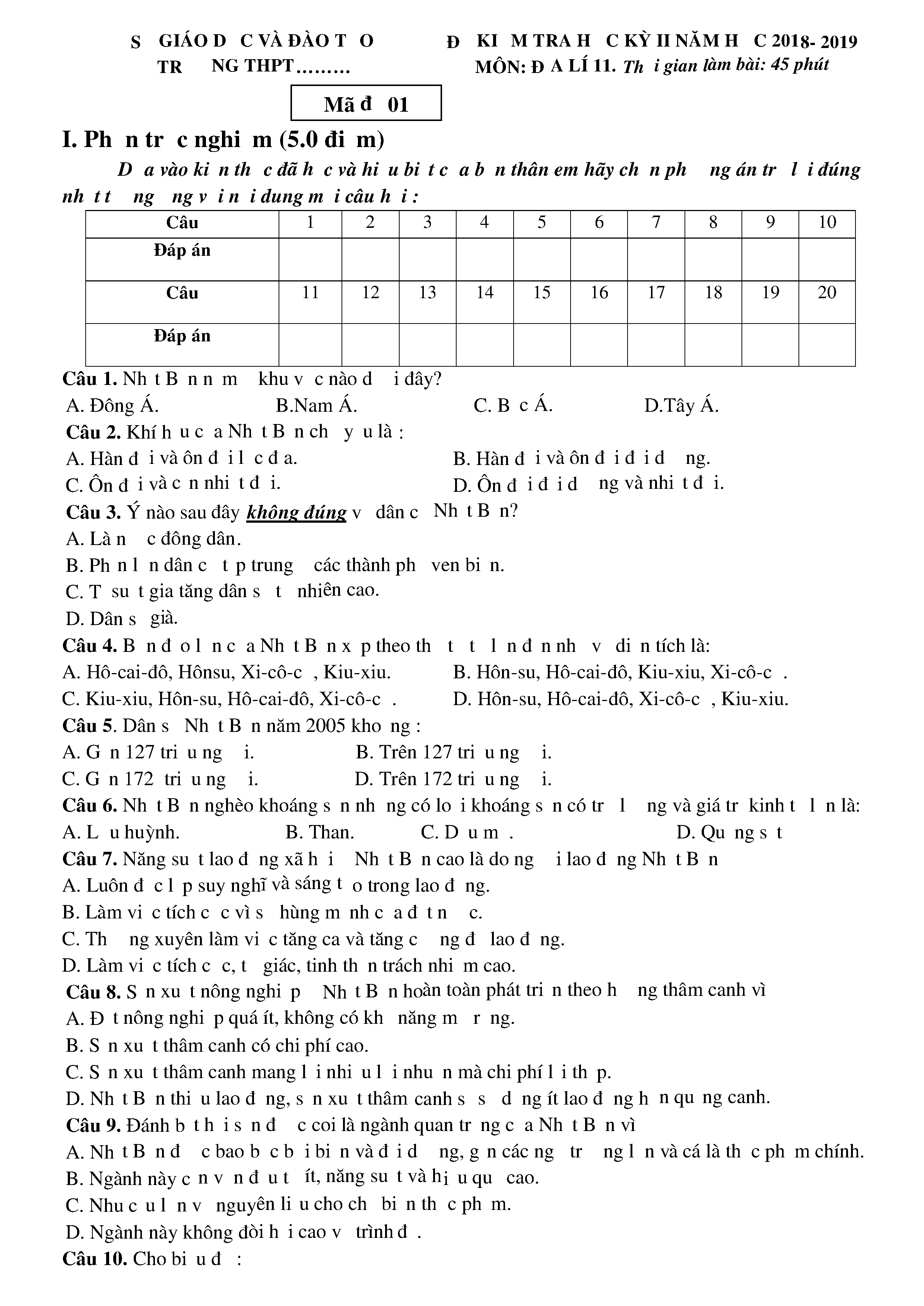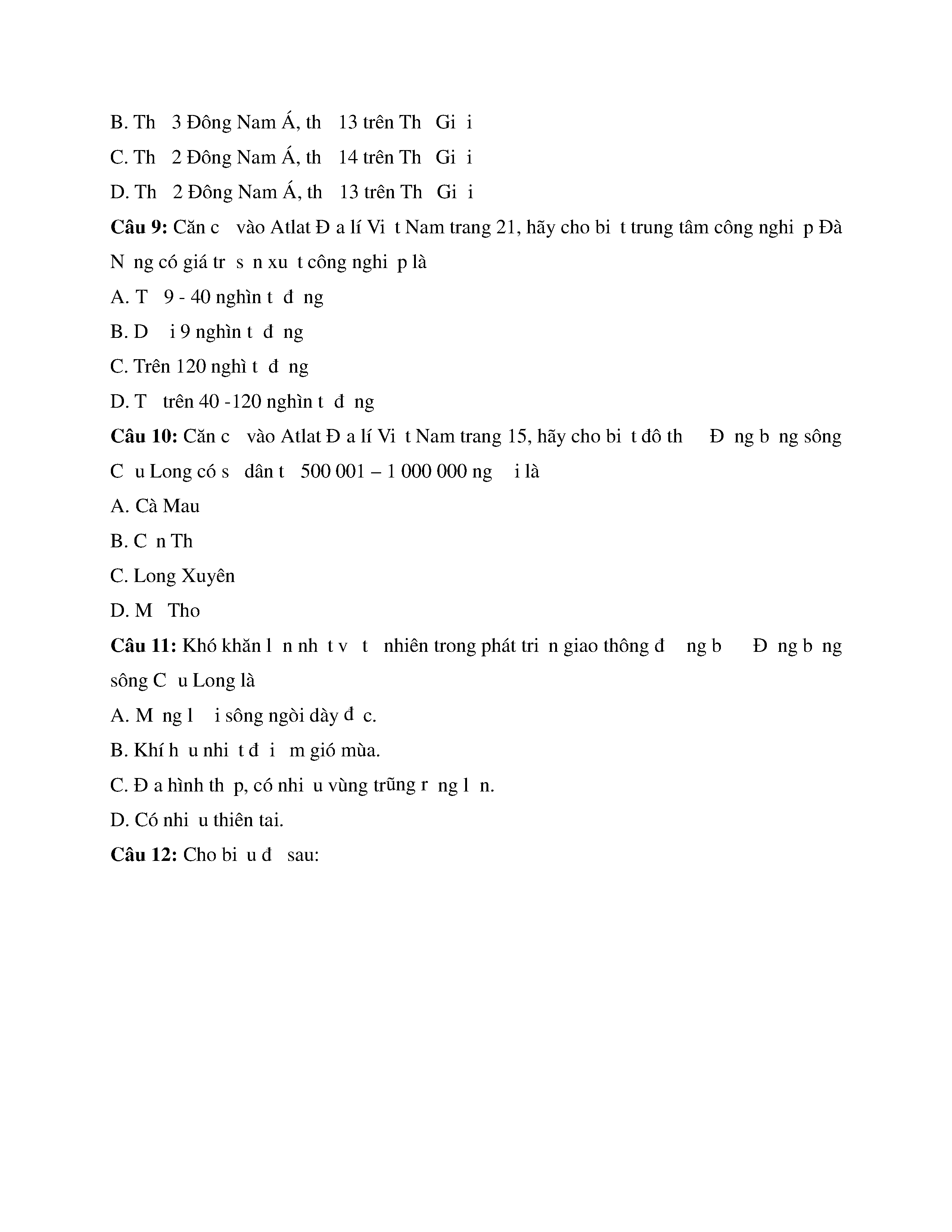 Đề kiểm tra giữa HKII - Lớp 12 - năm học 2016 - 2017 - Địa lí - Trường THPT Nguyễn Trung Trực