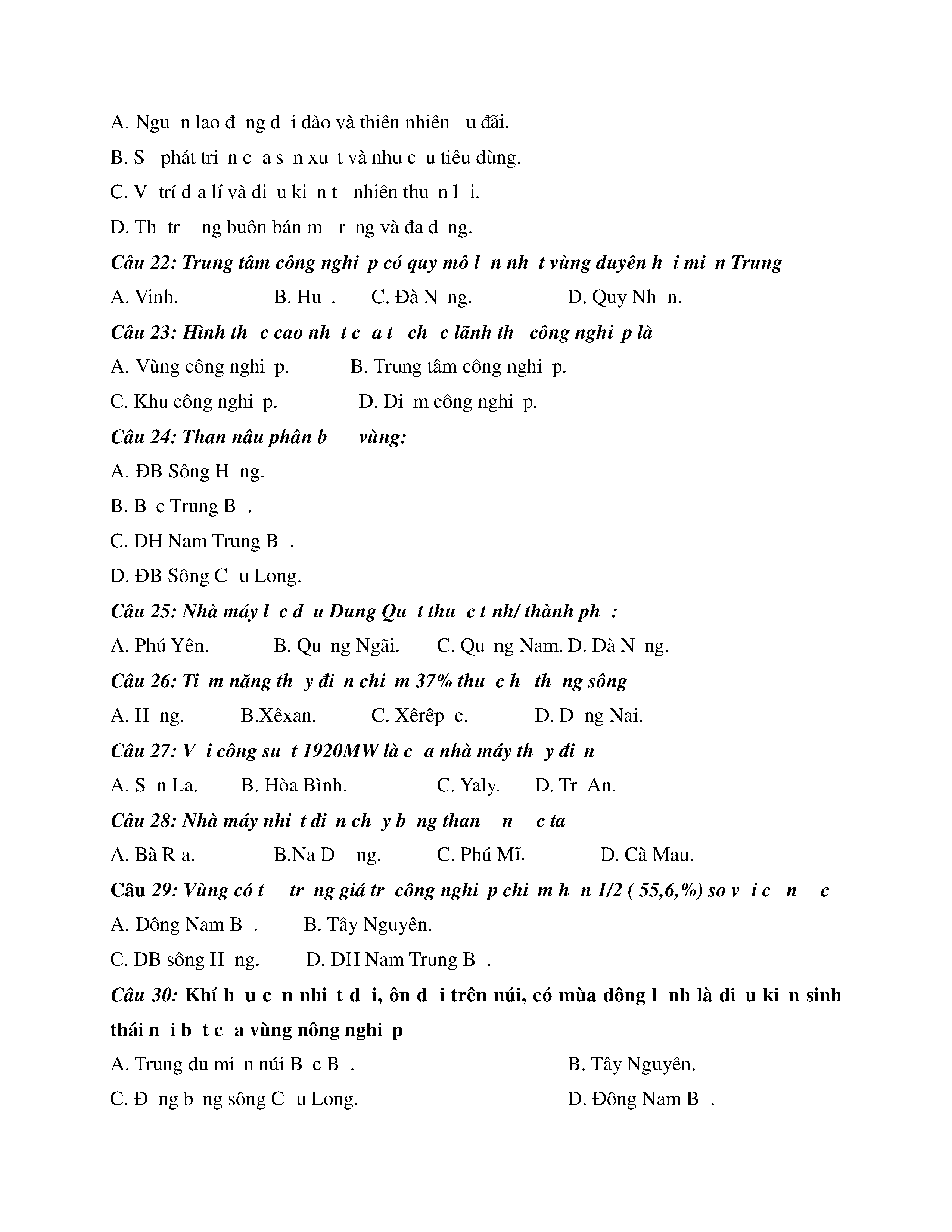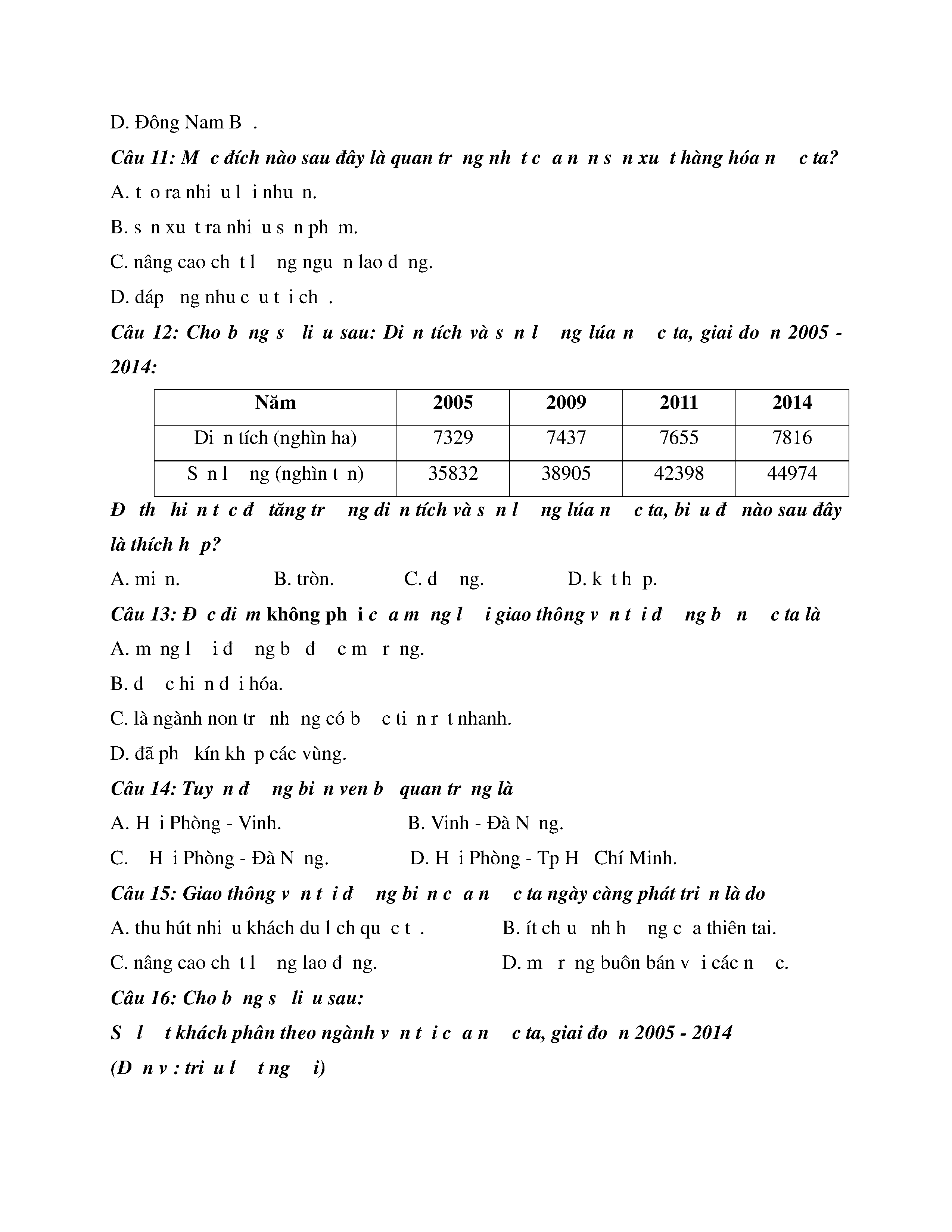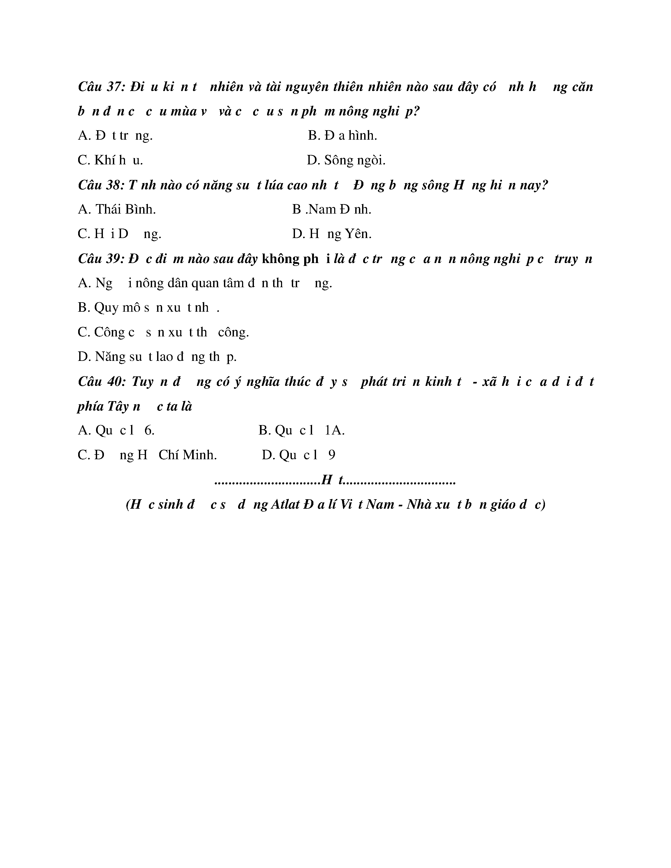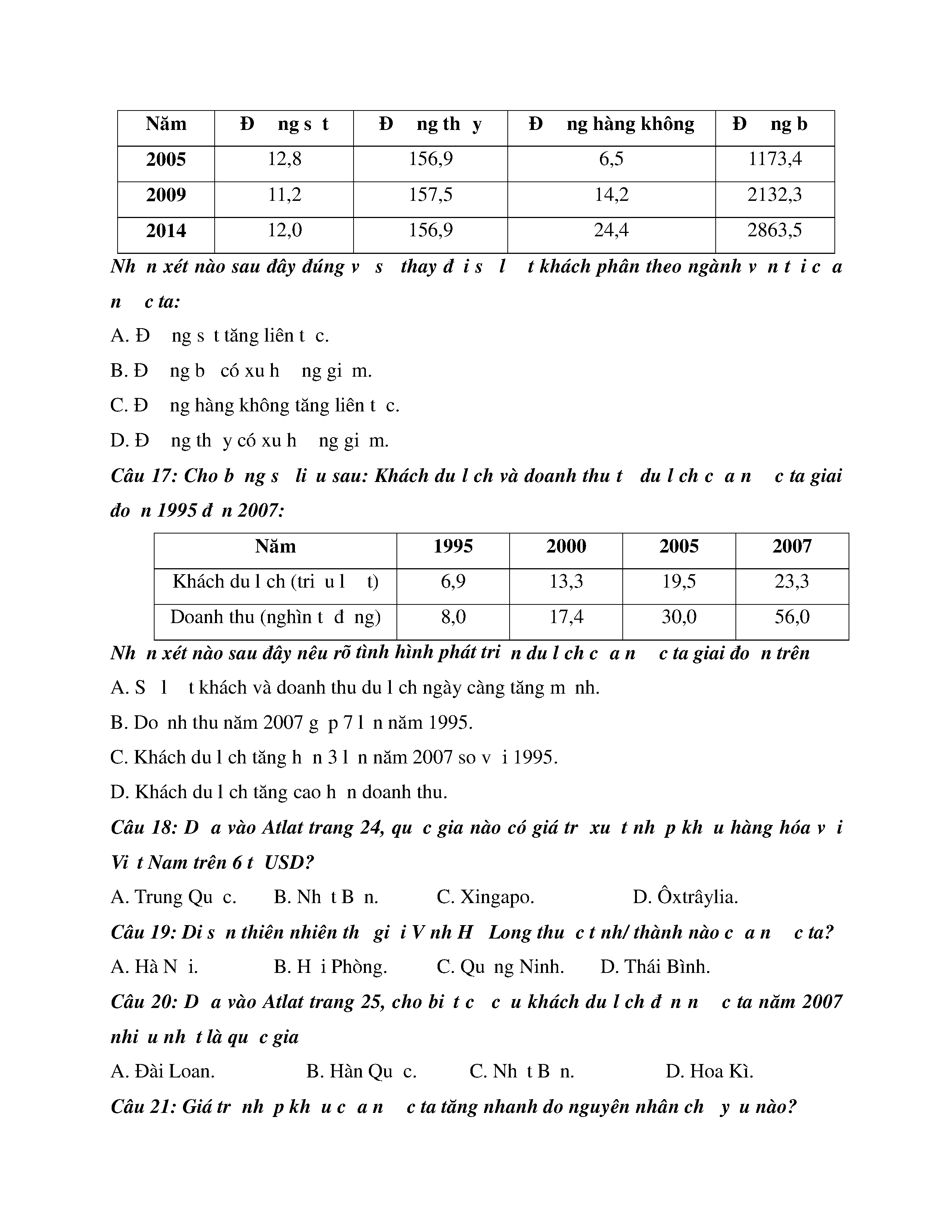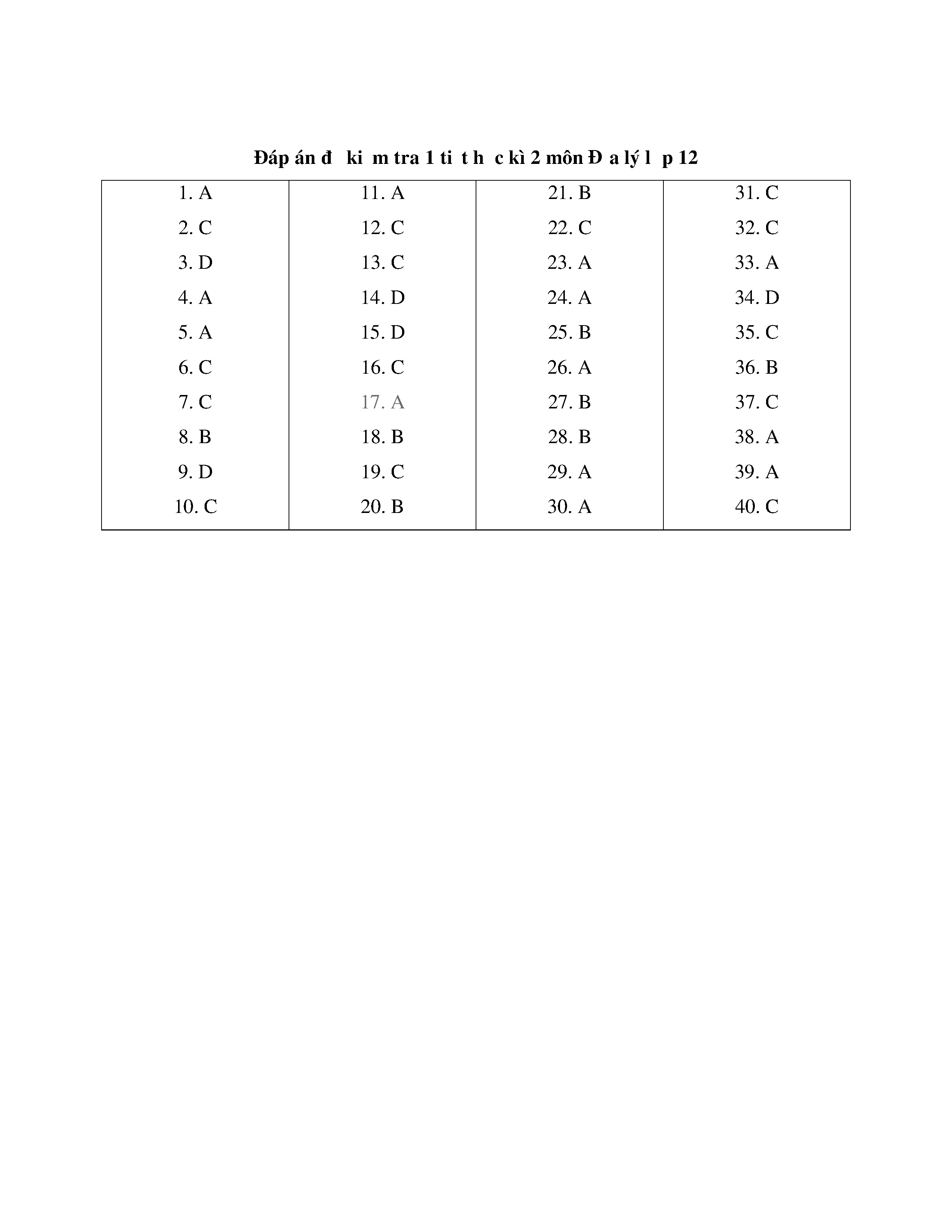 Đề kiểm tra HKII - Lớp 12 - năm học 2016 - 2017 - Địa lí - Trường THPT Lê Hồng Phong