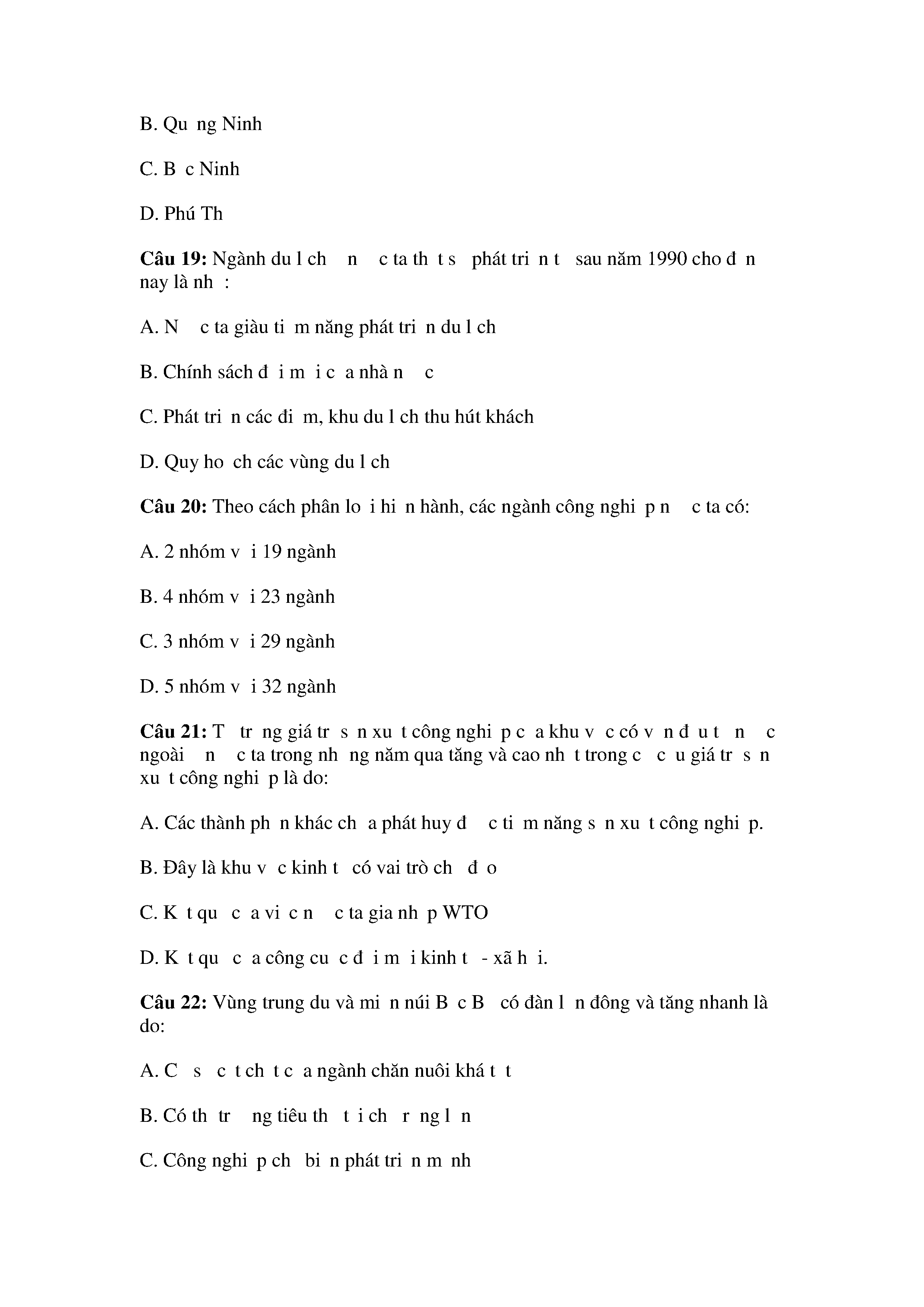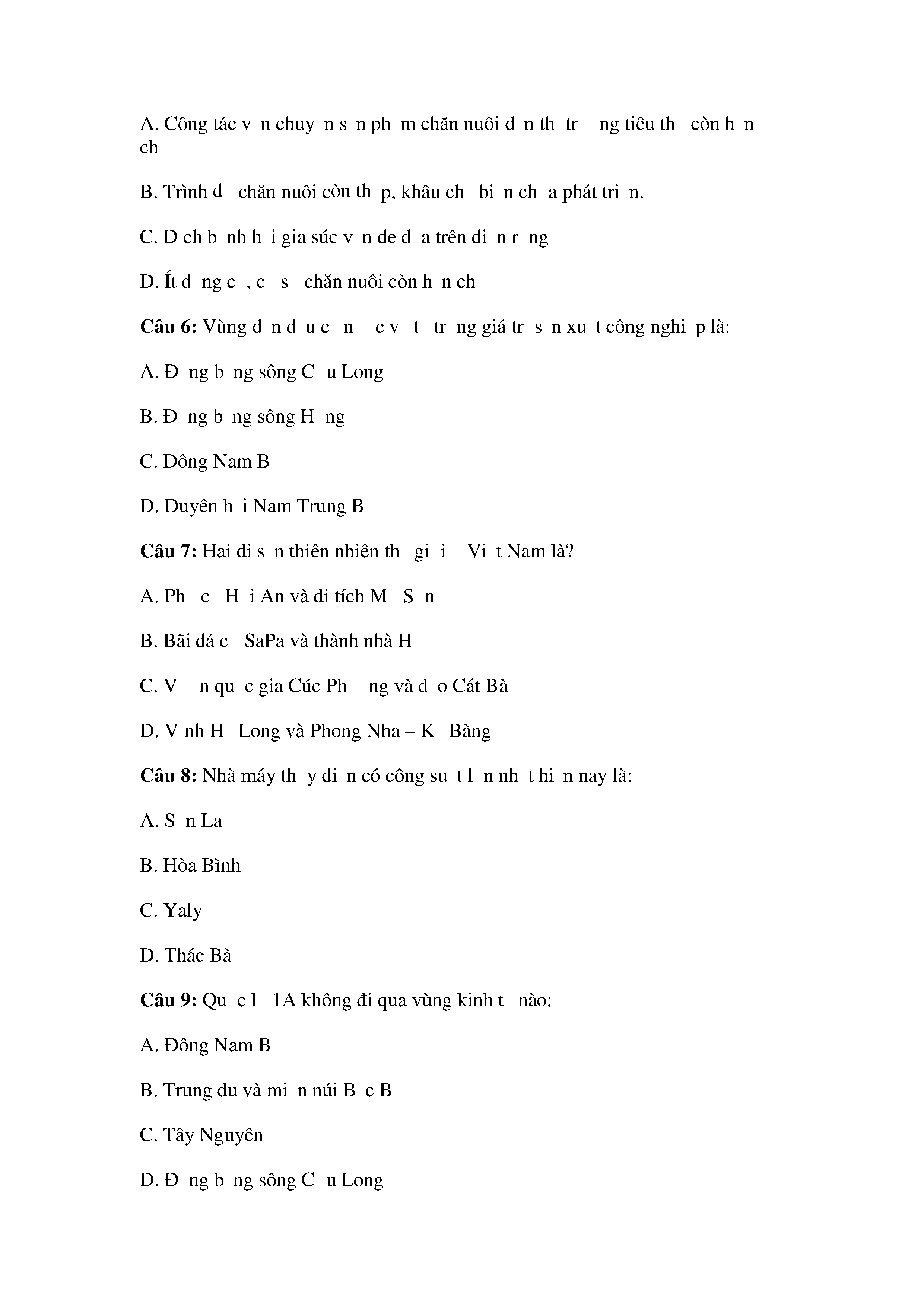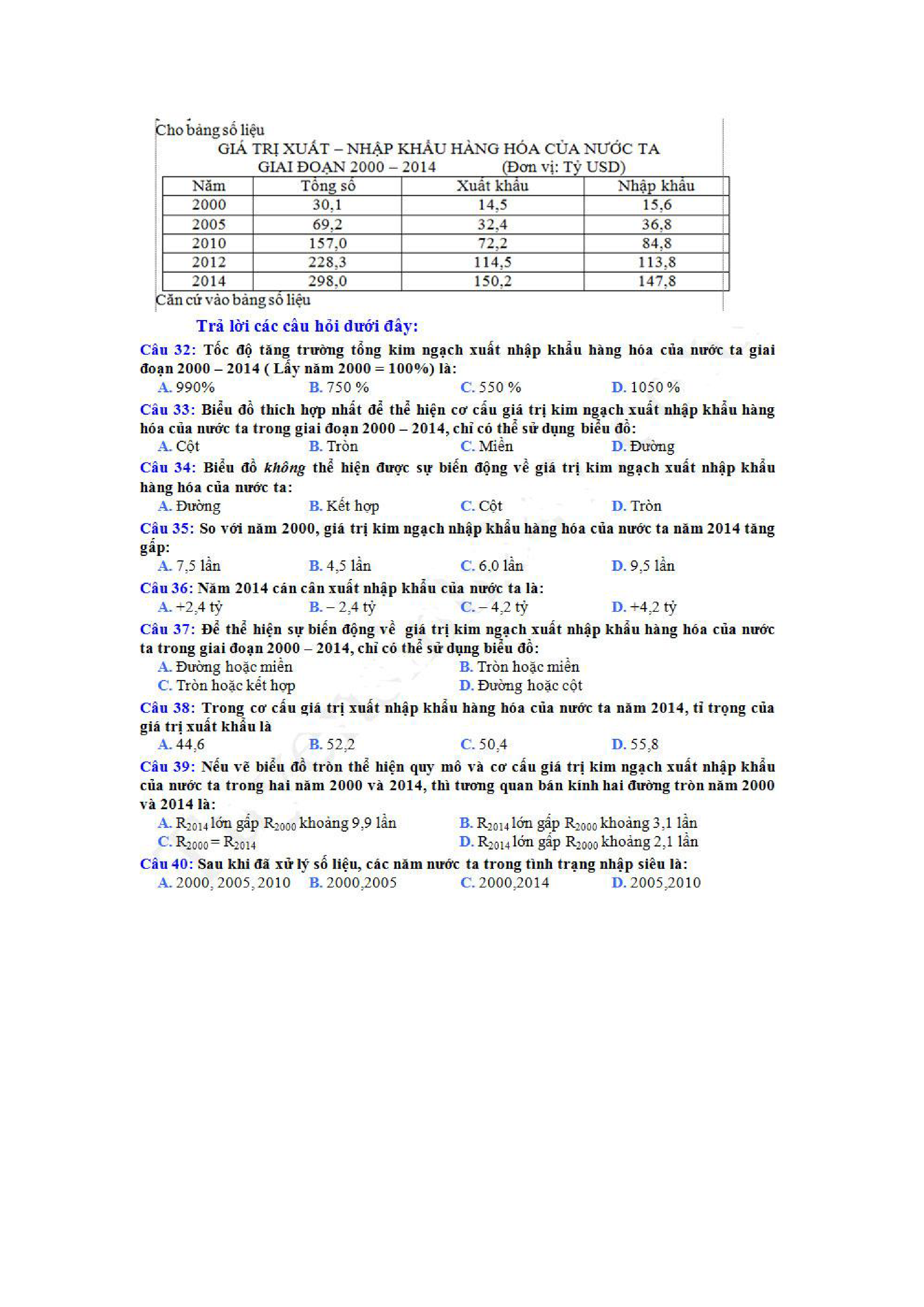 Đề kiểm tra HKII - Lớp 12 - năm học 2018 - 2019 - Địa lí - Trường THPT Xuân Đỉnh