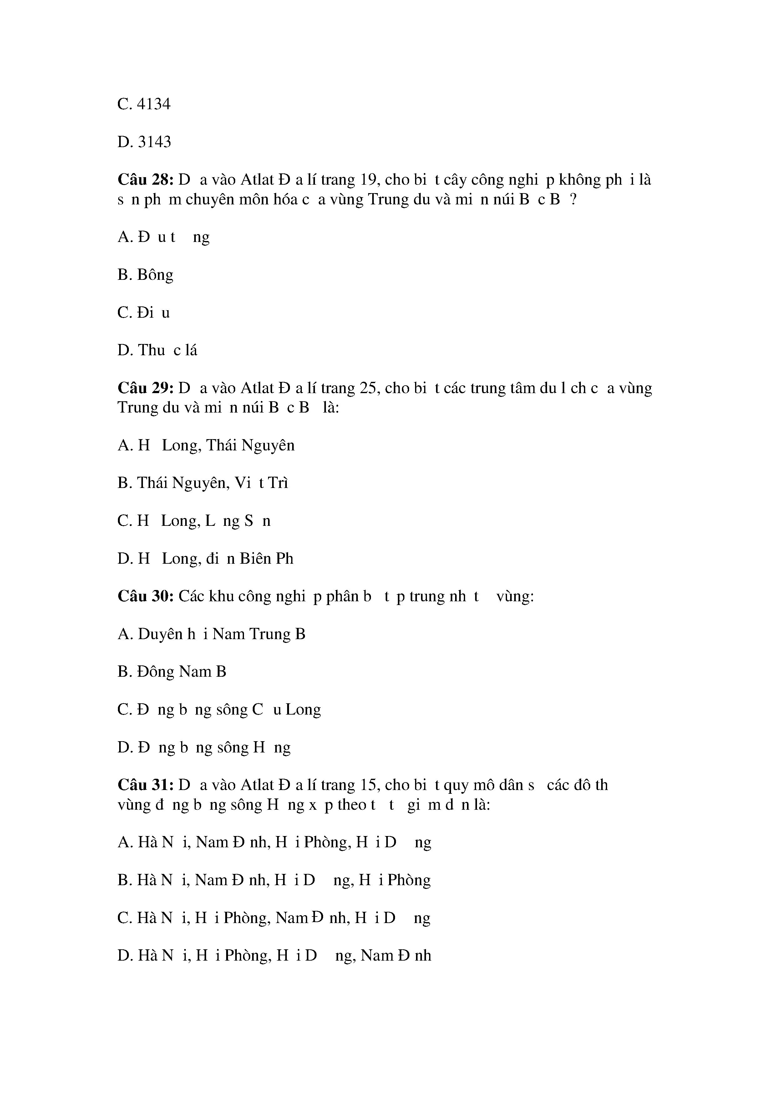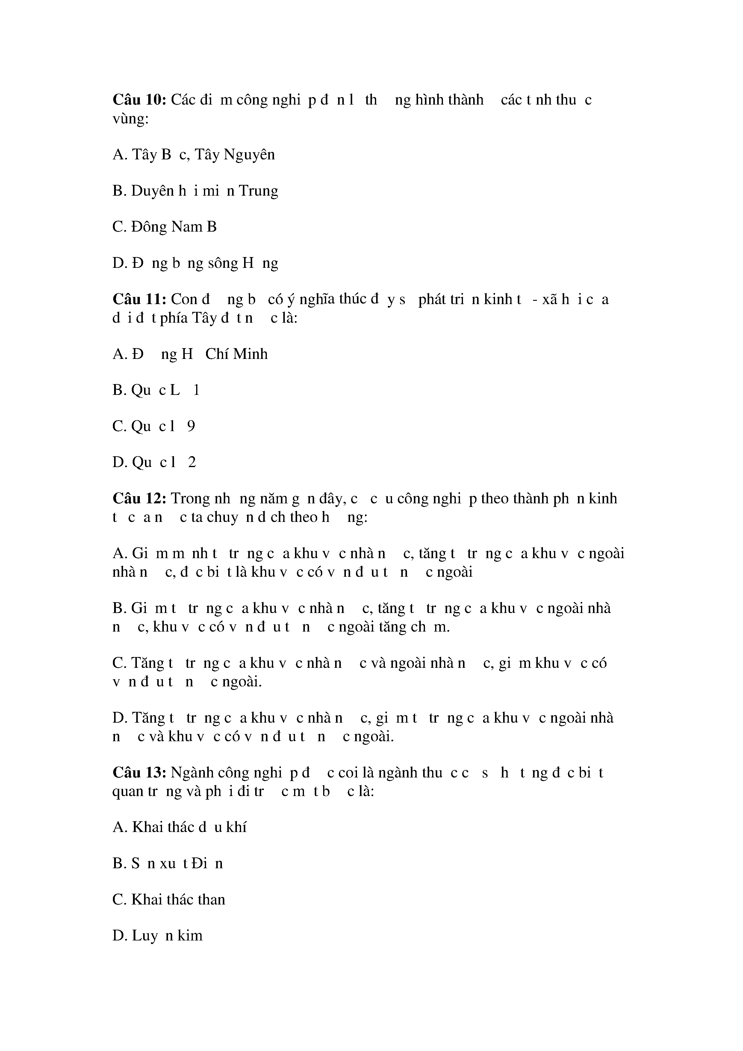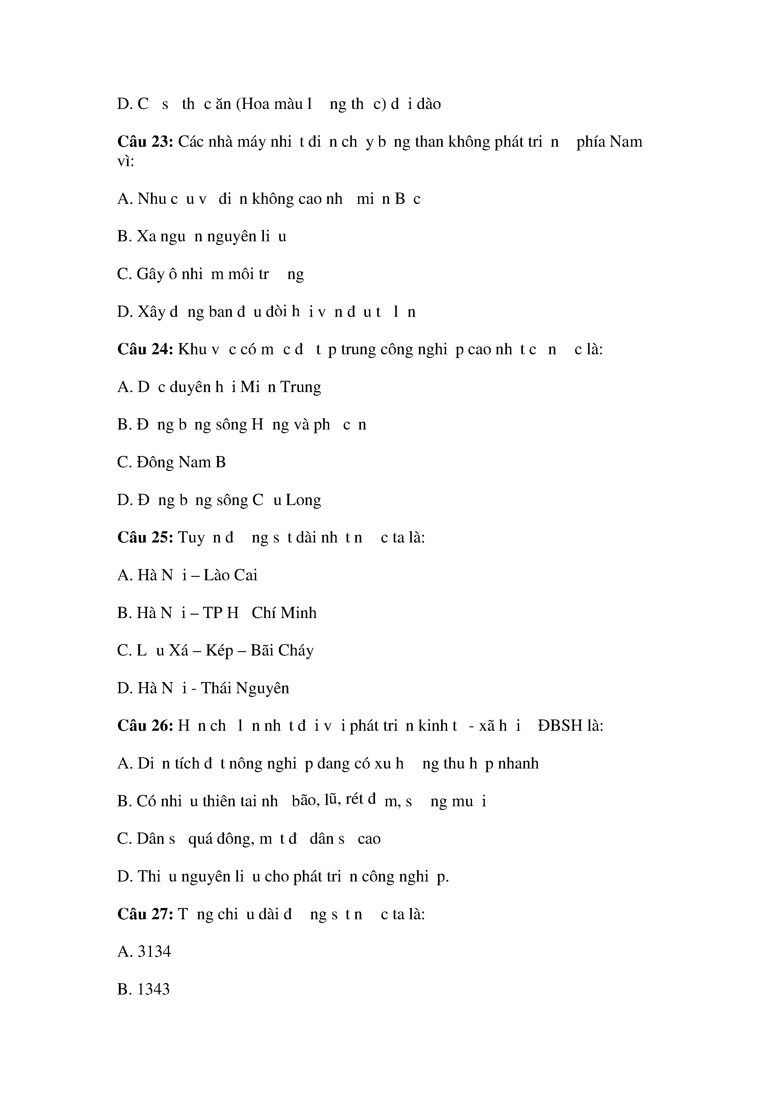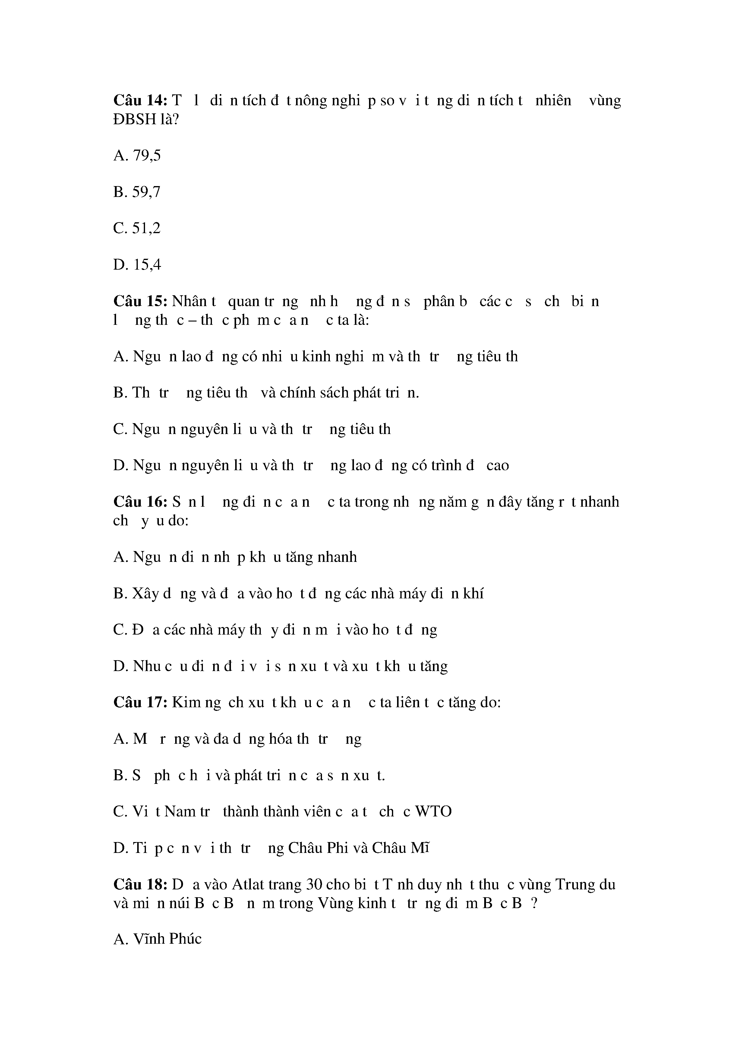Đề kiểm tra HKII - Lớp 12 - năm học 2018 - 2019 - Địa lí - Trường THPT Xuân Đỉnh