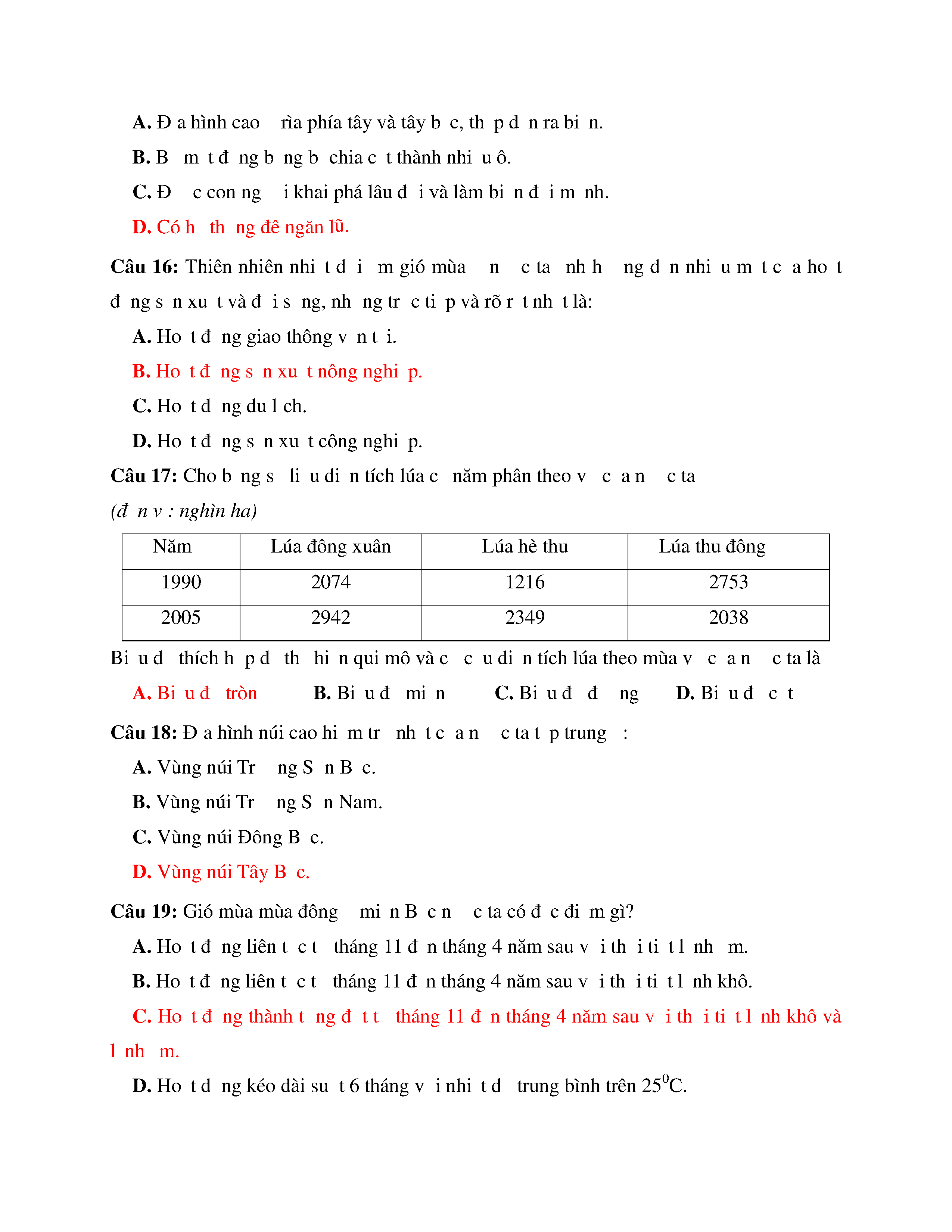 Đề kiểm tra 1 tiết lớp 12 năm học 2016-2017 môn Địa lí Trường THPT Nguyễn Trung Trực