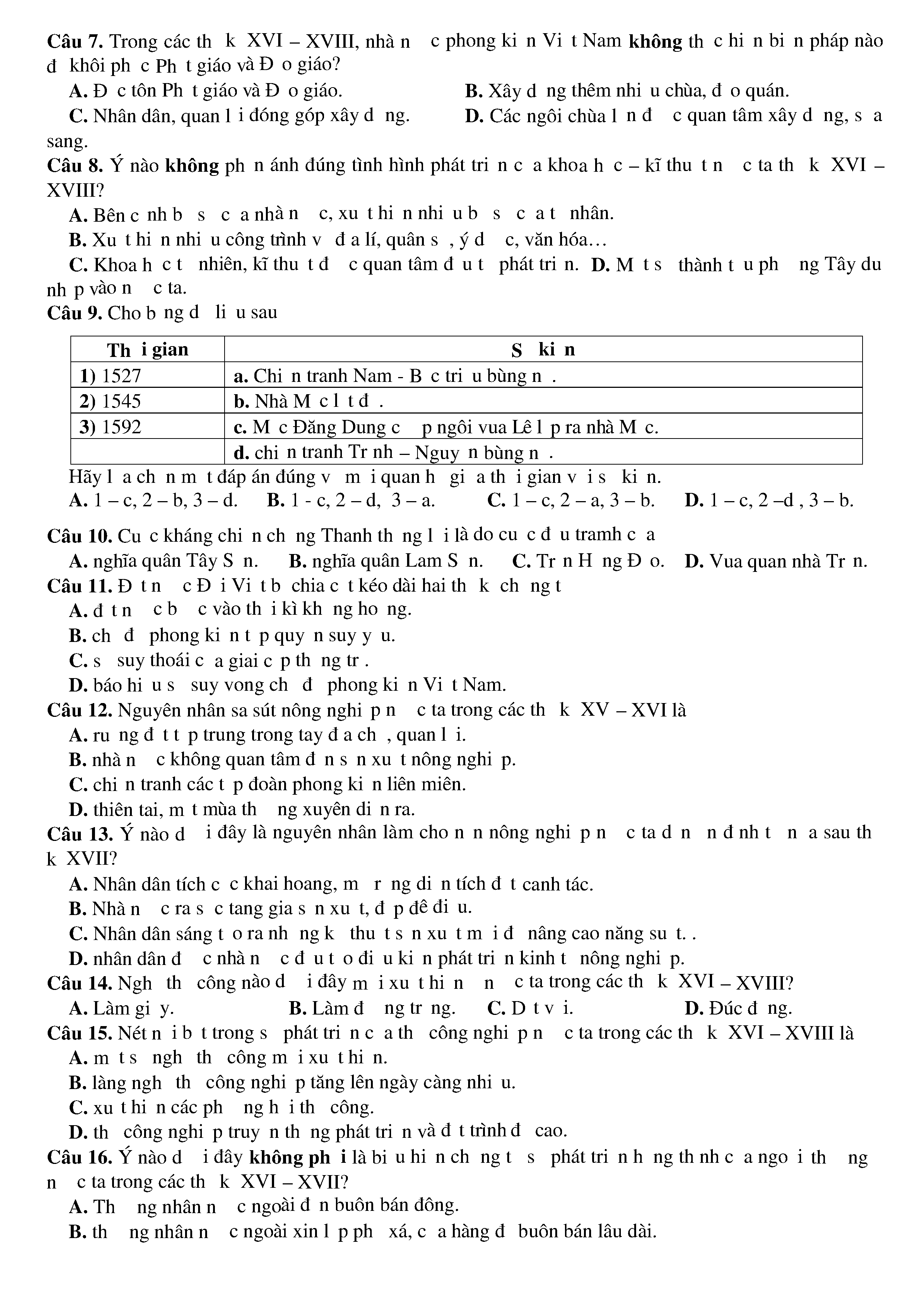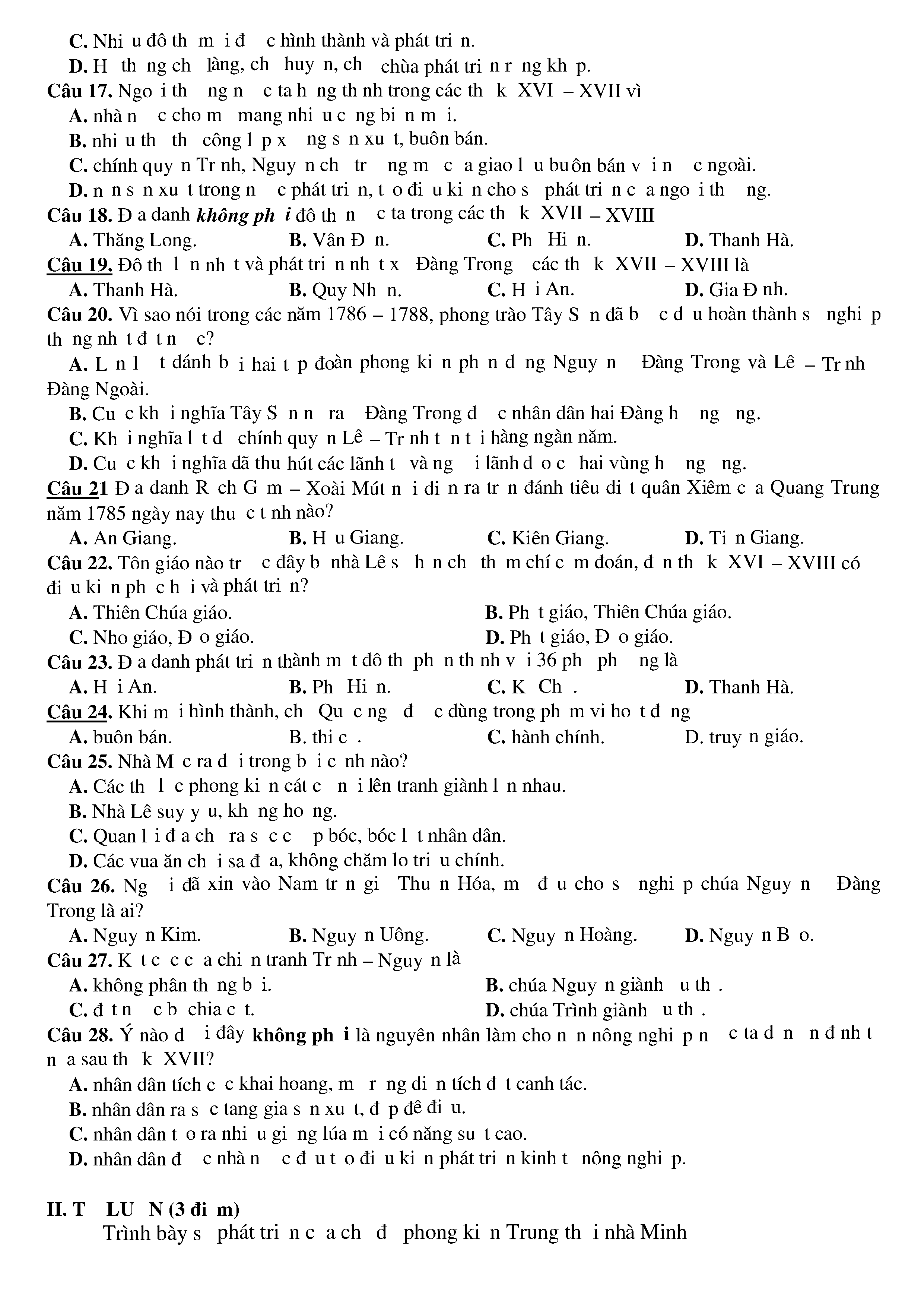 Đề kiểm tra HKII - Lớp 10 - năm học 2018 - 2019 - Lịch sử - Đề số 1