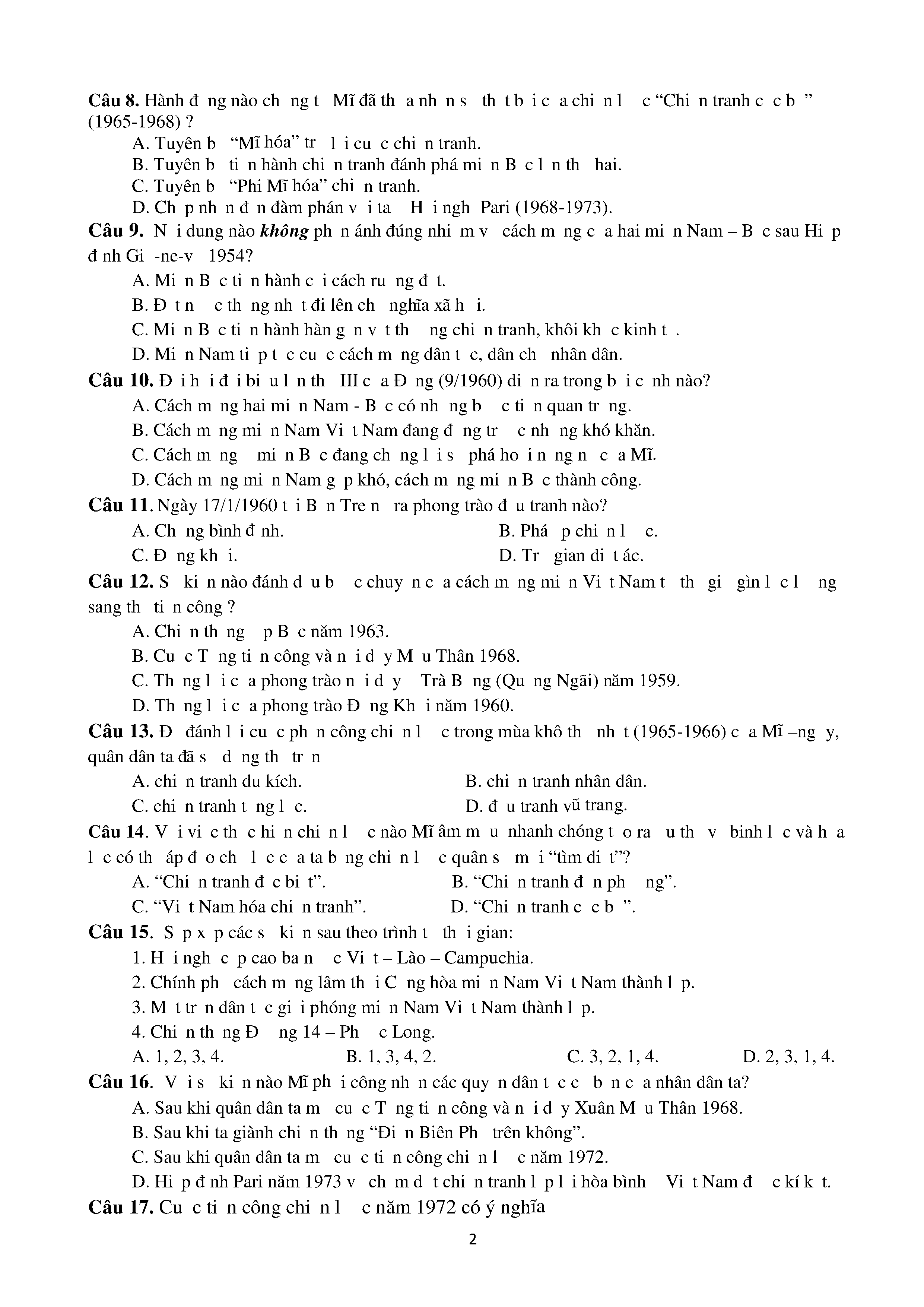 Đề kiểm tra HKII - Lớp 10 - năm học 2018 - 2019 - Lịch sử - Đề số 6